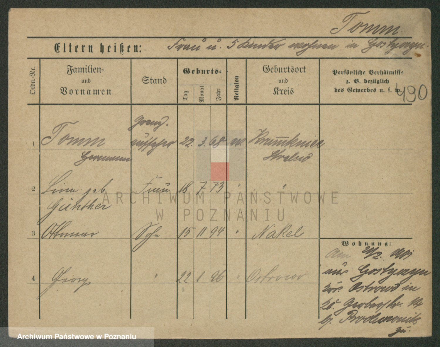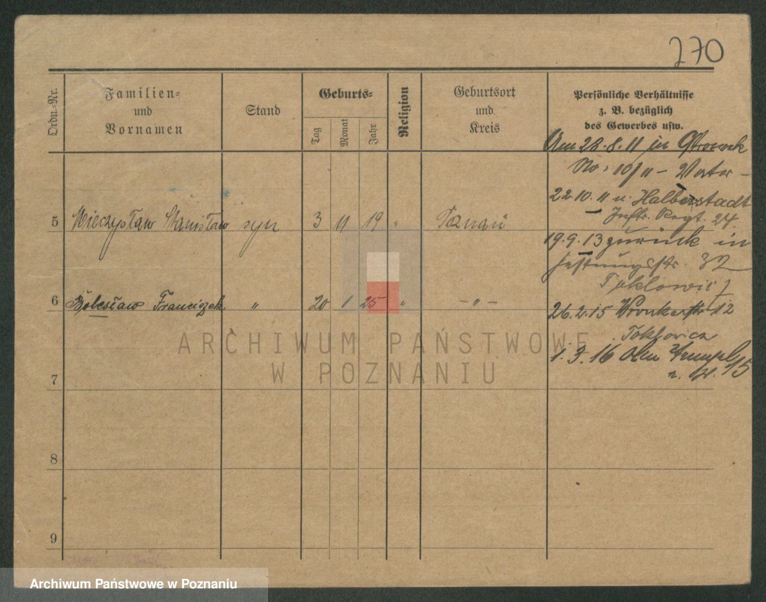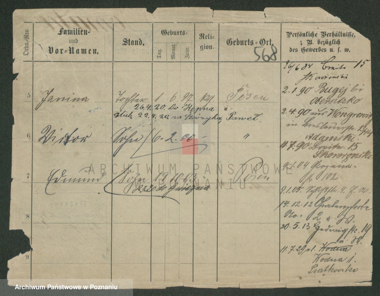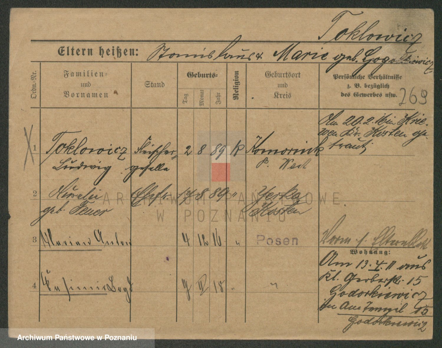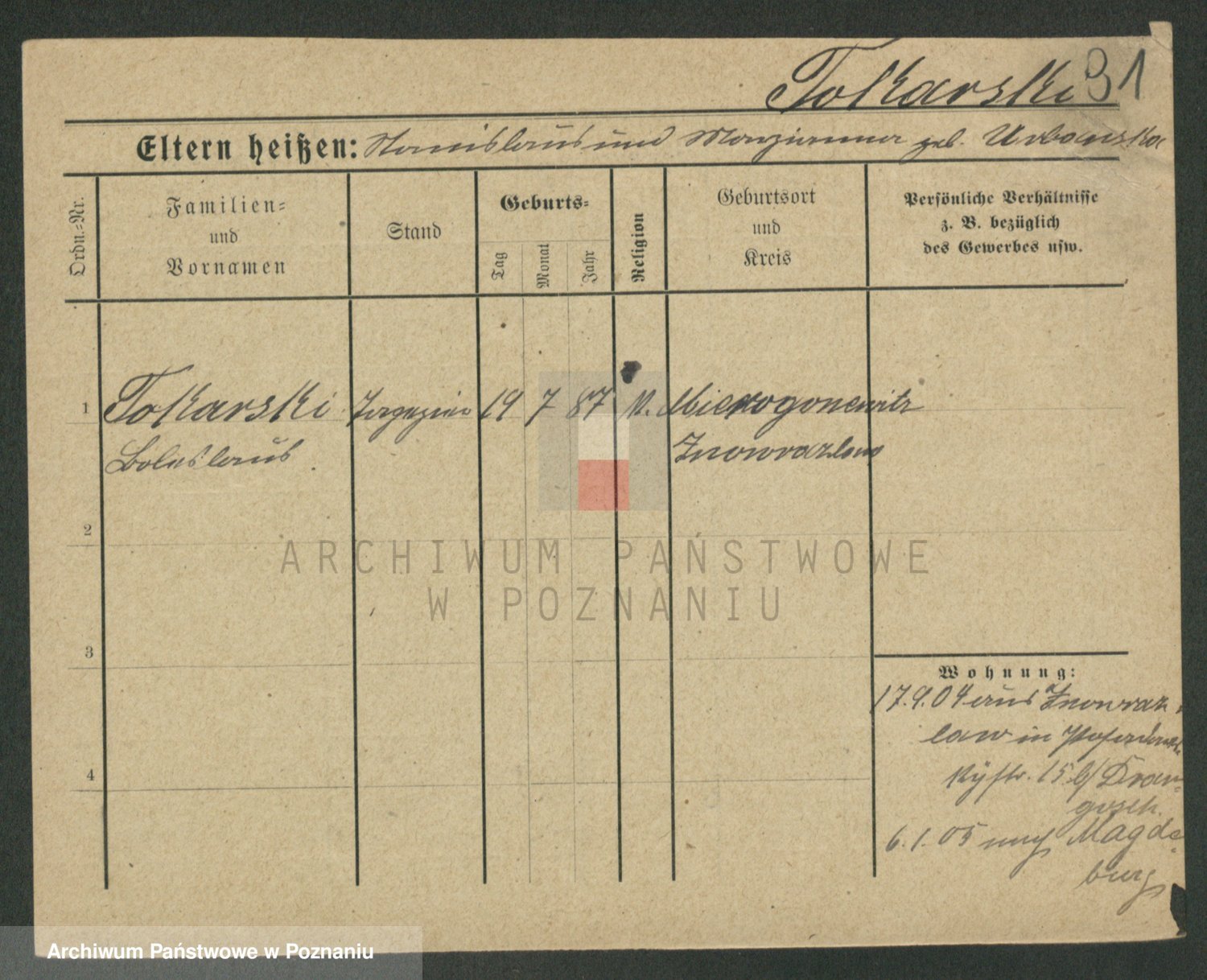 Podgląd karty osobowej dostępny jest po kliknięciu na nazwisko lub ikonkę karty. Można dokonywać powiększenia (ikony na górze) lub przechodzić między kolejnymi skanami (strzałki po bokach).
