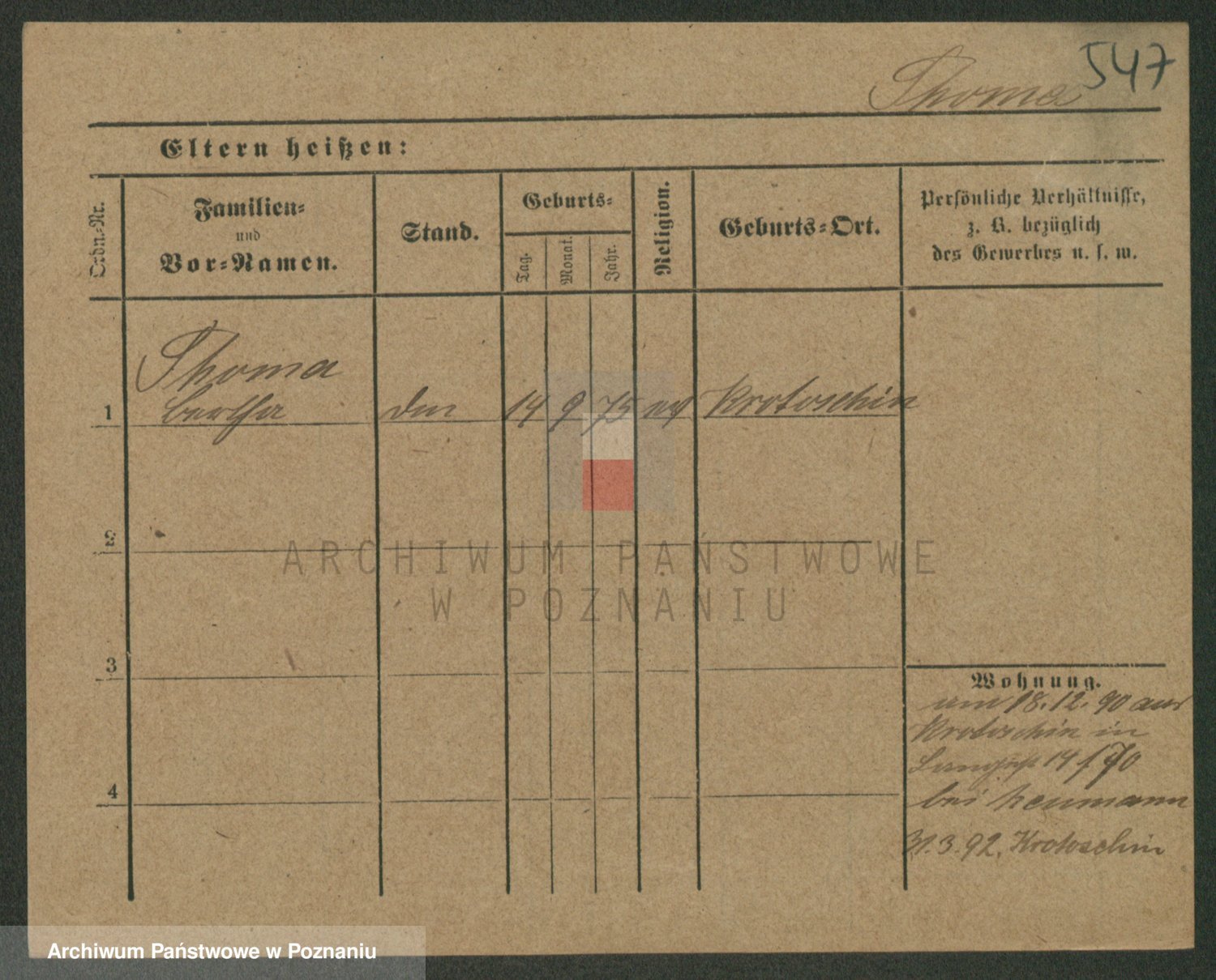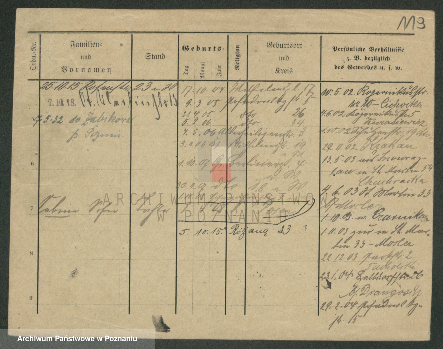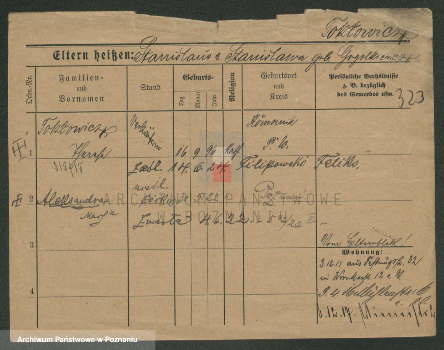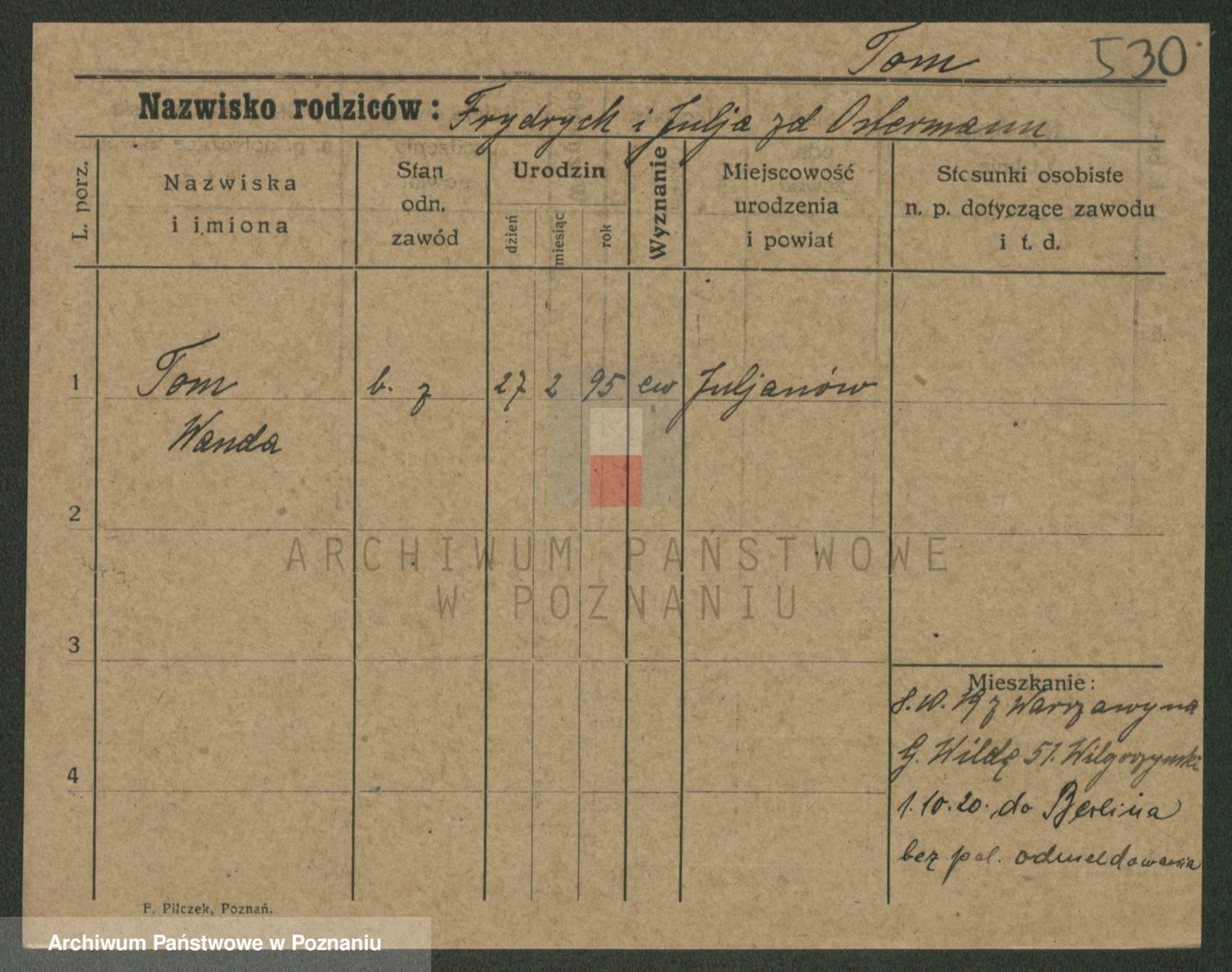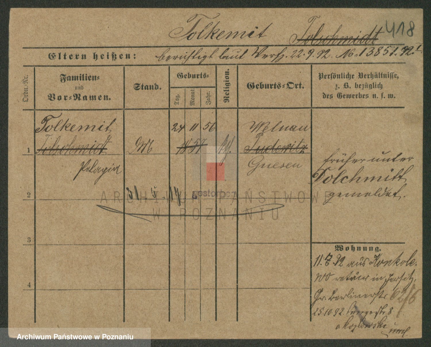 Podgląd karty osobowej dostępny jest po kliknięciu na nazwisko lub ikonkę karty. Można dokonywać powiększenia (ikony na górze) lub przechodzić między kolejnymi skanami (strzałki po bokach).