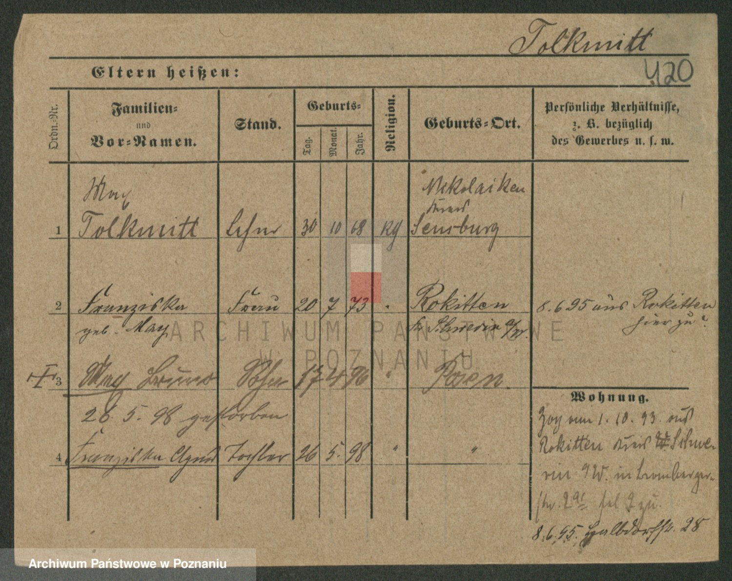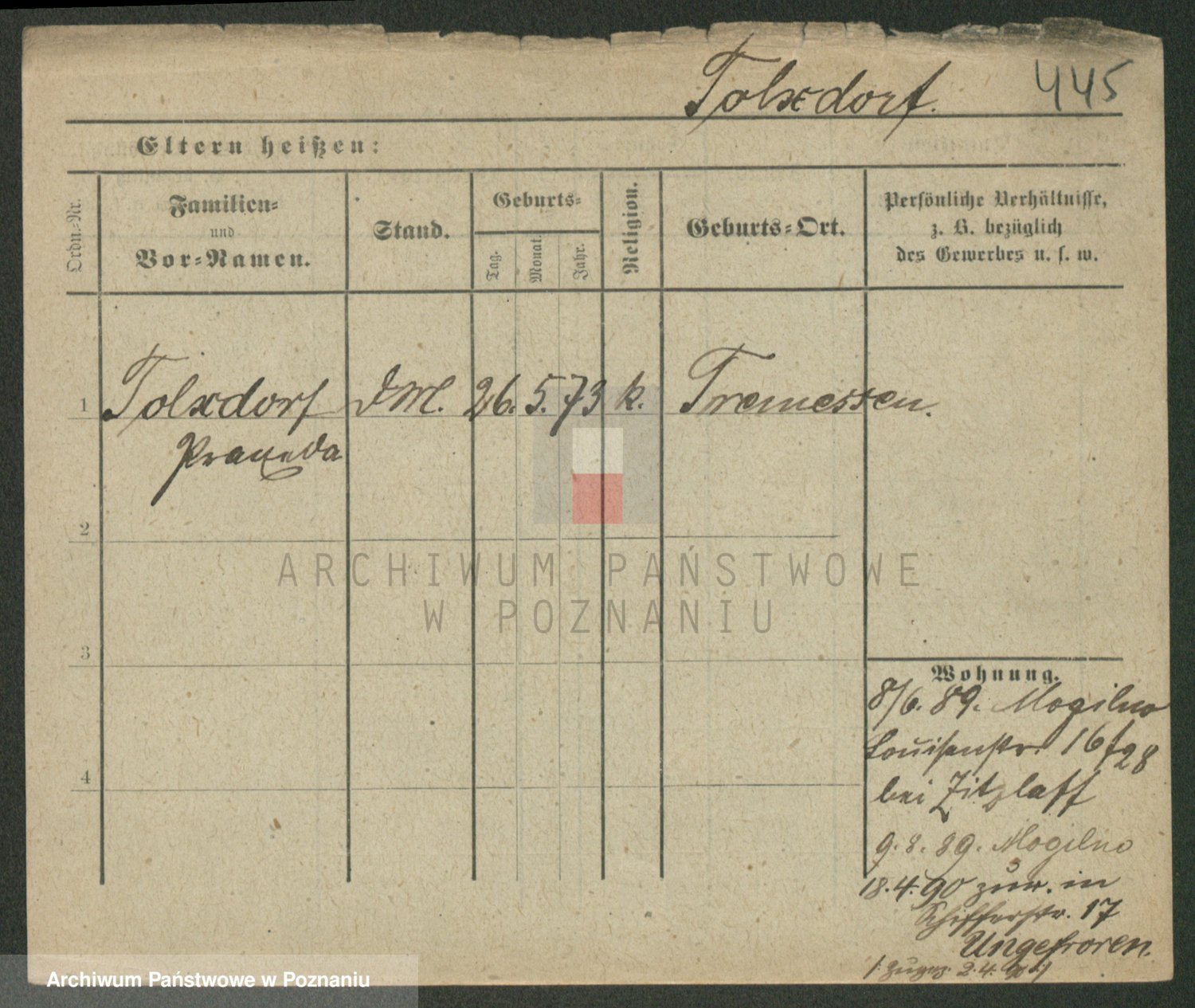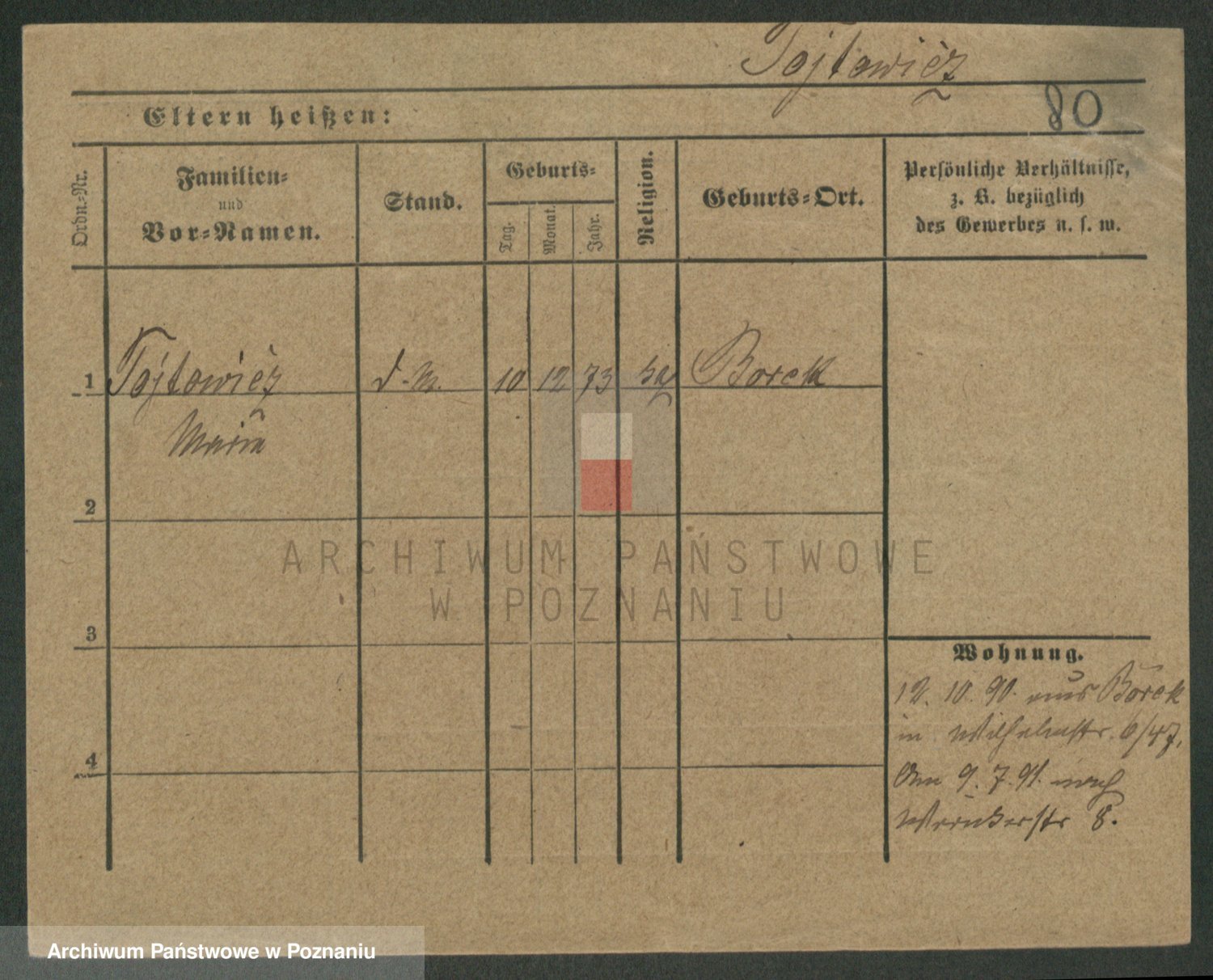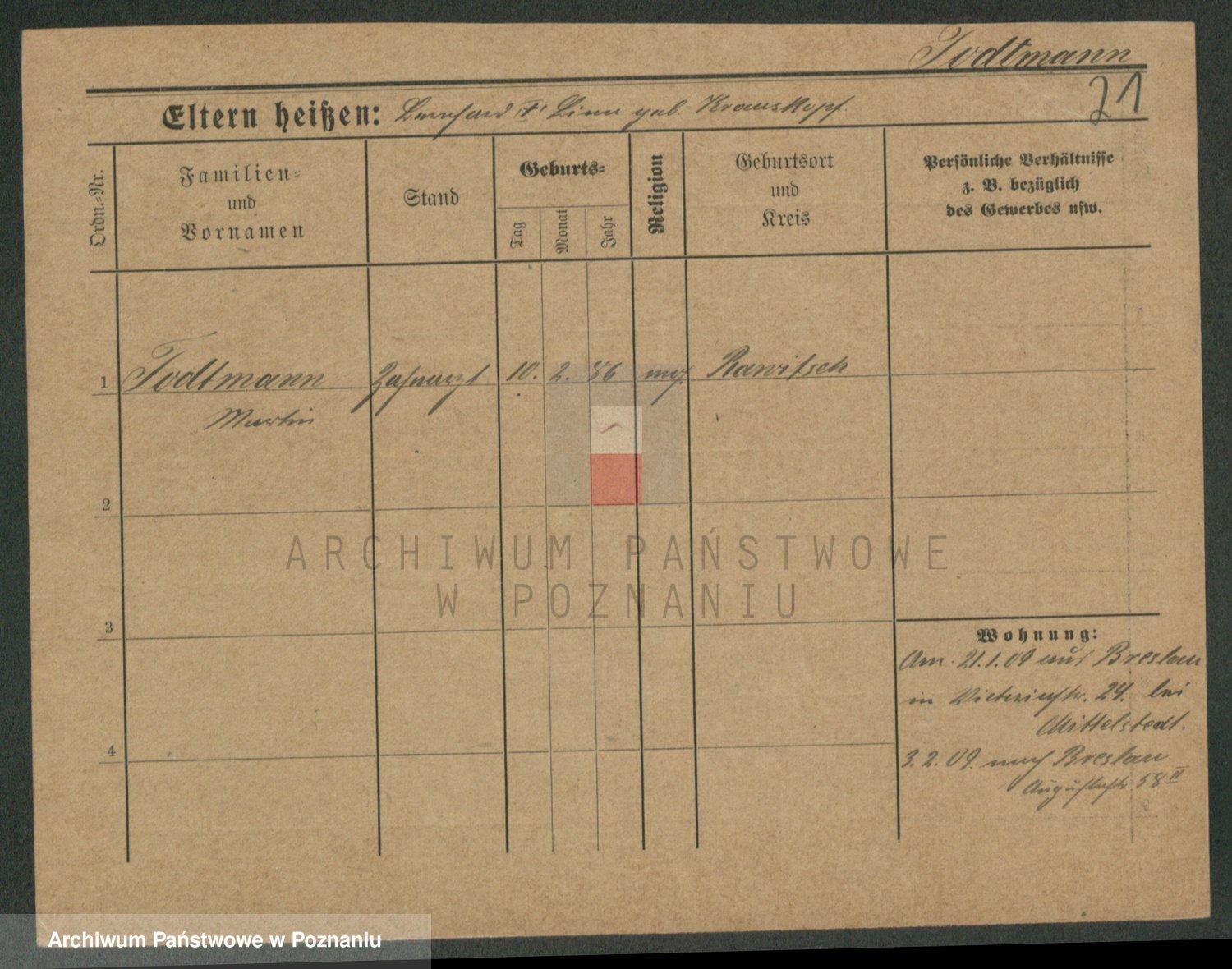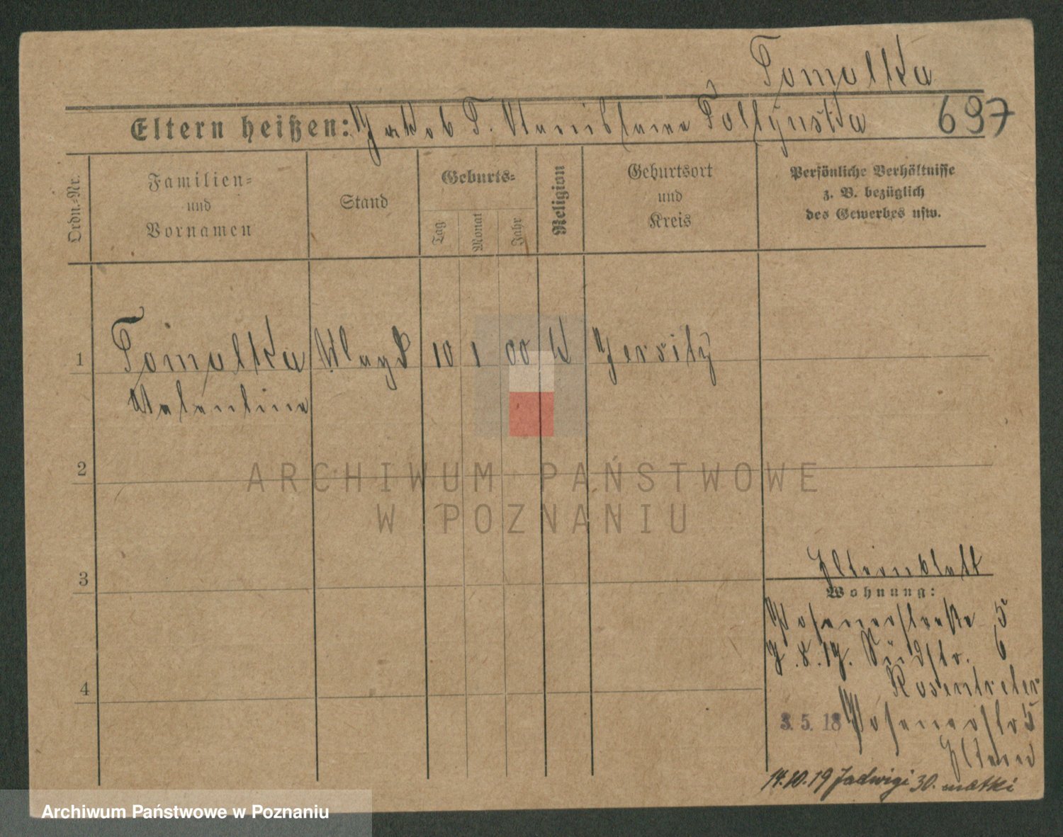 Podgląd karty osobowej dostępny jest po kliknięciu na nazwisko lub ikonkę karty. Można dokonywać powiększenia (ikony na górze) lub przechodzić między kolejnymi skanami (strzałki po bokach).
