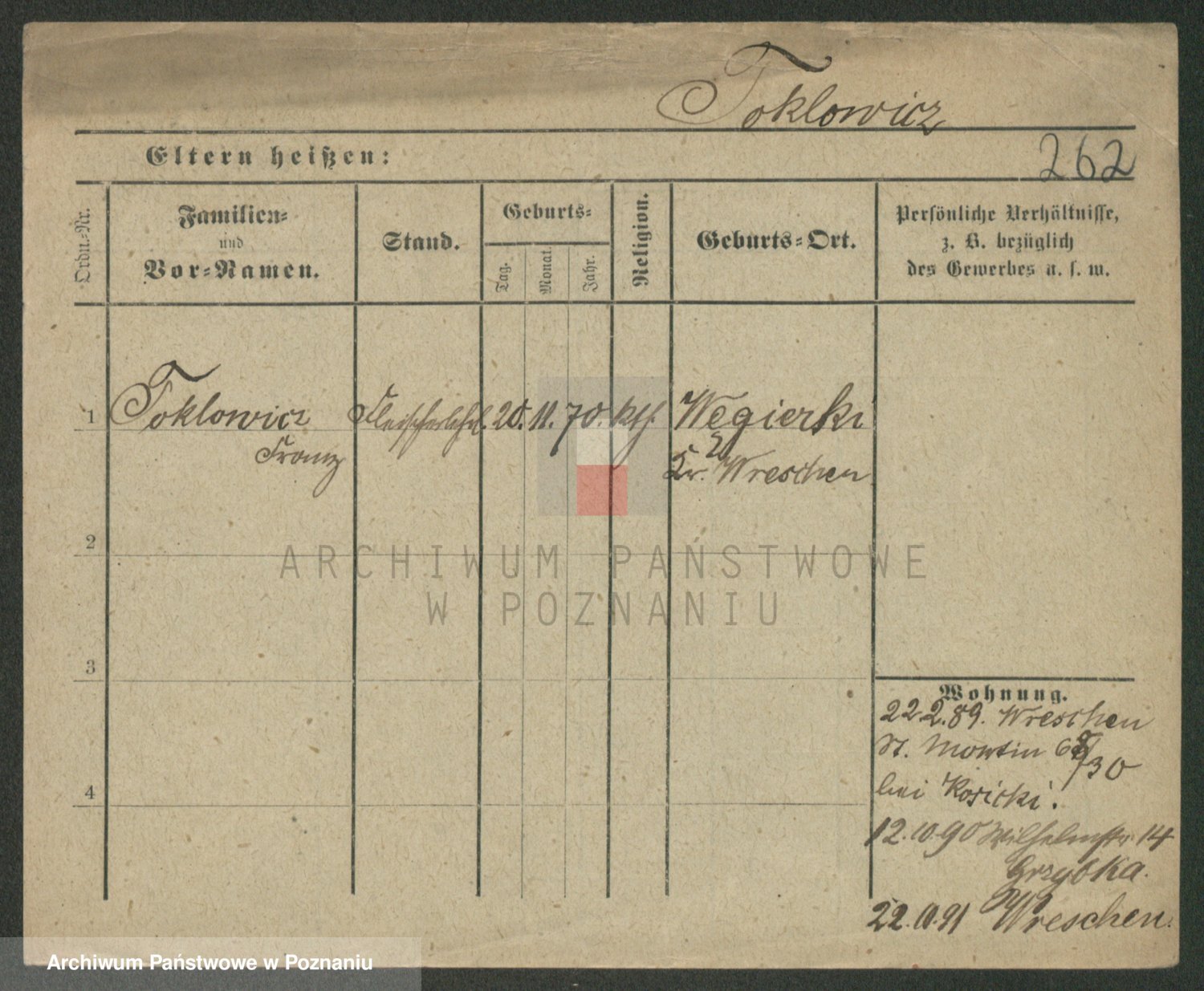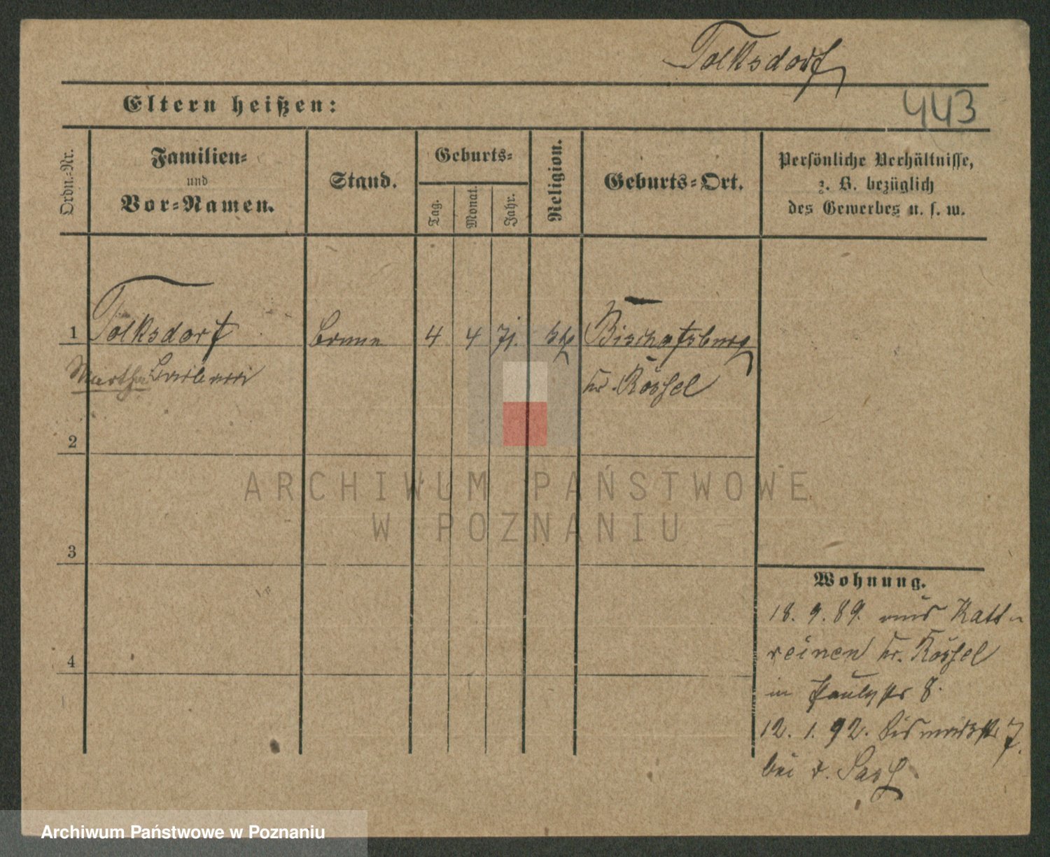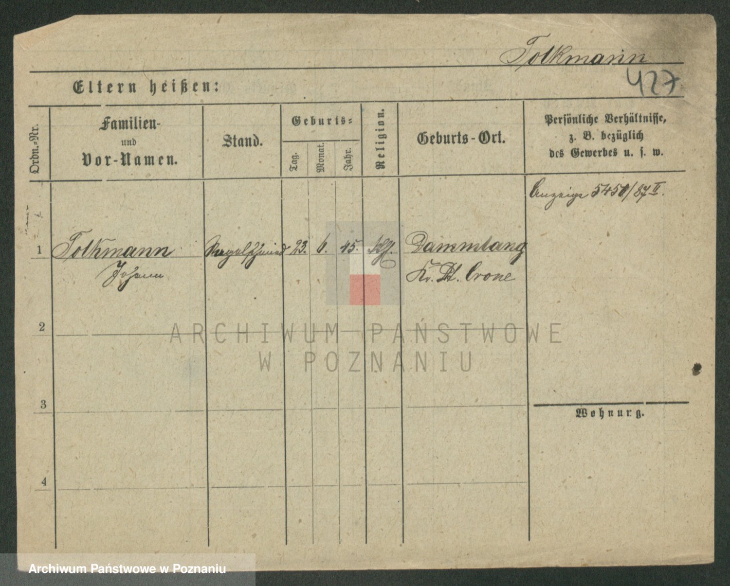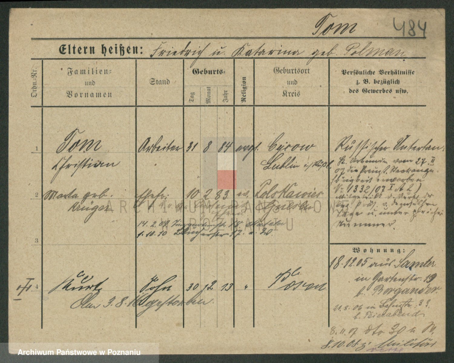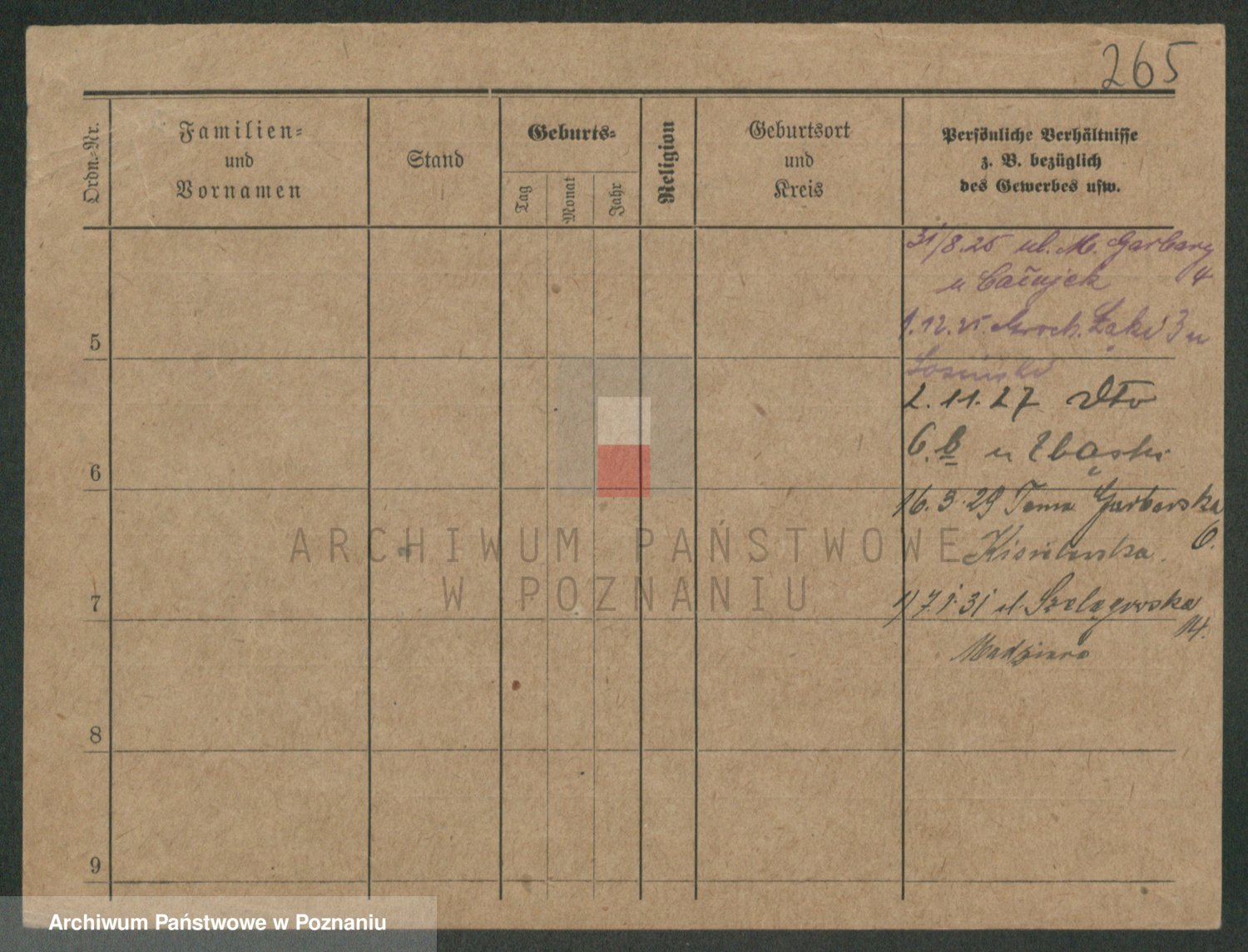 Podgląd karty osobowej dostępny jest po kliknięciu na nazwisko lub ikonkę karty. Można dokonywać powiększenia (ikony na górze) lub przechodzić między kolejnymi skanami (strzałki po bokach).