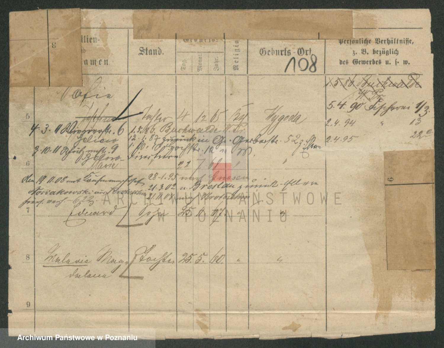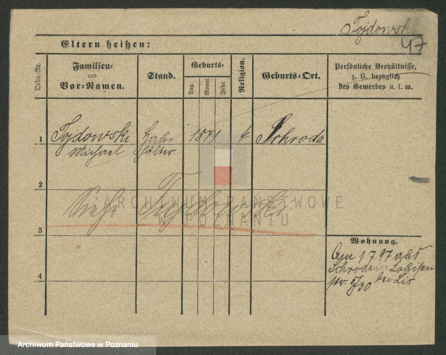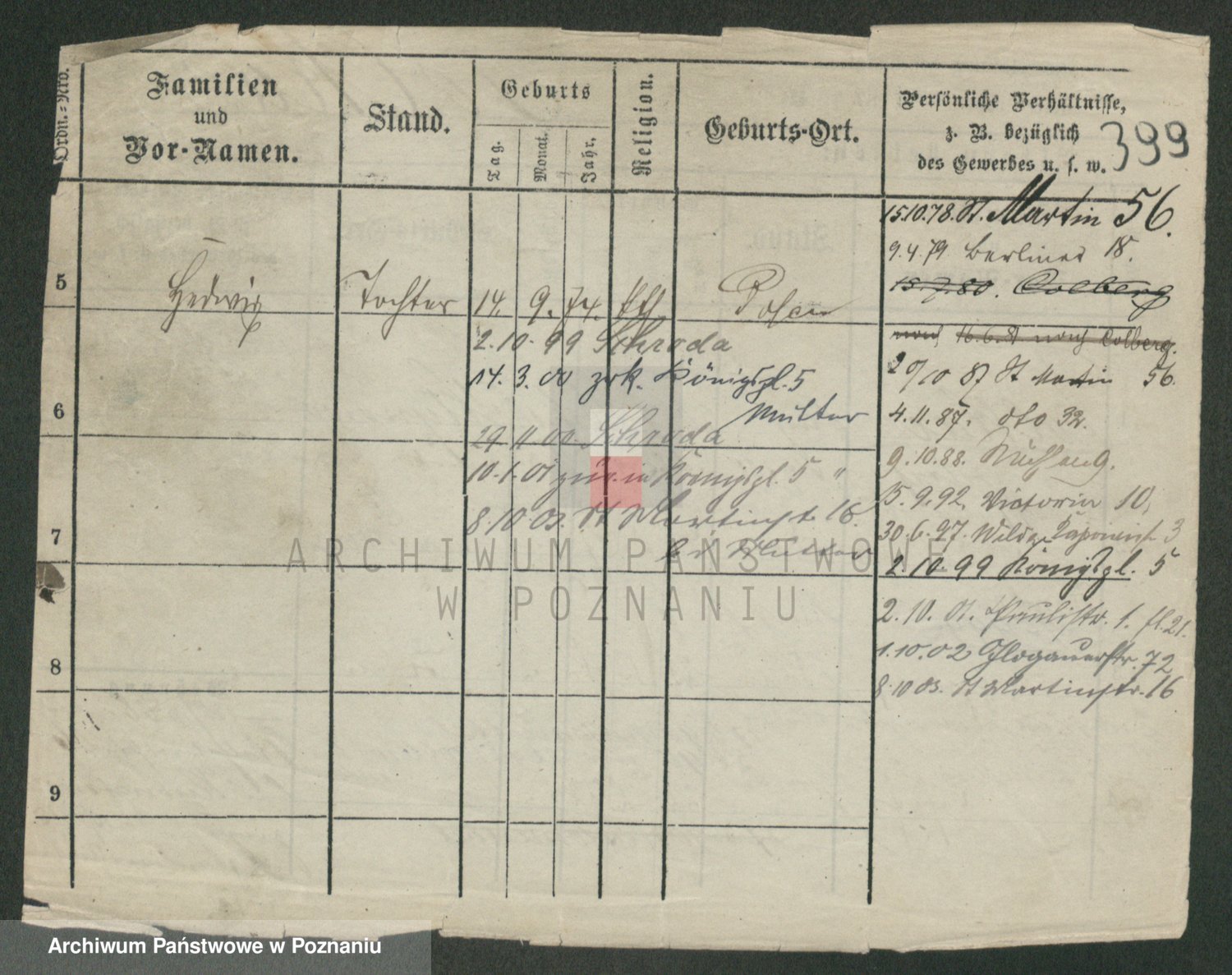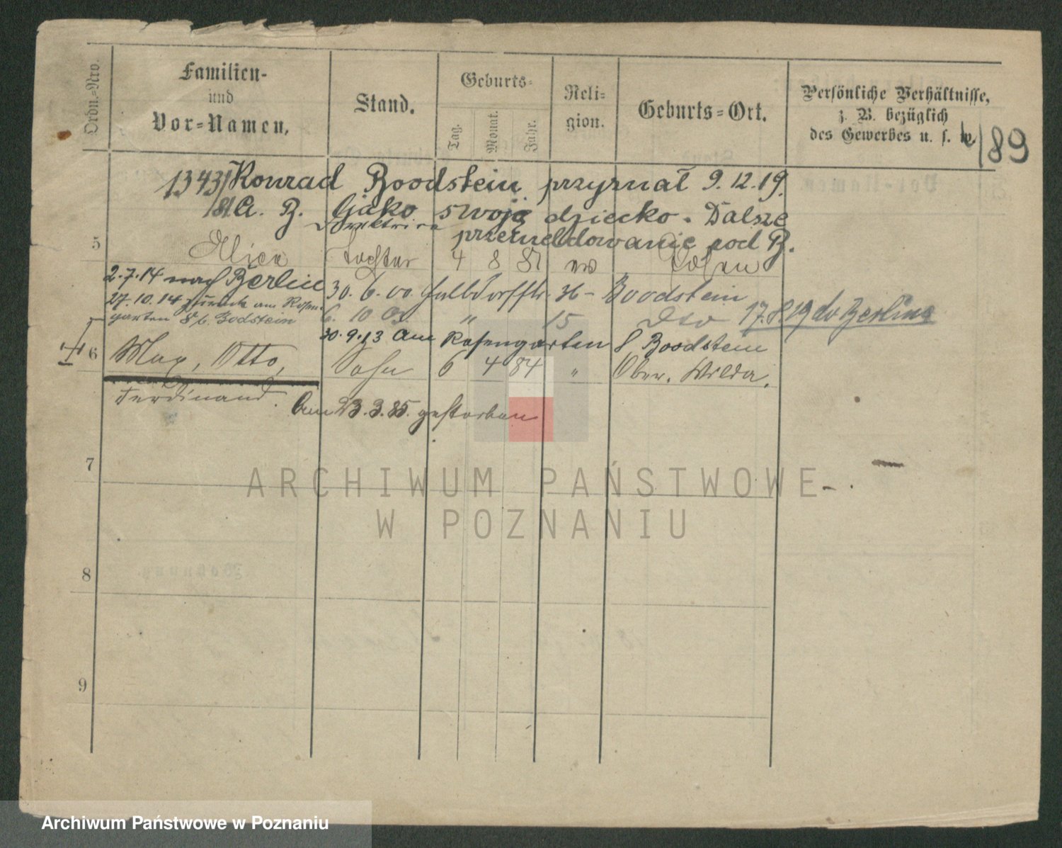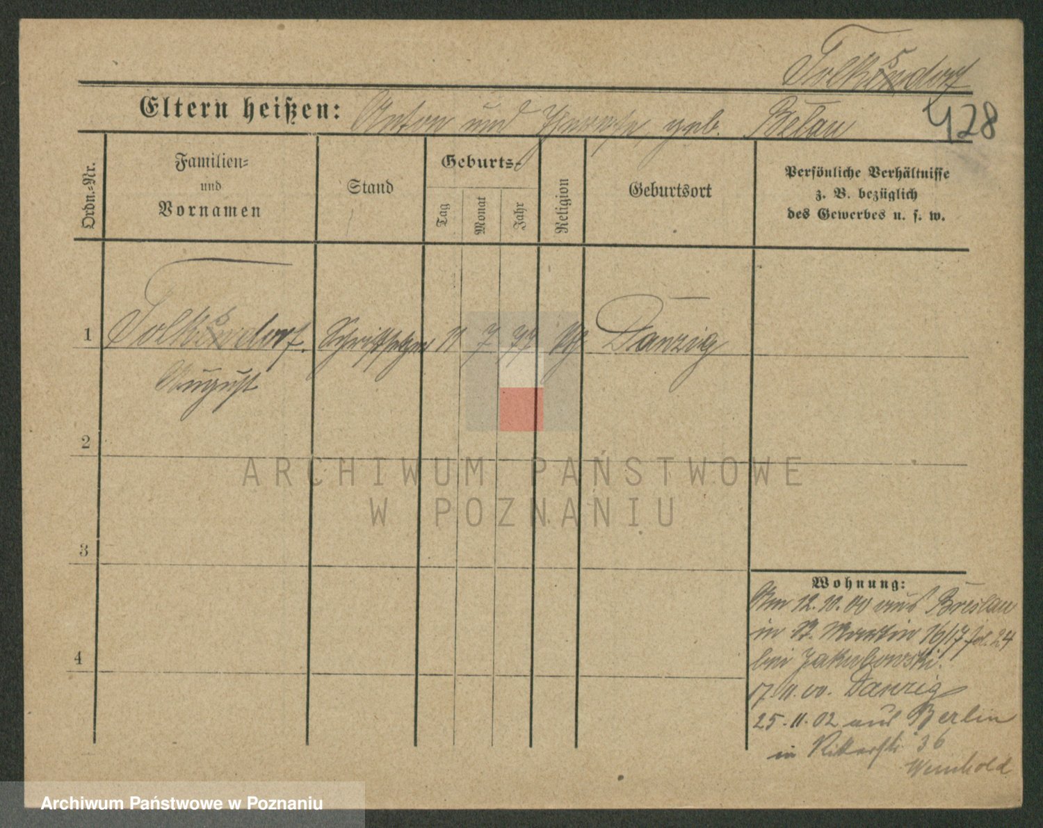 Podgląd karty osobowej dostępny jest po kliknięciu na nazwisko lub ikonkę karty. Można dokonywać powiększenia (ikony na górze) lub przechodzić między kolejnymi skanami (strzałki po bokach).