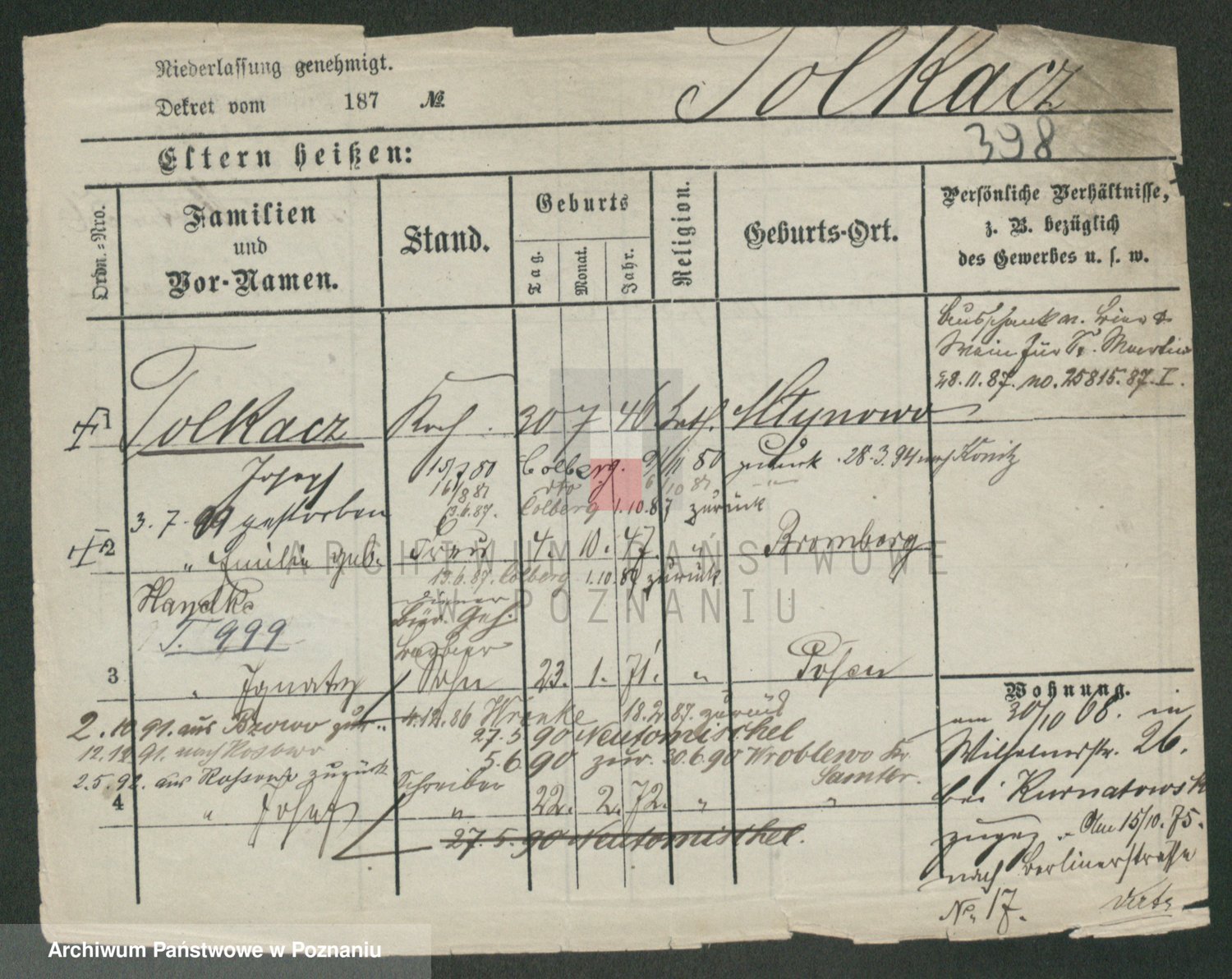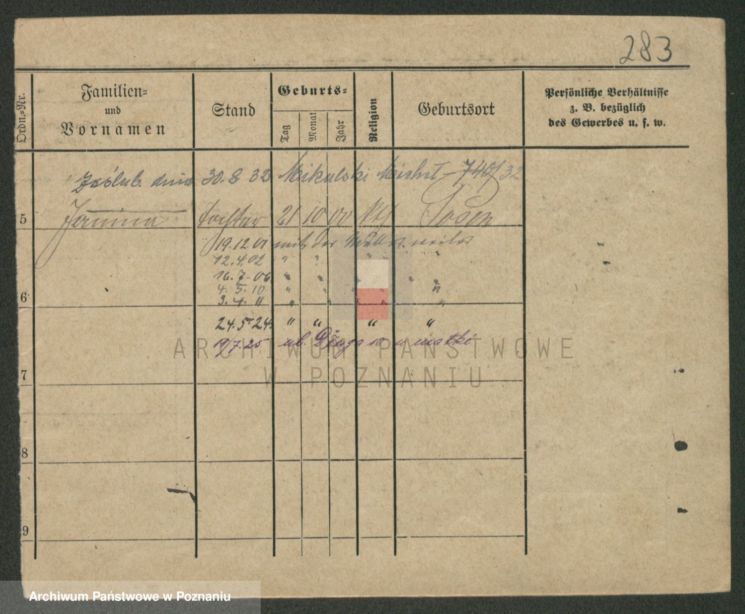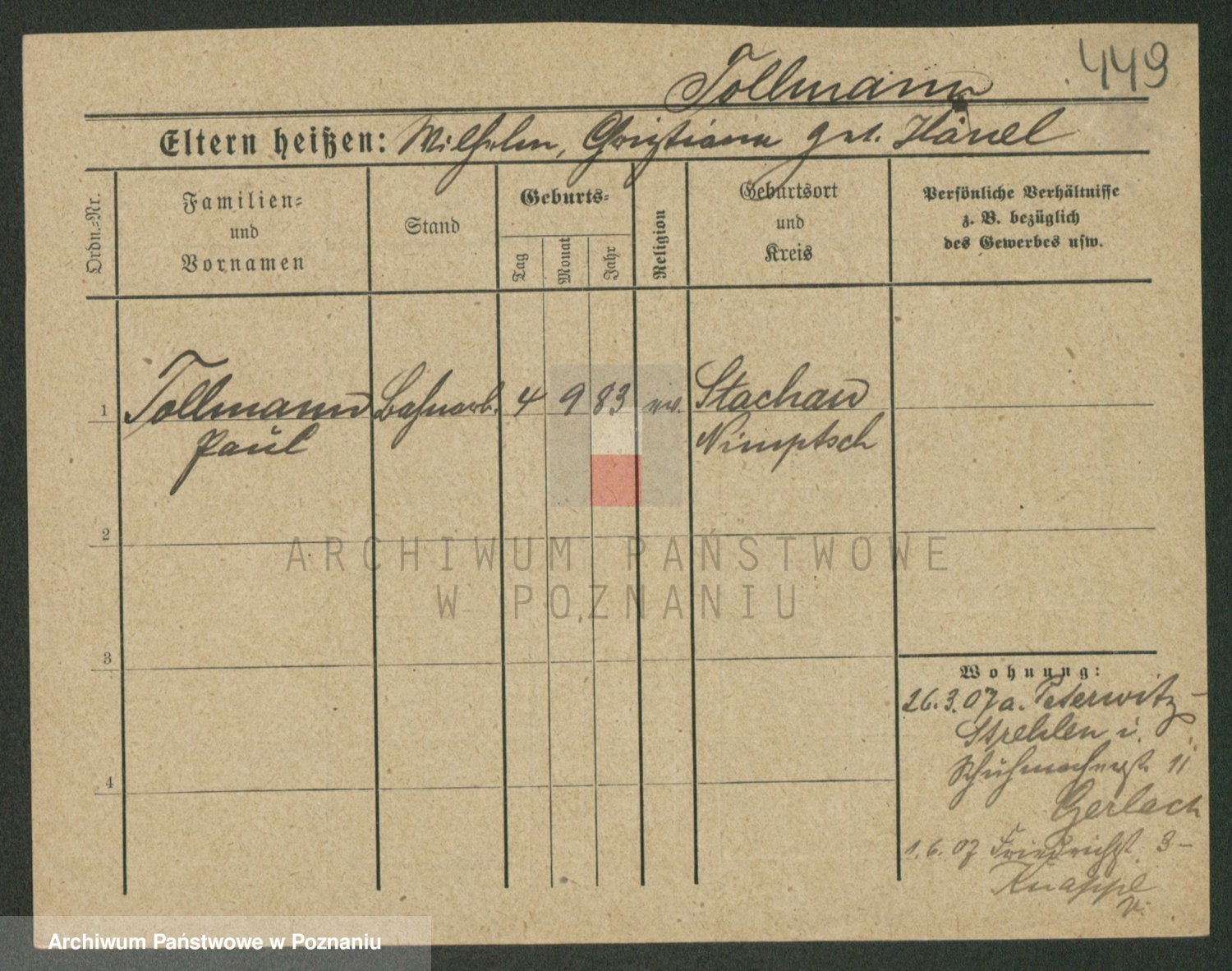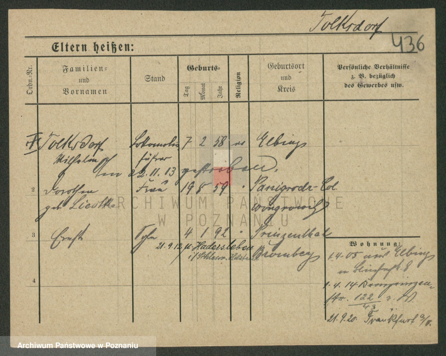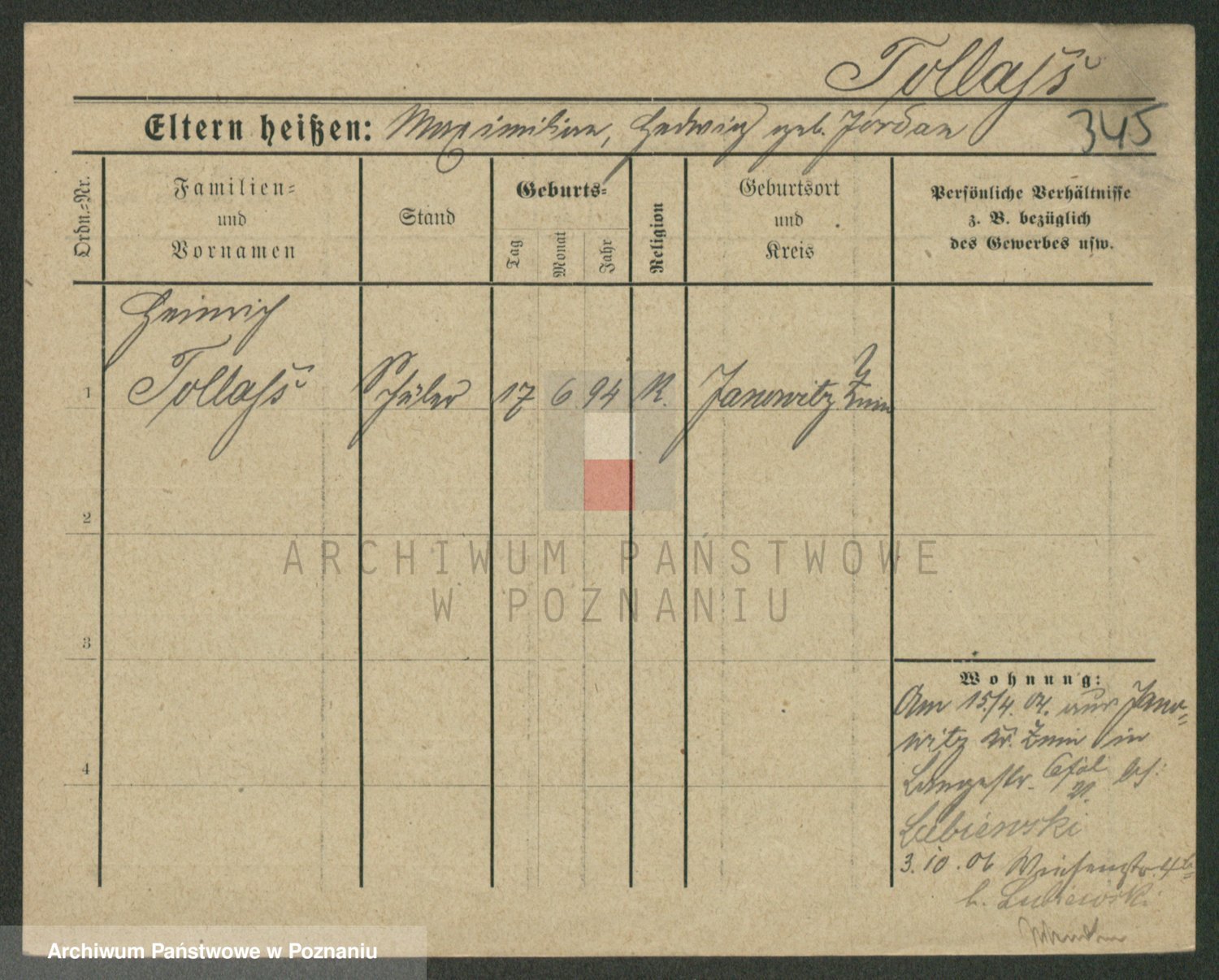 Podgląd karty osobowej dostępny jest po kliknięciu na nazwisko lub ikonkę karty. Można dokonywać powiększenia (ikony na górze) lub przechodzić między kolejnymi skanami (strzałki po bokach).