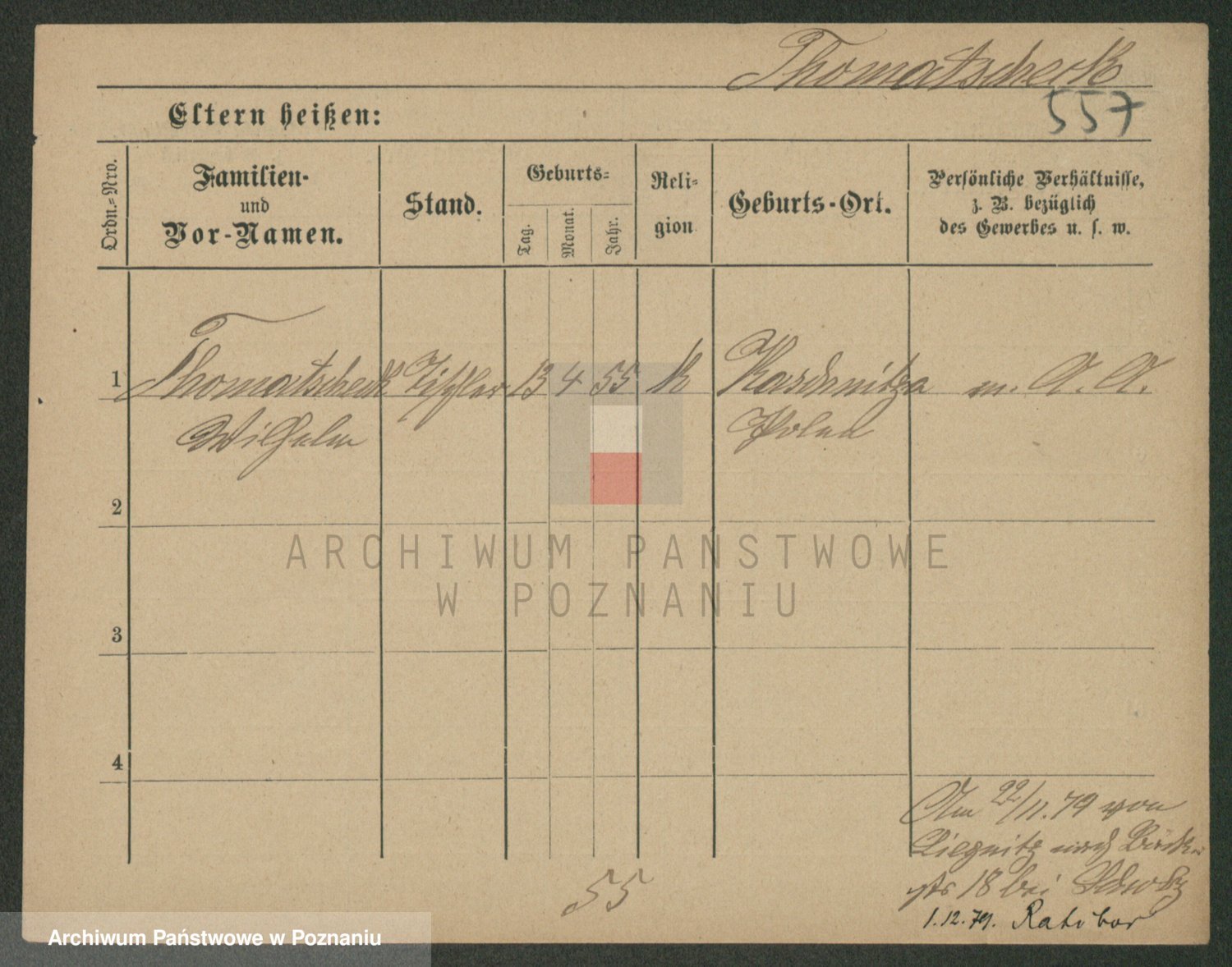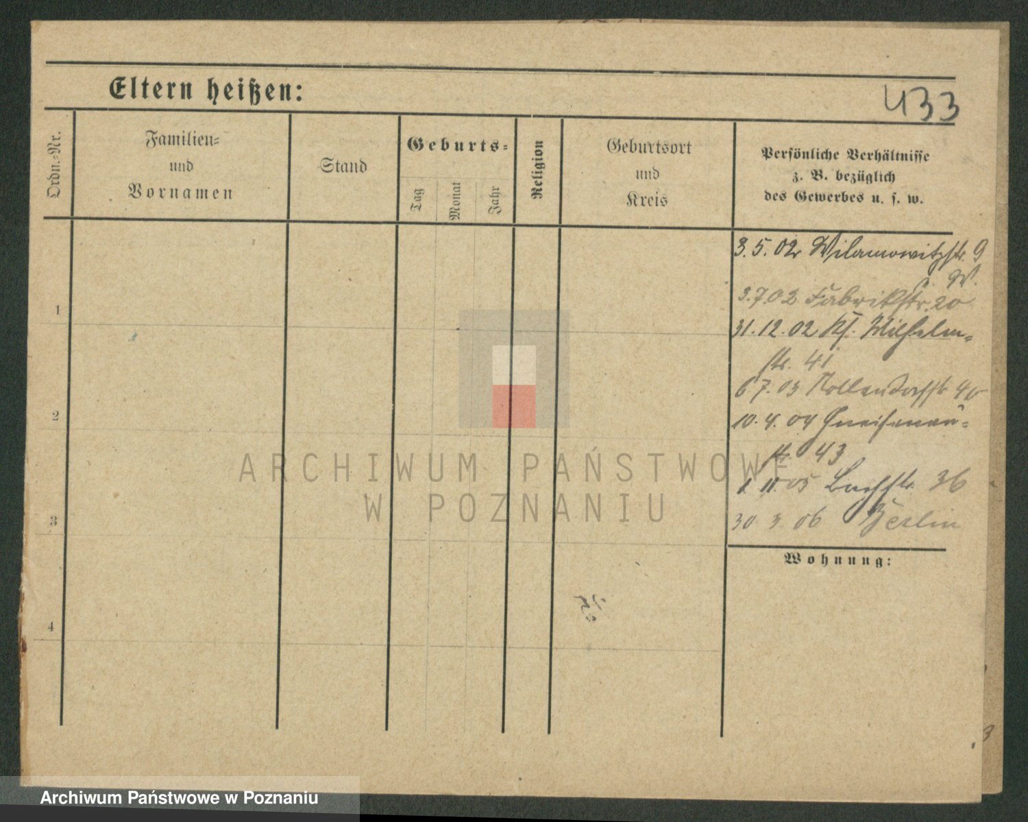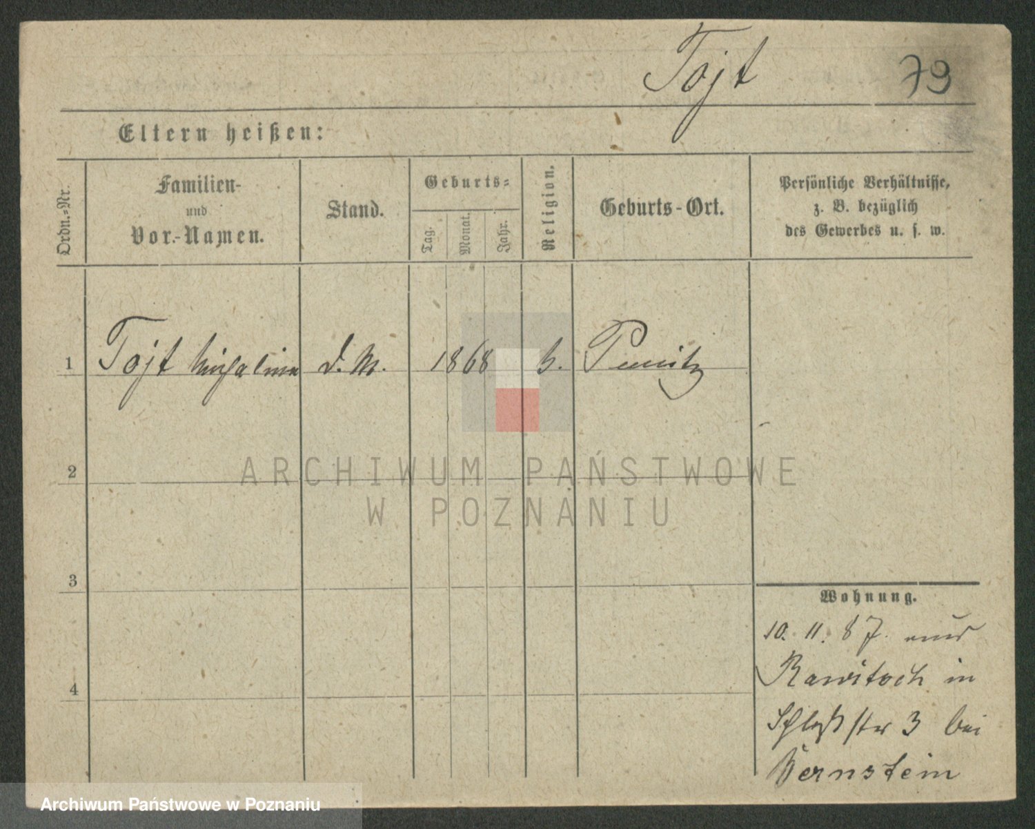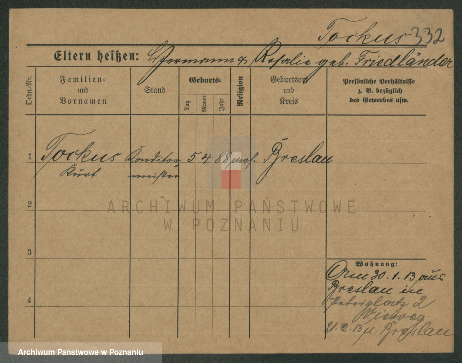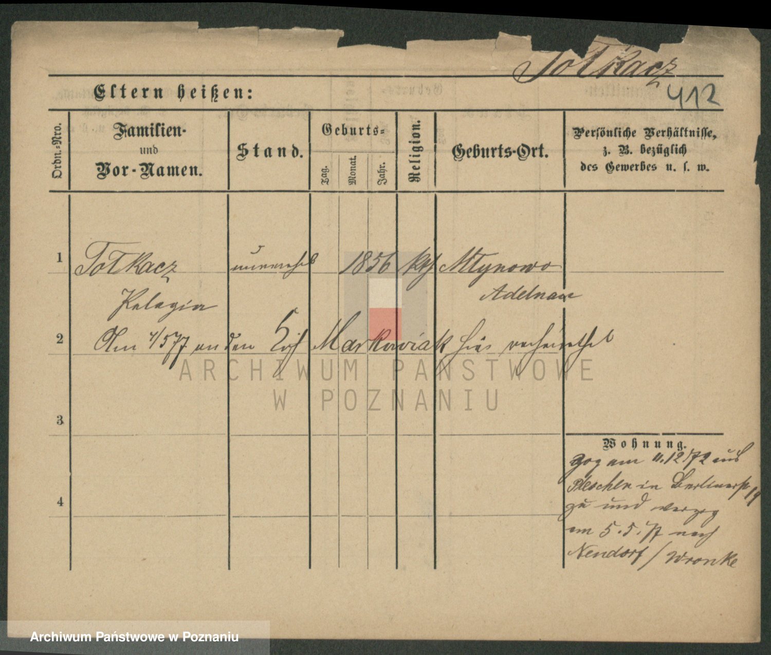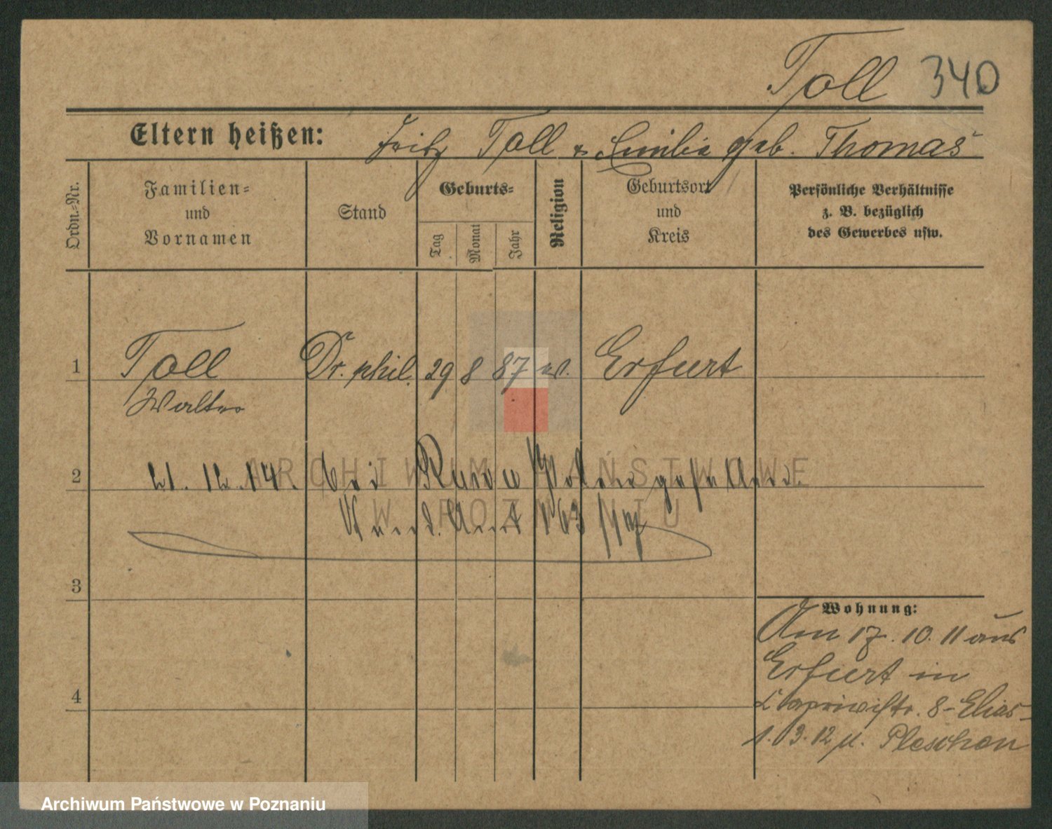 Podgląd karty osobowej dostępny jest po kliknięciu na nazwisko lub ikonkę karty. Można dokonywać powiększenia (ikony na górze) lub przechodzić między kolejnymi skanami (strzałki po bokach).