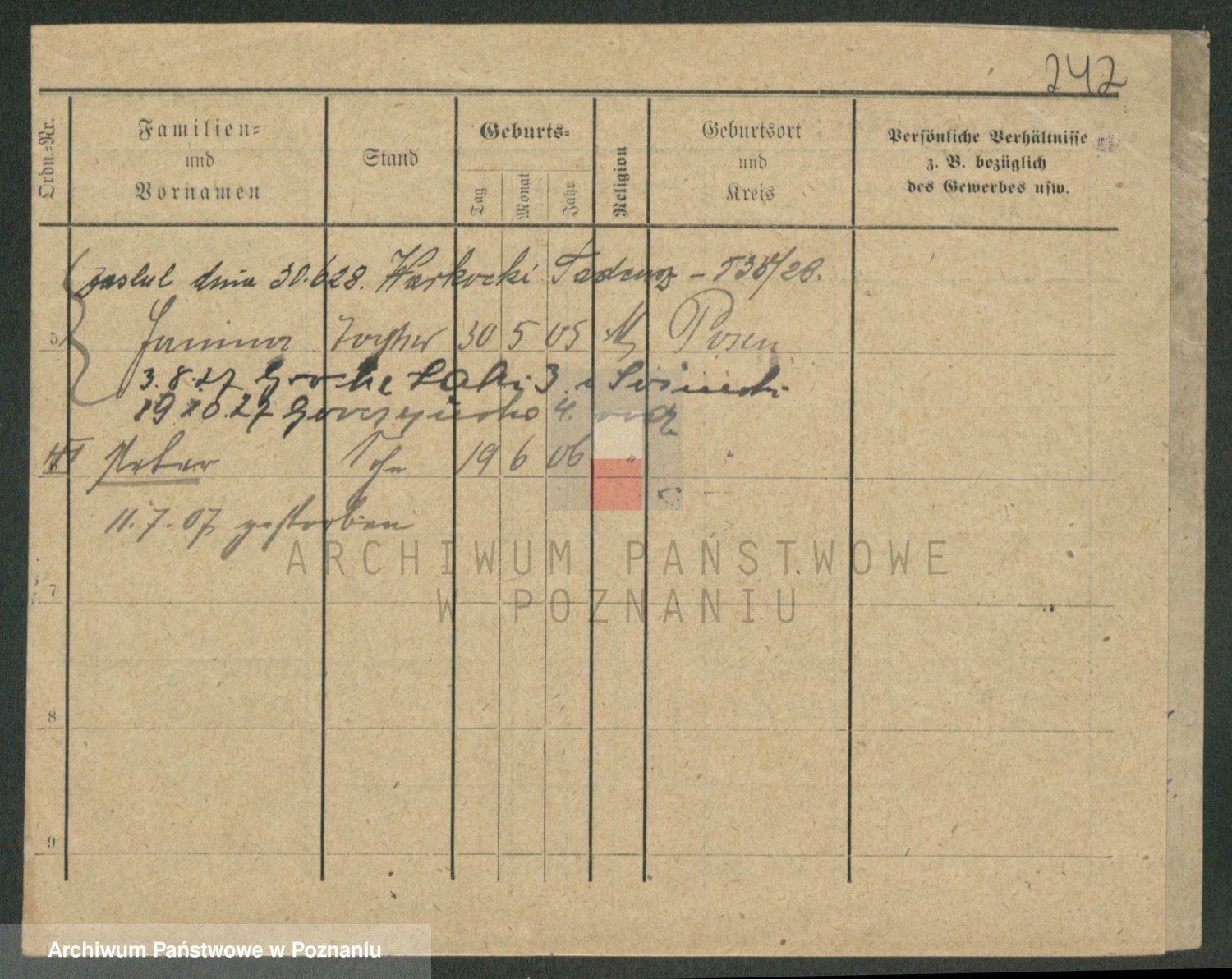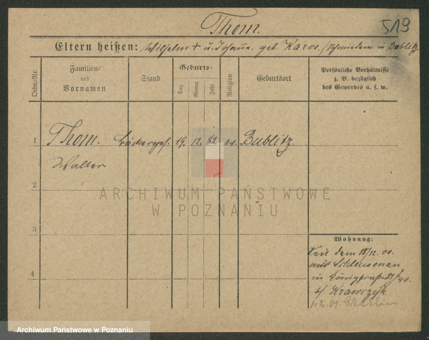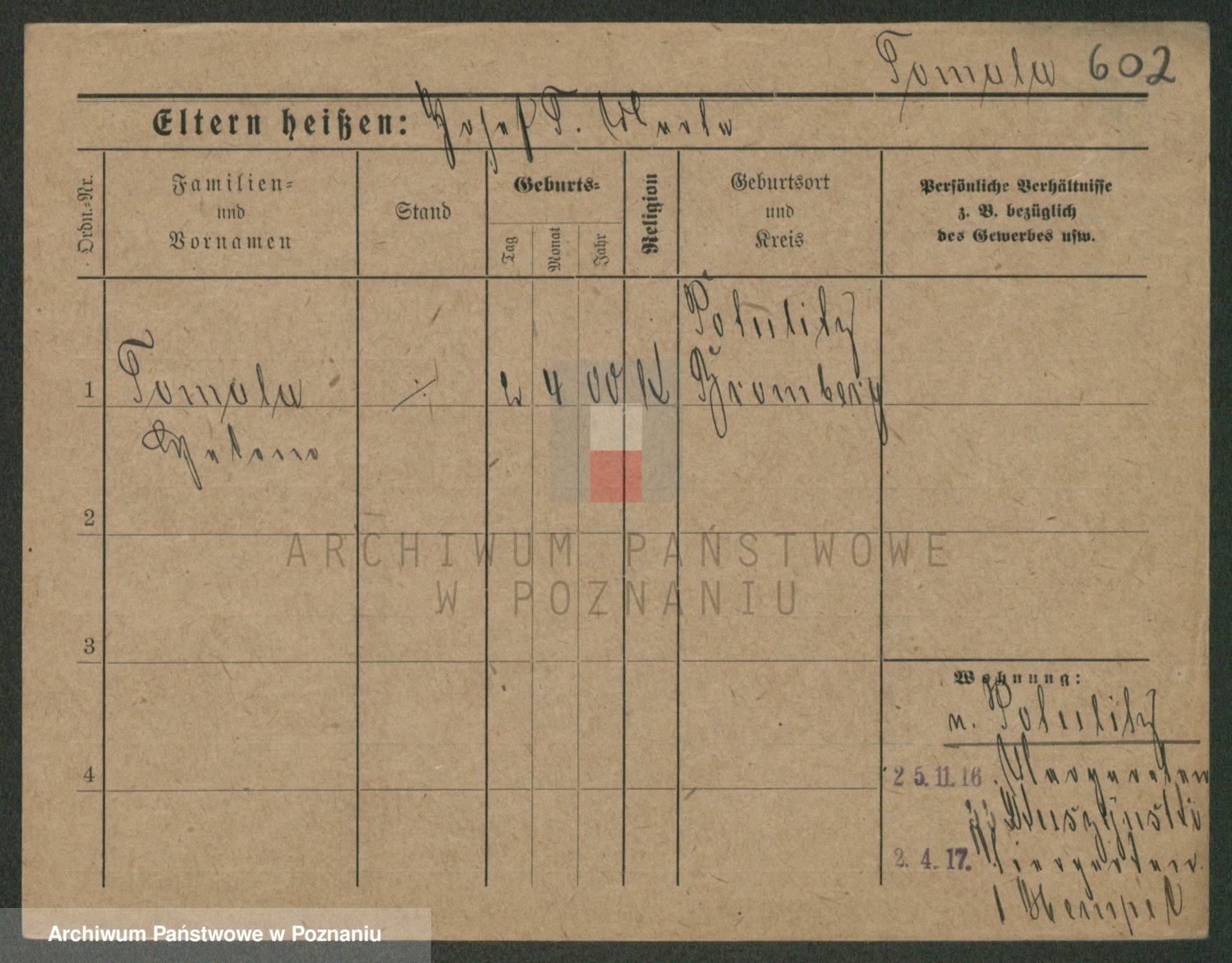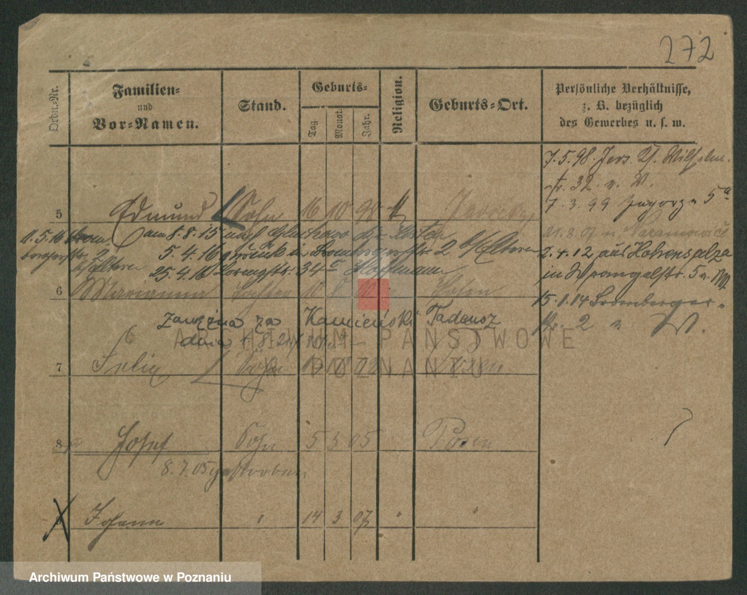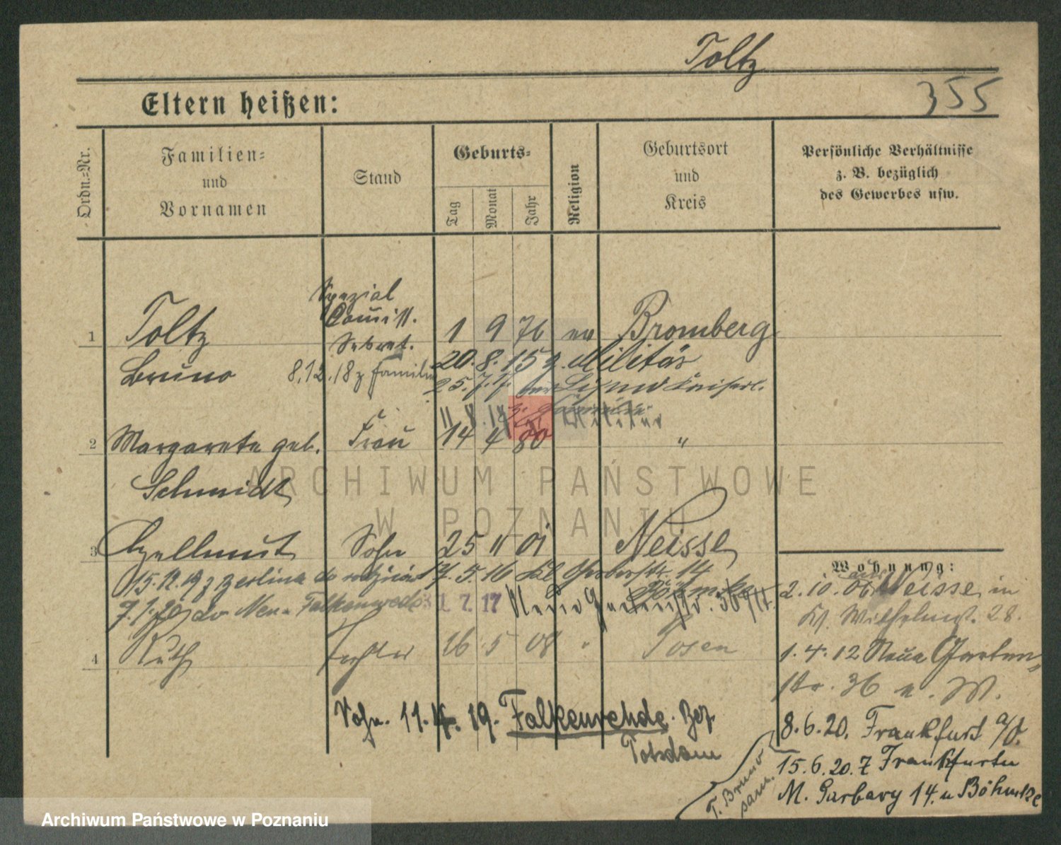 Podgląd karty osobowej dostępny jest po kliknięciu na nazwisko lub ikonkę karty. Można dokonywać powiększenia (ikony na górze) lub przechodzić między kolejnymi skanami (strzałki po bokach).