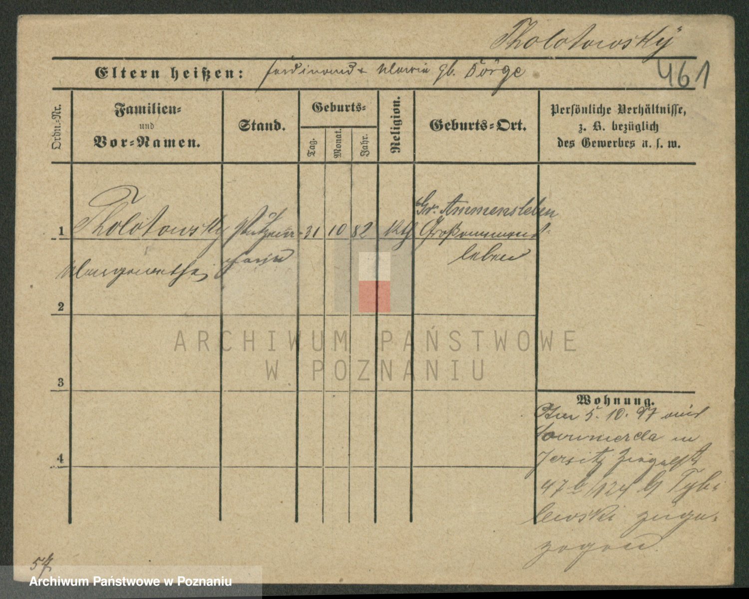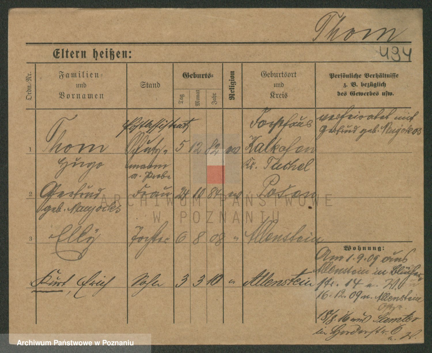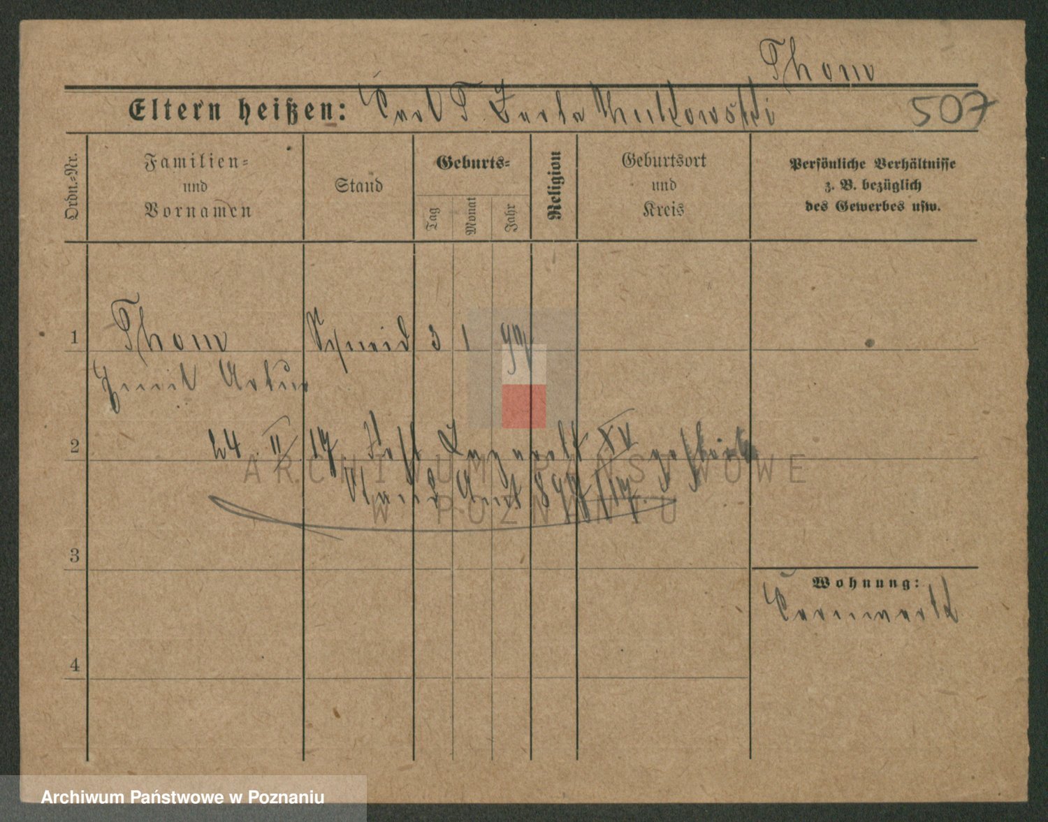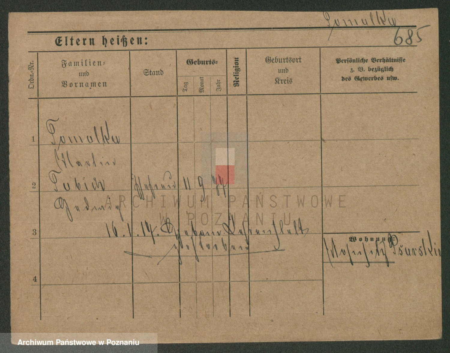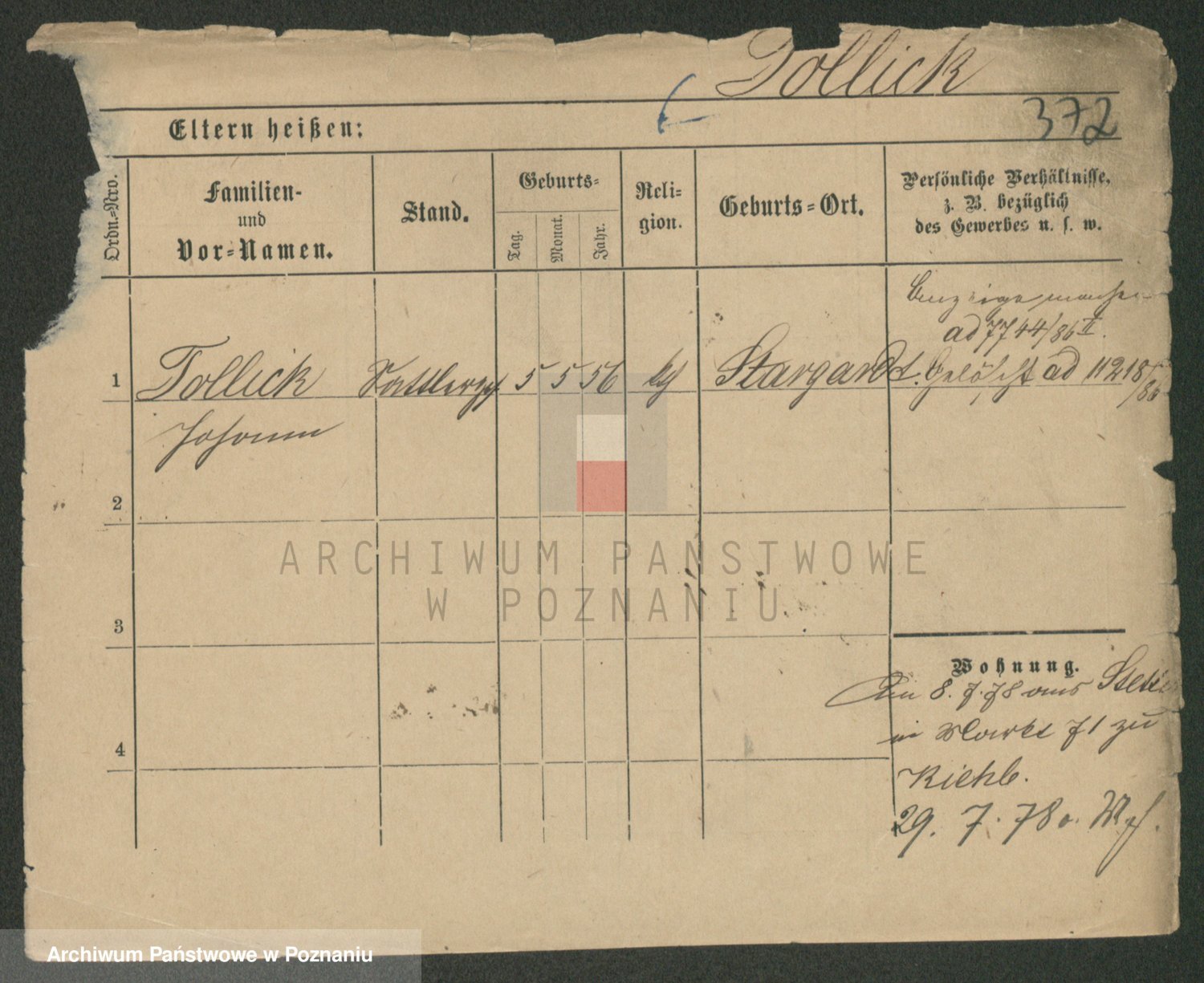 Podgląd karty osobowej dostępny jest po kliknięciu na nazwisko lub ikonkę karty. Można dokonywać powiększenia (ikony na górze) lub przechodzić między kolejnymi skanami (strzałki po bokach).