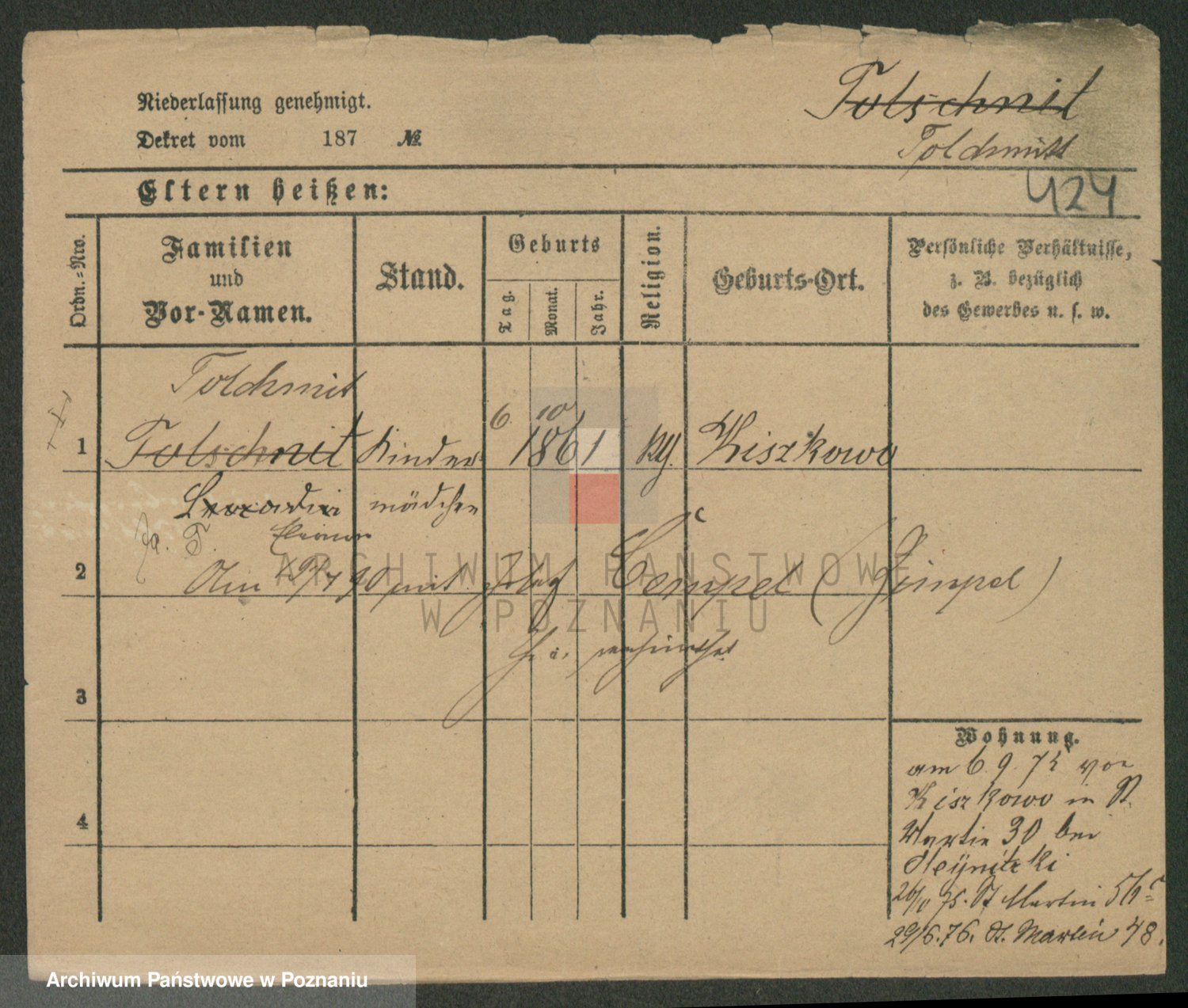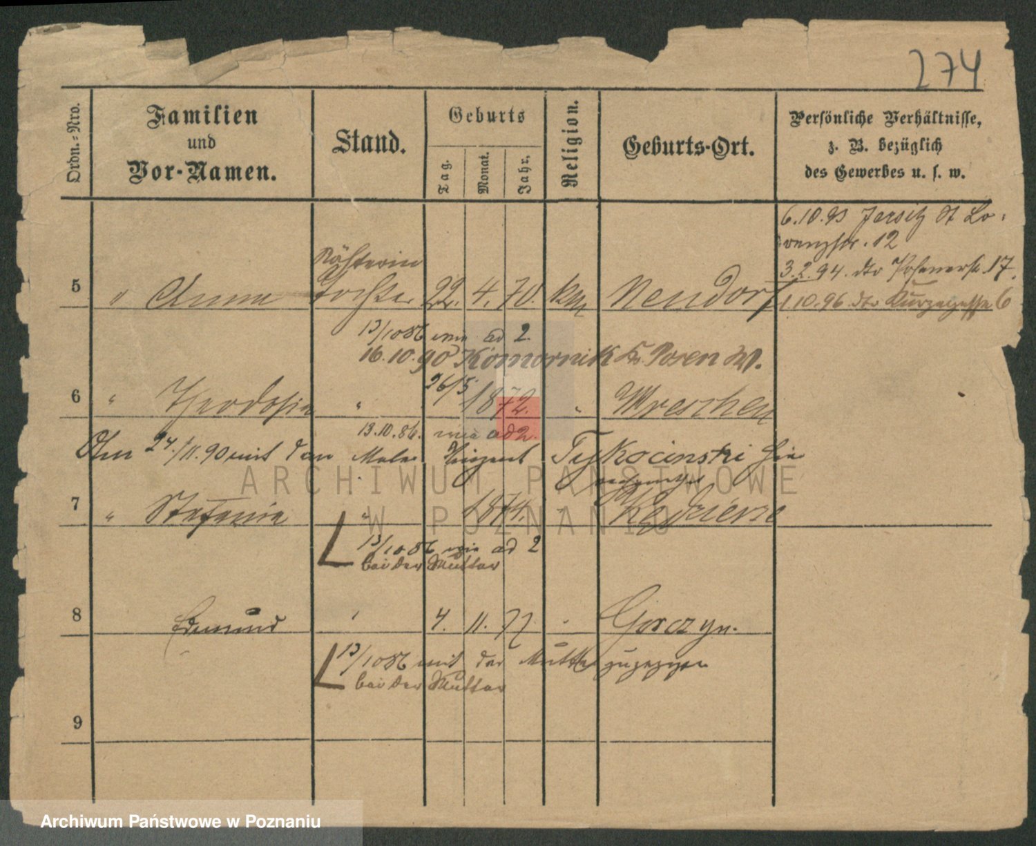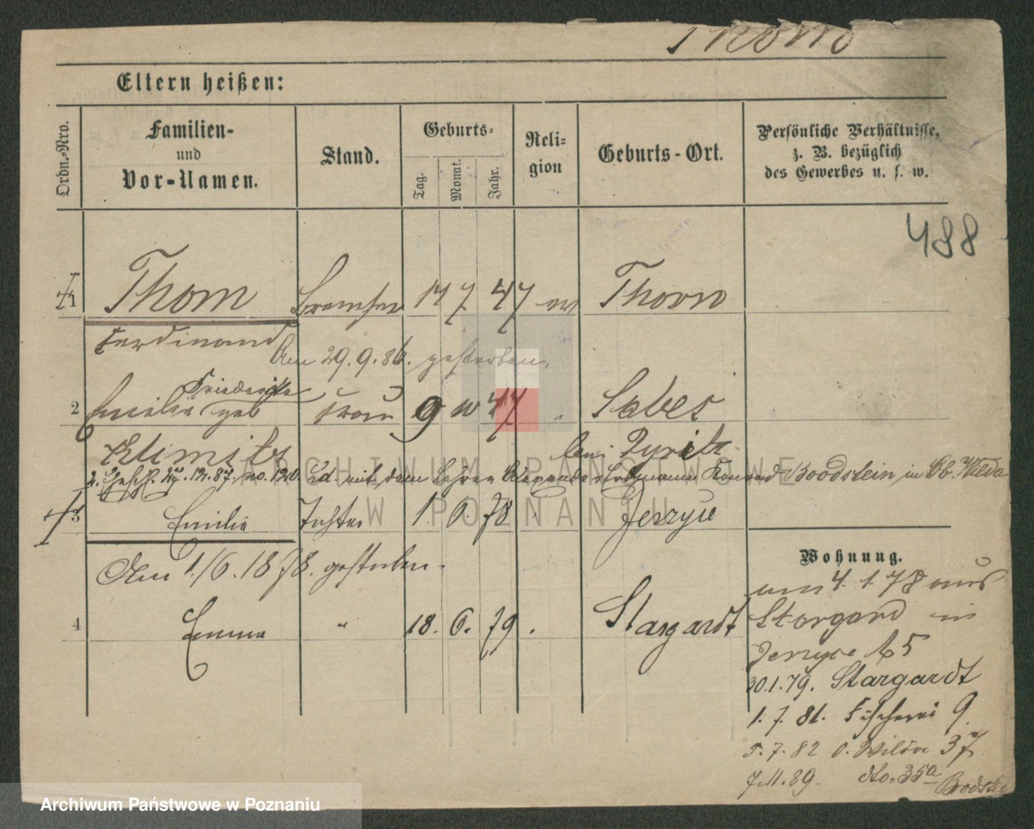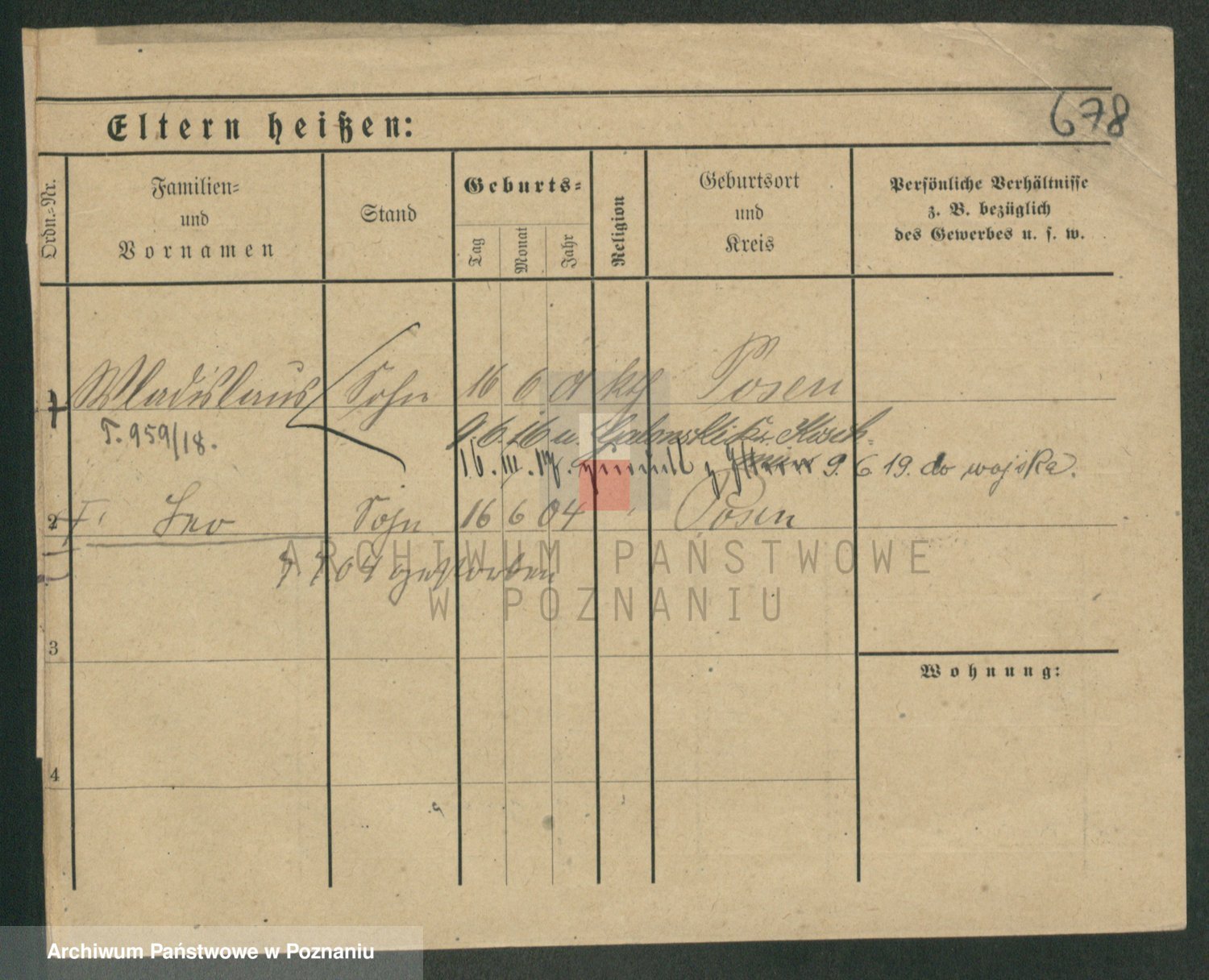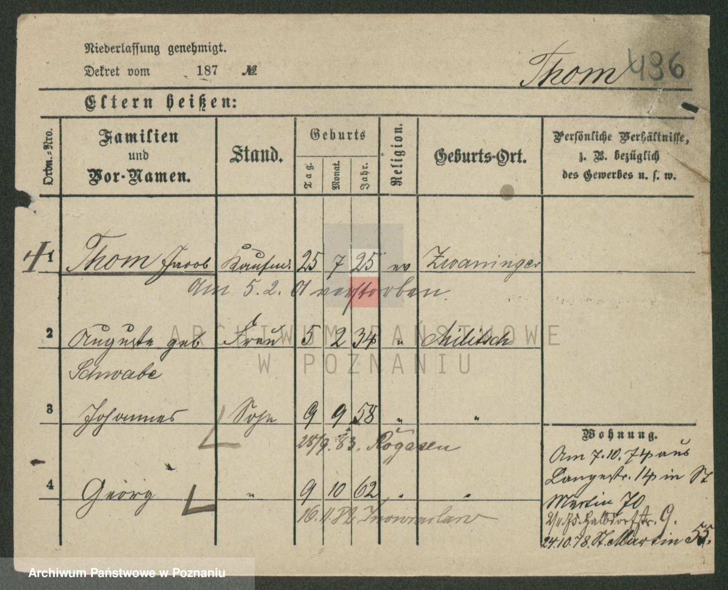 Podgląd karty osobowej dostępny jest po kliknięciu na nazwisko lub ikonkę karty. Można dokonywać powiększenia (ikony na górze) lub przechodzić między kolejnymi skanami (strzałki po bokach).