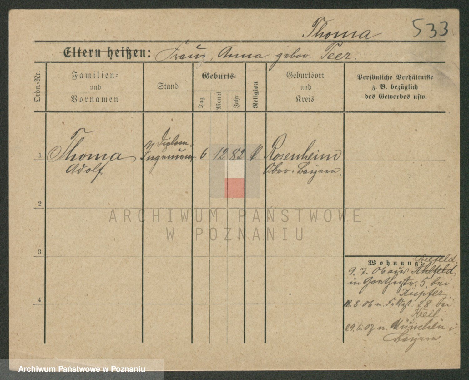 Thomanek zd. Röhnert, Marie Agnes Elisabeth