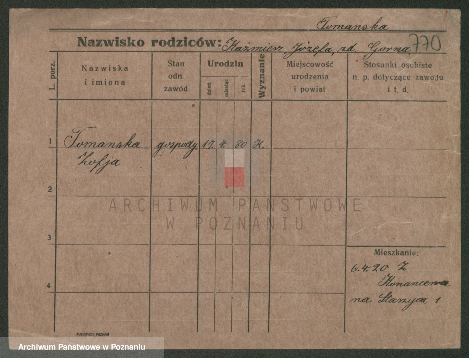 Tomanski zd. Stachowiak, Stanislawa