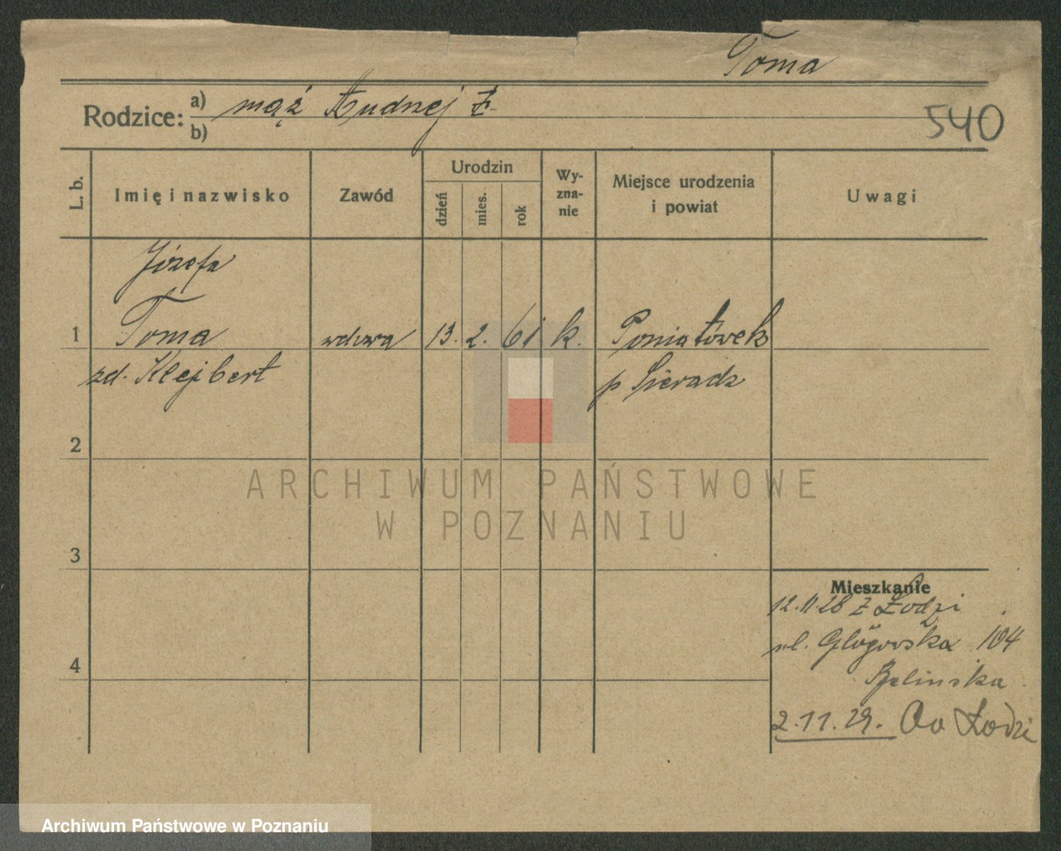 Tomańska zd. Górna, Józefa