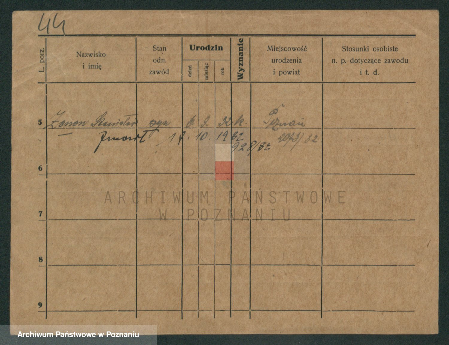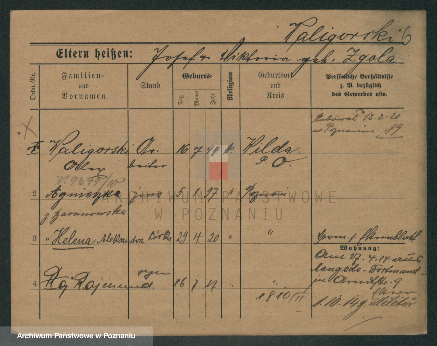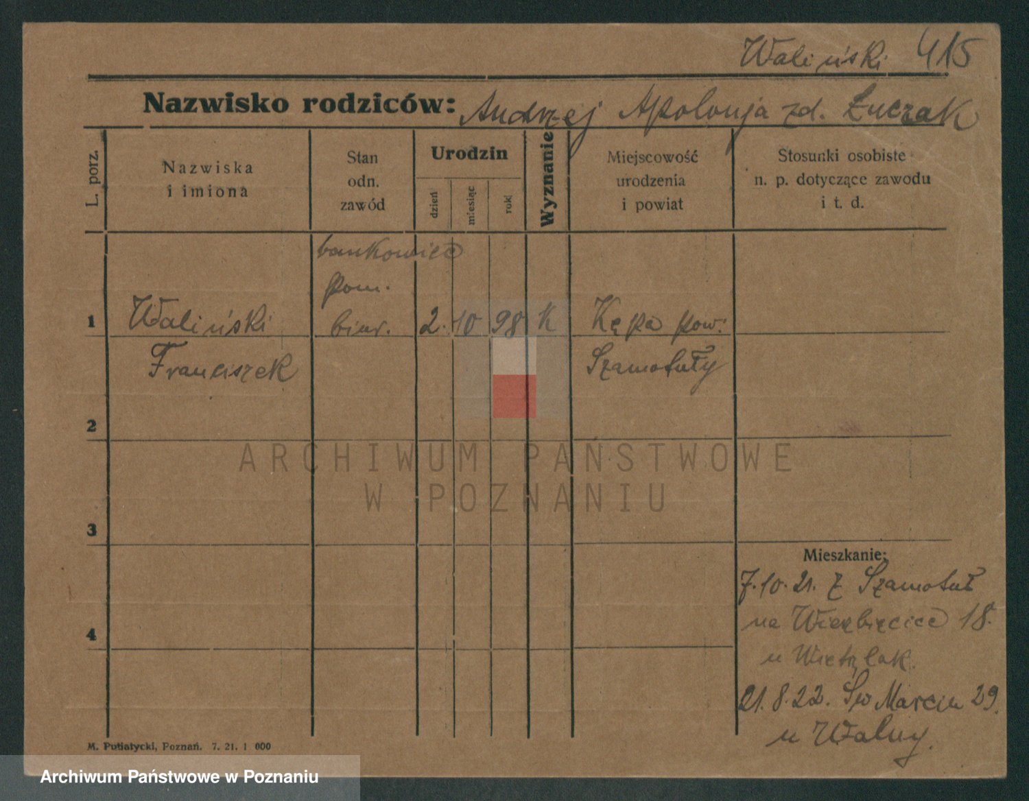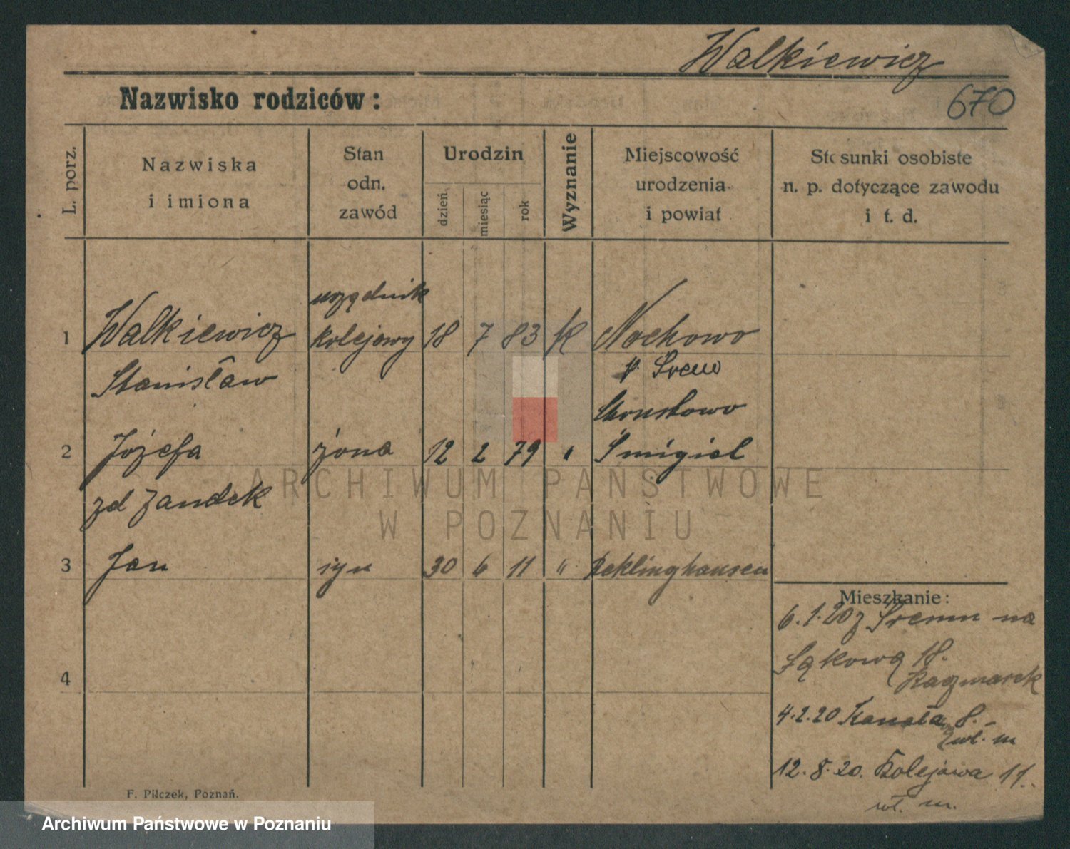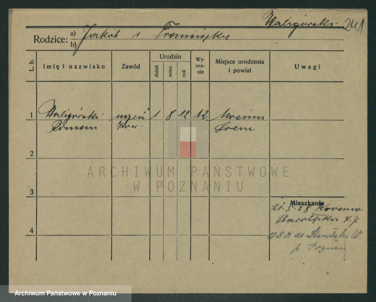 Podgląd karty osobowej dostępny jest po kliknięciu na nazwisko lub ikonkę karty. Można dokonywać powiększenia (ikony na górze) lub przechodzić między kolejnymi skanami (strzałki po bokach).