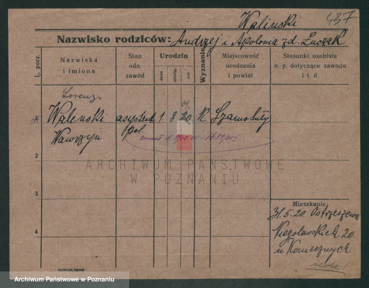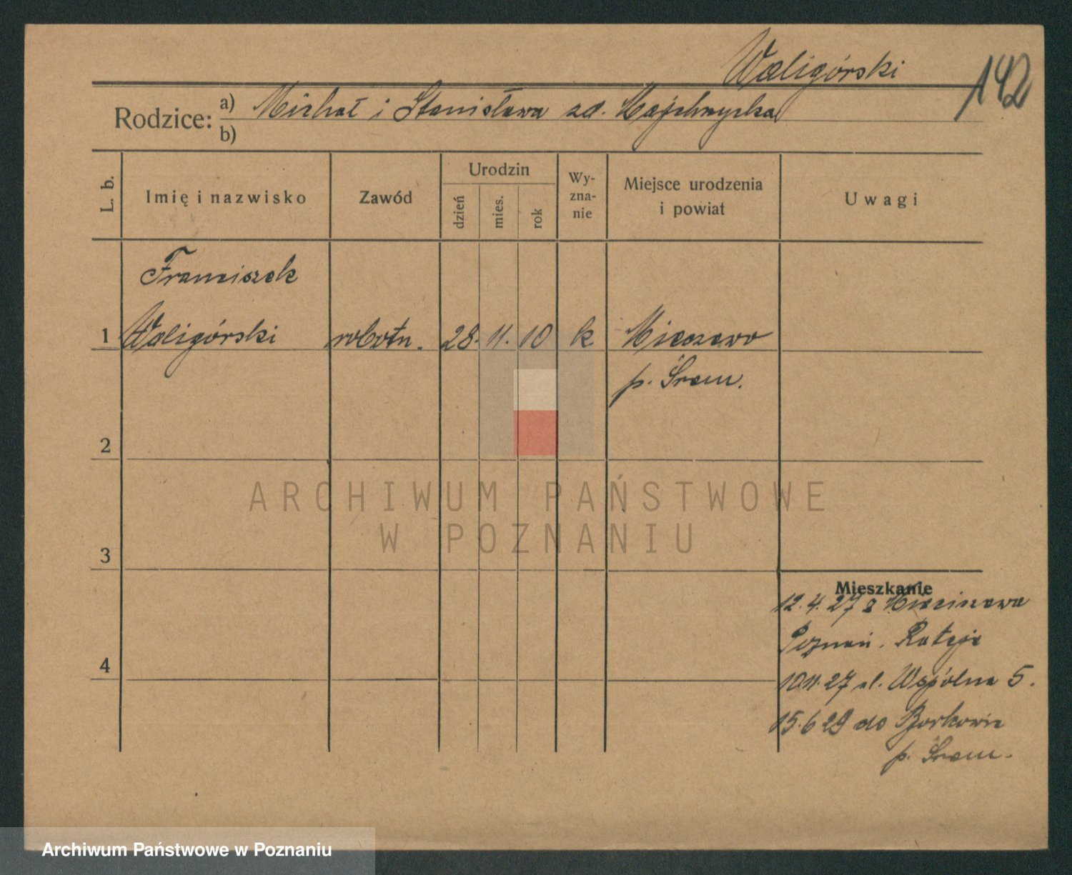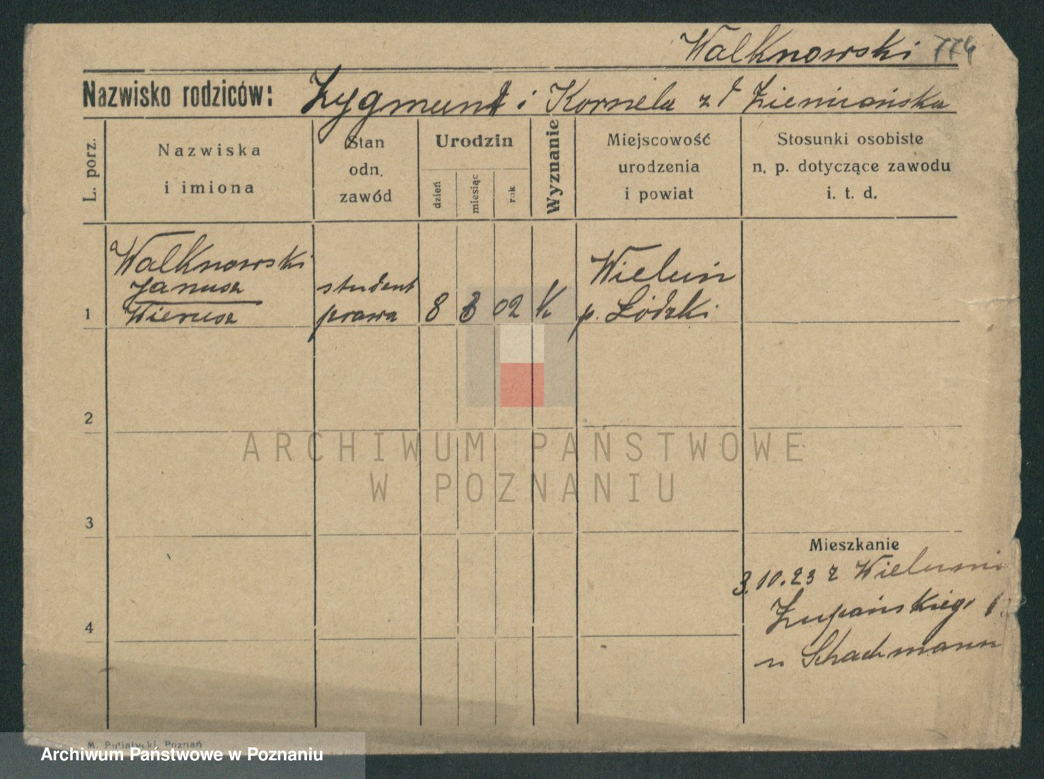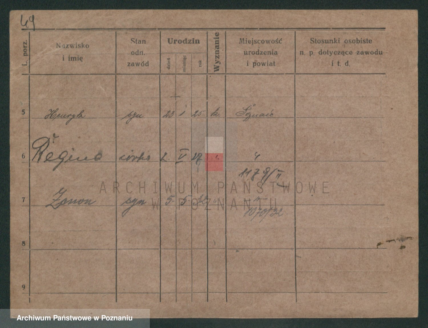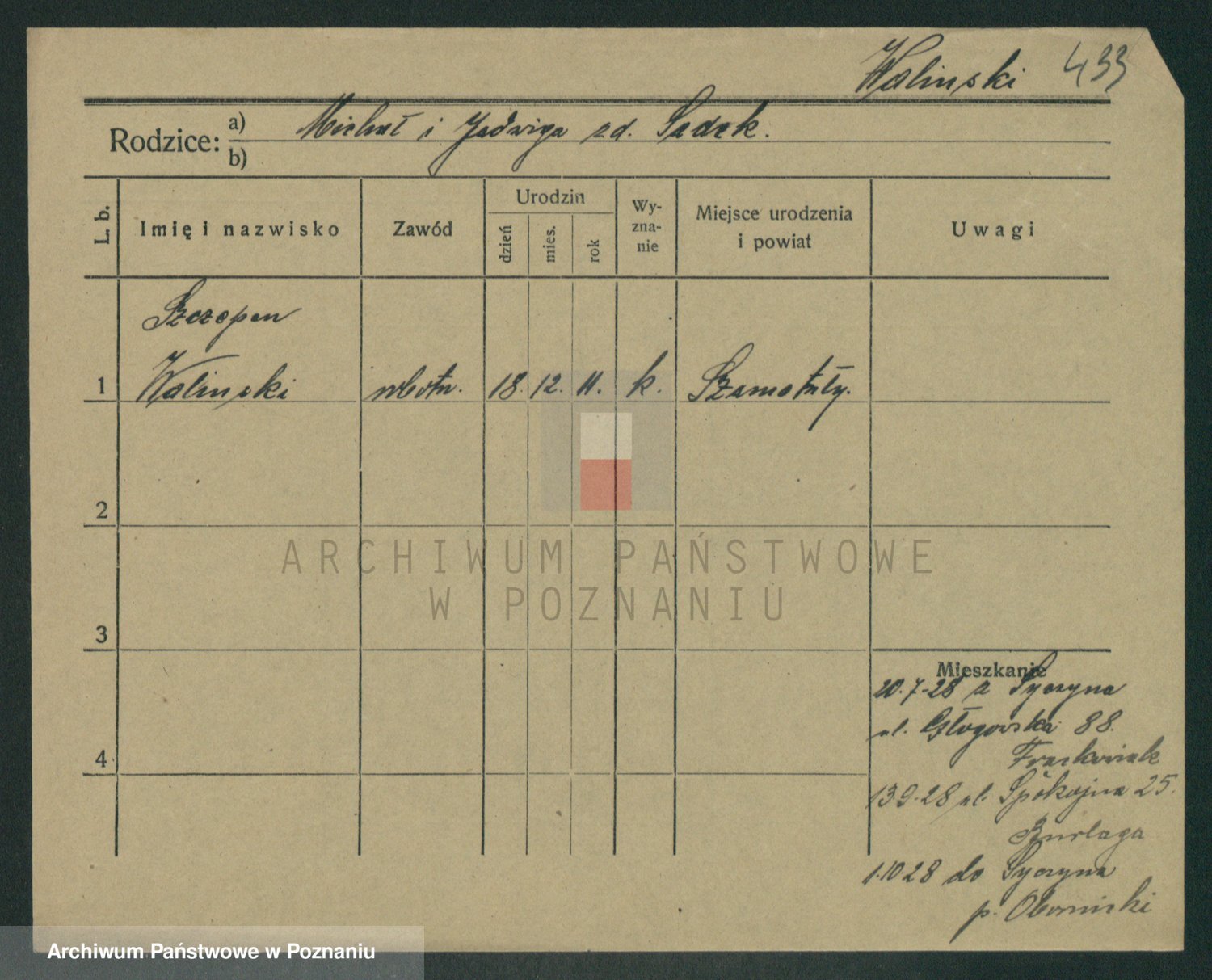 Podgląd karty osobowej dostępny jest po kliknięciu na nazwisko lub ikonkę karty. Można dokonywać powiększenia (ikony na górze) lub przechodzić między kolejnymi skanami (strzałki po bokach).
