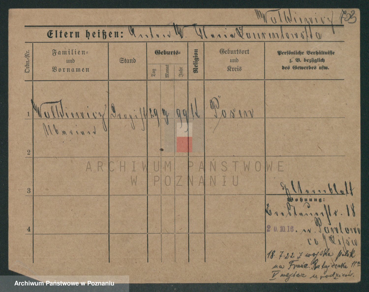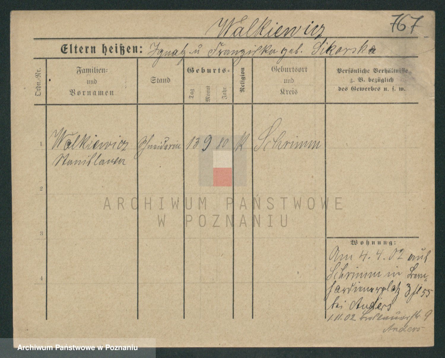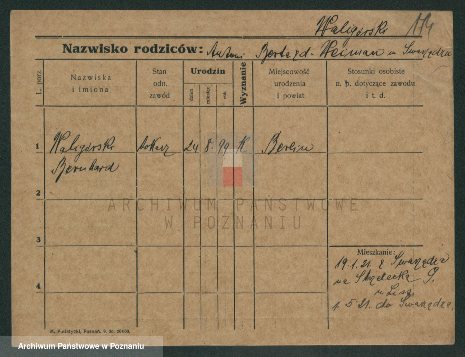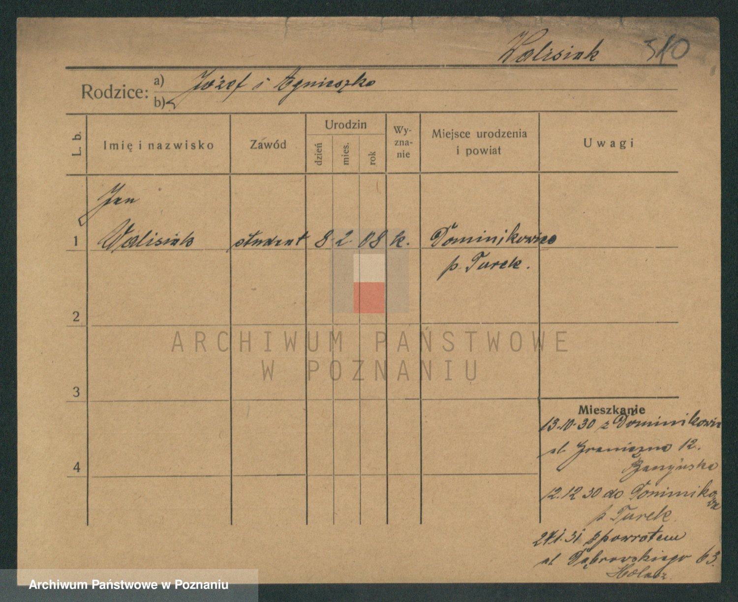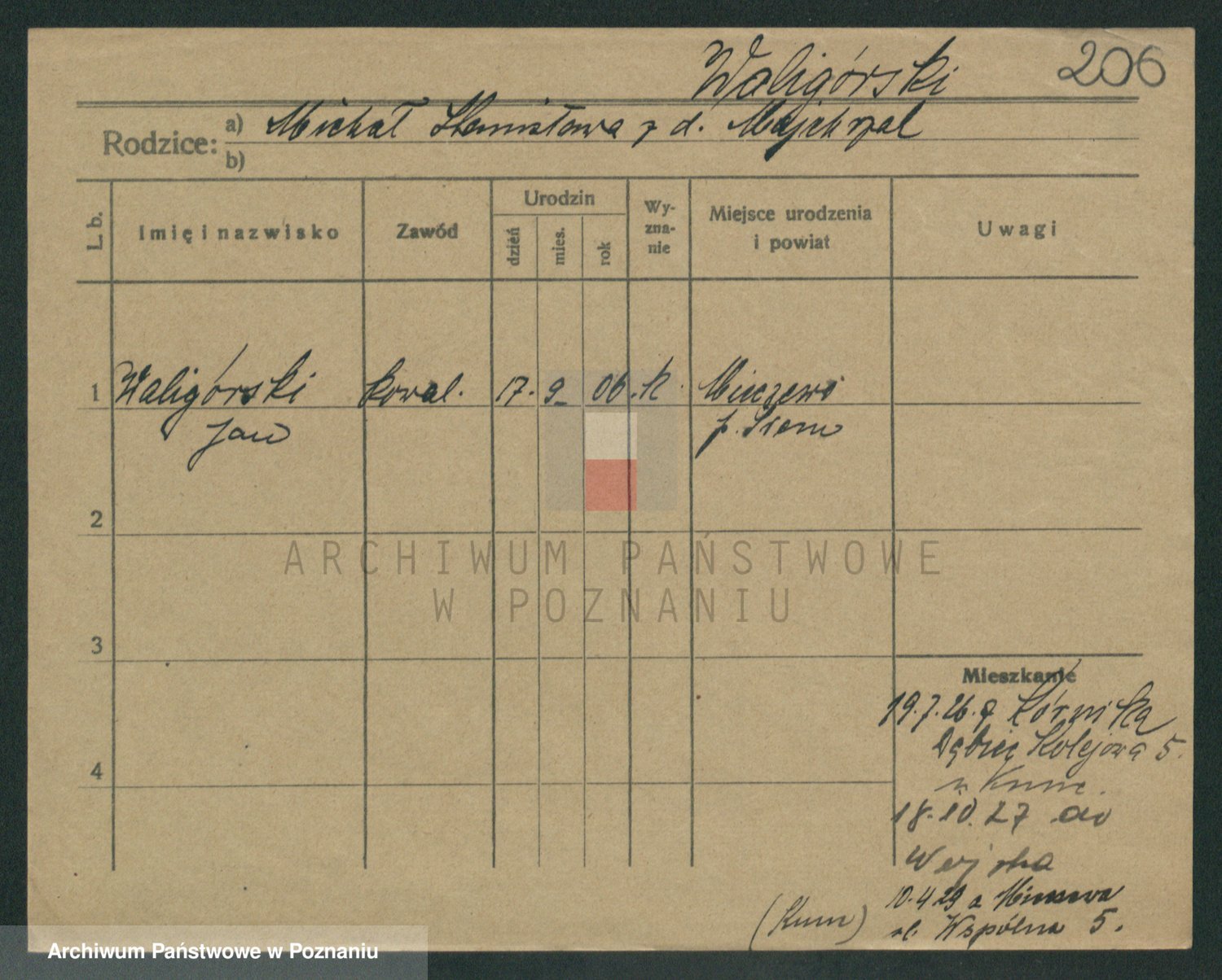 Podgląd karty osobowej dostępny jest po kliknięciu na nazwisko lub ikonkę karty. Można dokonywać powiększenia (ikony na górze) lub przechodzić między kolejnymi skanami (strzałki po bokach).