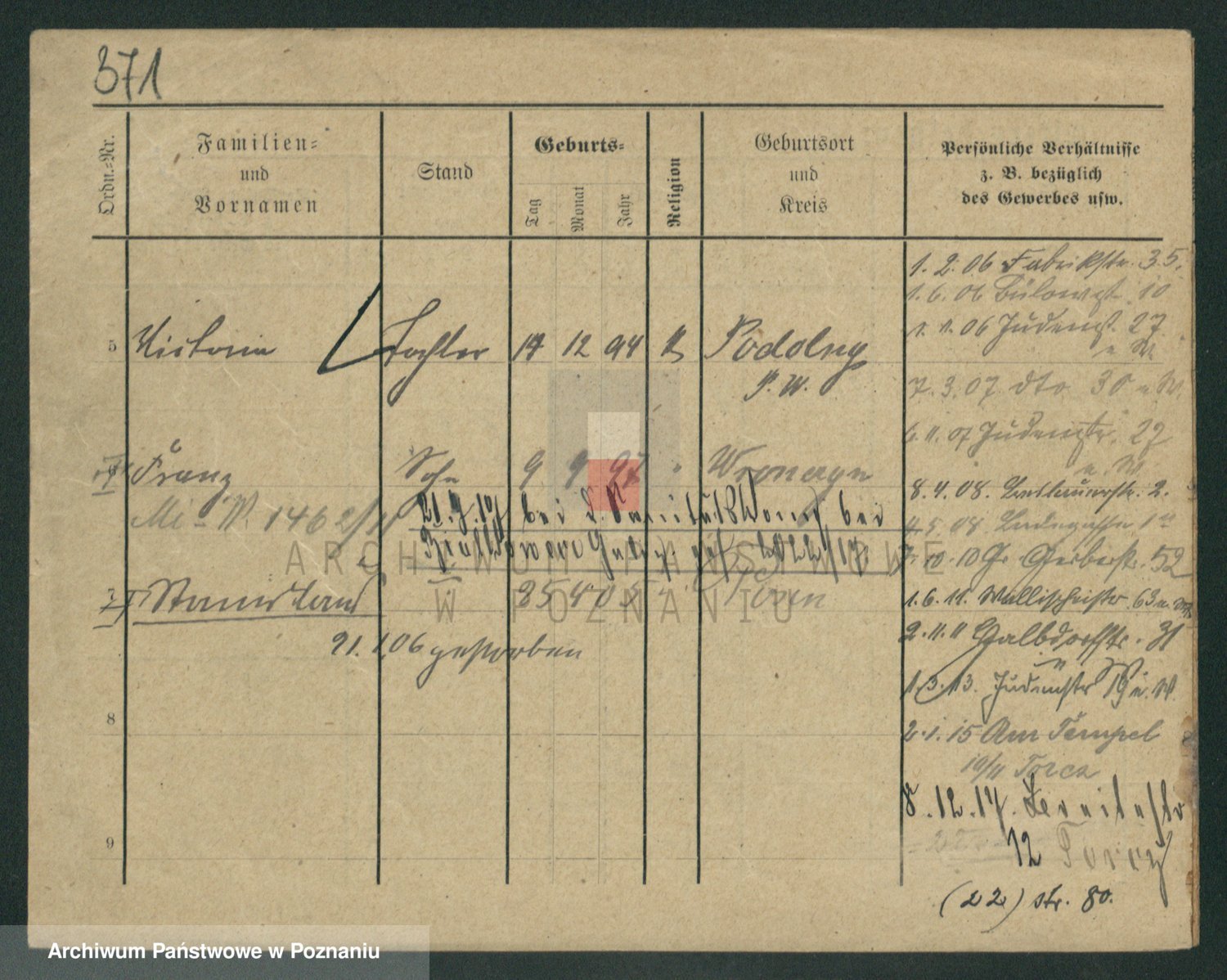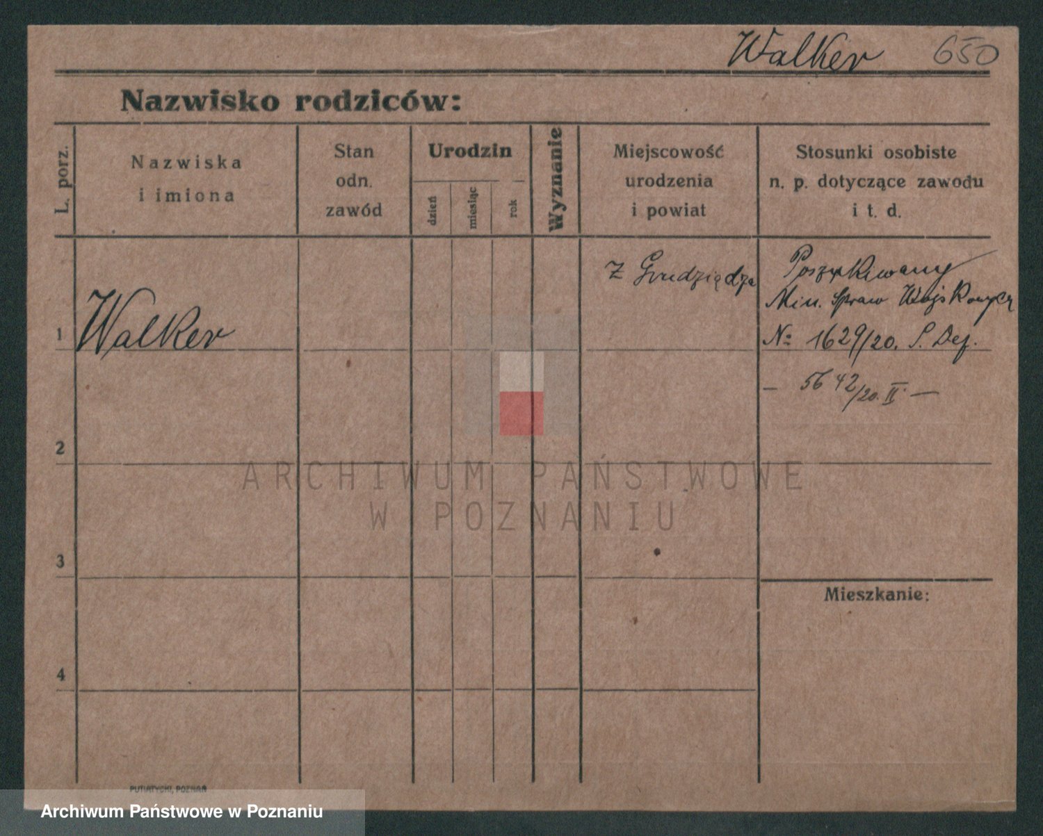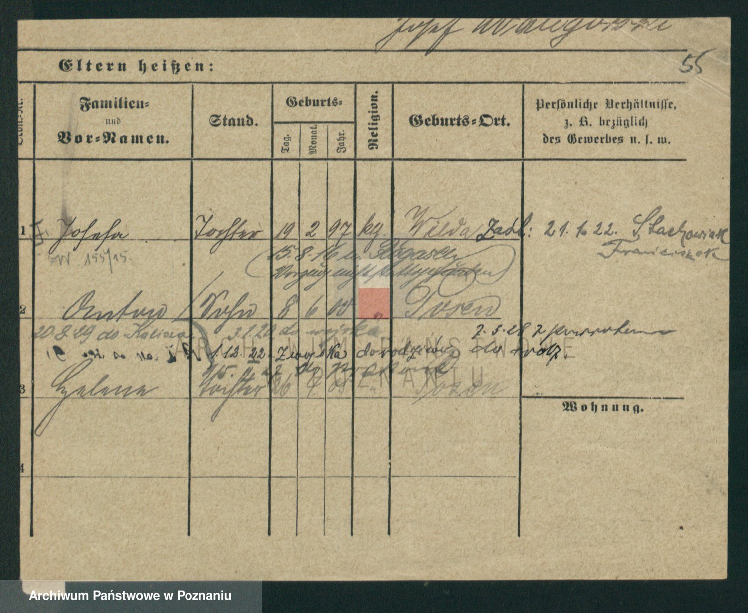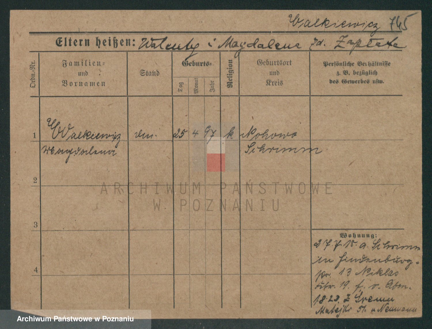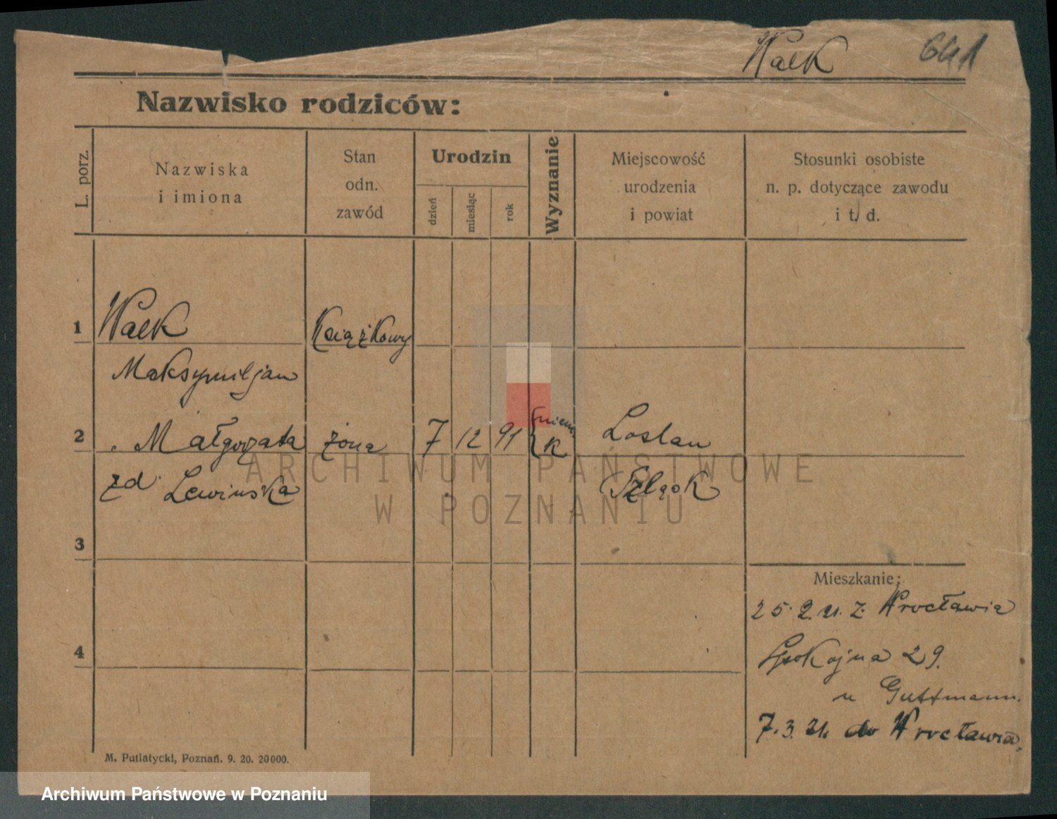Podgląd karty osobowej dostępny jest po kliknięciu na nazwisko lub ikonkę karty. Można dokonywać powiększenia (ikony na górze) lub przechodzić między kolejnymi skanami (strzałki po bokach).