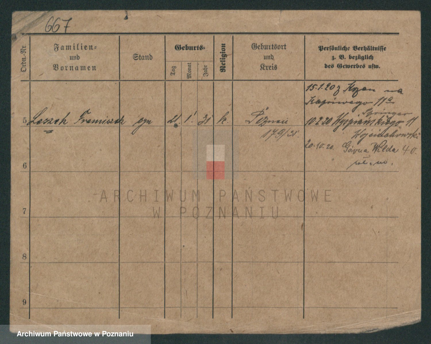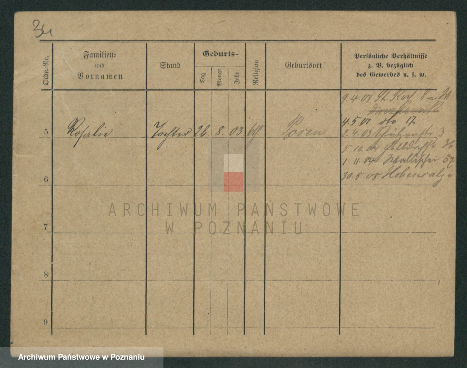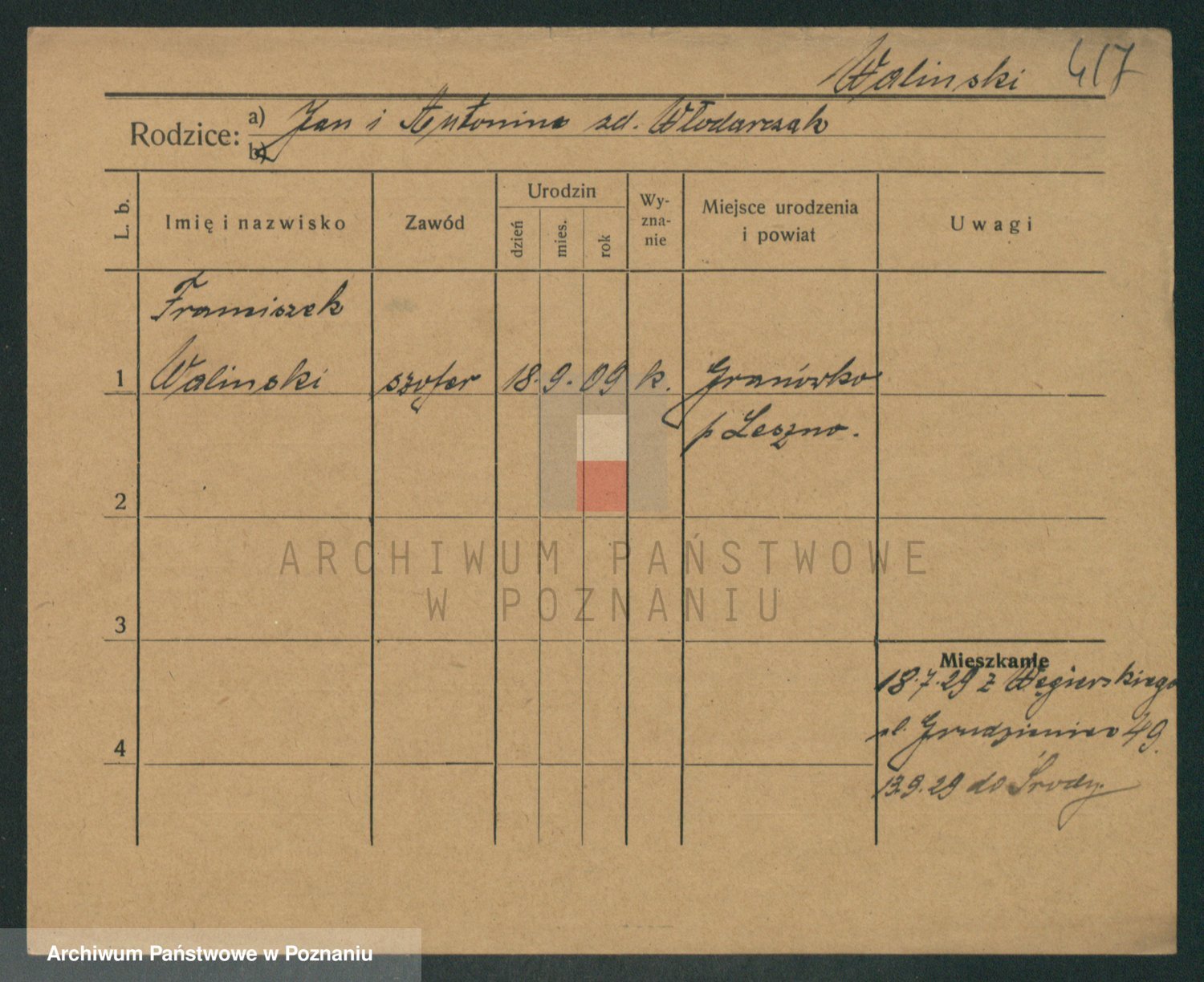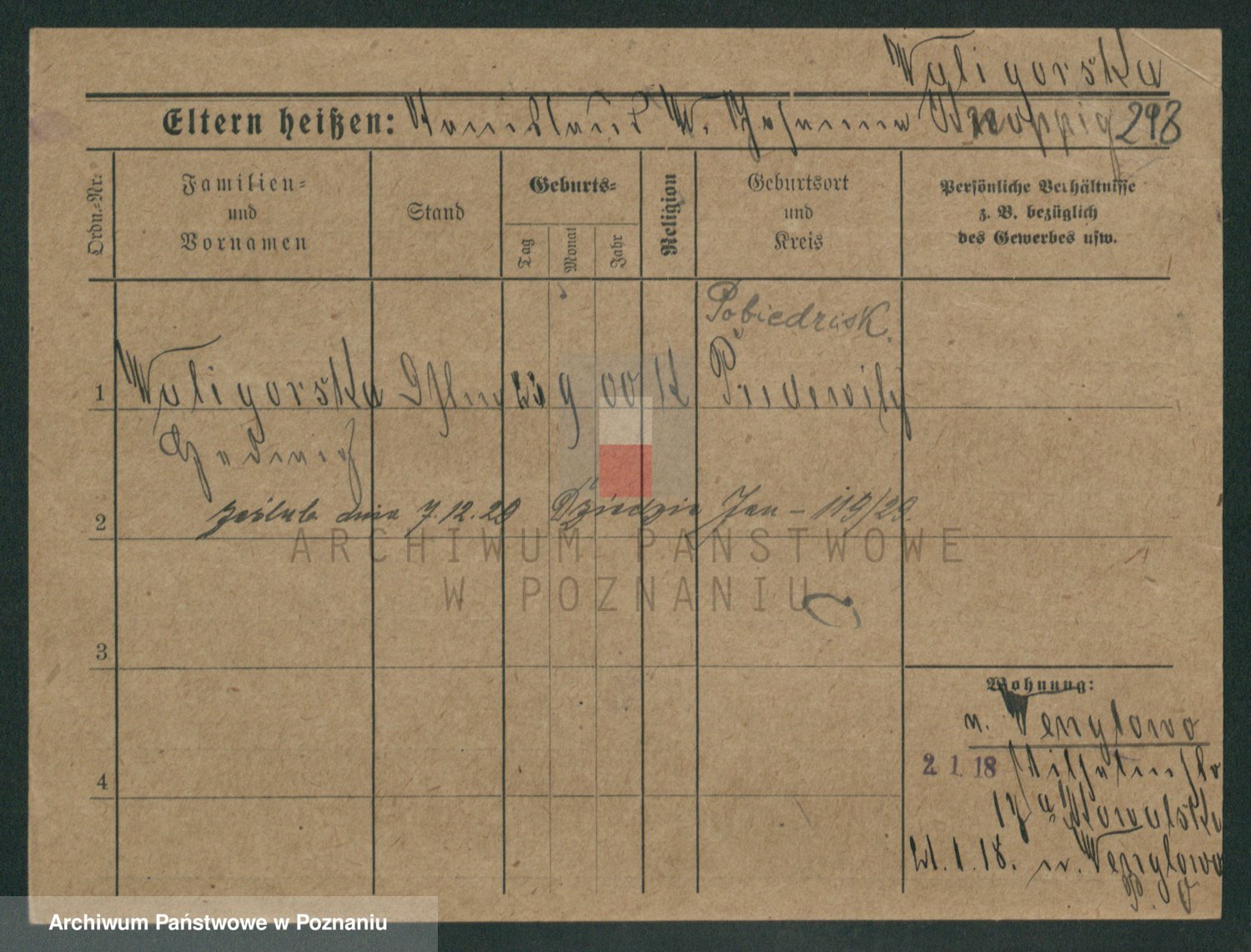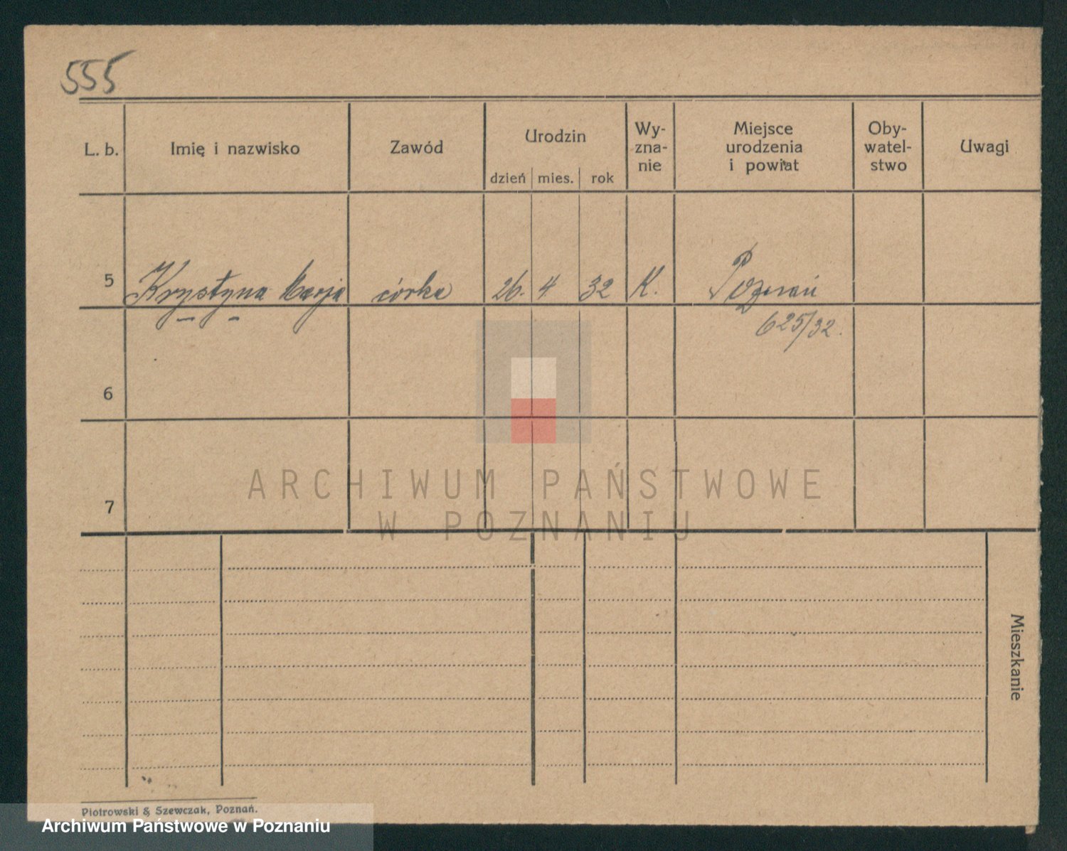 Podgląd karty osobowej dostępny jest po kliknięciu na nazwisko lub ikonkę karty. Można dokonywać powiększenia (ikony na górze) lub przechodzić między kolejnymi skanami (strzałki po bokach).