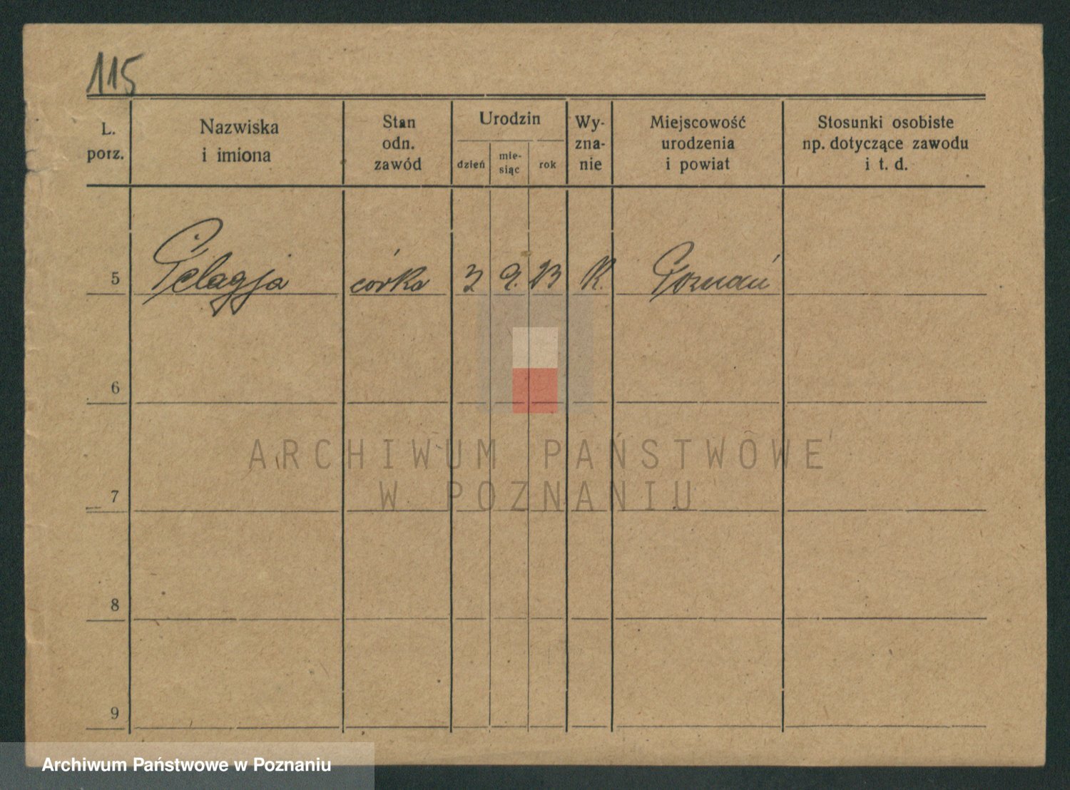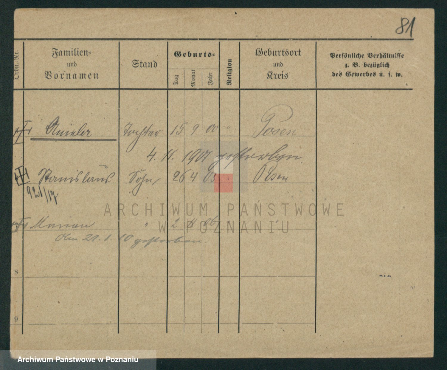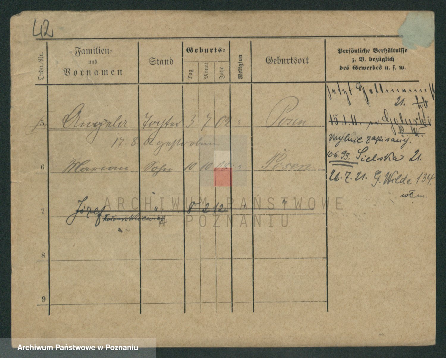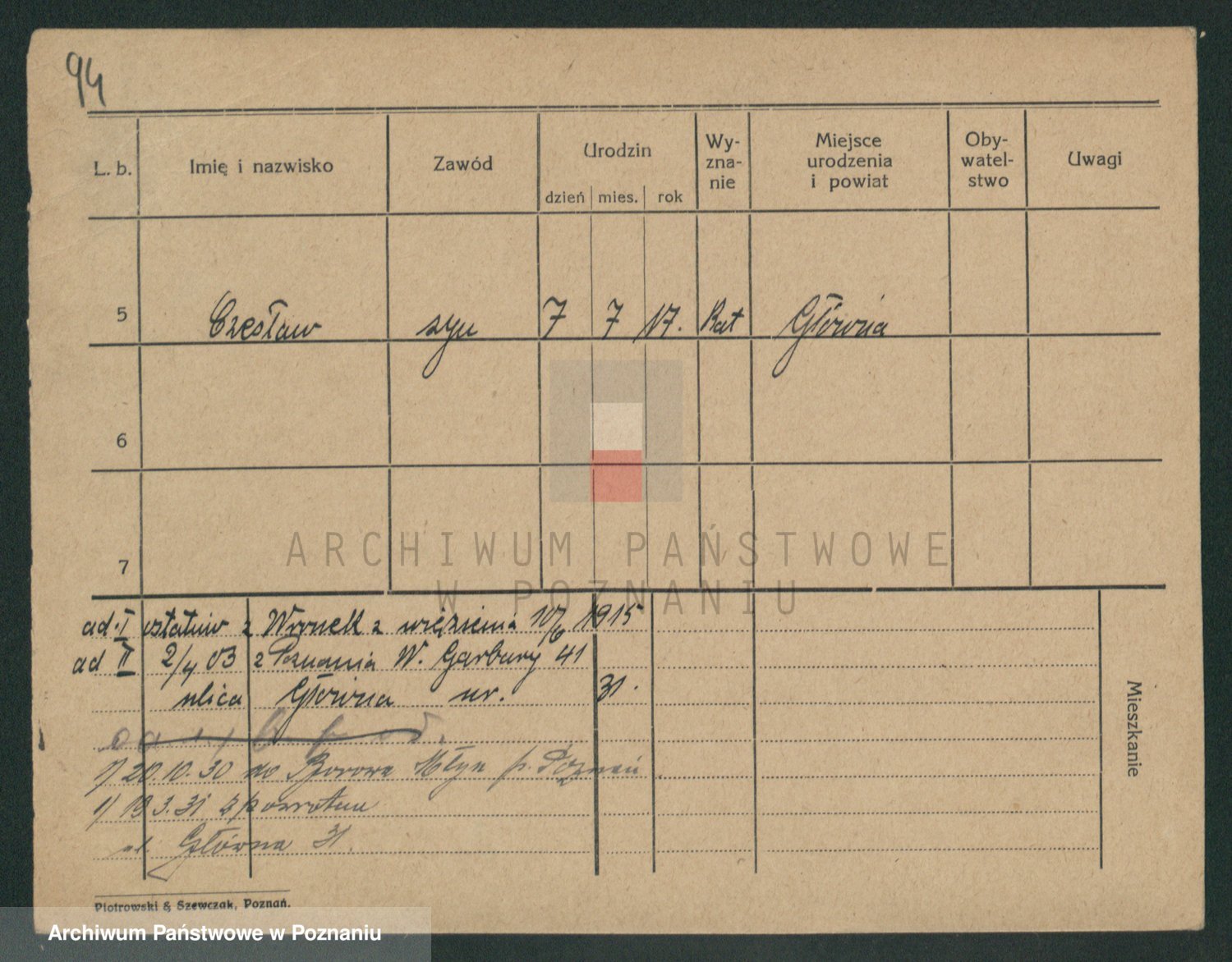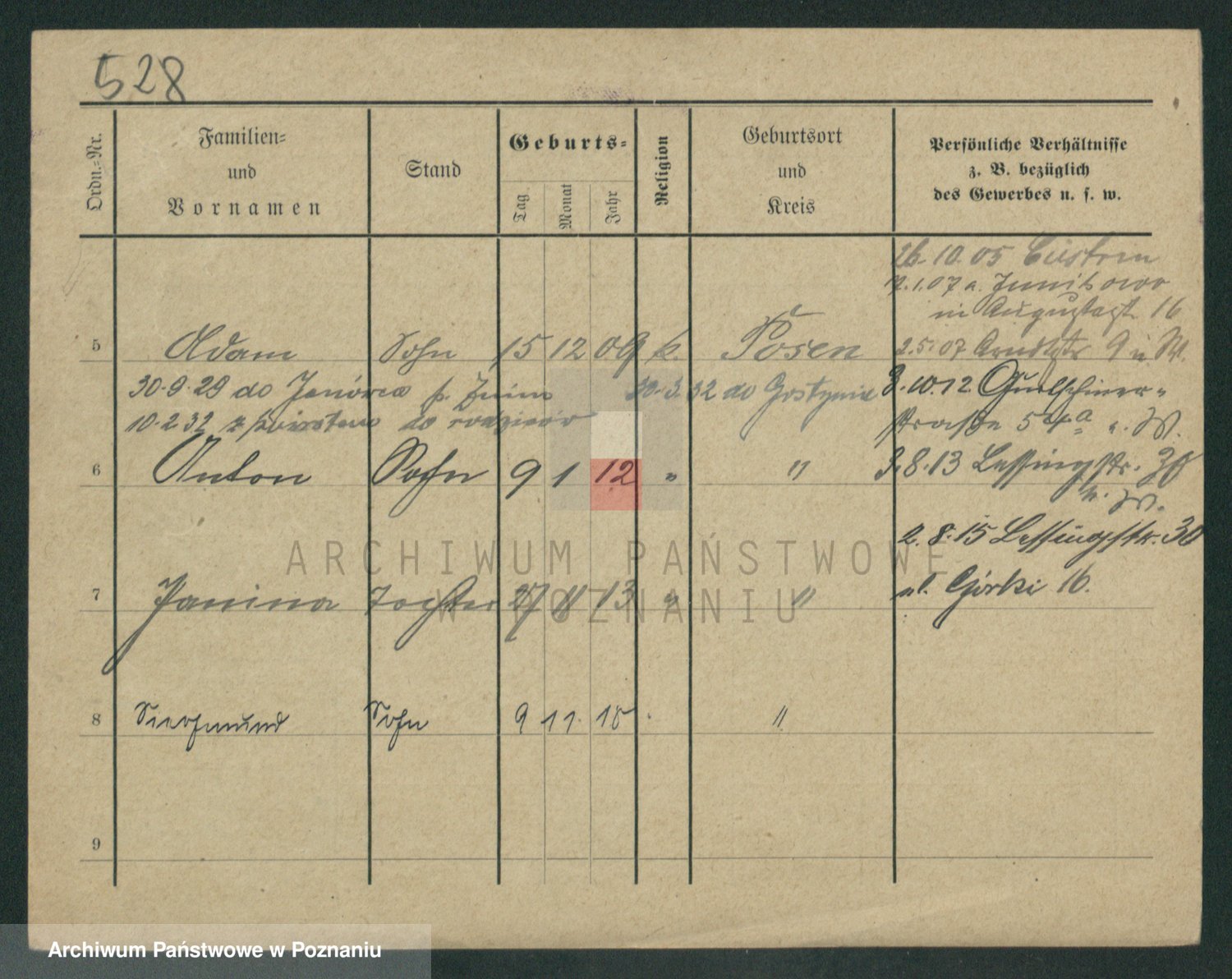 Podgląd karty osobowej dostępny jest po kliknięciu na nazwisko lub ikonkę karty. Można dokonywać powiększenia (ikony na górze) lub przechodzić między kolejnymi skanami (strzałki po bokach).
