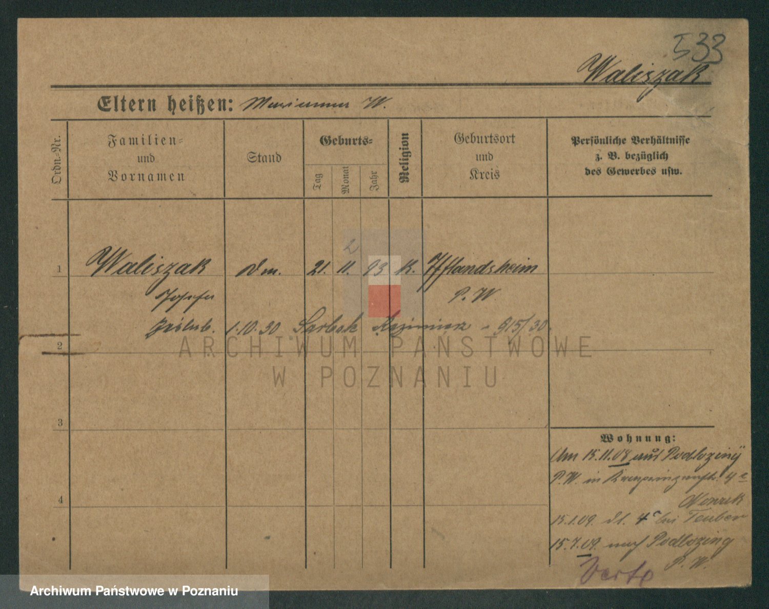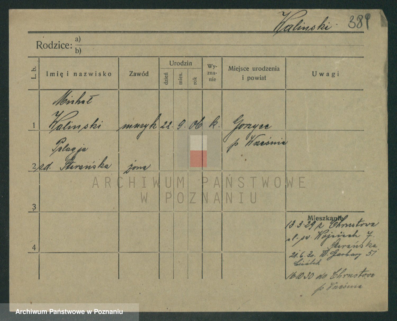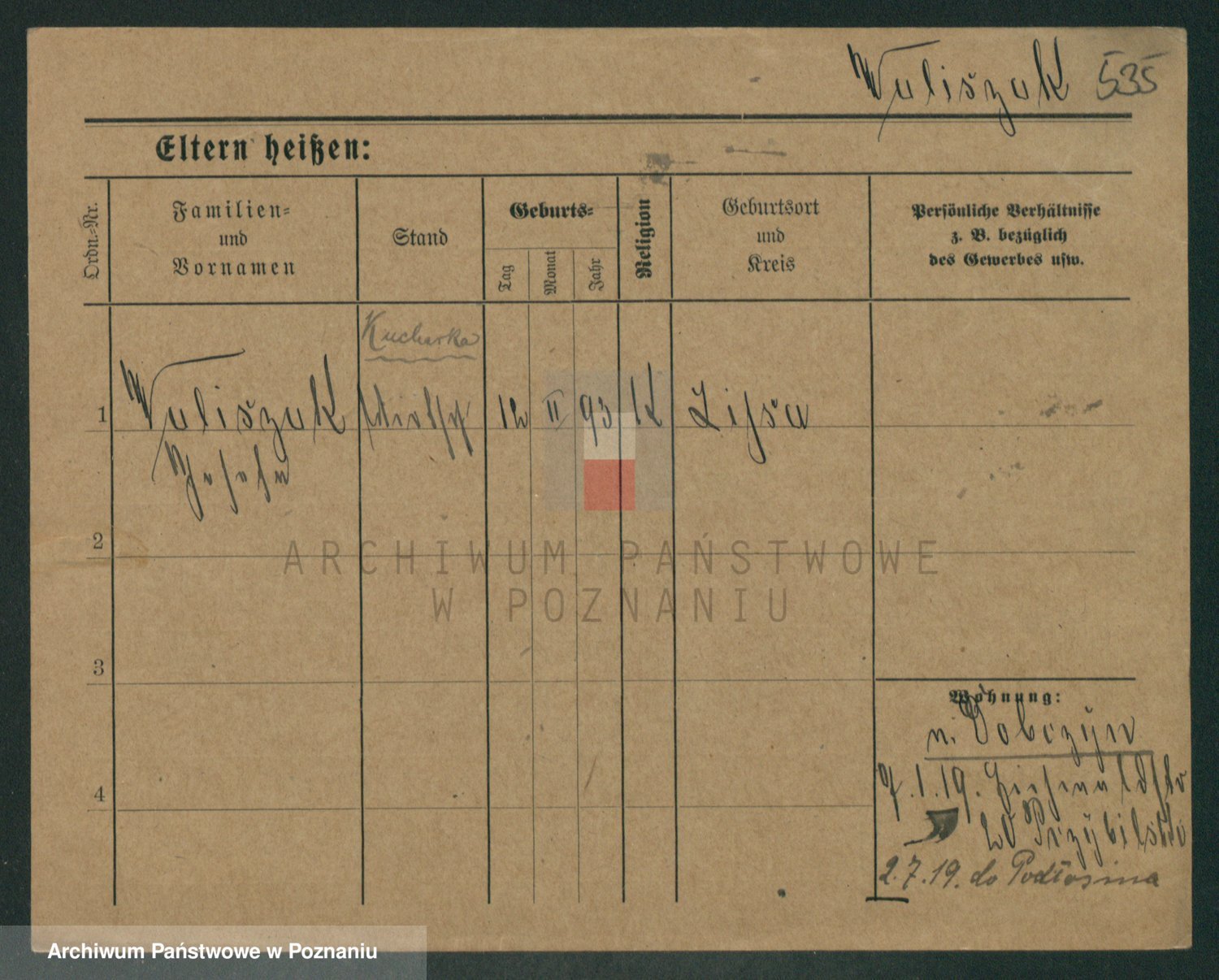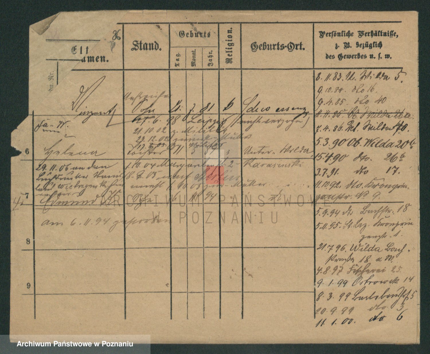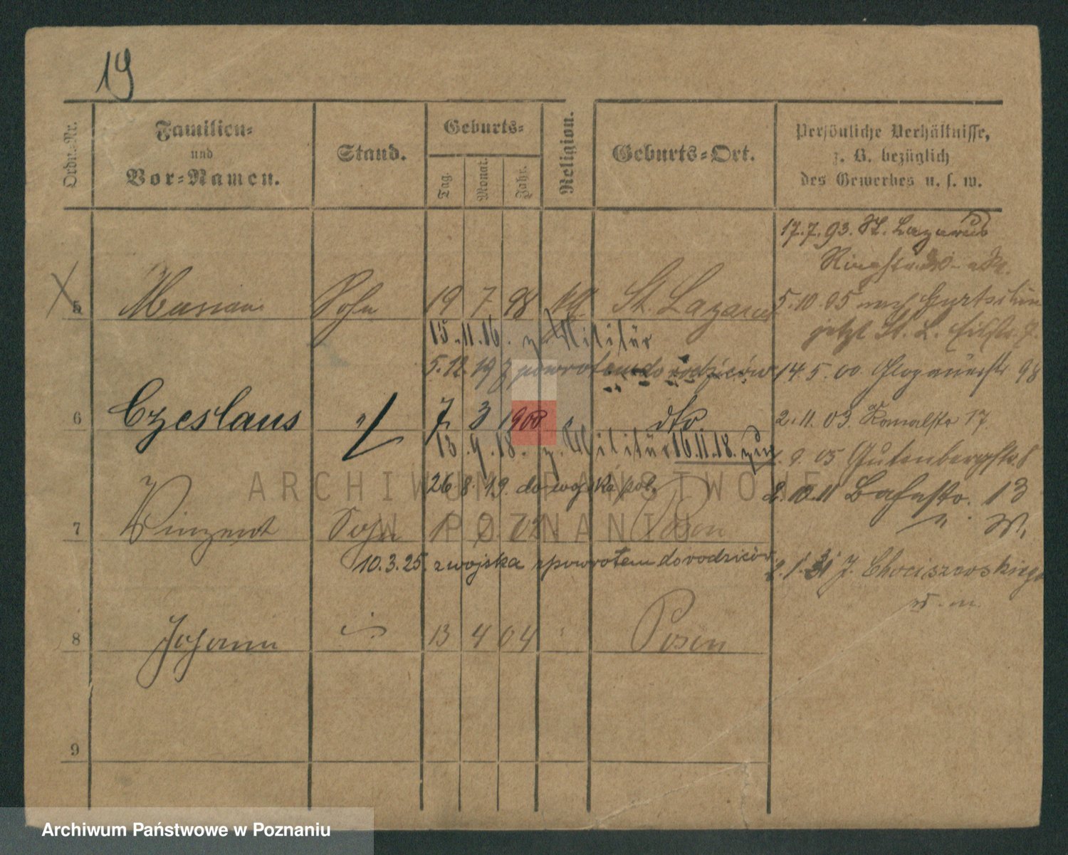 Podgląd karty osobowej dostępny jest po kliknięciu na nazwisko lub ikonkę karty. Można dokonywać powiększenia (ikony na górze) lub przechodzić między kolejnymi skanami (strzałki po bokach).
