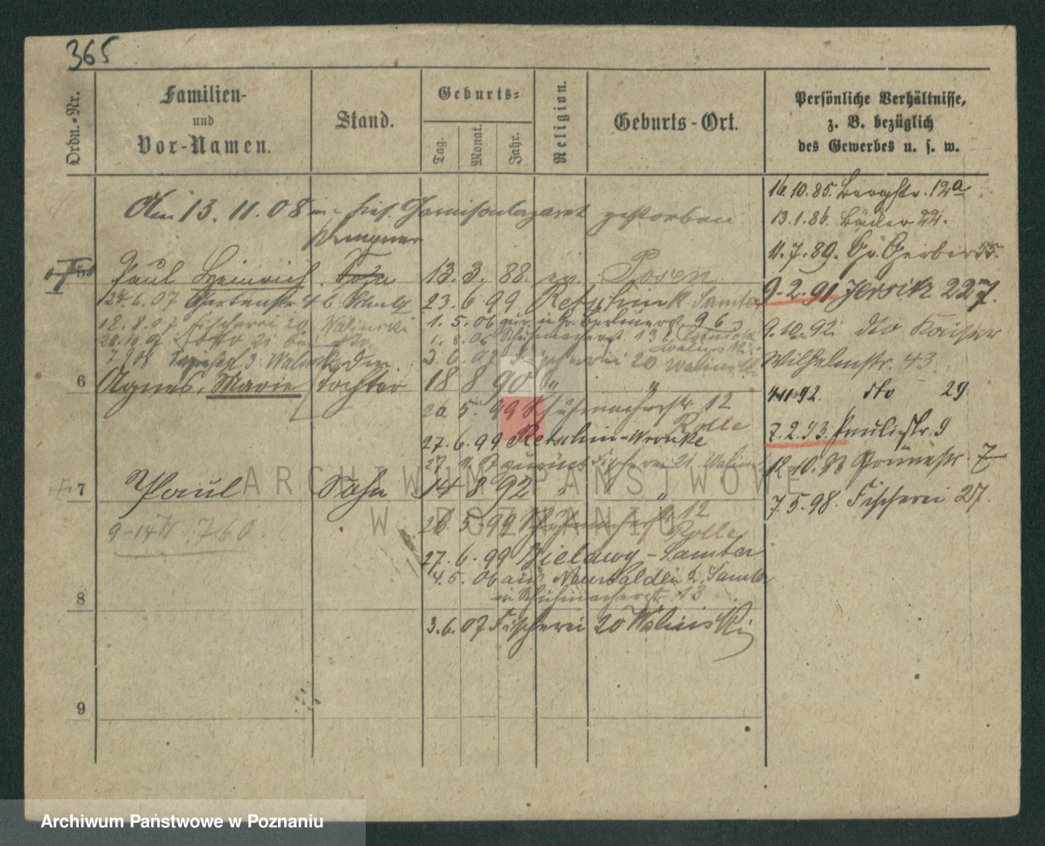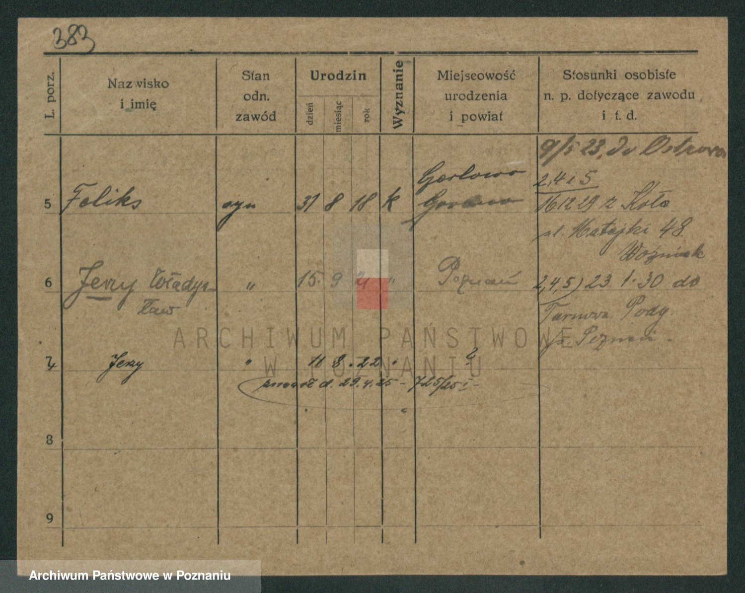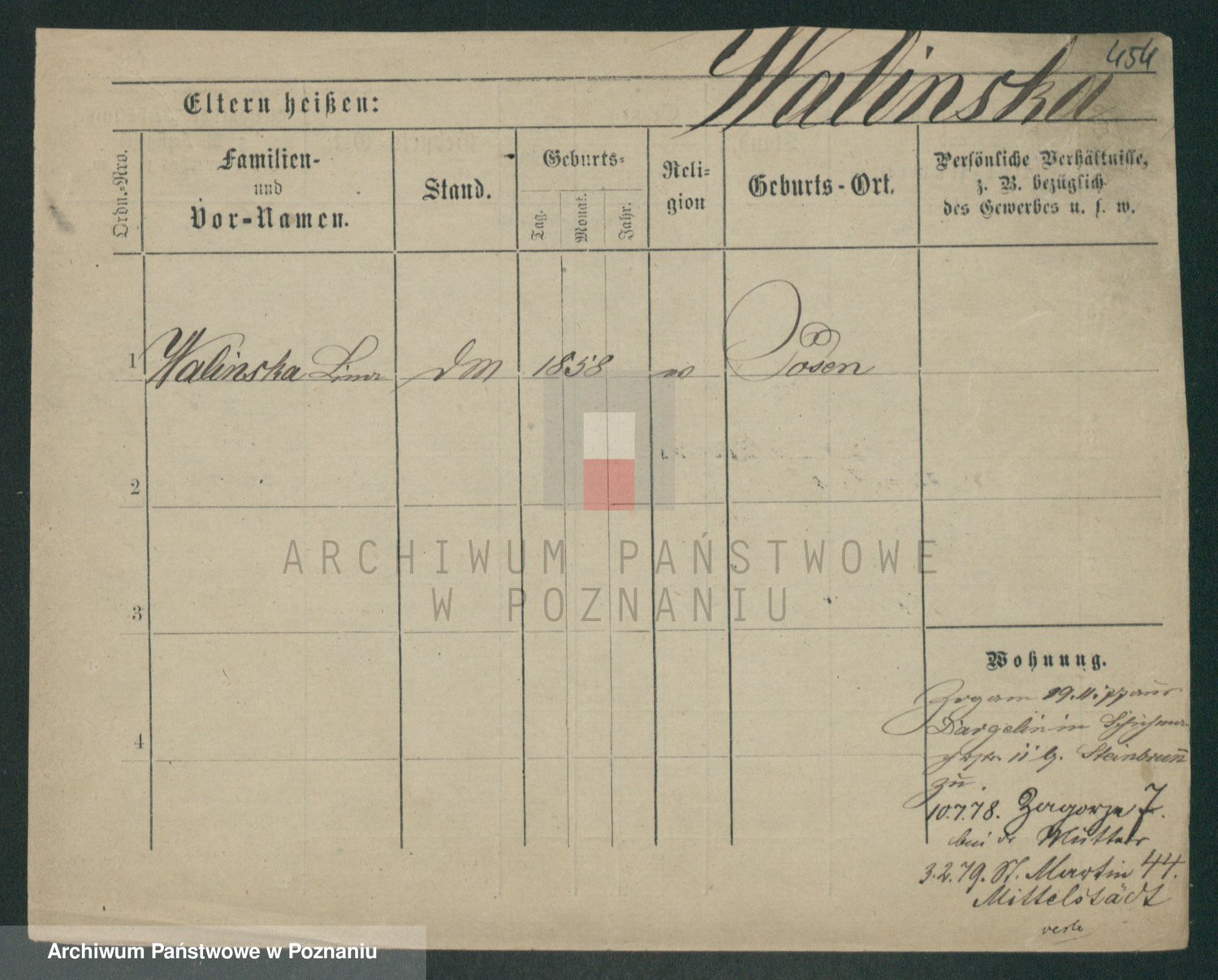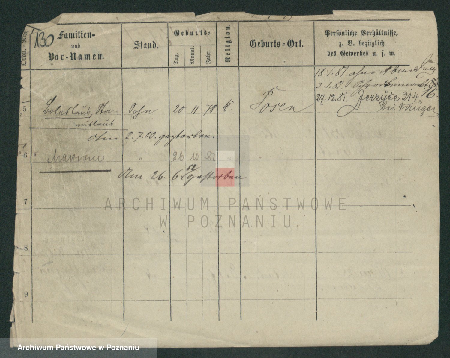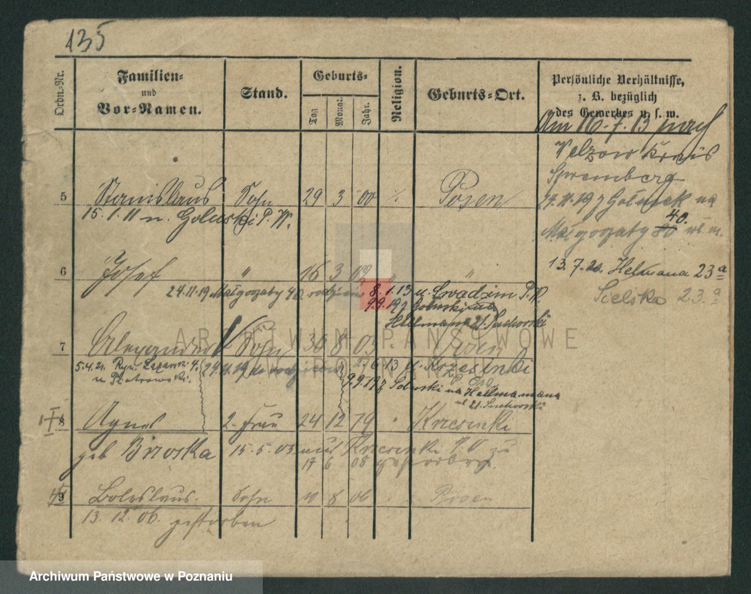 Podgląd karty osobowej dostępny jest po kliknięciu na nazwisko lub ikonkę karty. Można dokonywać powiększenia (ikony na górze) lub przechodzić między kolejnymi skanami (strzałki po bokach).
