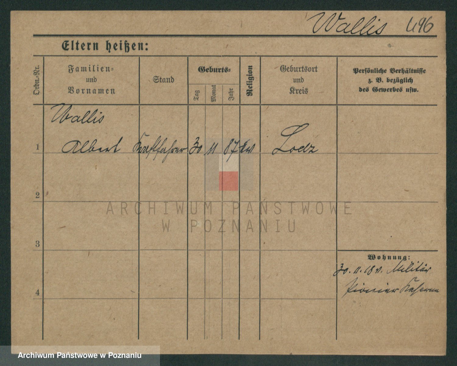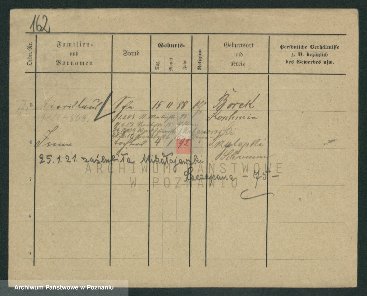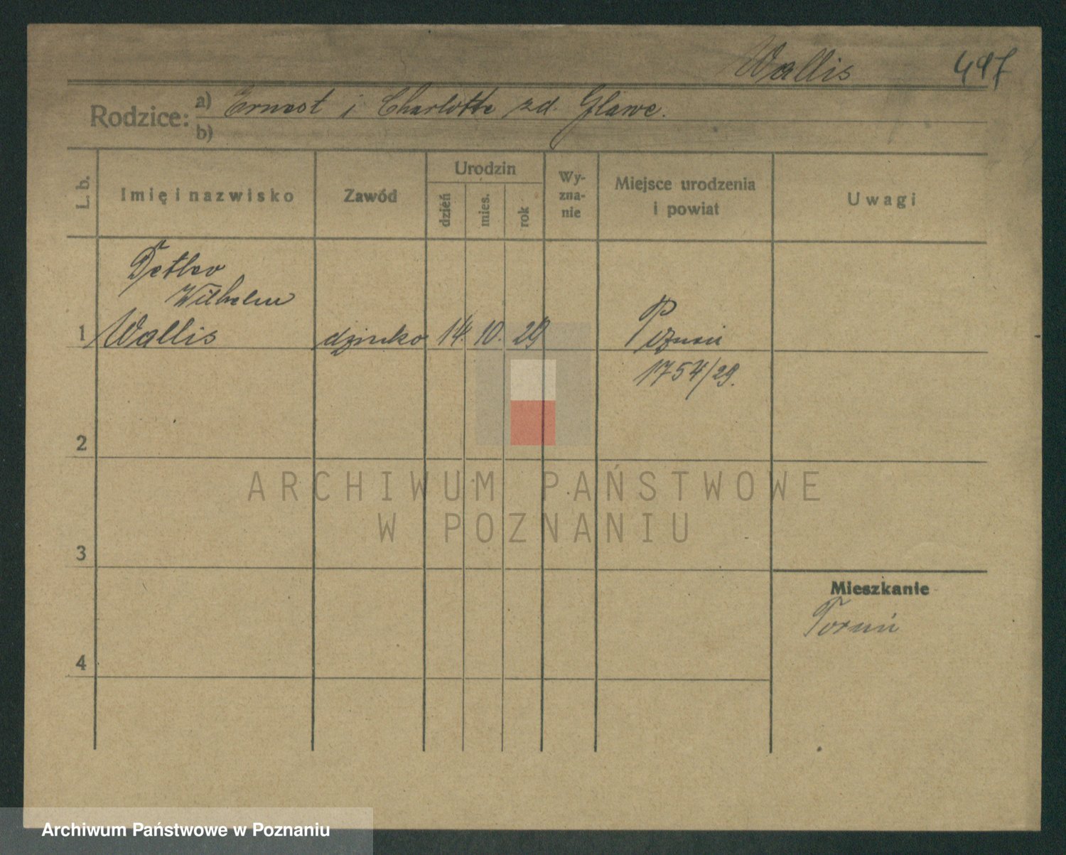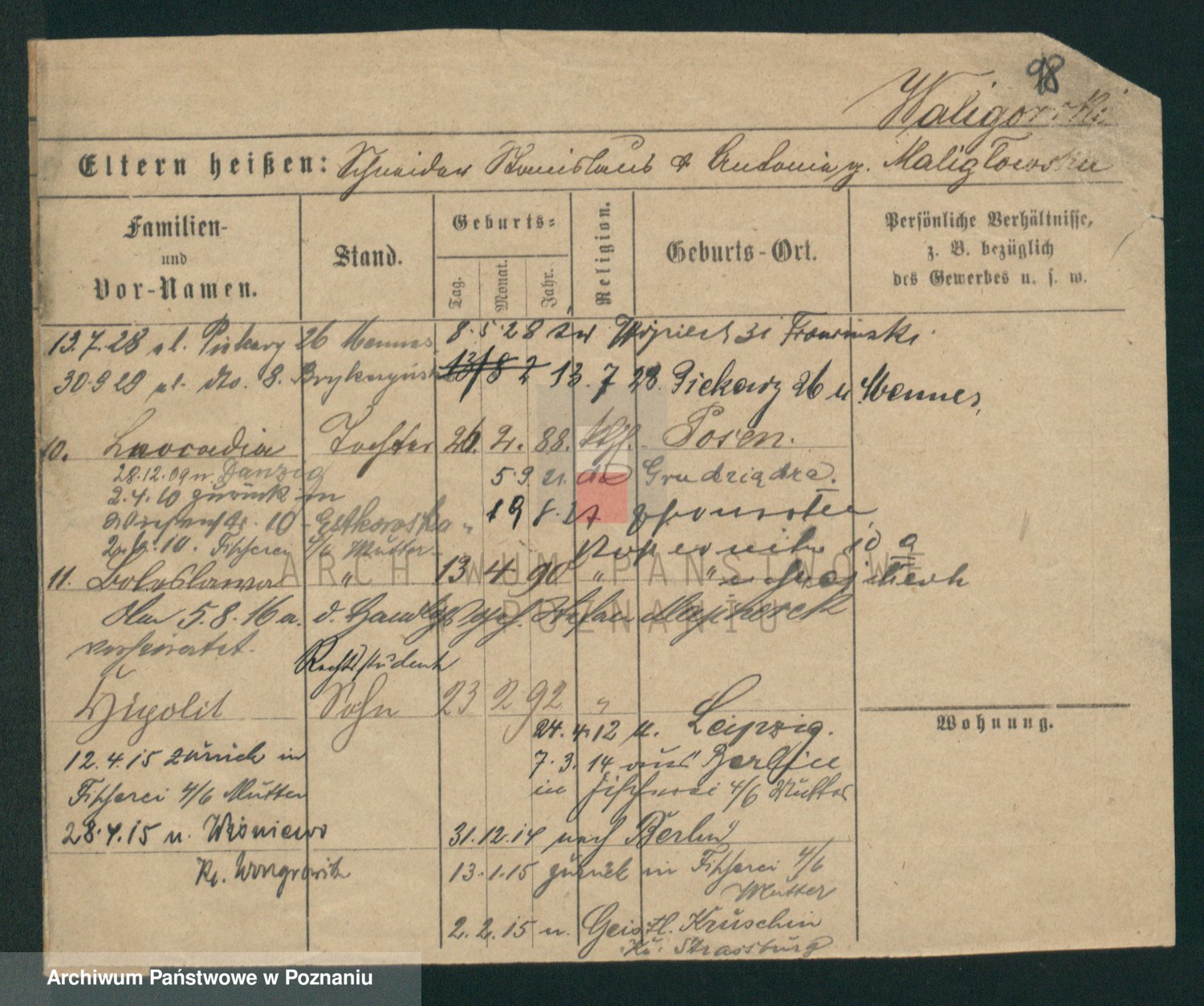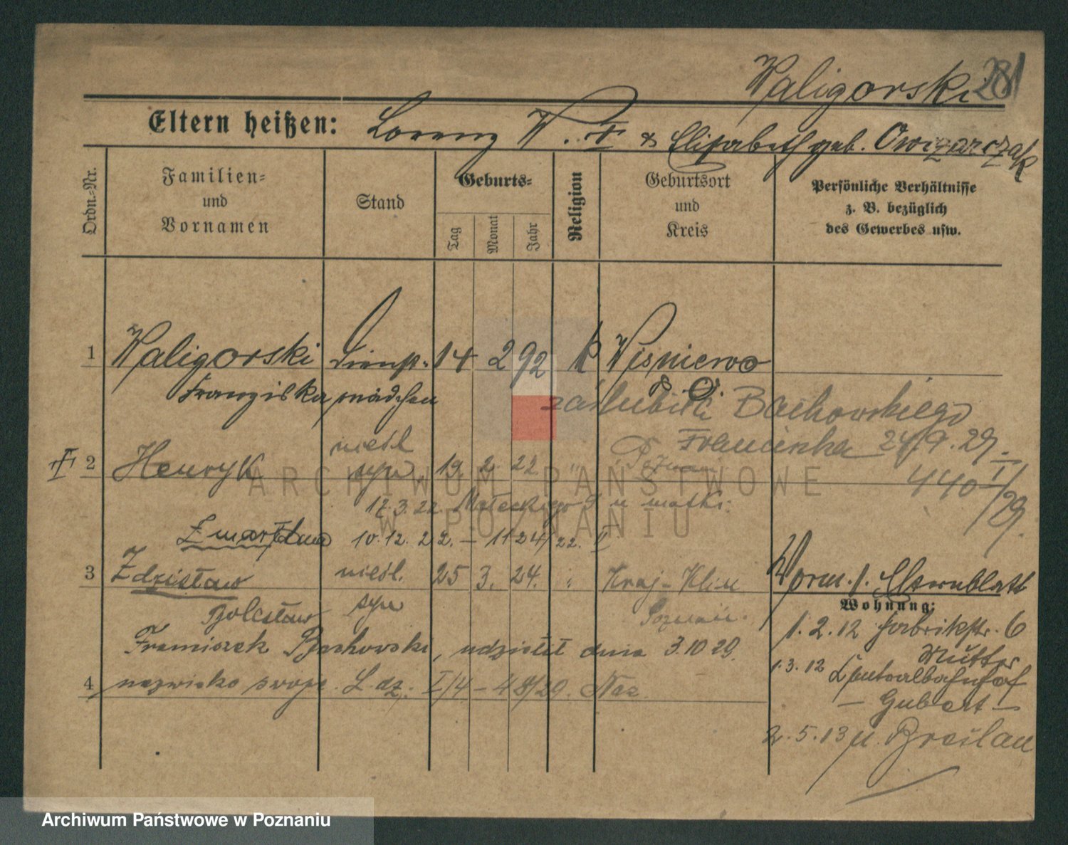 Podgląd karty osobowej dostępny jest po kliknięciu na nazwisko lub ikonkę karty. Można dokonywać powiększenia (ikony na górze) lub przechodzić między kolejnymi skanami (strzałki po bokach).