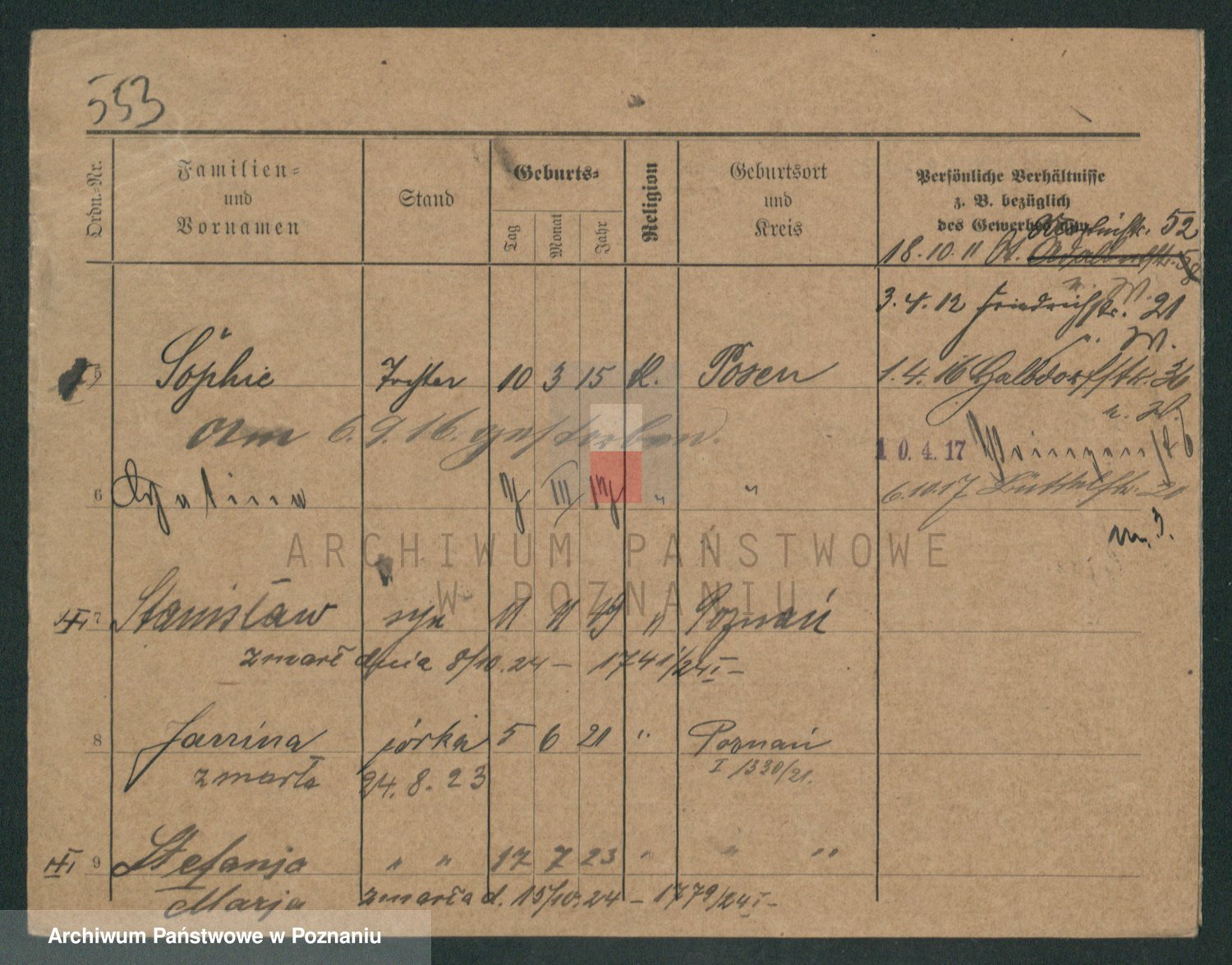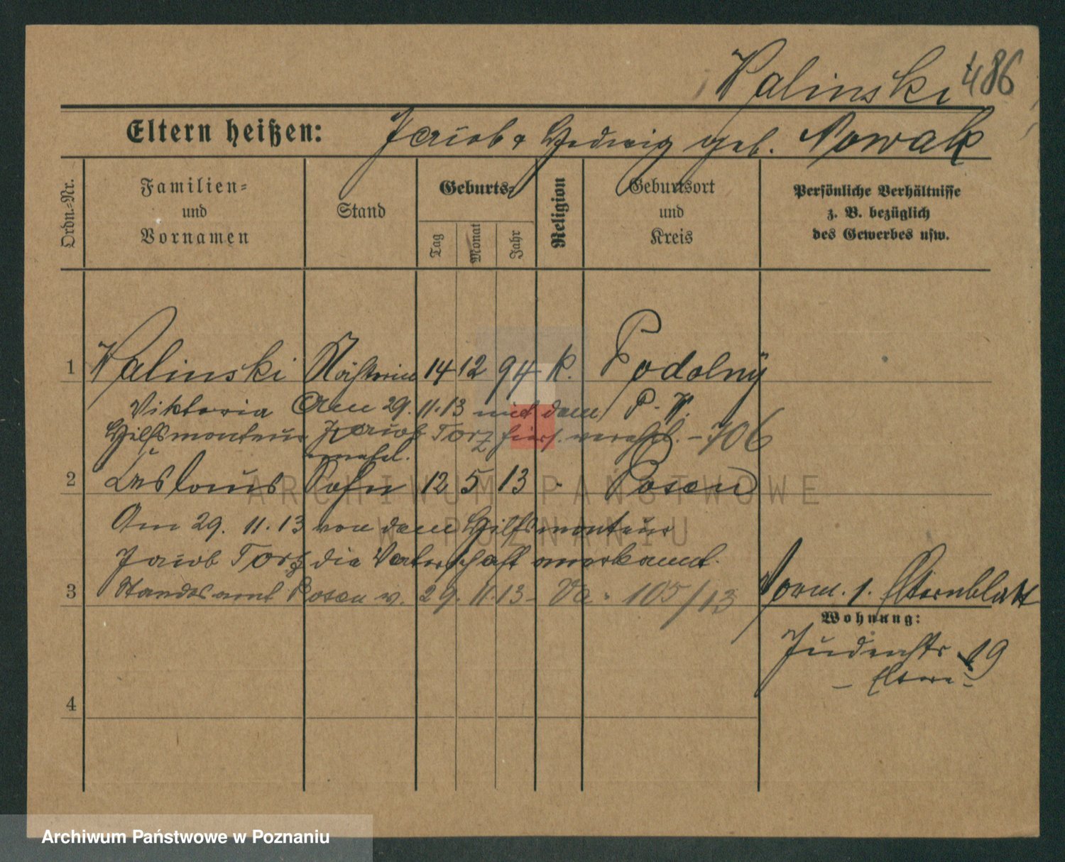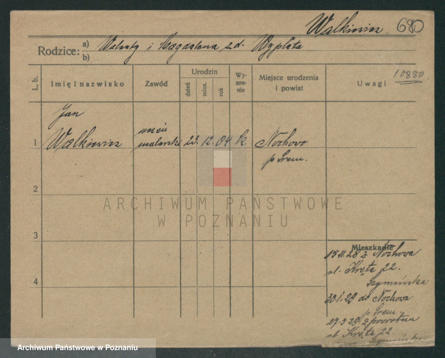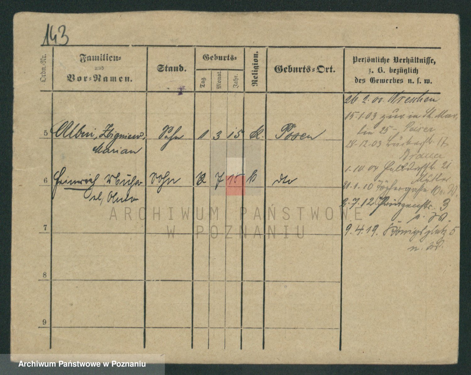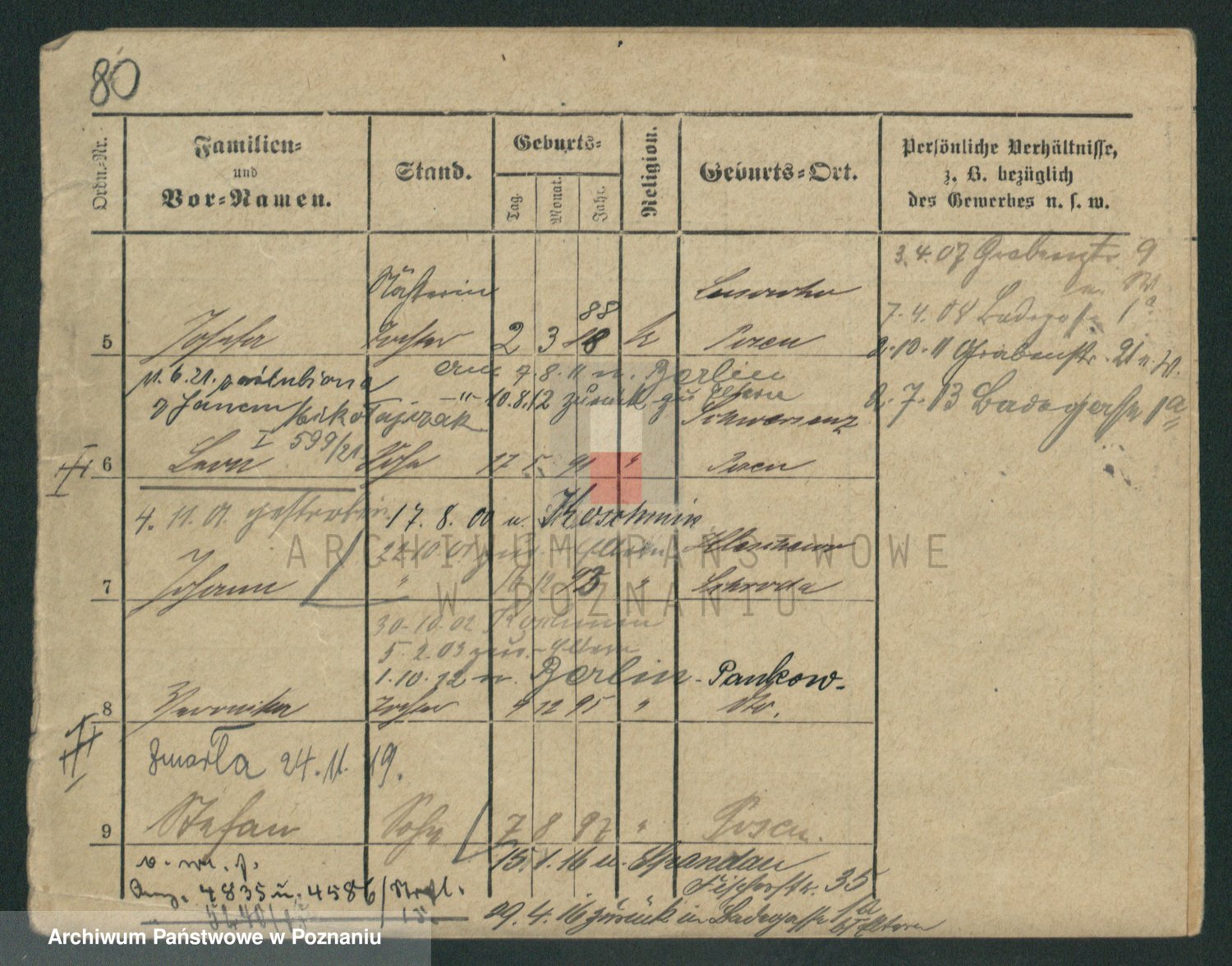 Podgląd karty osobowej dostępny jest po kliknięciu na nazwisko lub ikonkę karty. Można dokonywać powiększenia (ikony na górze) lub przechodzić między kolejnymi skanami (strzałki po bokach).