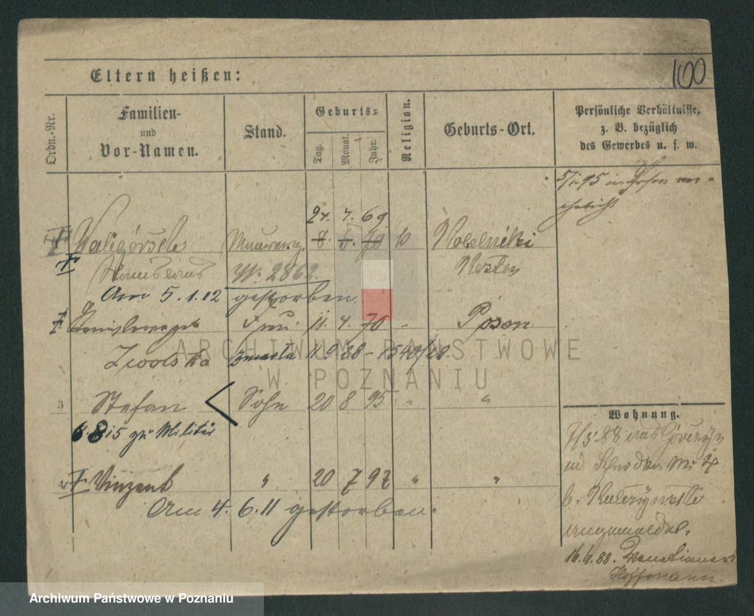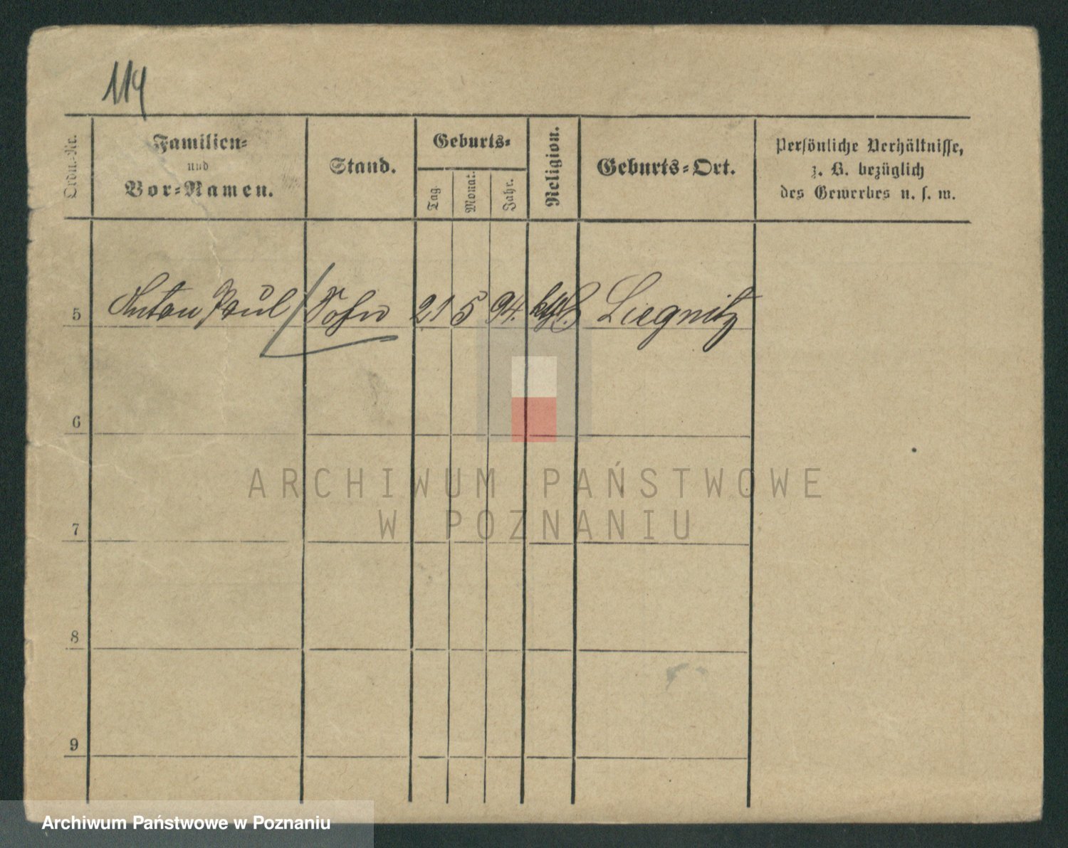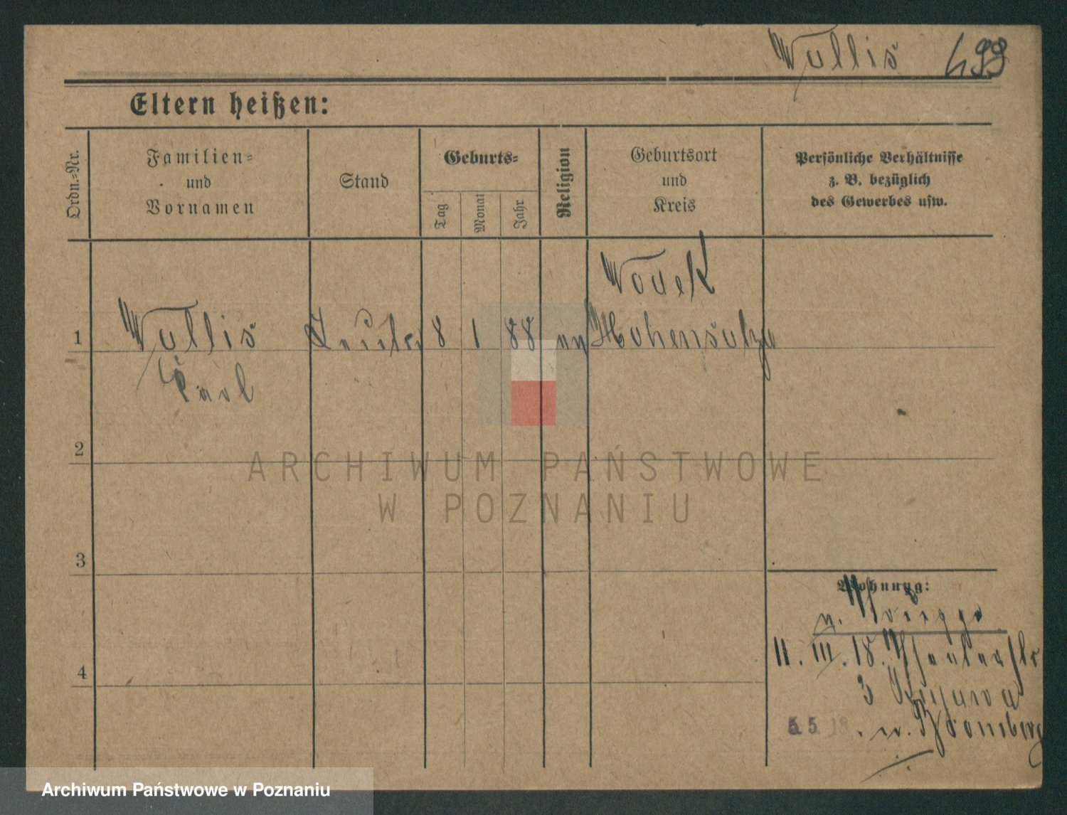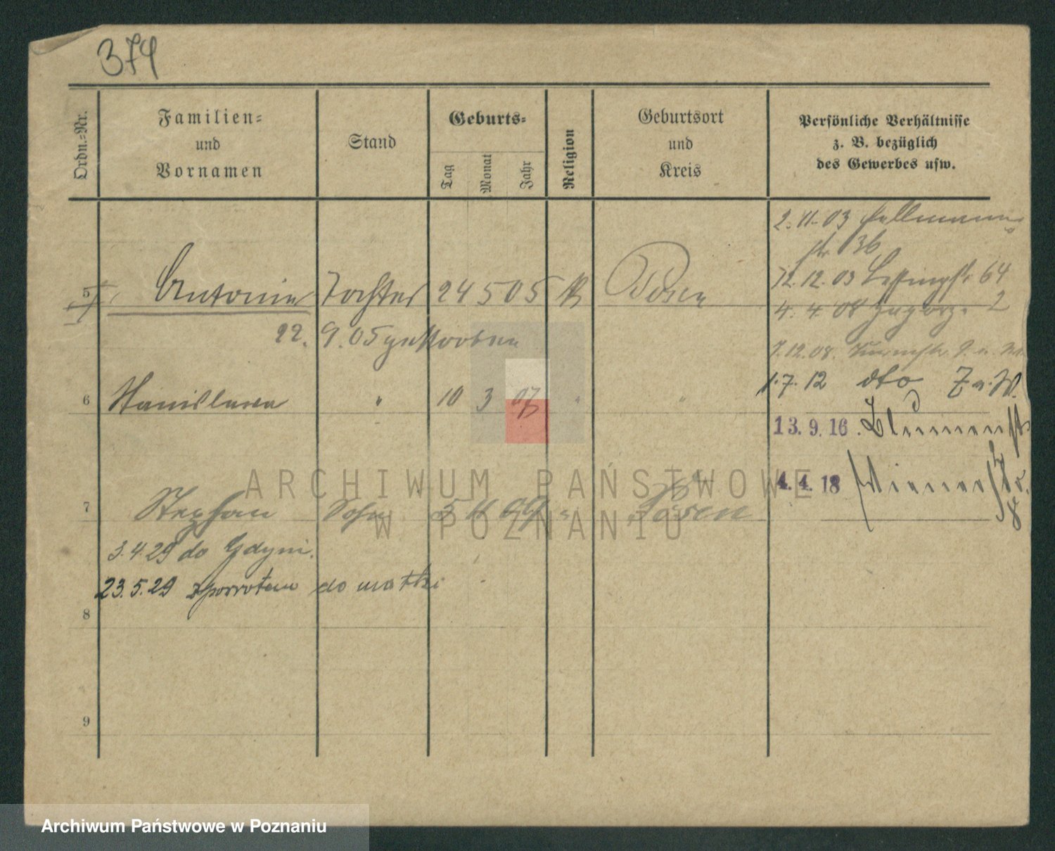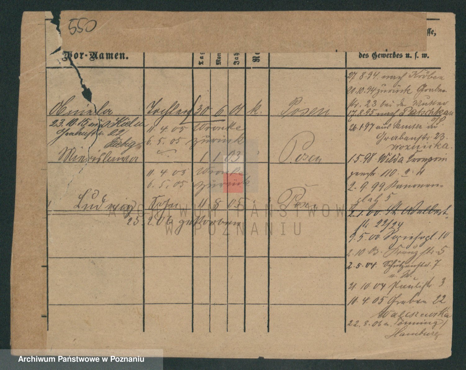 Podgląd karty osobowej dostępny jest po kliknięciu na nazwisko lub ikonkę karty. Można dokonywać powiększenia (ikony na górze) lub przechodzić między kolejnymi skanami (strzałki po bokach).