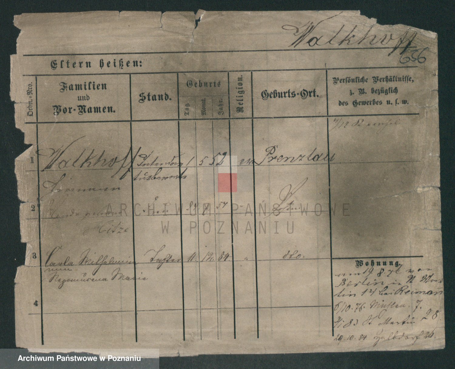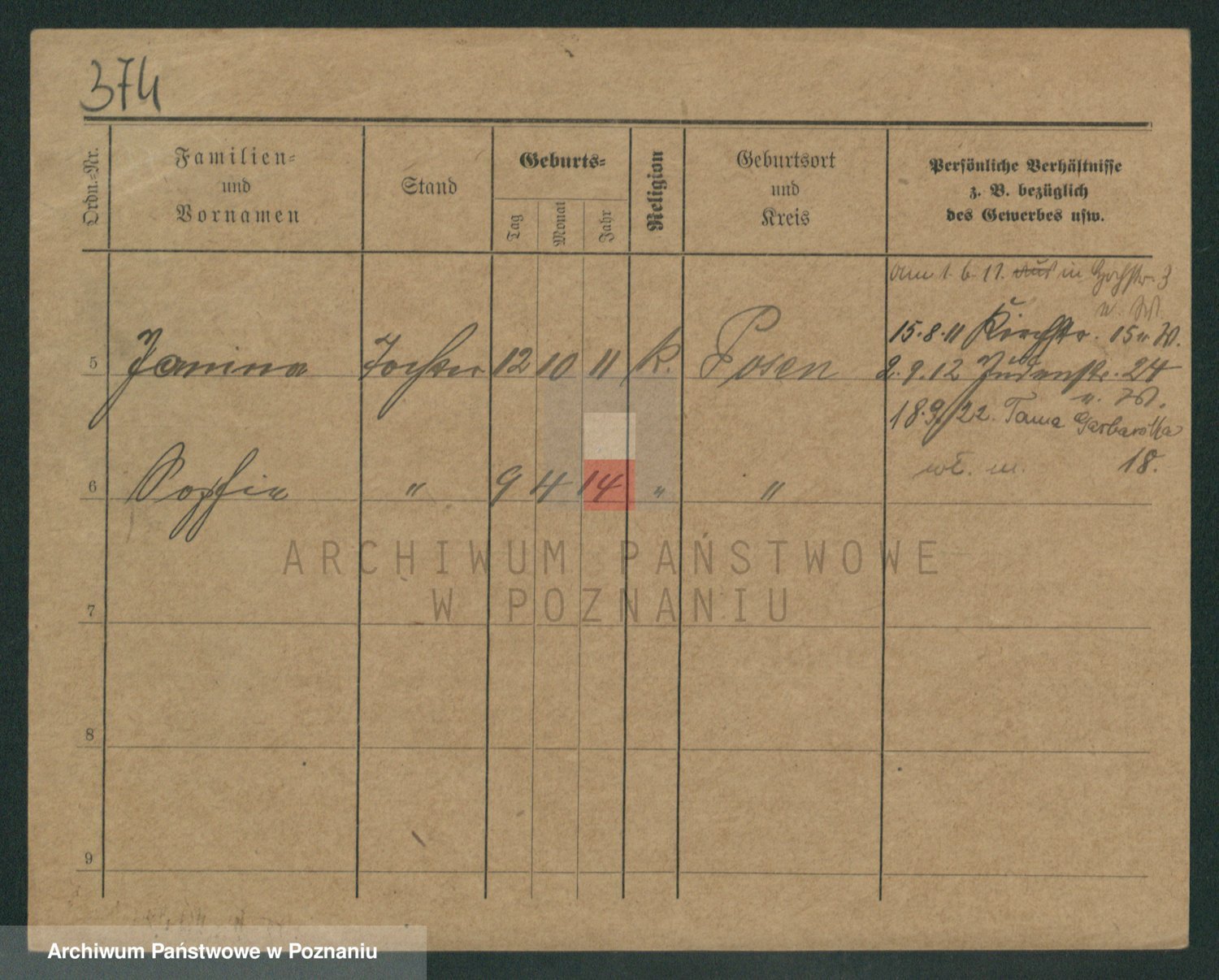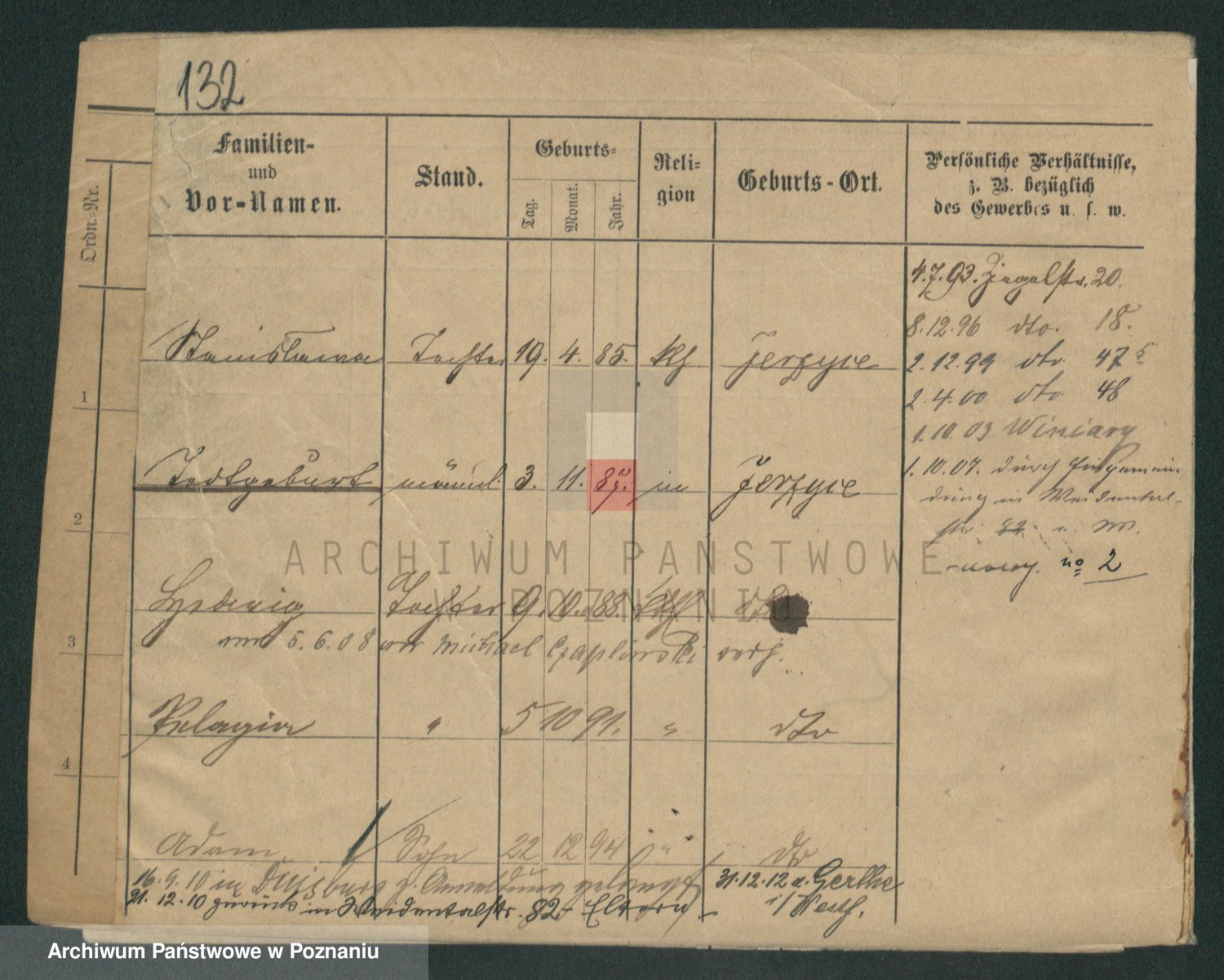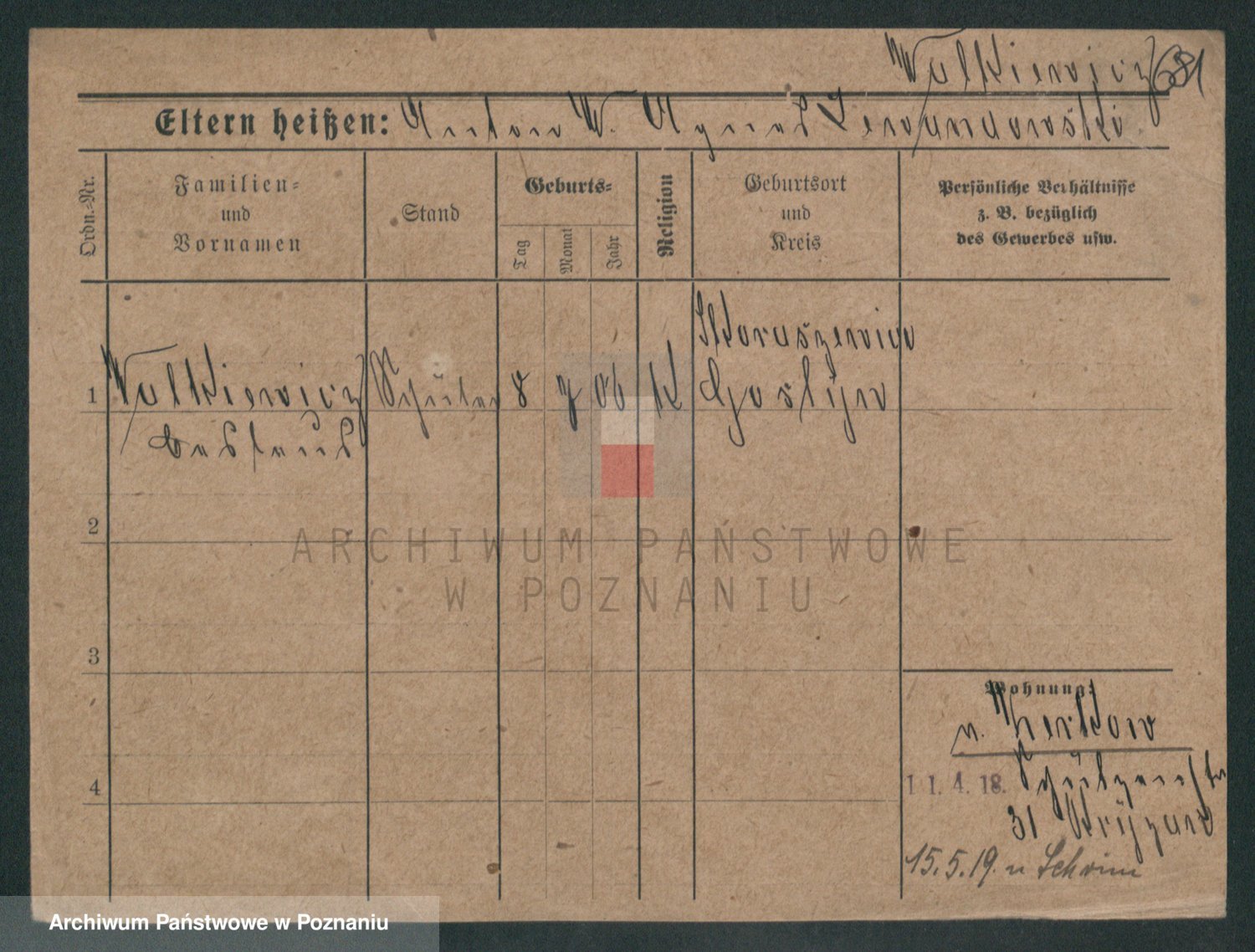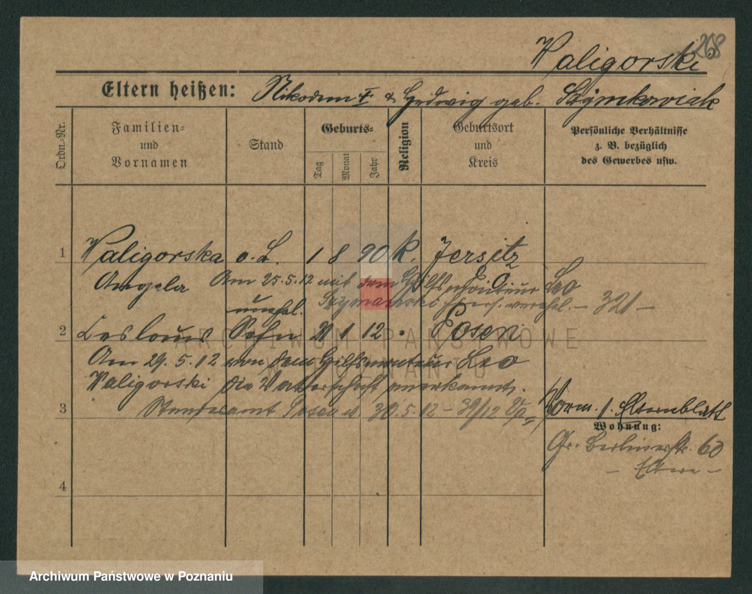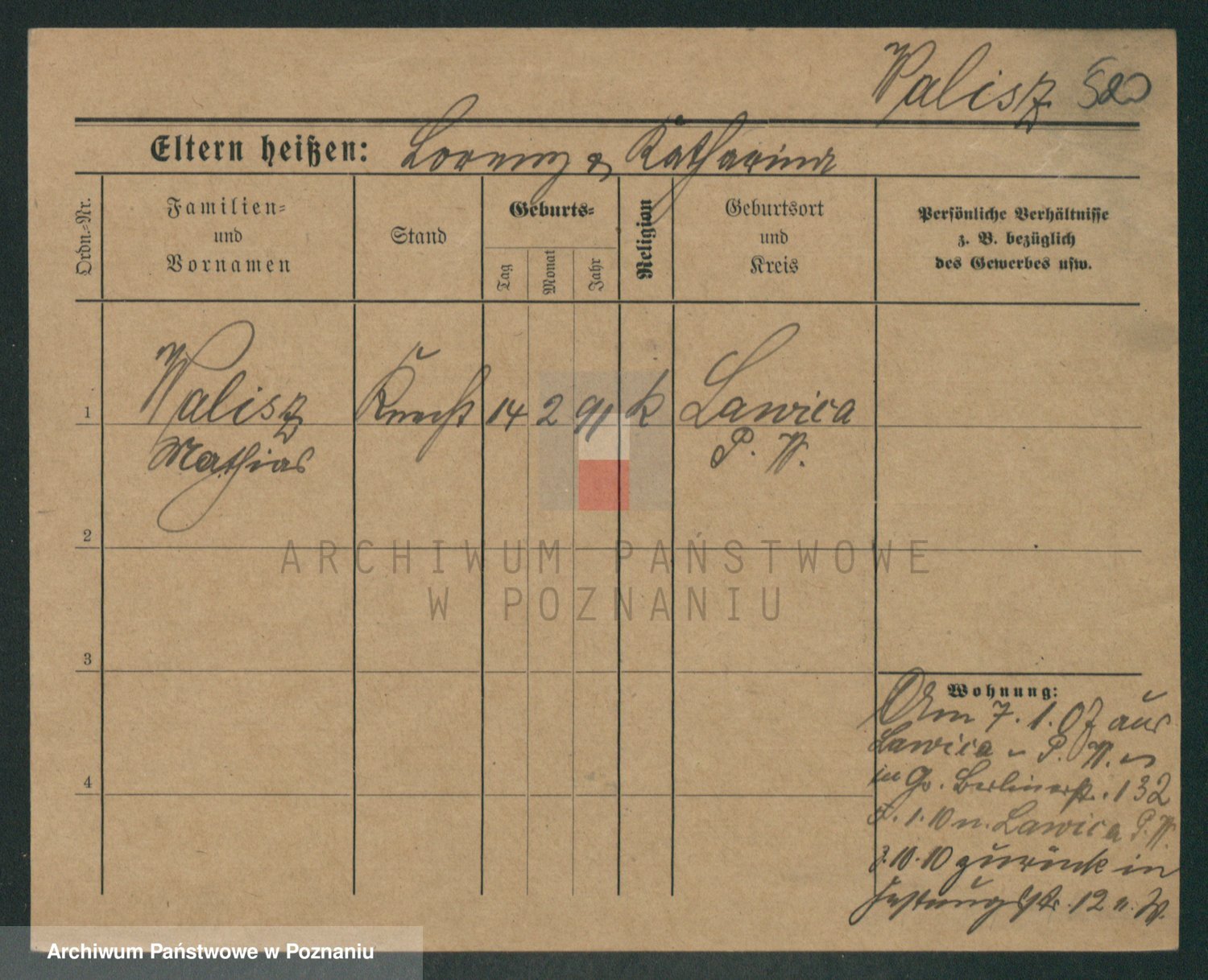 Podgląd karty osobowej dostępny jest po kliknięciu na nazwisko lub ikonkę karty. Można dokonywać powiększenia (ikony na górze) lub przechodzić między kolejnymi skanami (strzałki po bokach).
