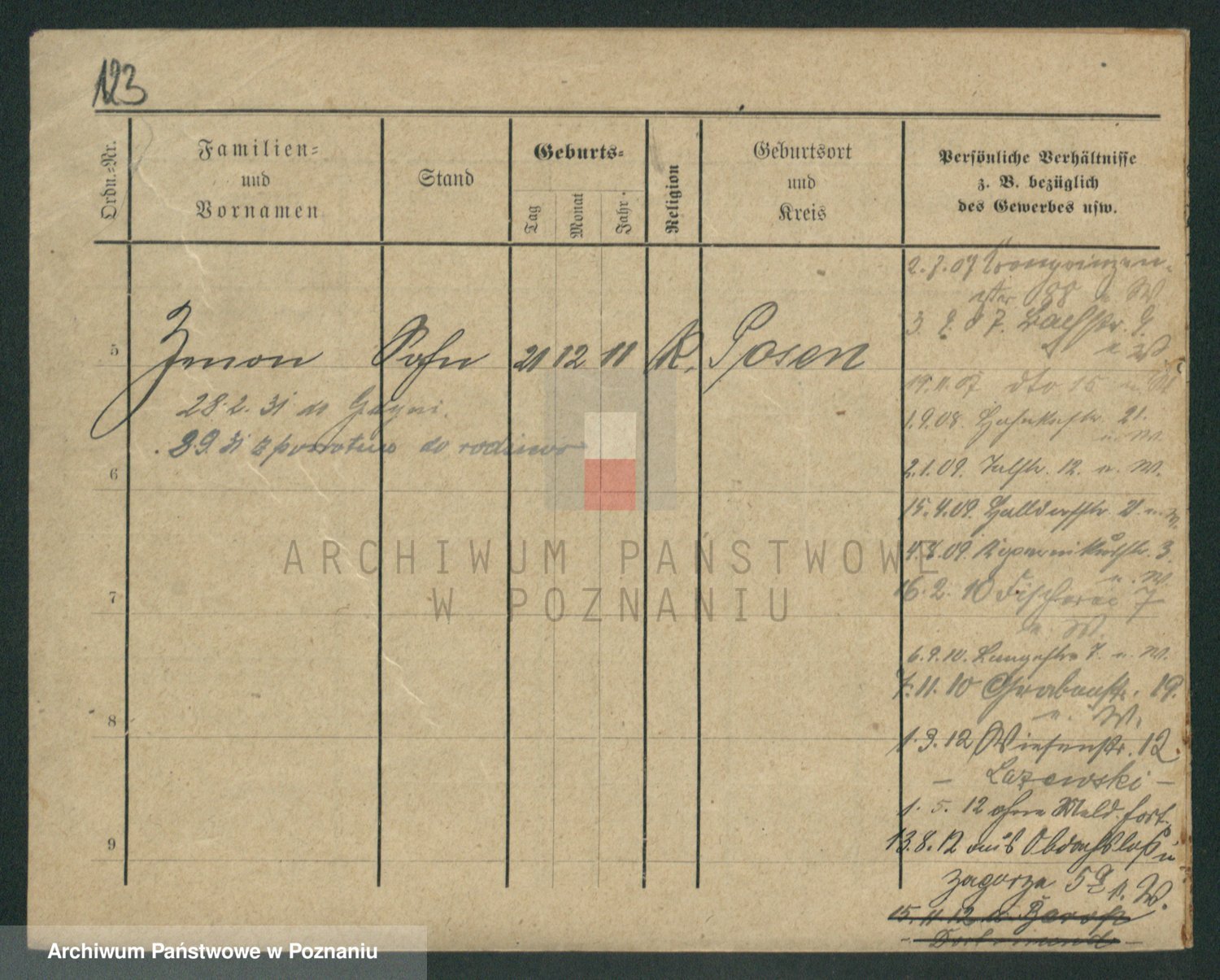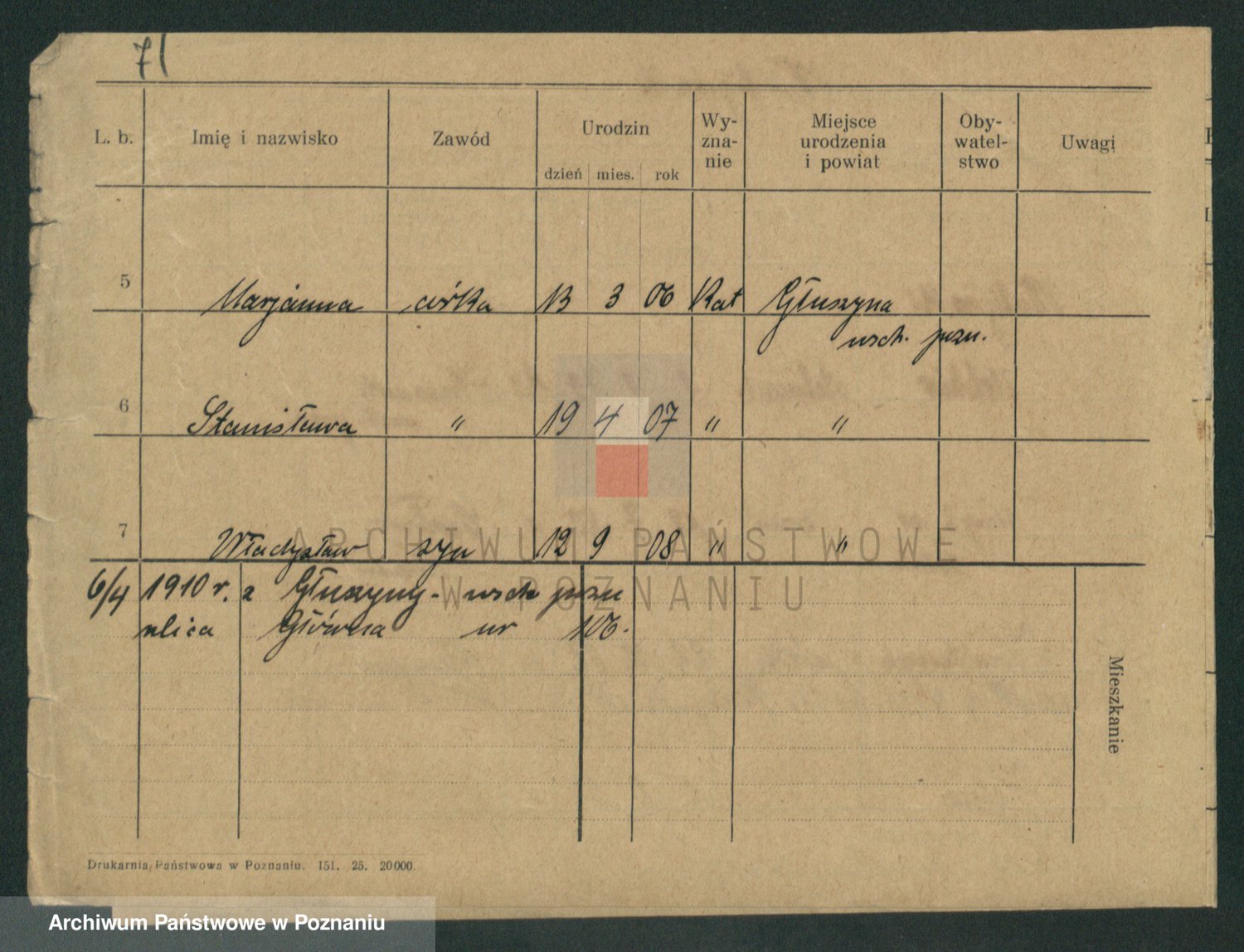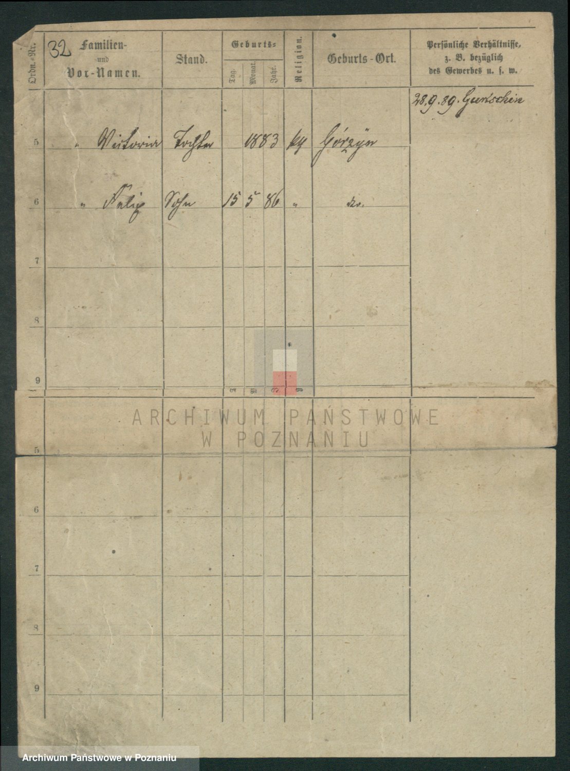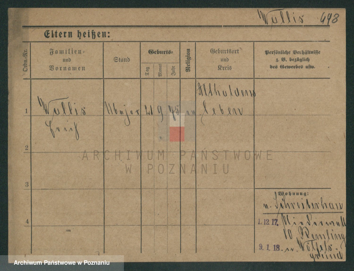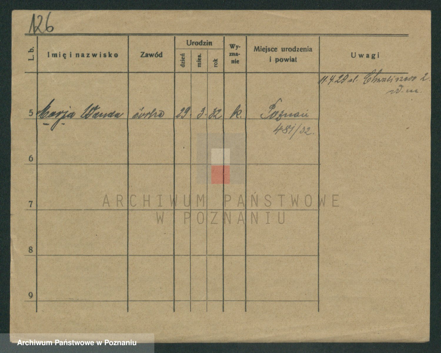 Podgląd karty osobowej dostępny jest po kliknięciu na nazwisko lub ikonkę karty. Można dokonywać powiększenia (ikony na górze) lub przechodzić między kolejnymi skanami (strzałki po bokach).