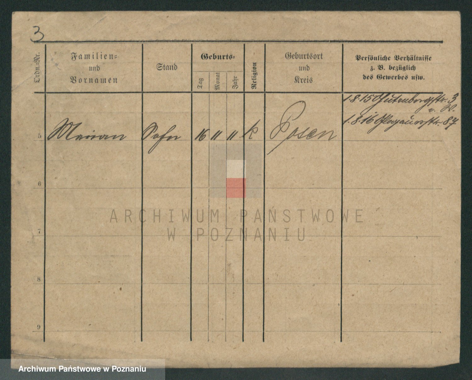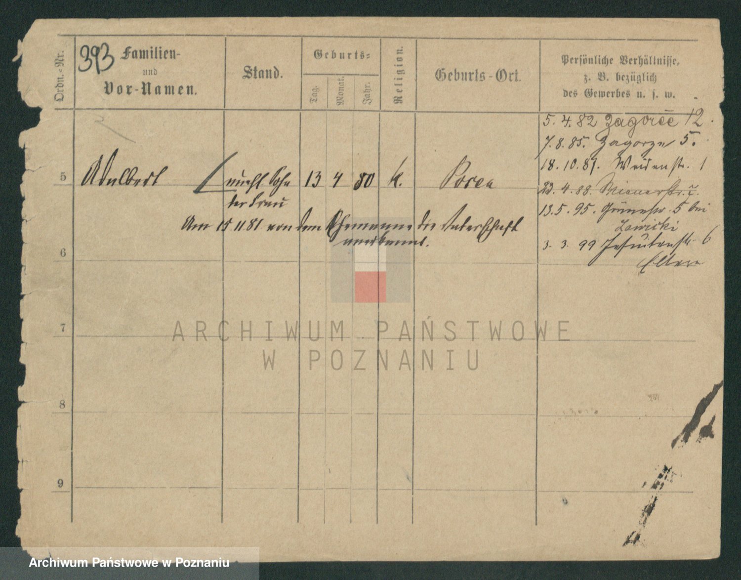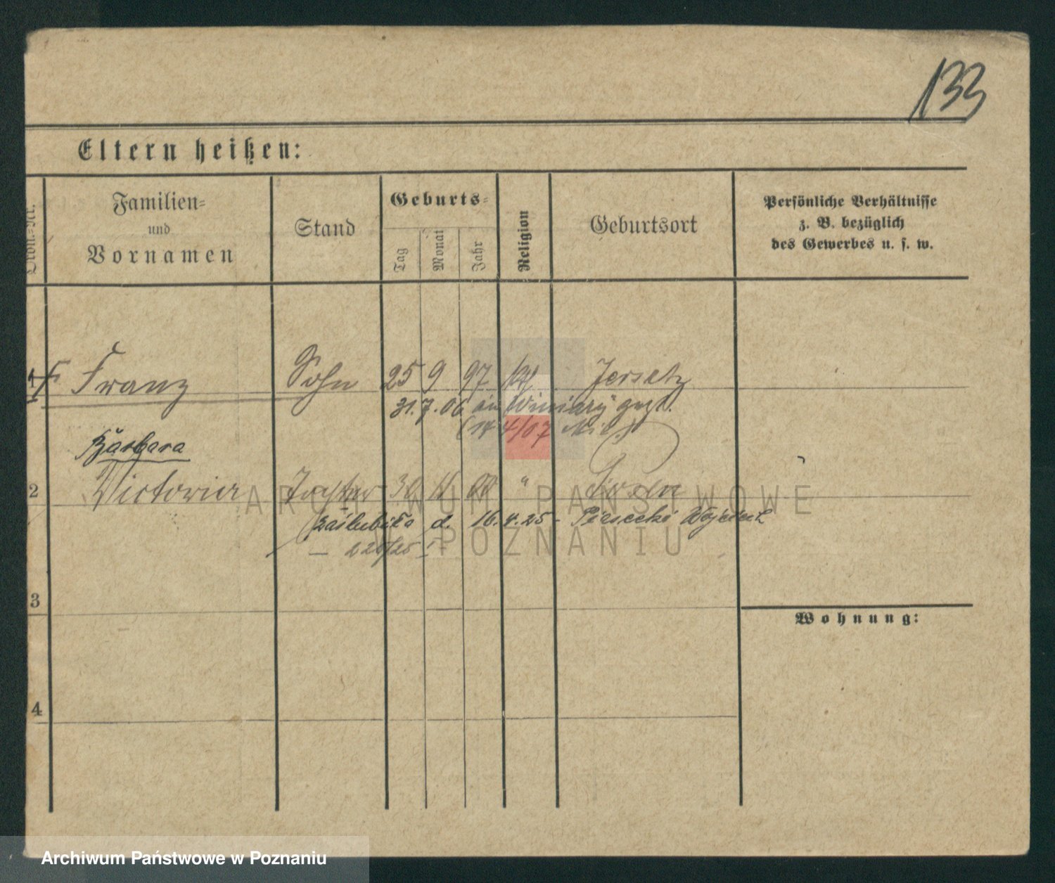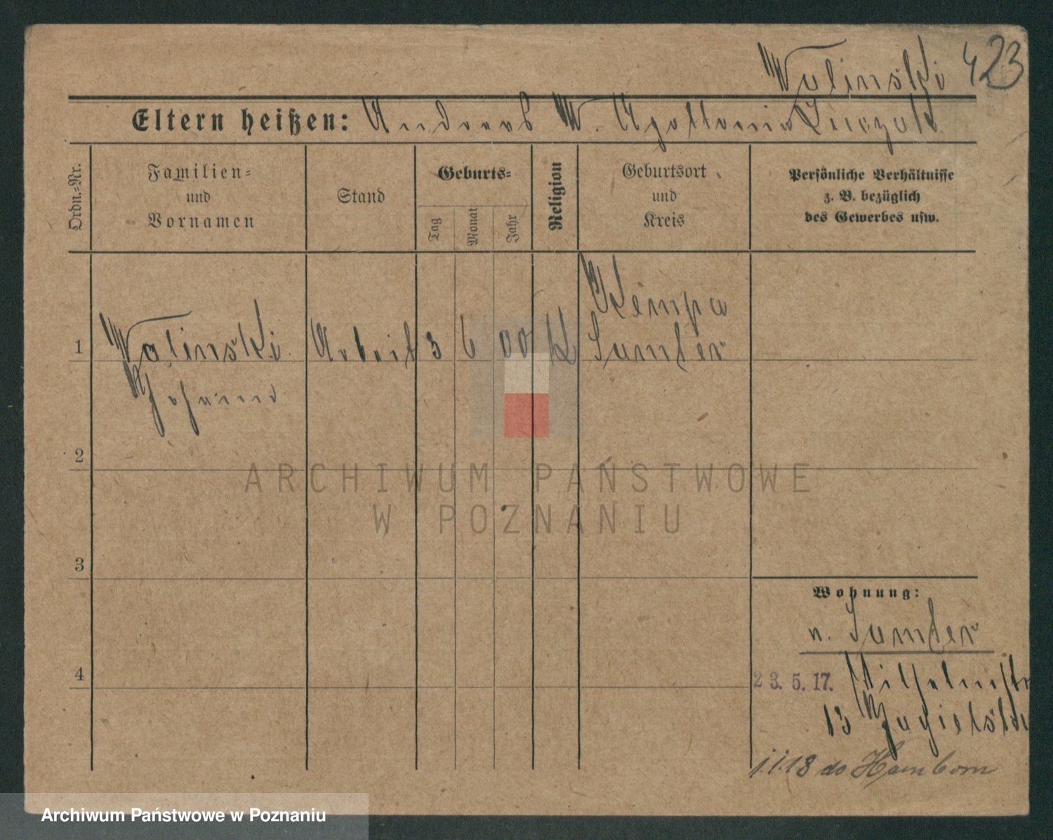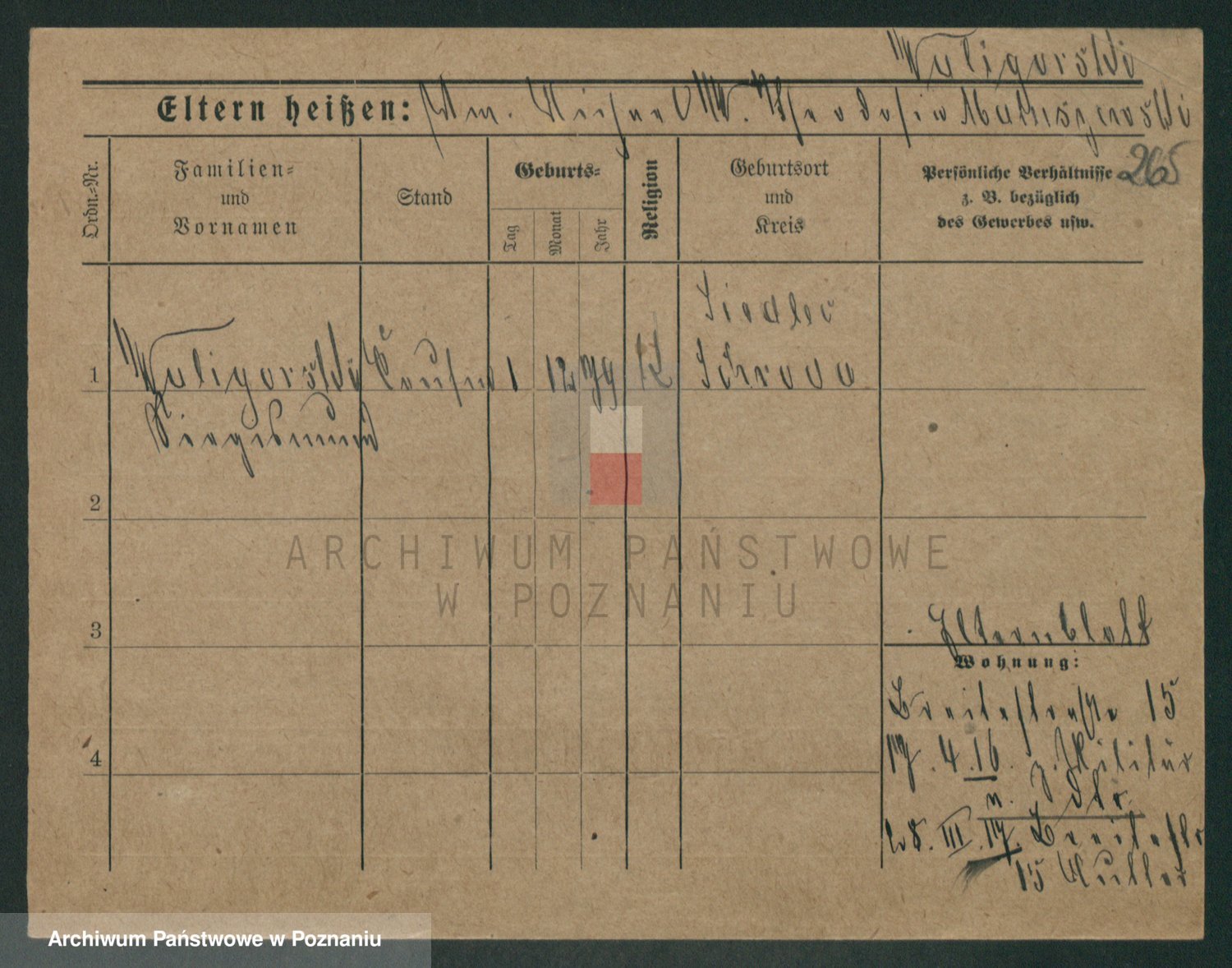 Podgląd karty osobowej dostępny jest po kliknięciu na nazwisko lub ikonkę karty. Można dokonywać powiększenia (ikony na górze) lub przechodzić między kolejnymi skanami (strzałki po bokach).