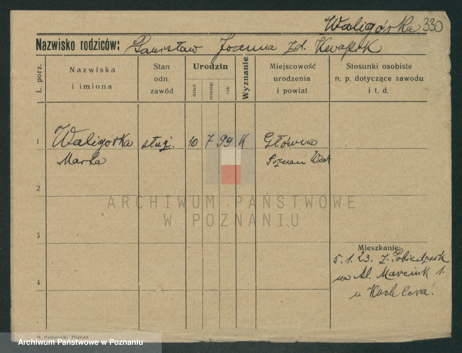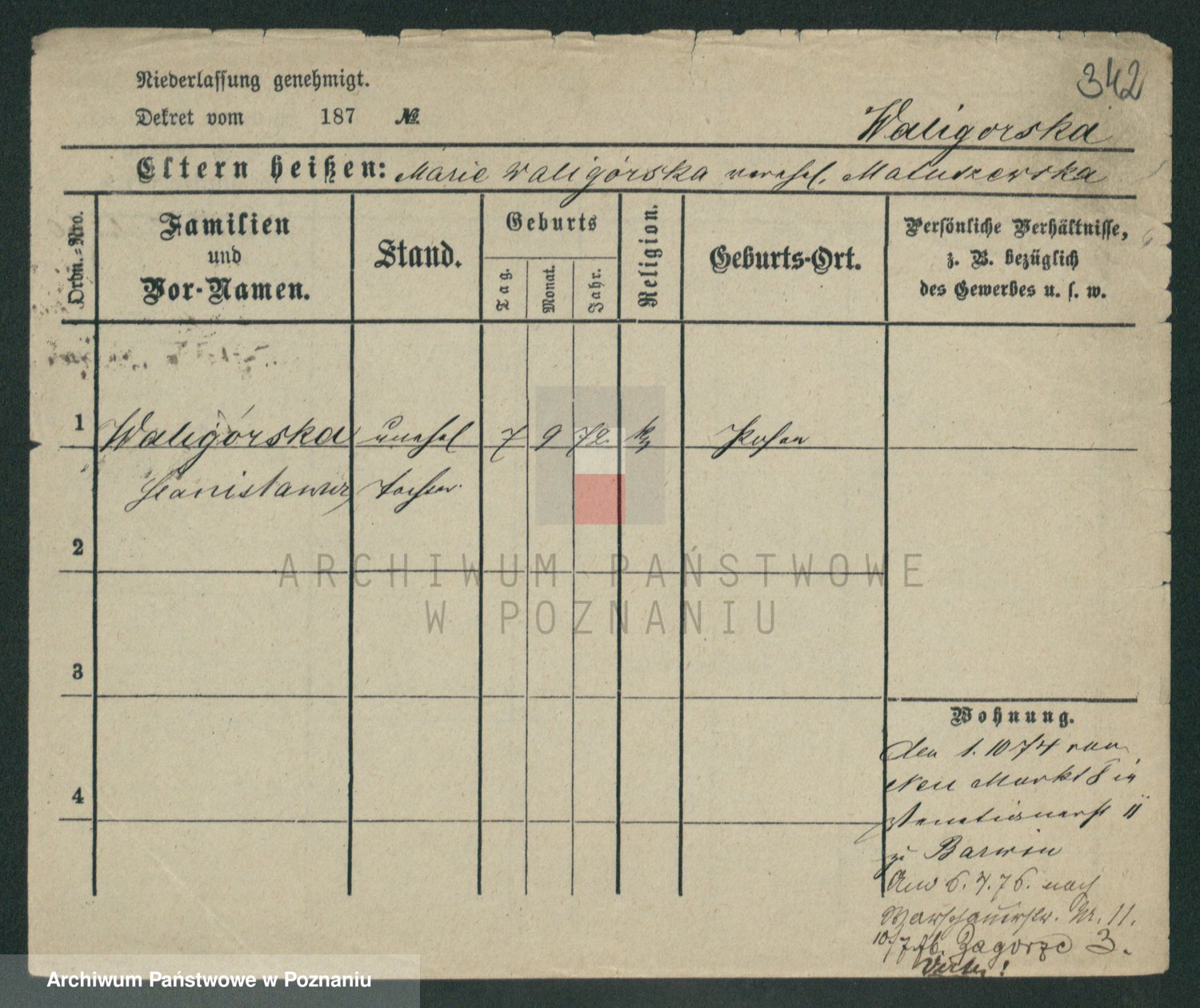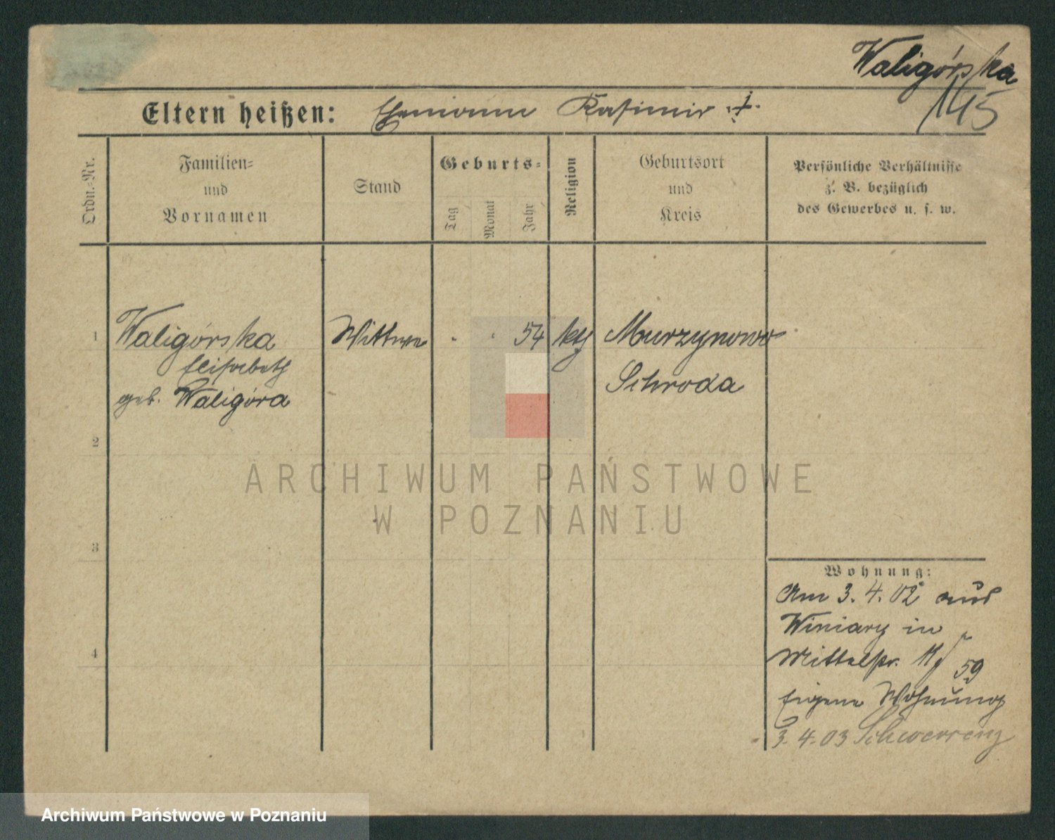 Waligórski z.d. Garstecka, Marja