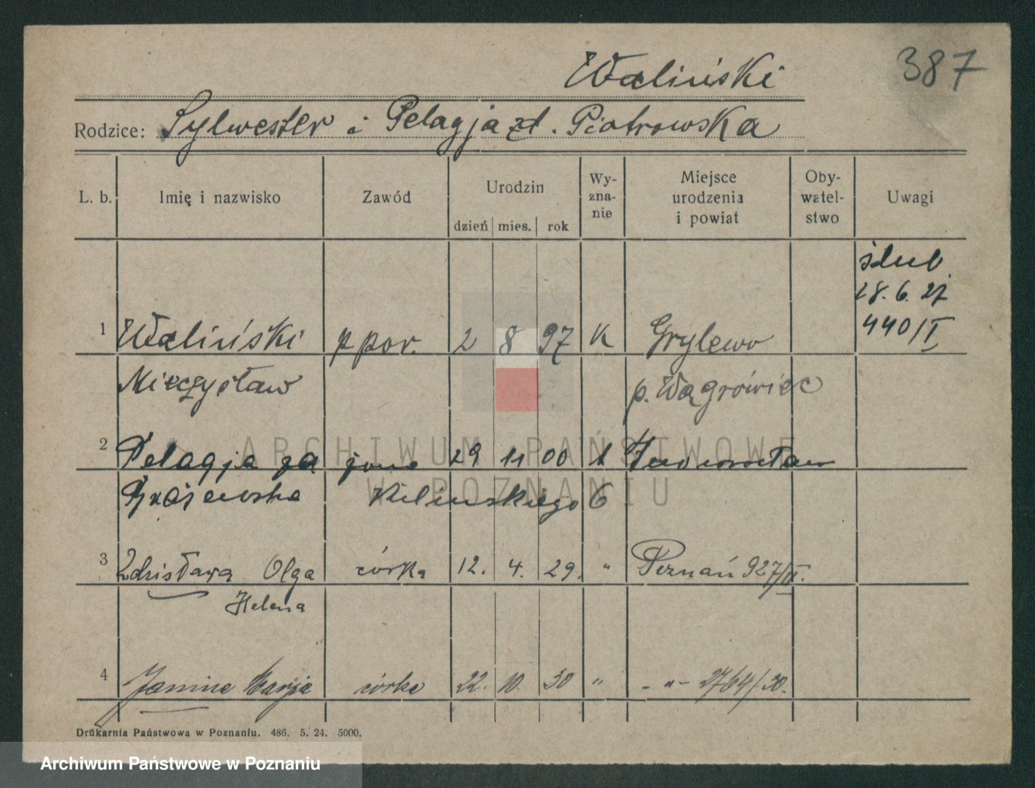 Waligorski z.d. Waszkowska, Bolesława
