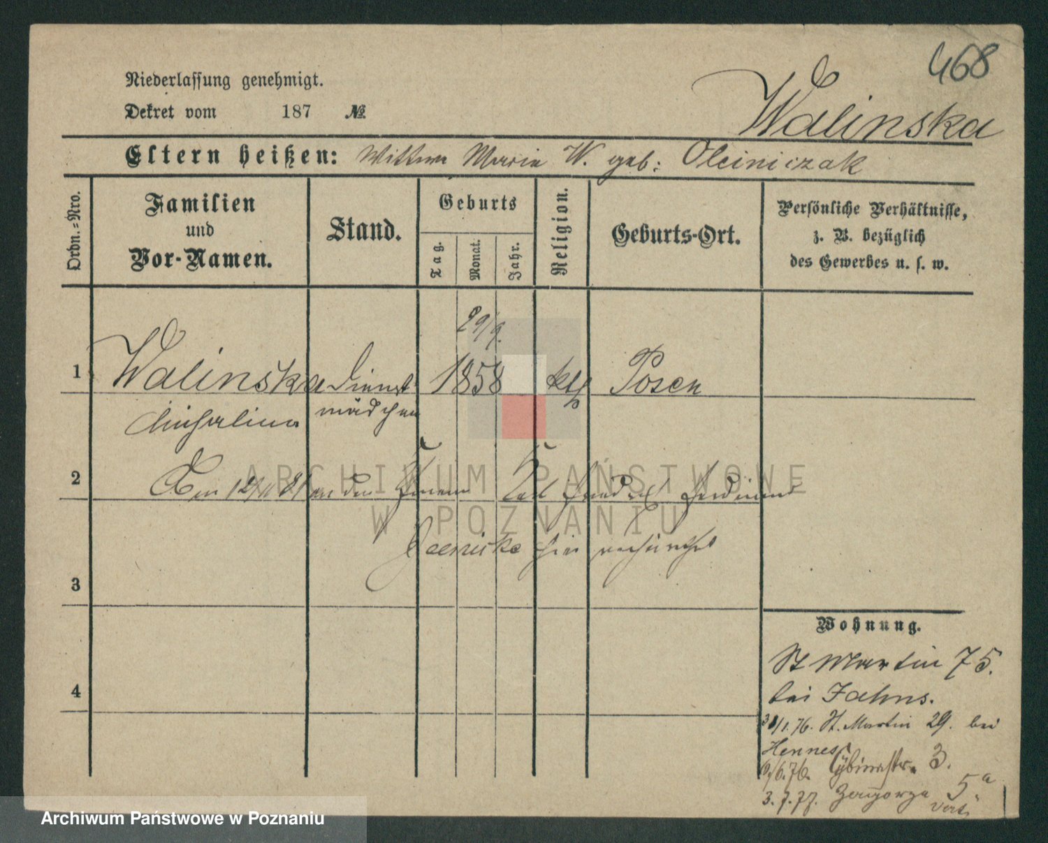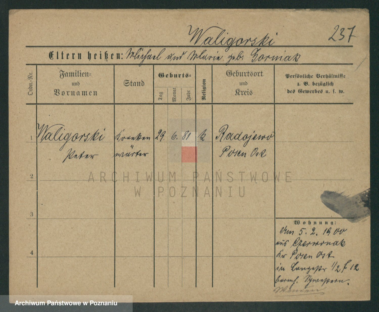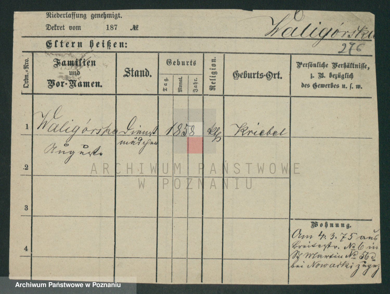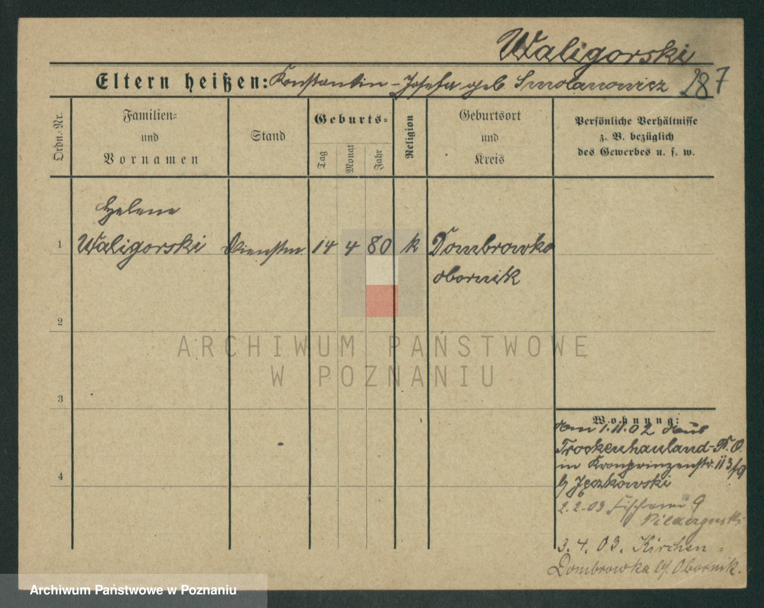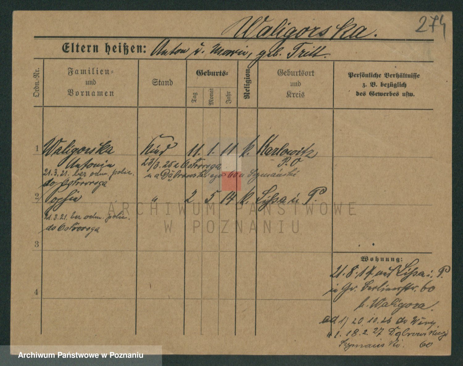Waligórski z.d. Tritt, Marie