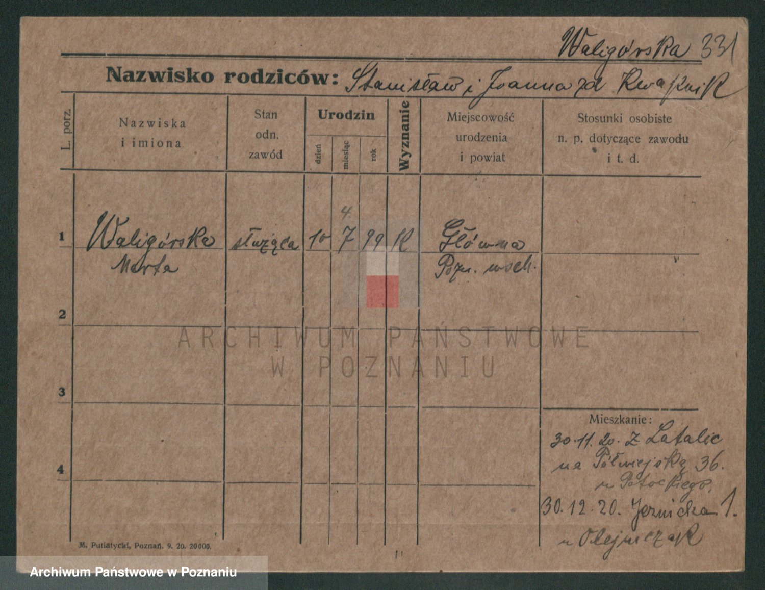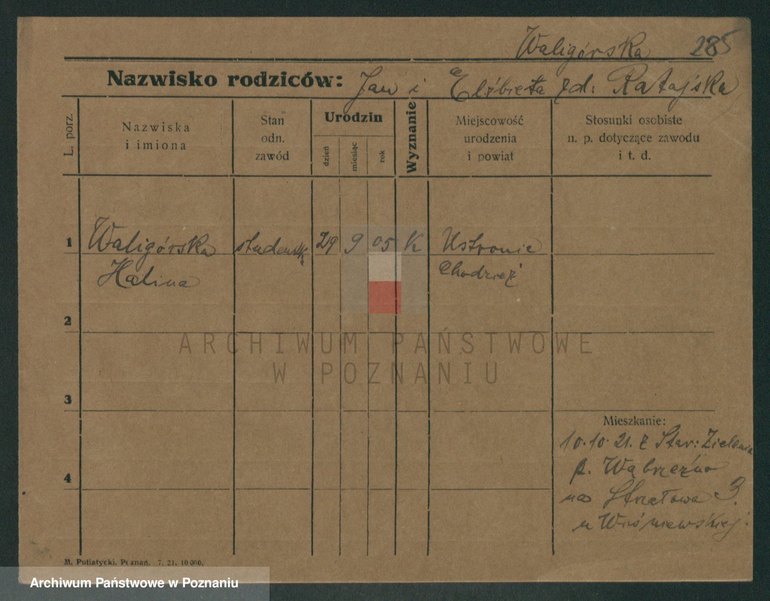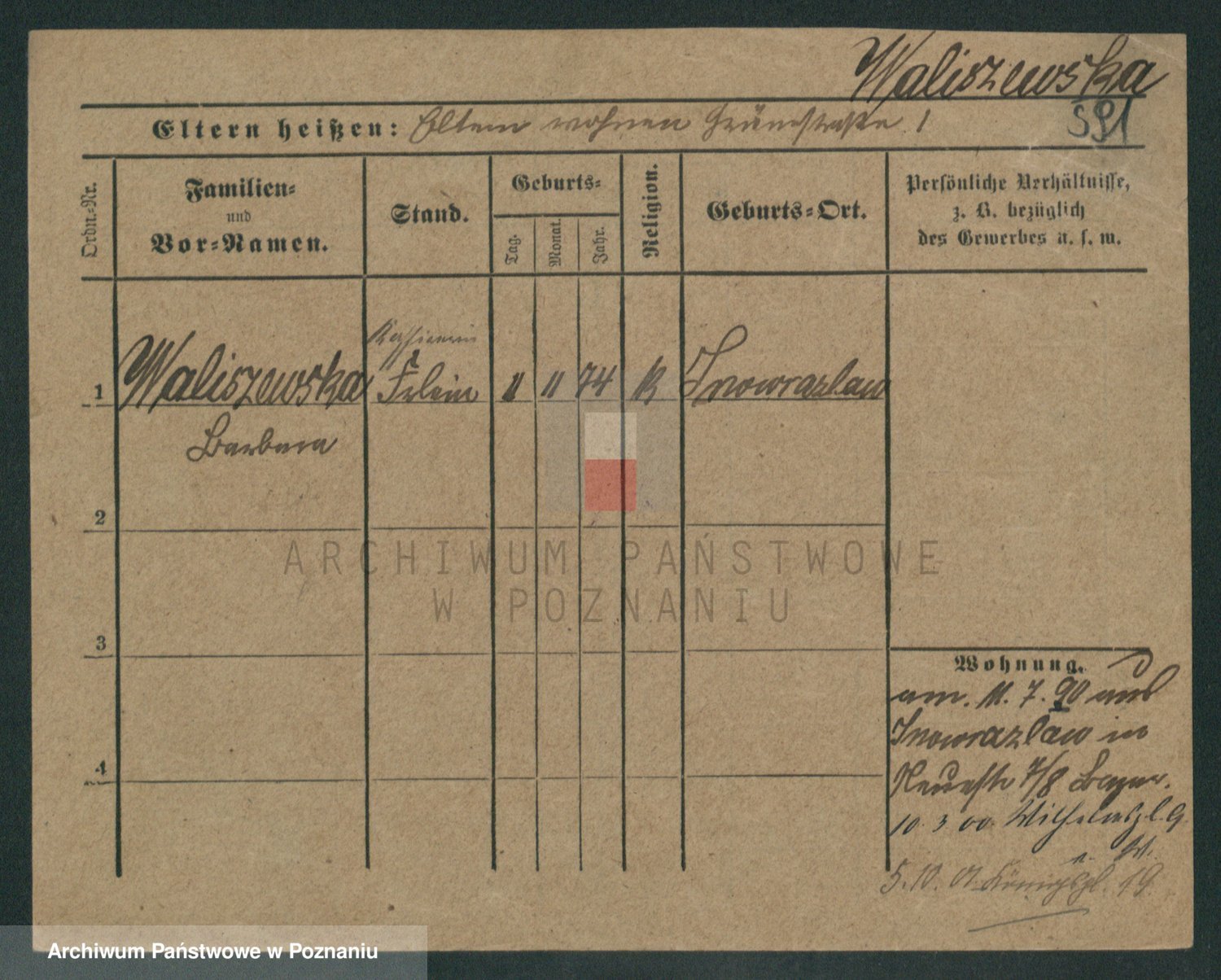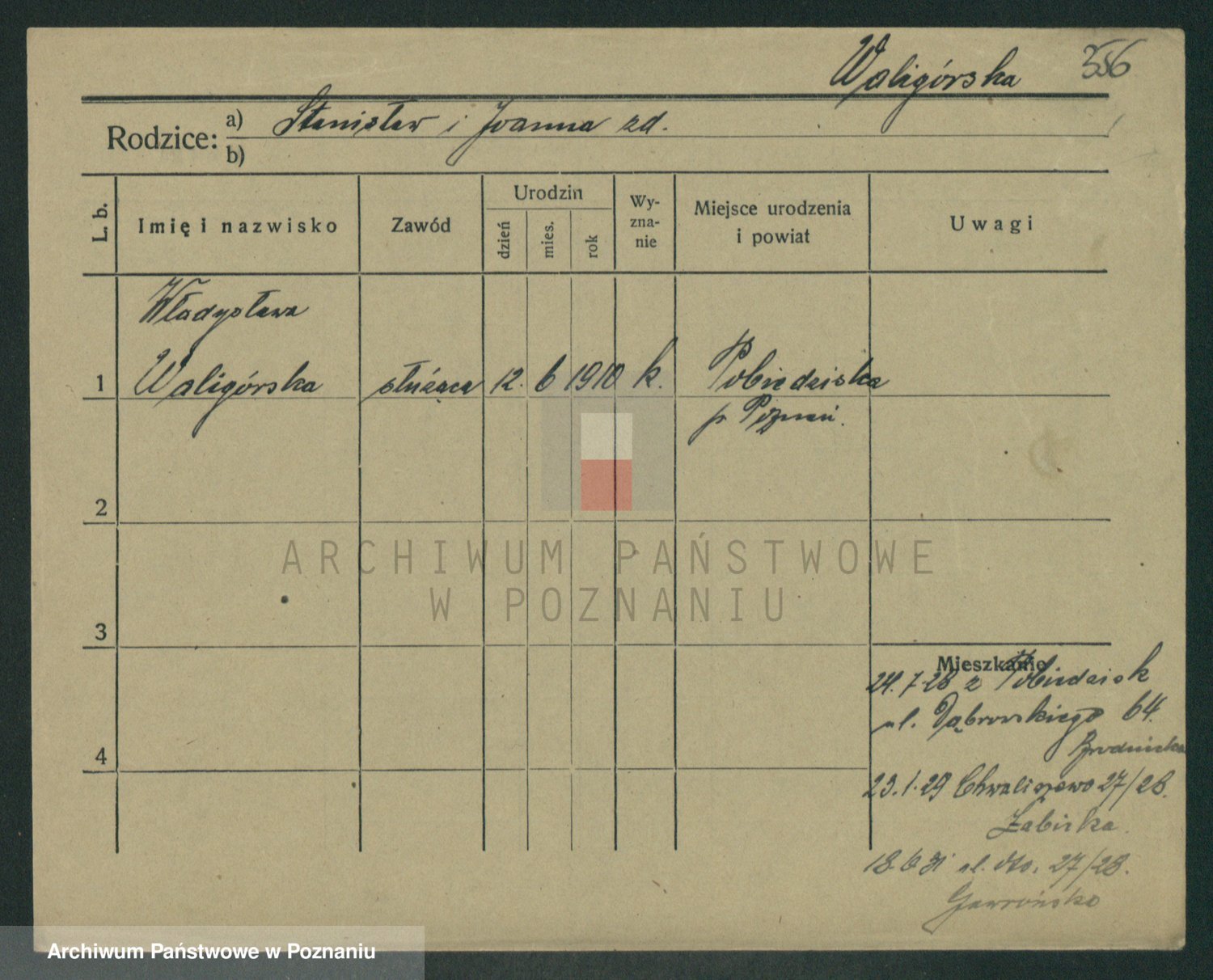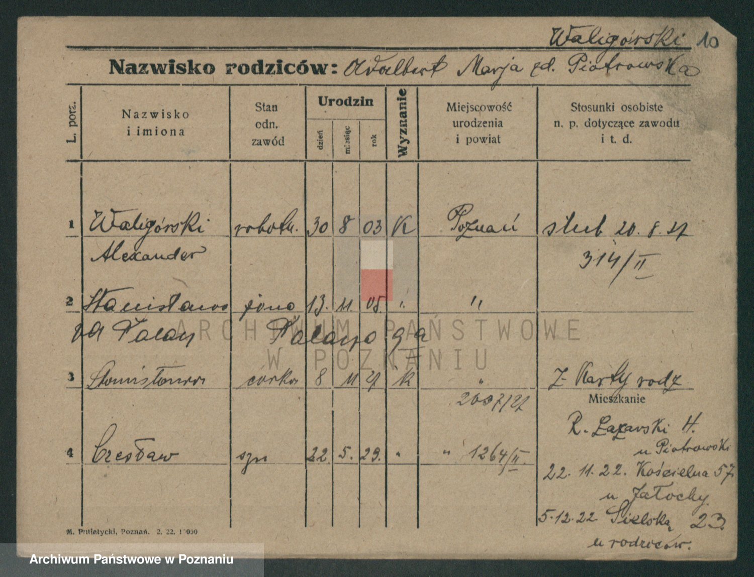 Waligórski z.d. Palacz, Stanisława