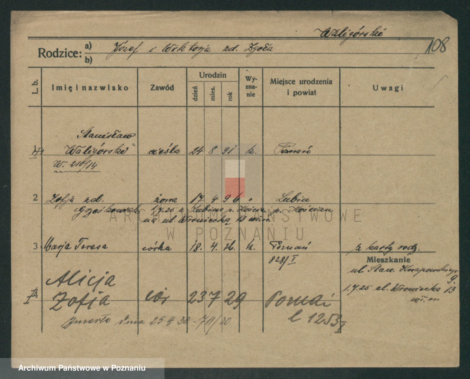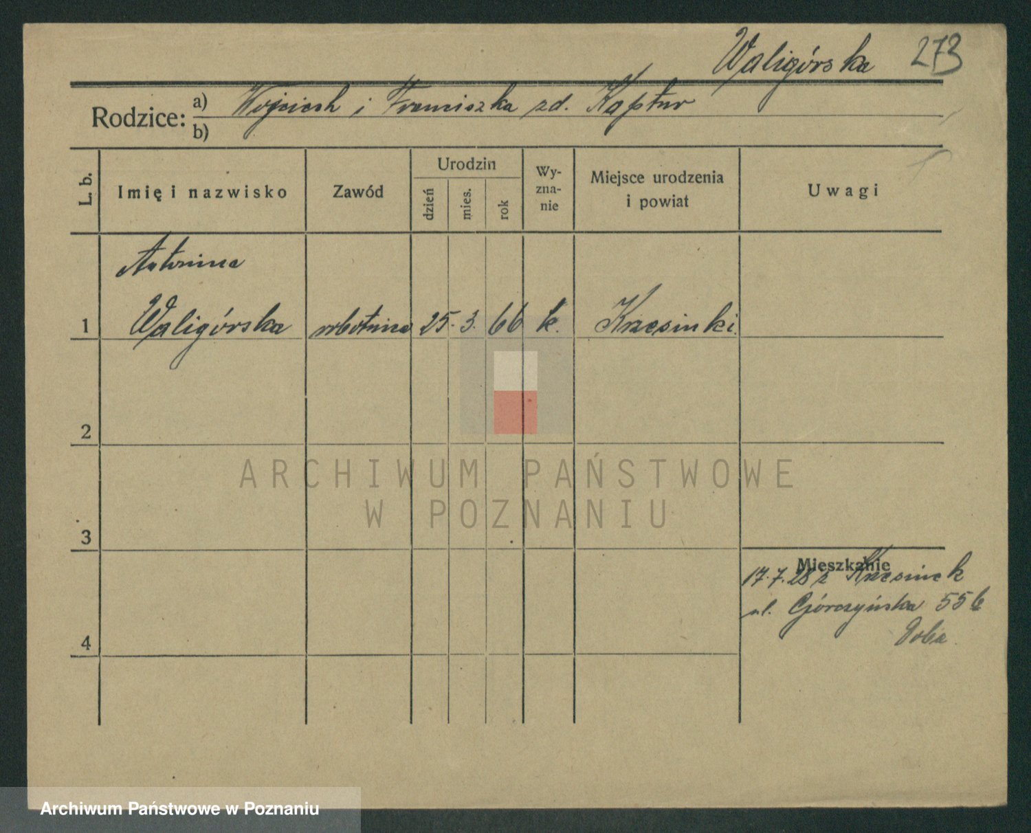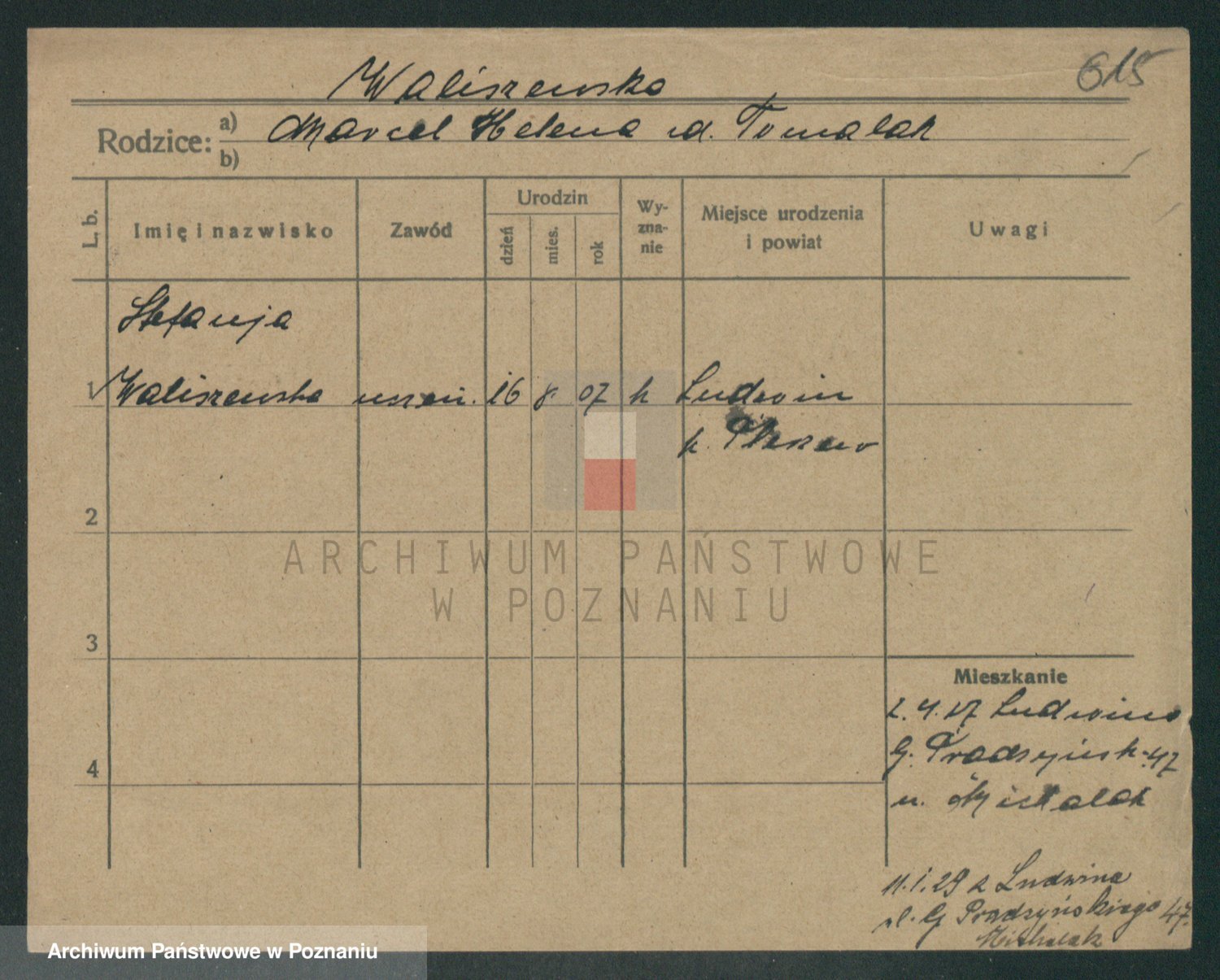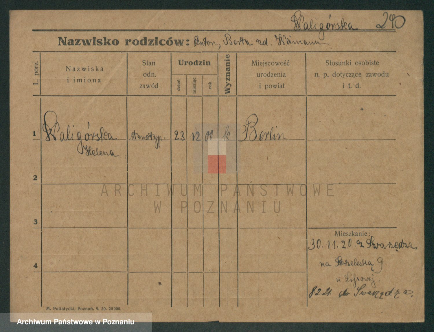 Waligórski z.d. Palacz, Stanisława