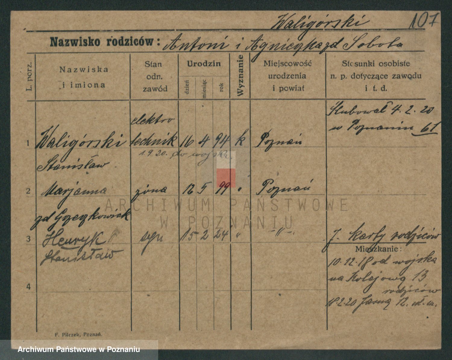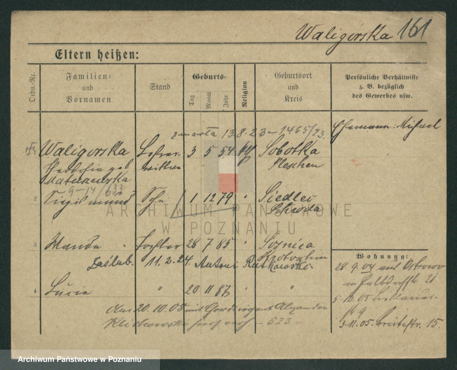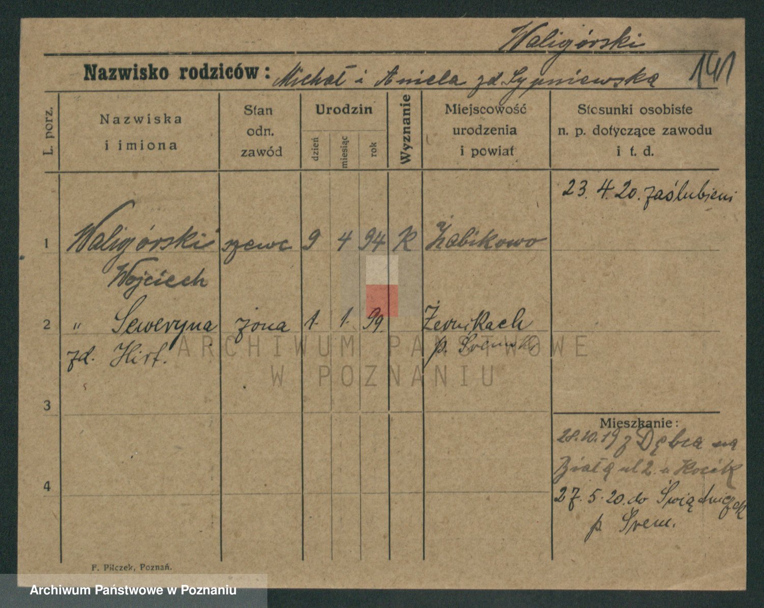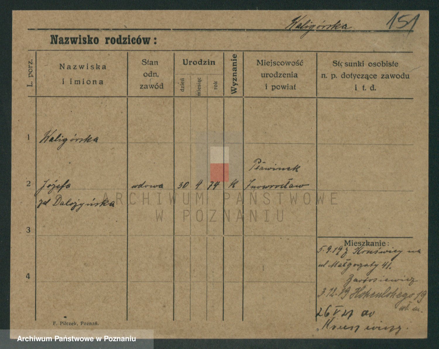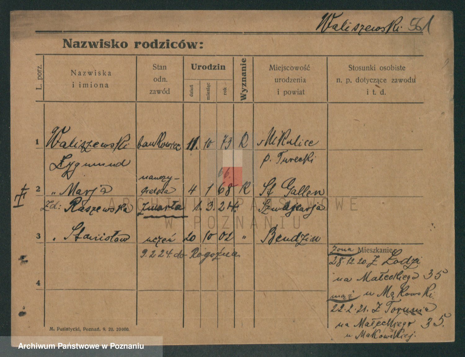 Waligórski z.d. Palacz, Stanisława