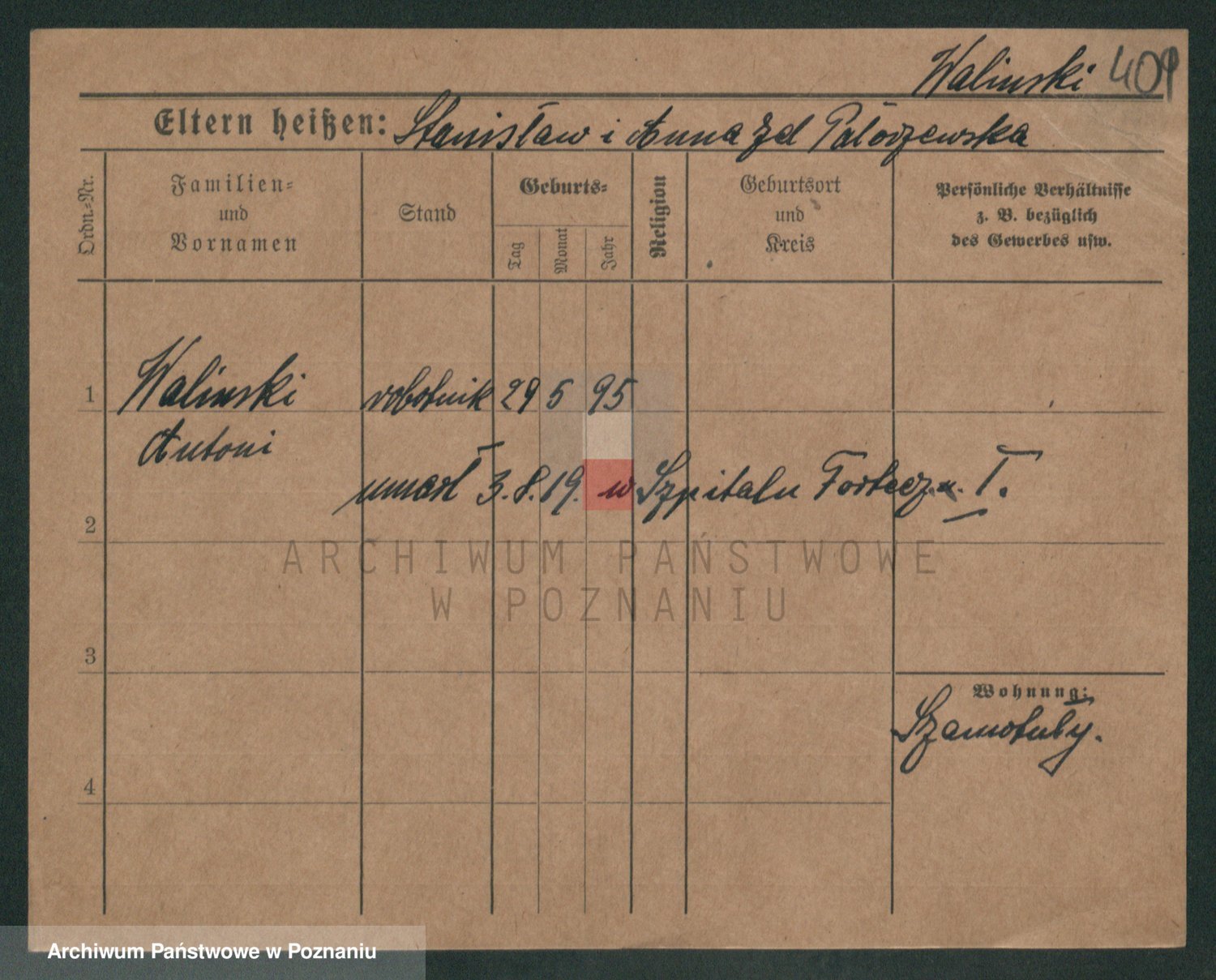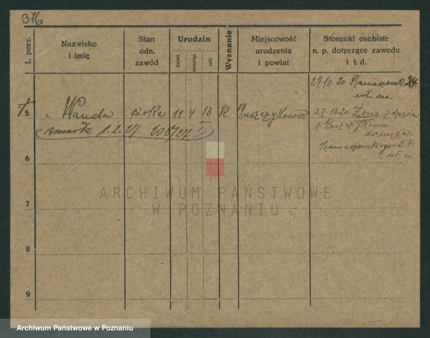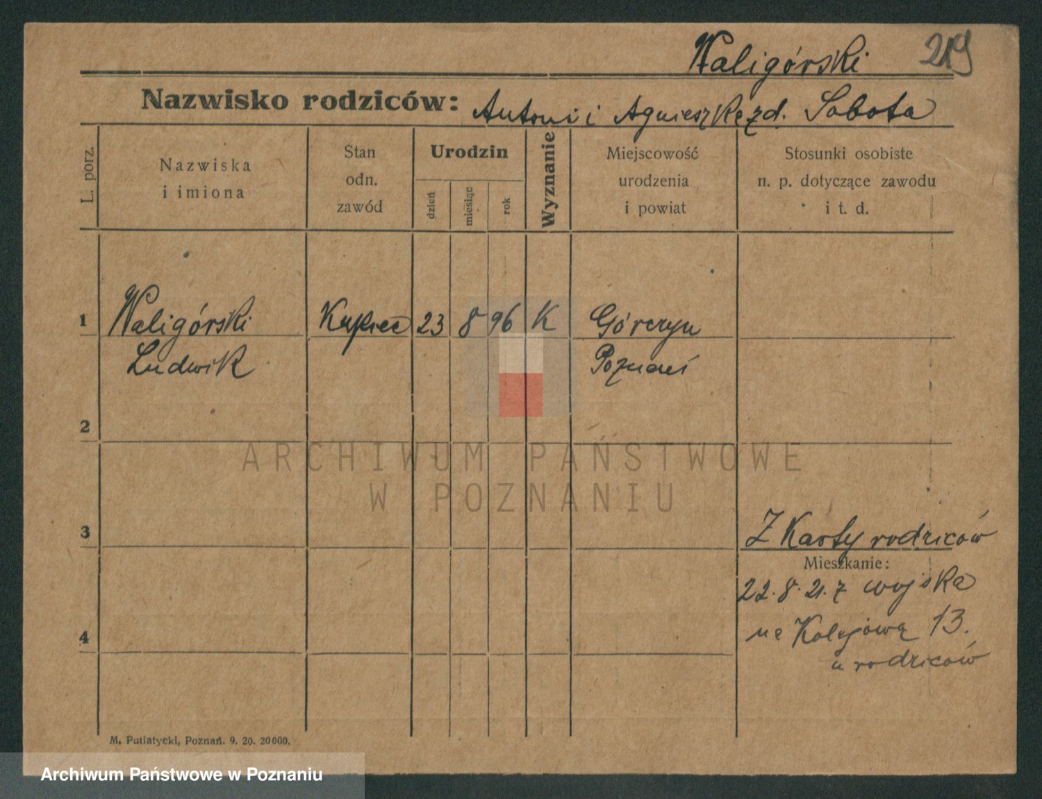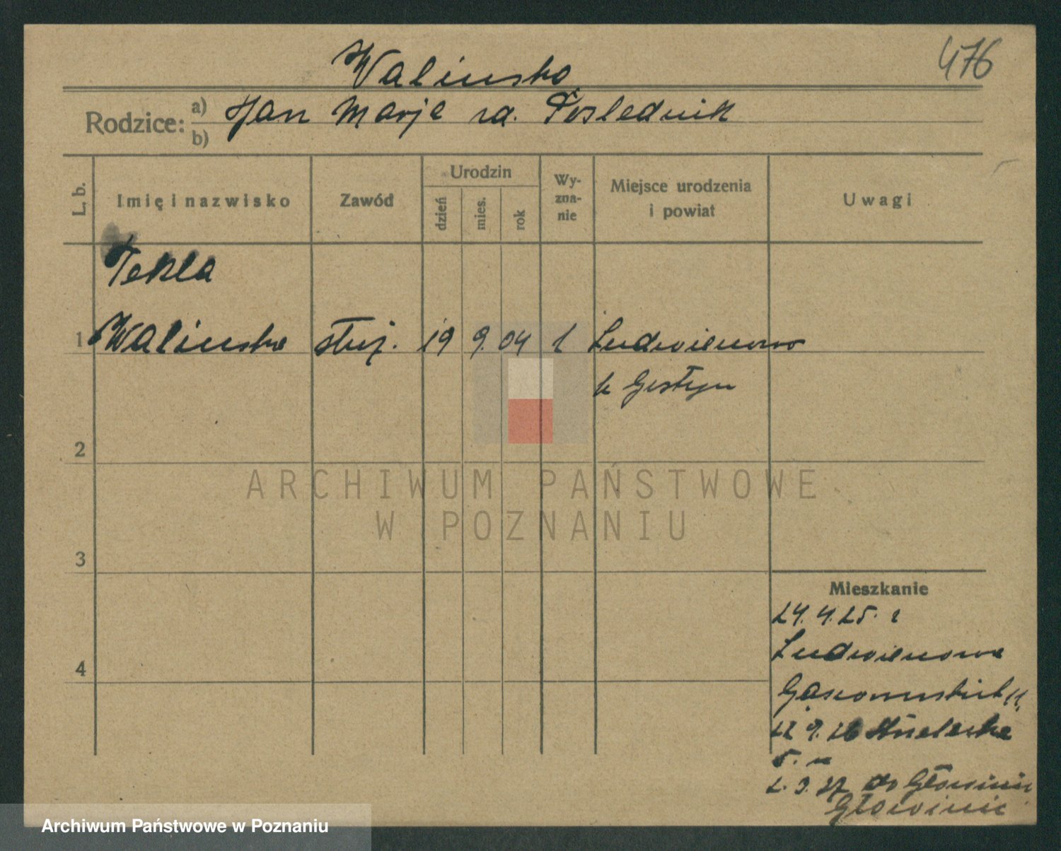 Waligórski z.d. Palacz, Stanisława