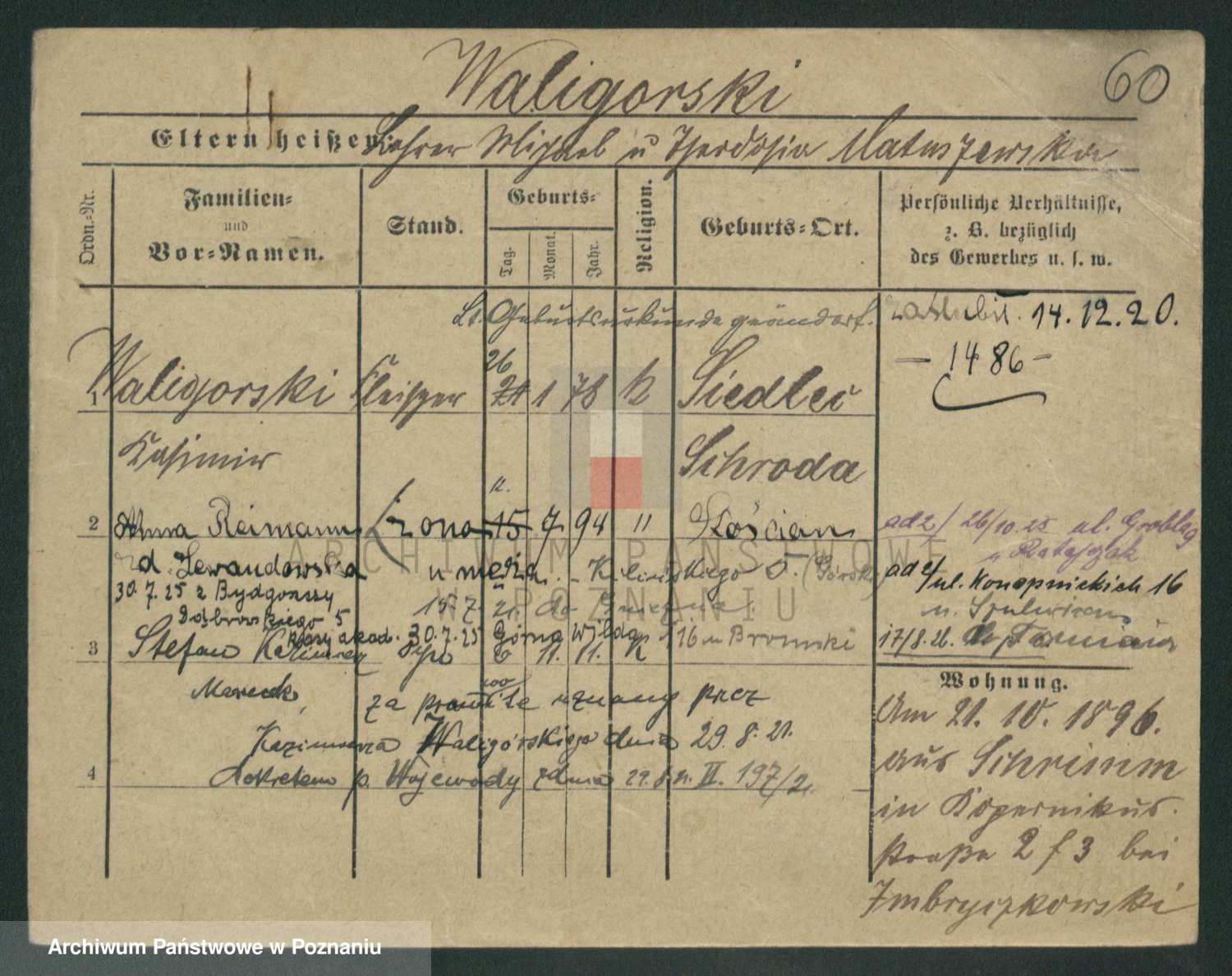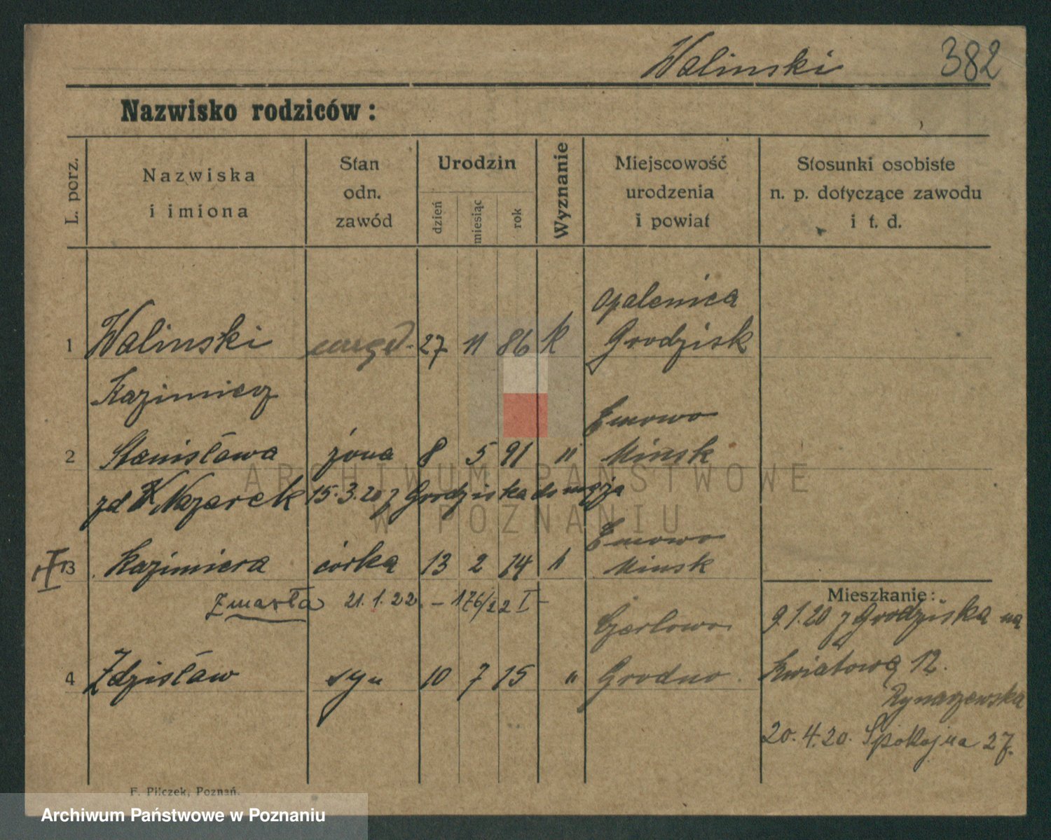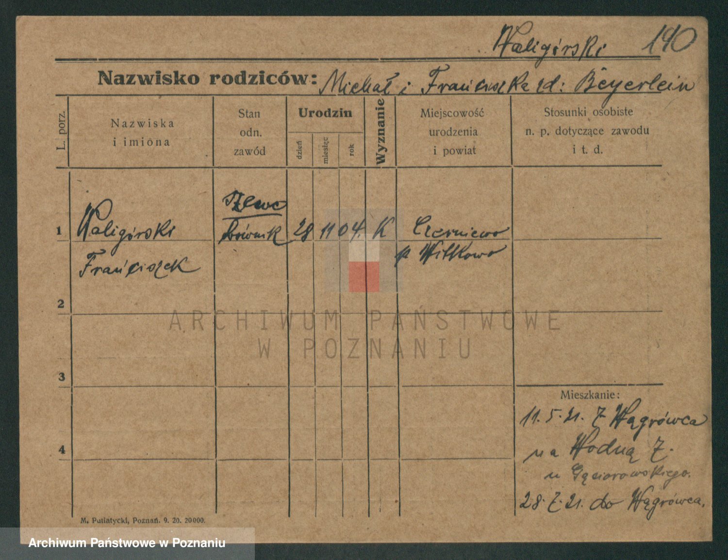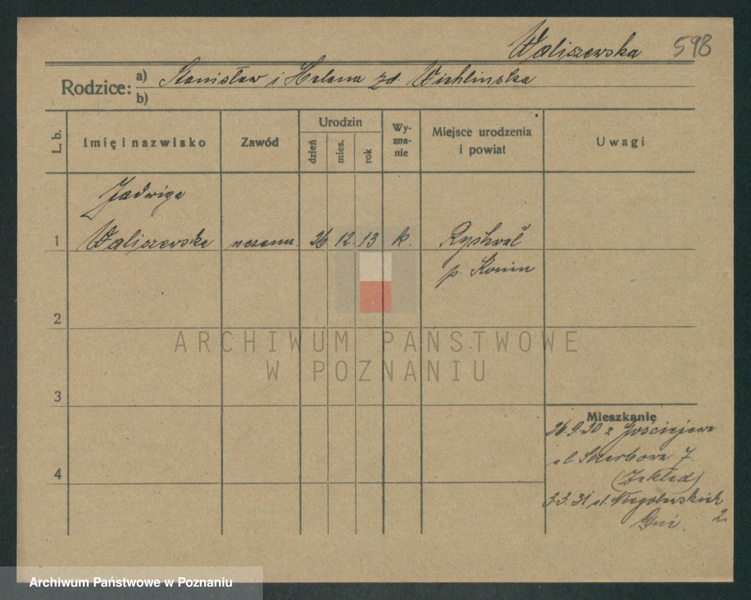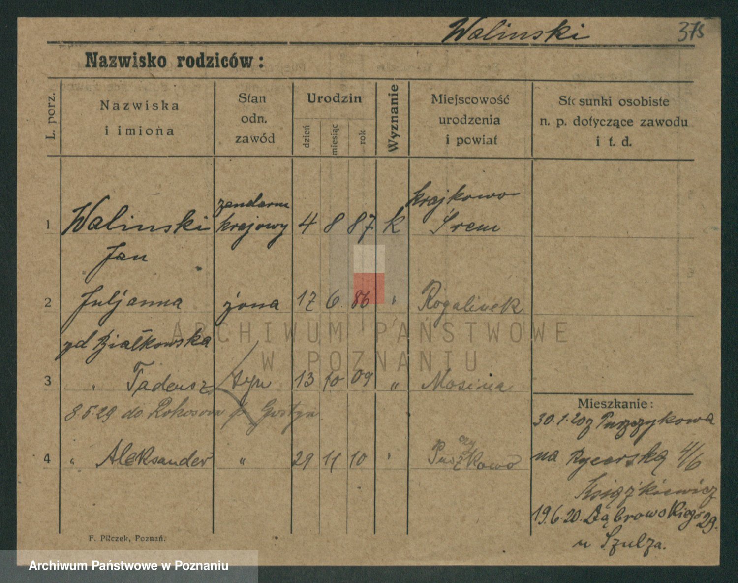 Waligórski z.d. Palacz, Stanisława