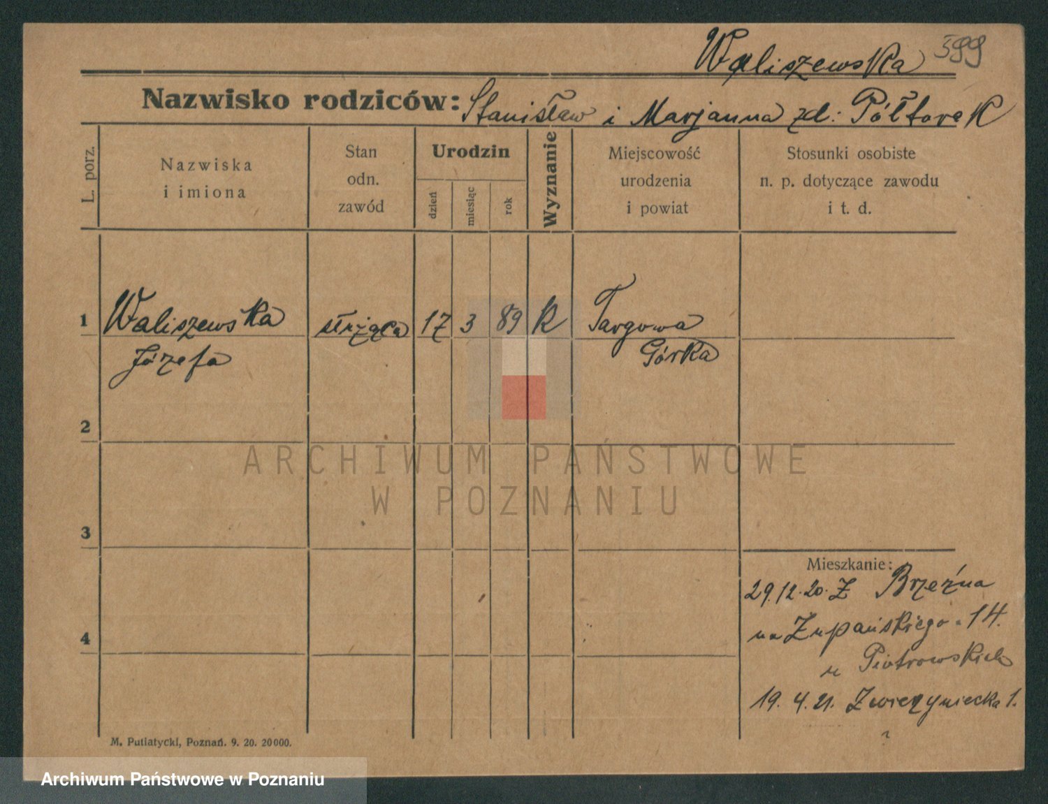 Waligórski z.d. Tórz, Józefa