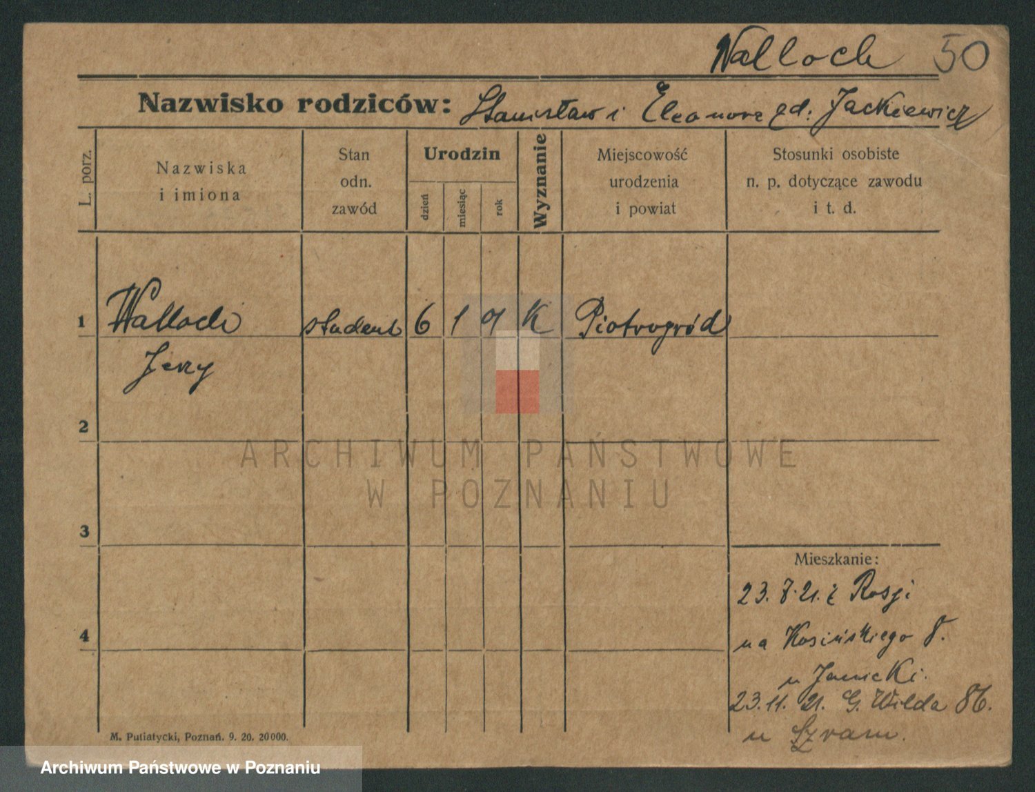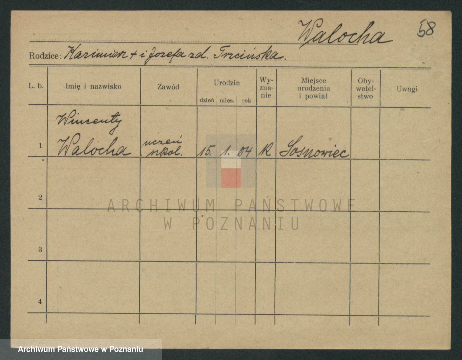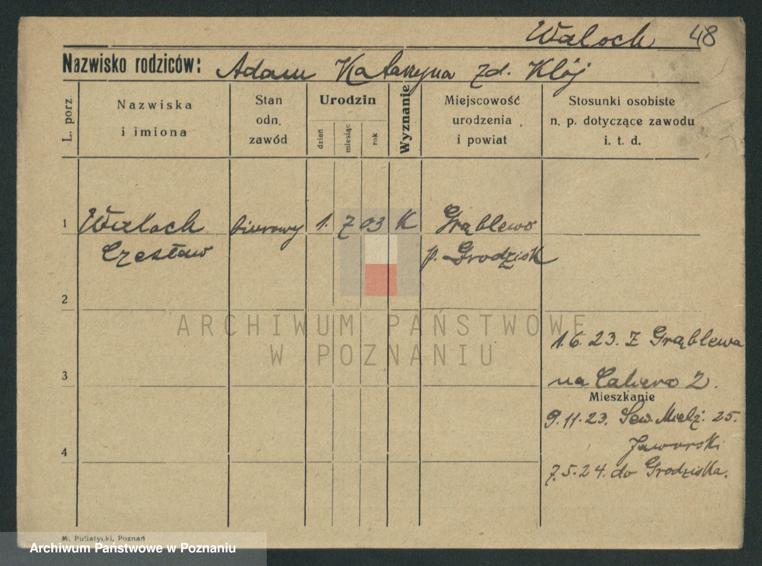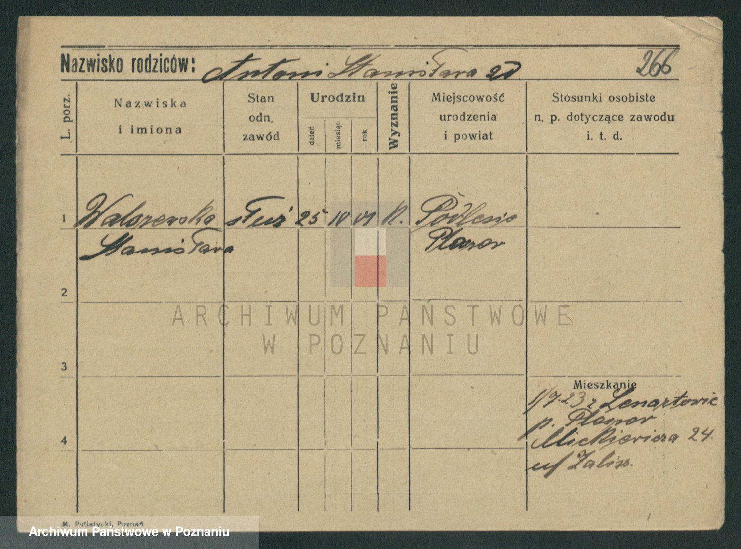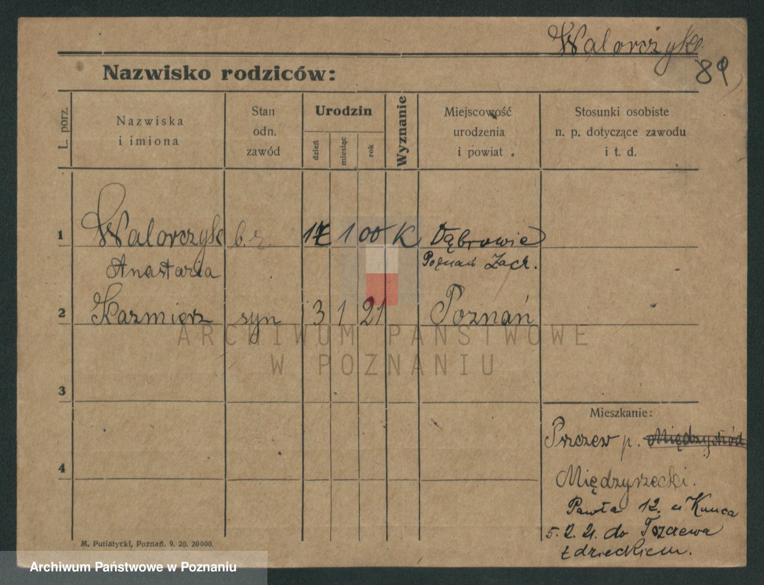 Podgląd karty osobowej dostępny jest po kliknięciu na nazwisko lub ikonkę karty. Można dokonywać powiększenia (ikony na górze) lub przechodzić między kolejnymi skanami (strzałki po bokach).
