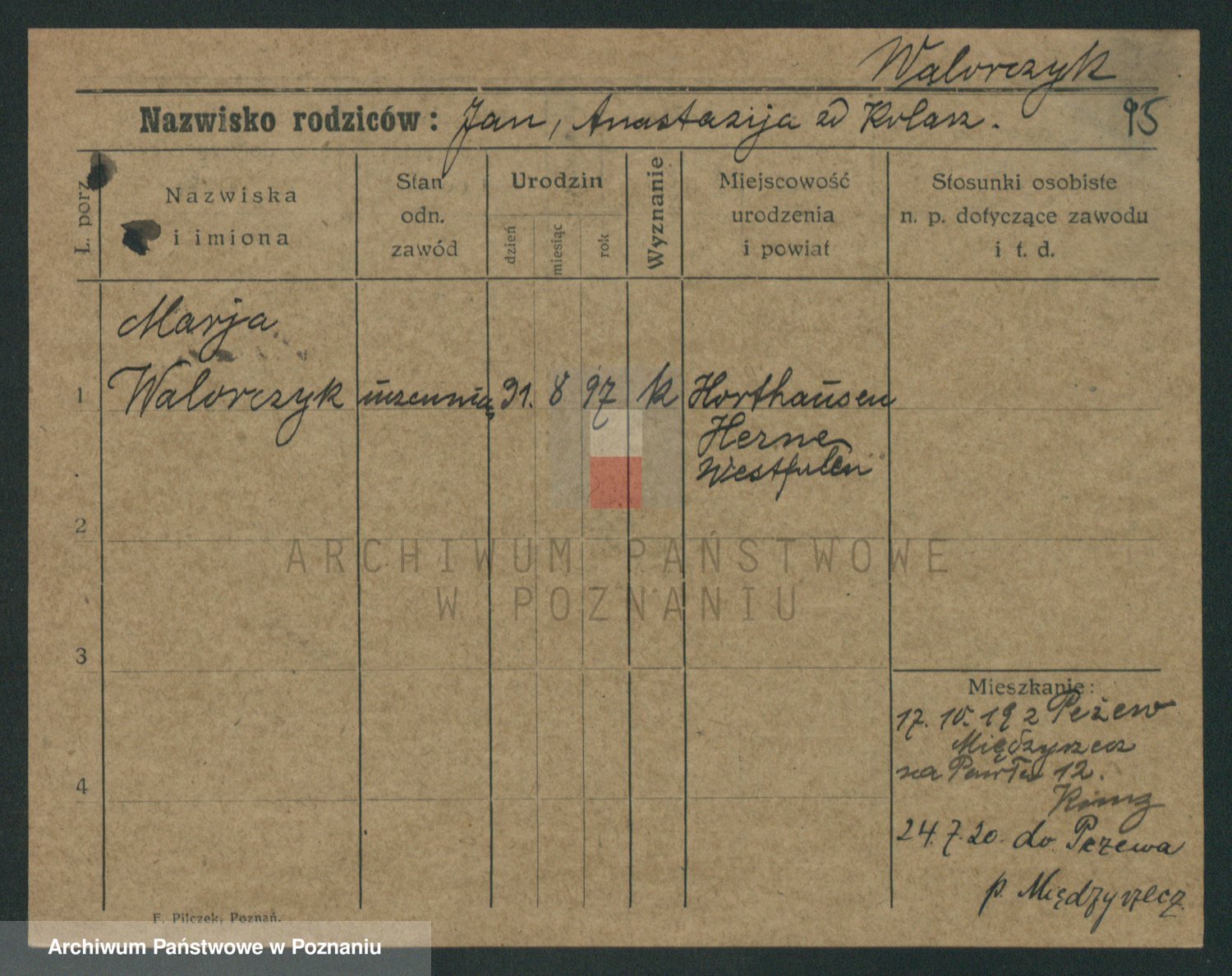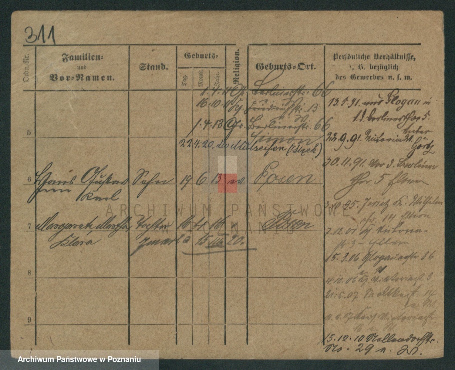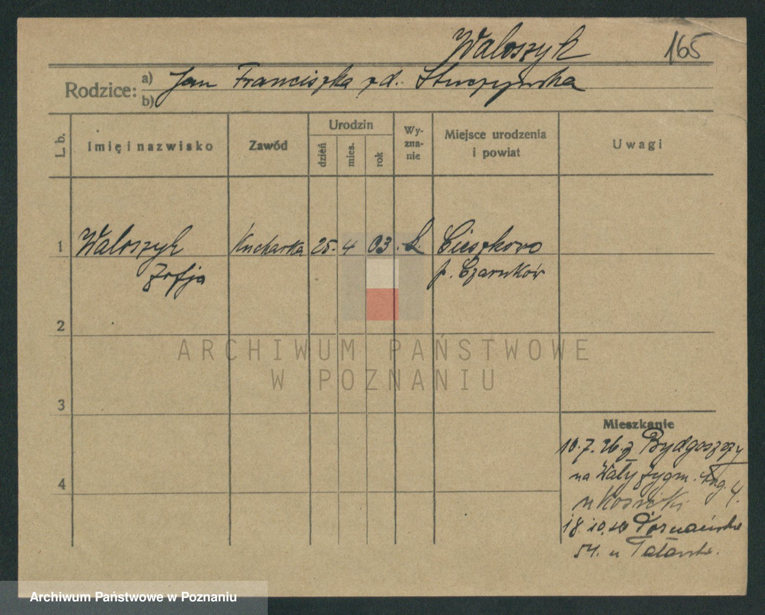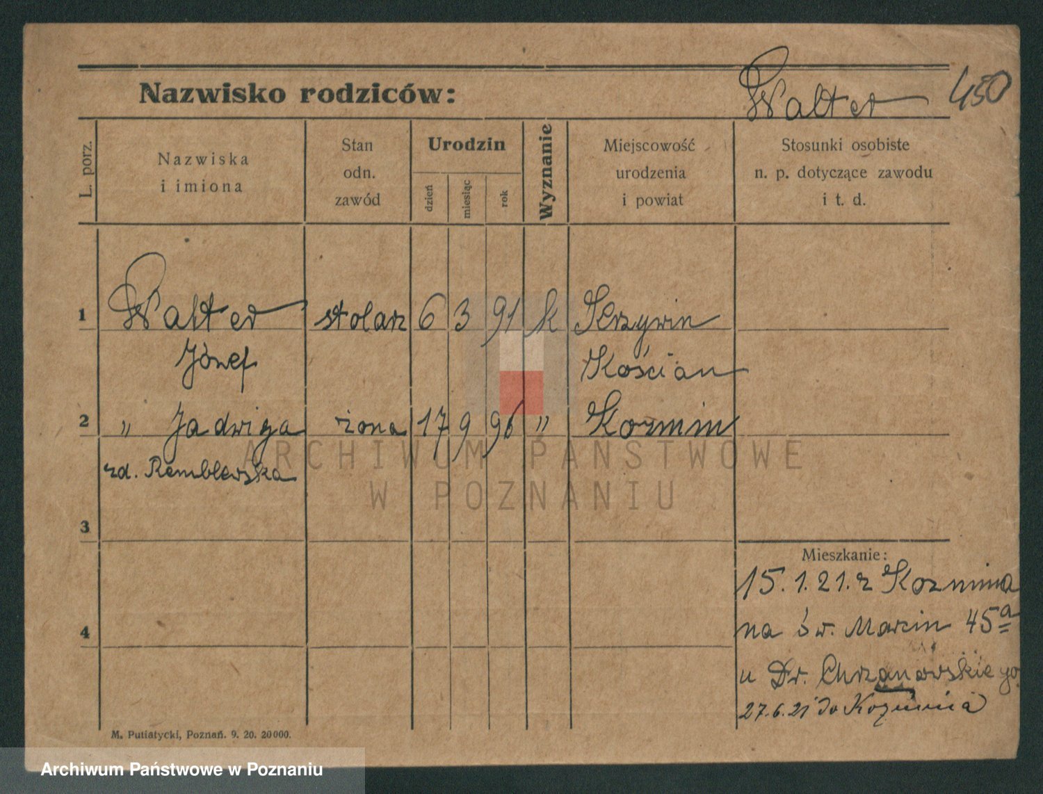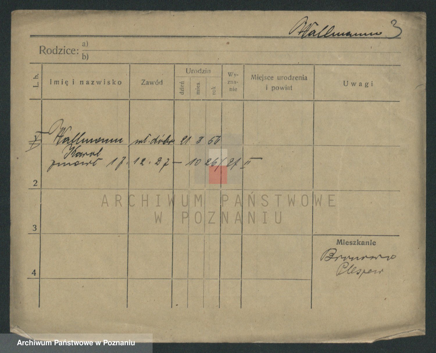 Podgląd karty osobowej dostępny jest po kliknięciu na nazwisko lub ikonkę karty. Można dokonywać powiększenia (ikony na górze) lub przechodzić między kolejnymi skanami (strzałki po bokach).