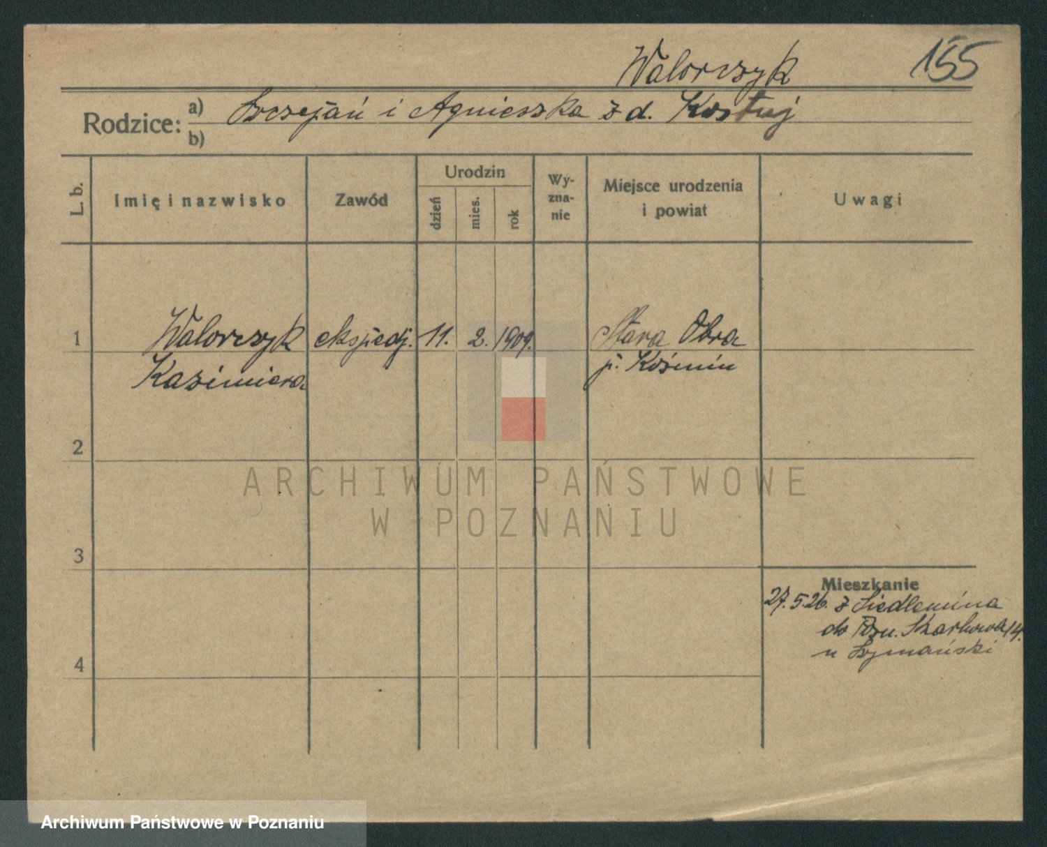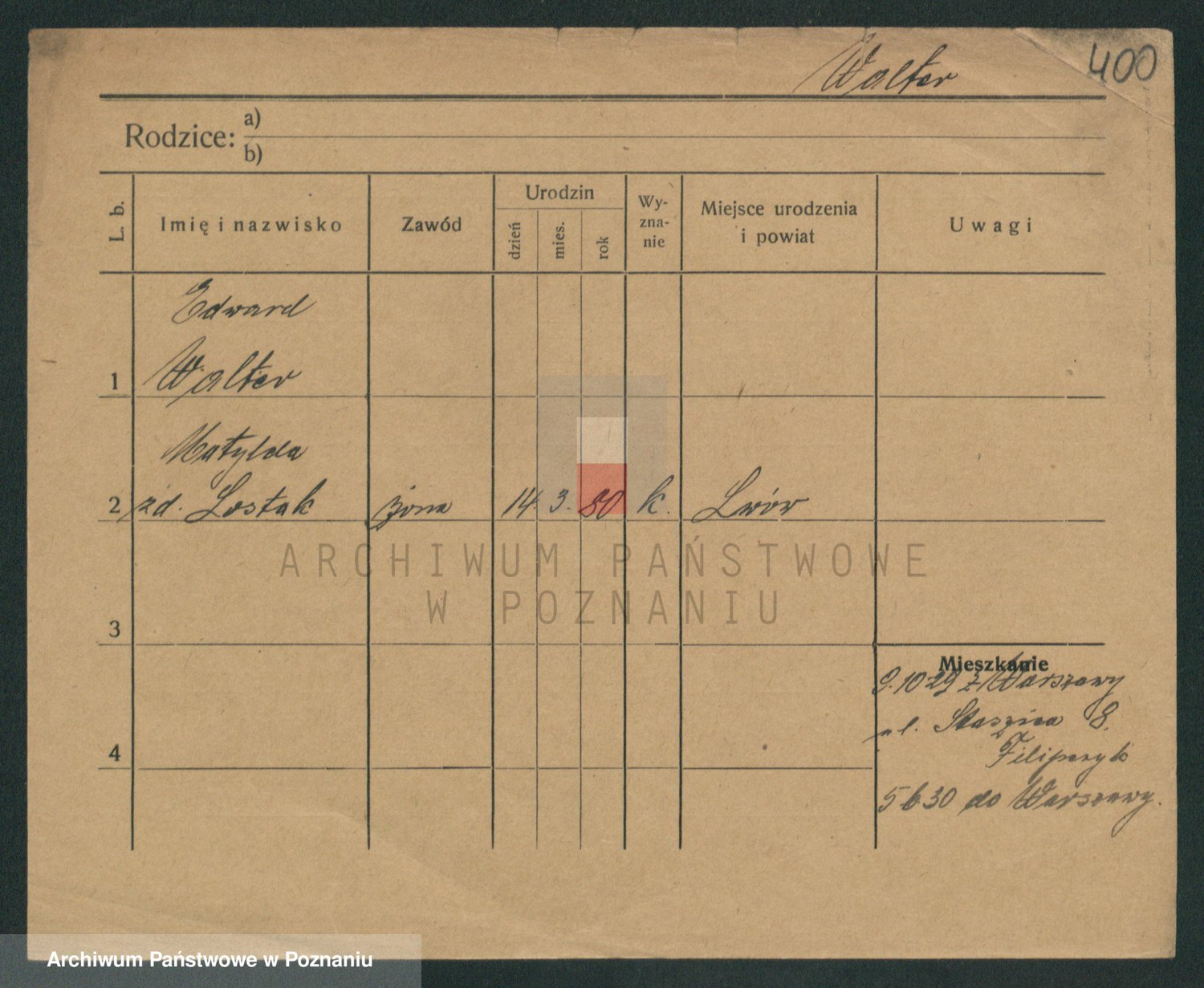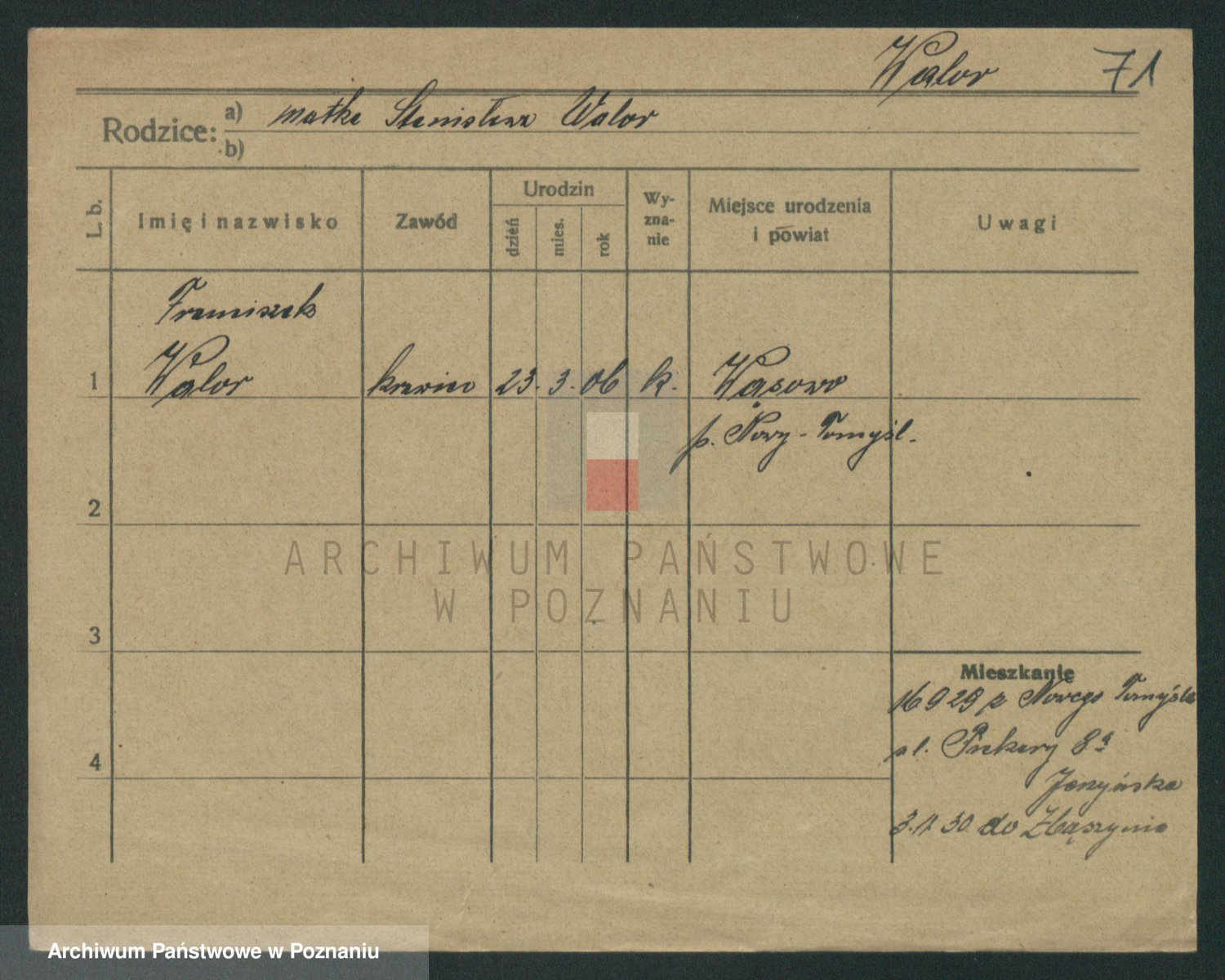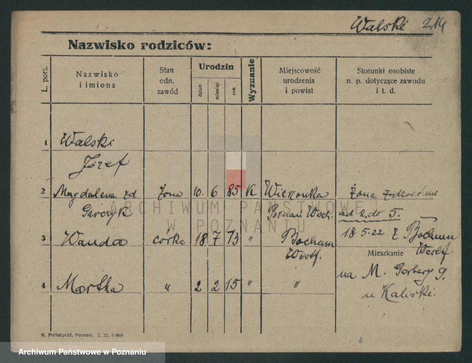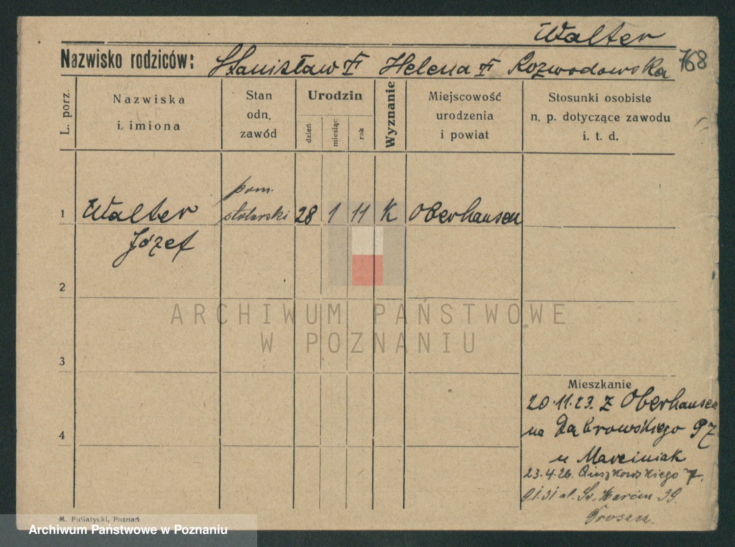 Podgląd karty osobowej dostępny jest po kliknięciu na nazwisko lub ikonkę karty. Można dokonywać powiększenia (ikony na górze) lub przechodzić między kolejnymi skanami (strzałki po bokach).