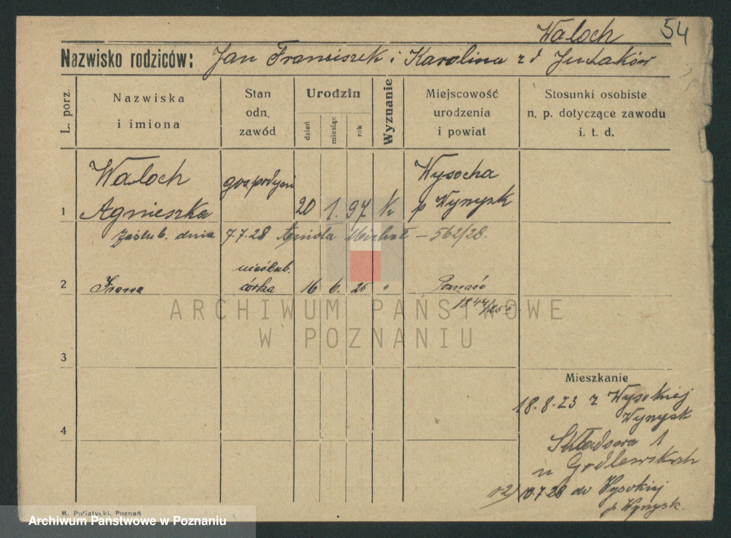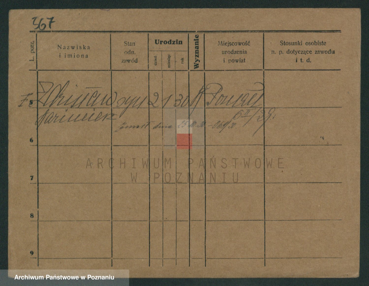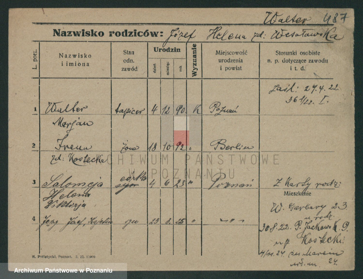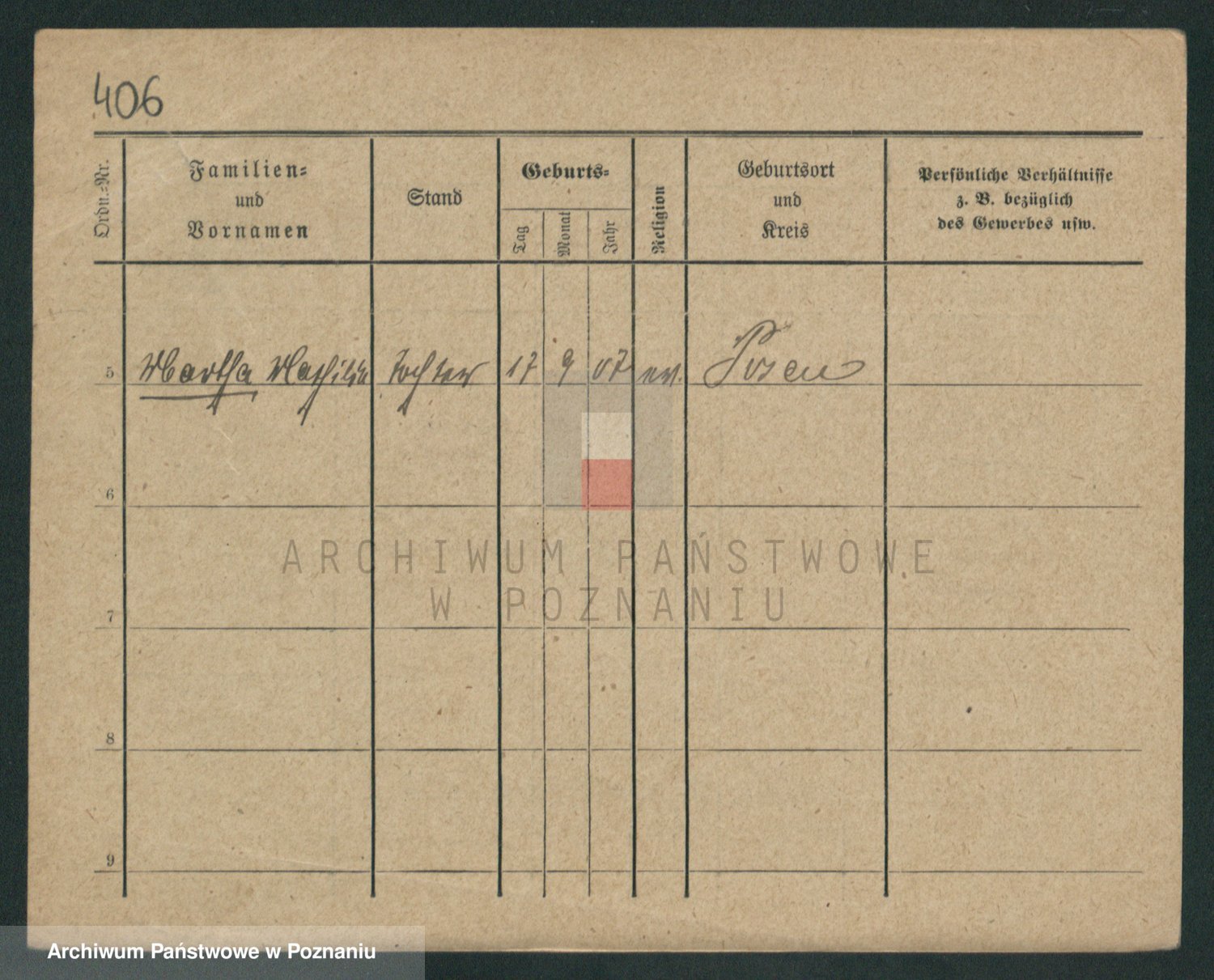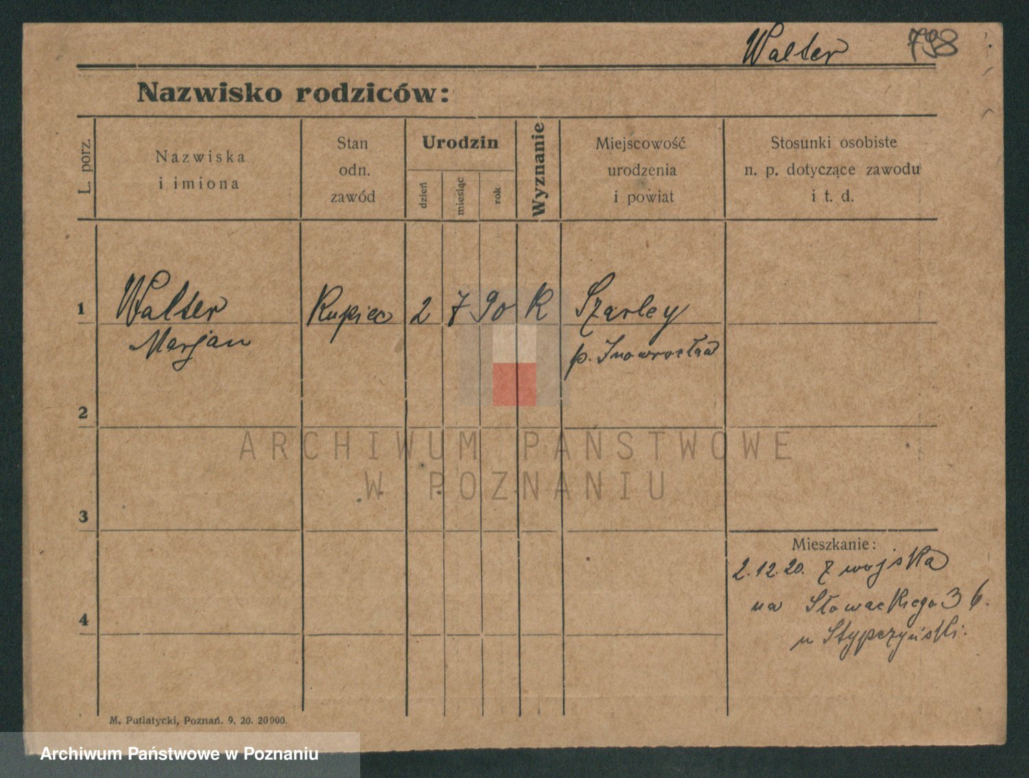 Podgląd karty osobowej dostępny jest po kliknięciu na nazwisko lub ikonkę karty. Można dokonywać powiększenia (ikony na górze) lub przechodzić między kolejnymi skanami (strzałki po bokach).