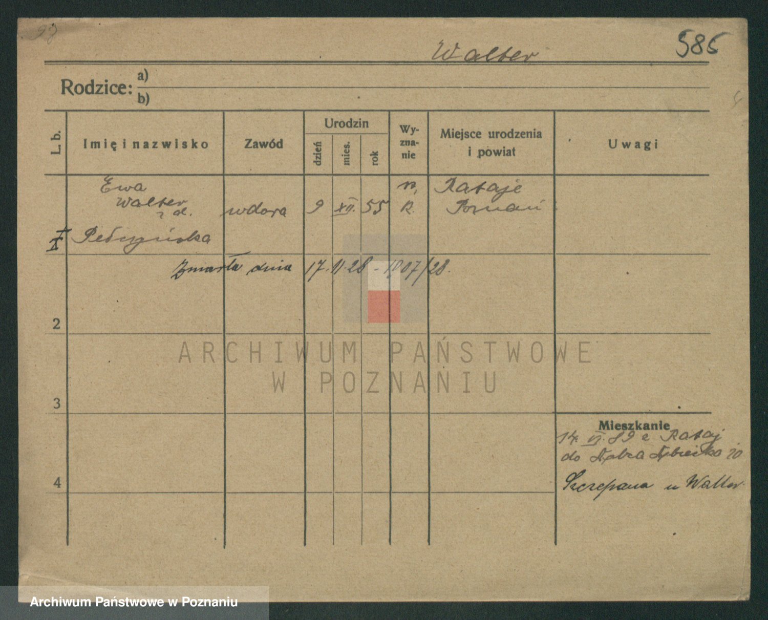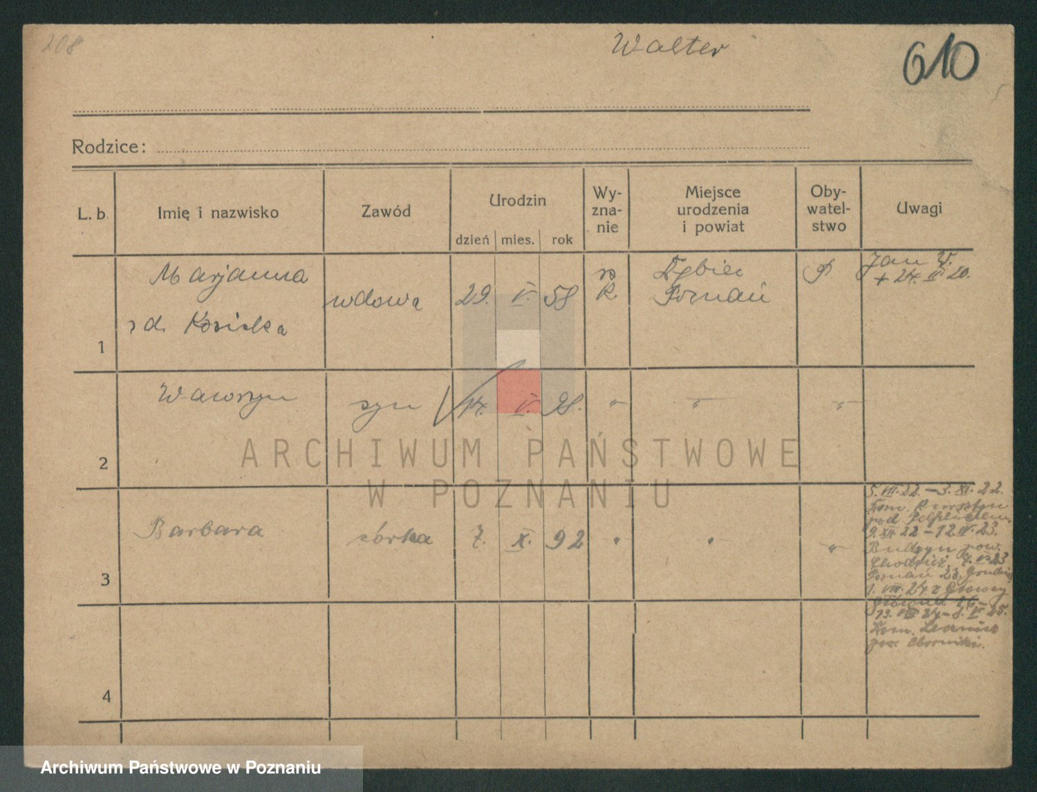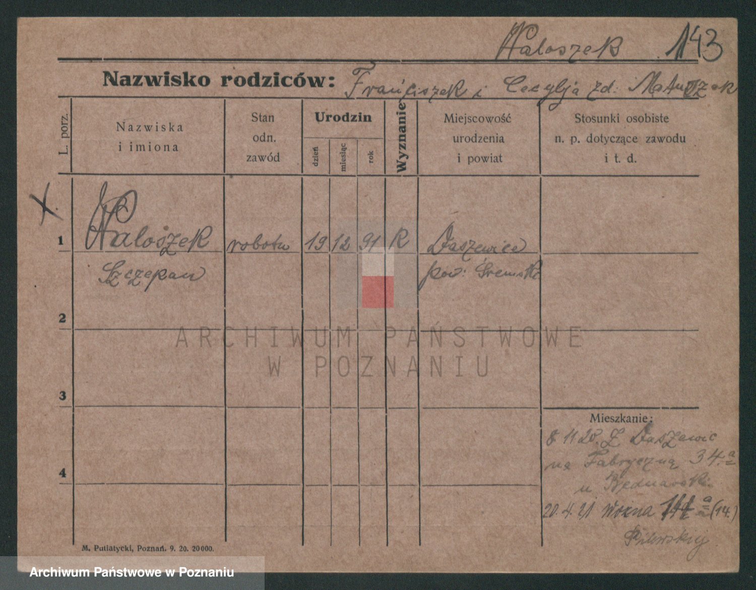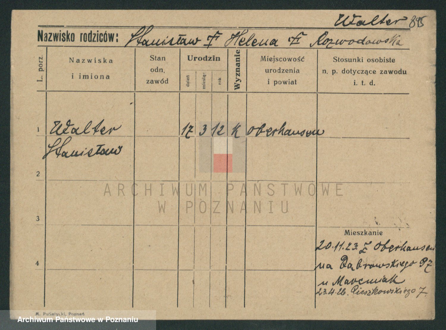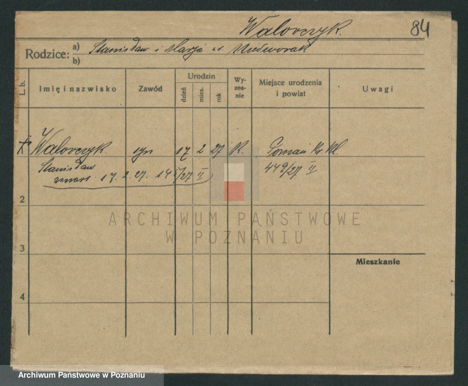 Podgląd karty osobowej dostępny jest po kliknięciu na nazwisko lub ikonkę karty. Można dokonywać powiększenia (ikony na górze) lub przechodzić między kolejnymi skanami (strzałki po bokach).