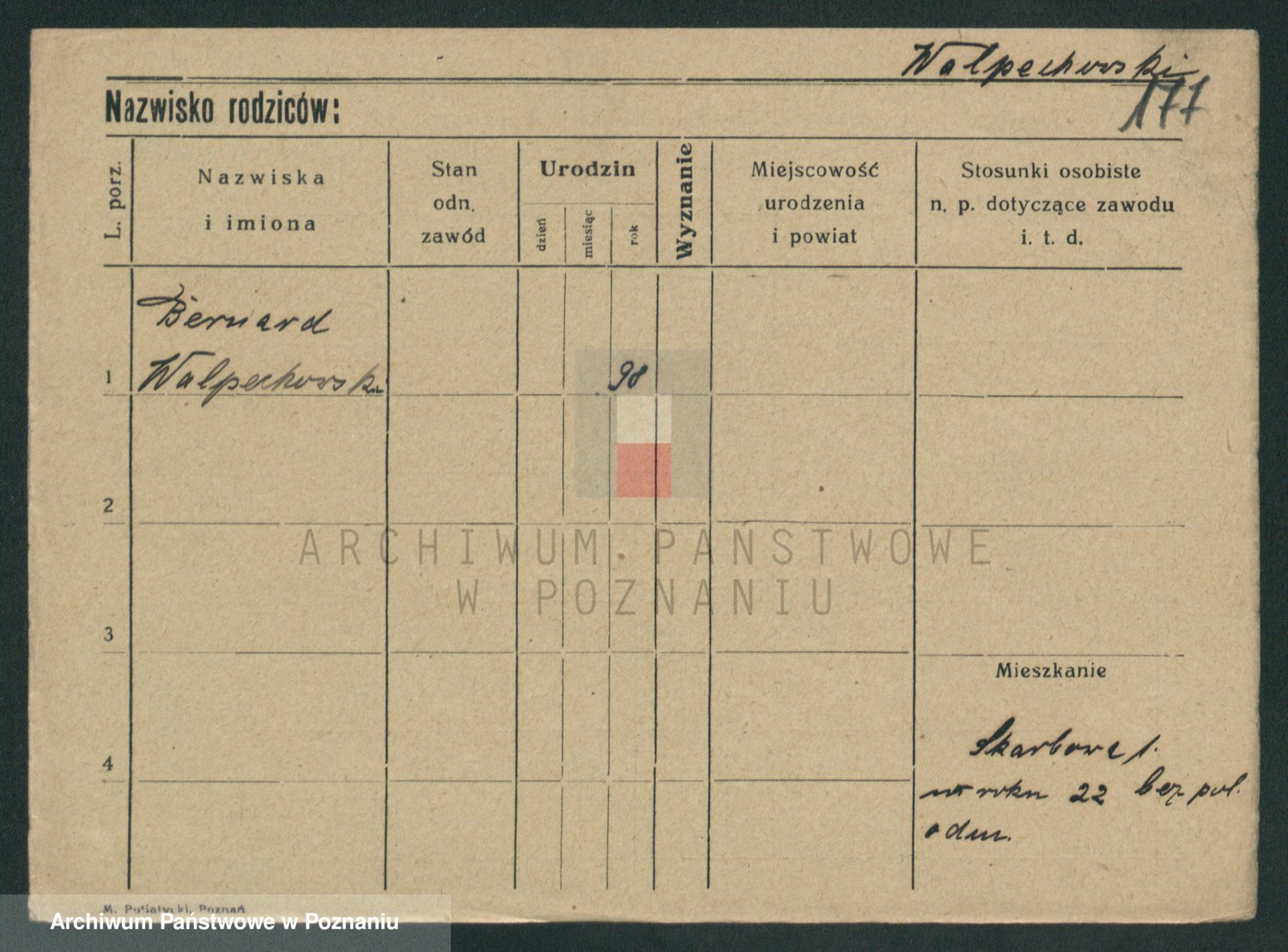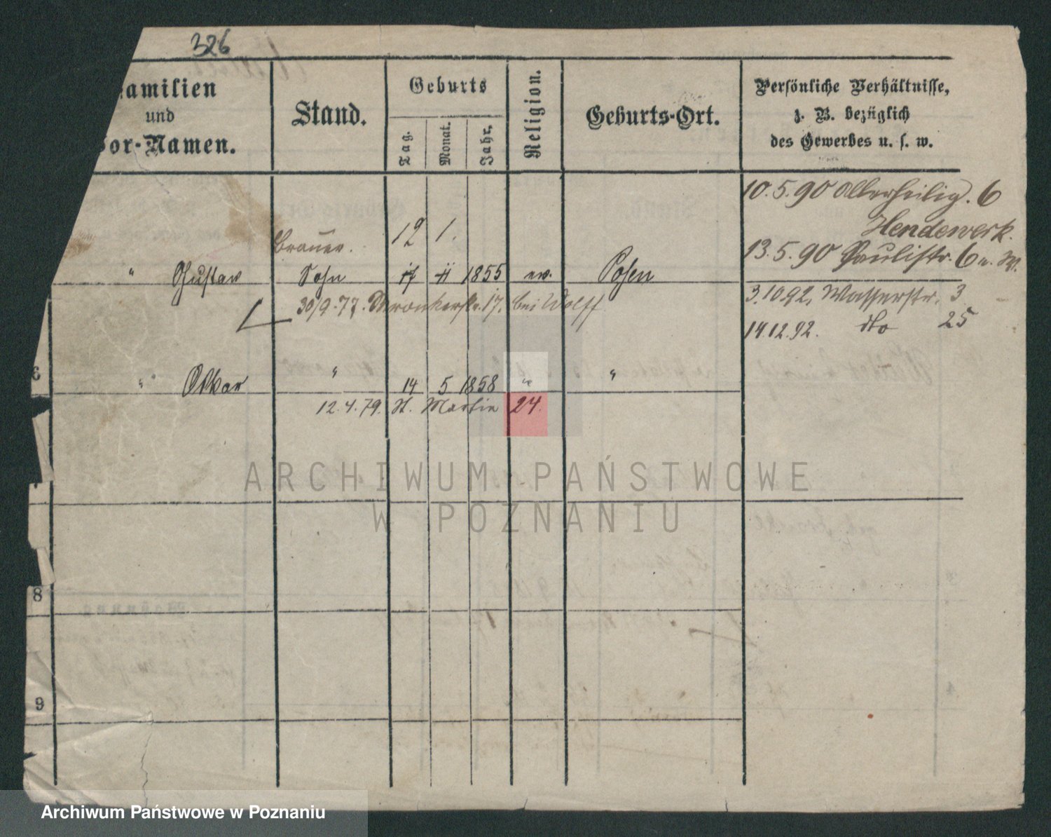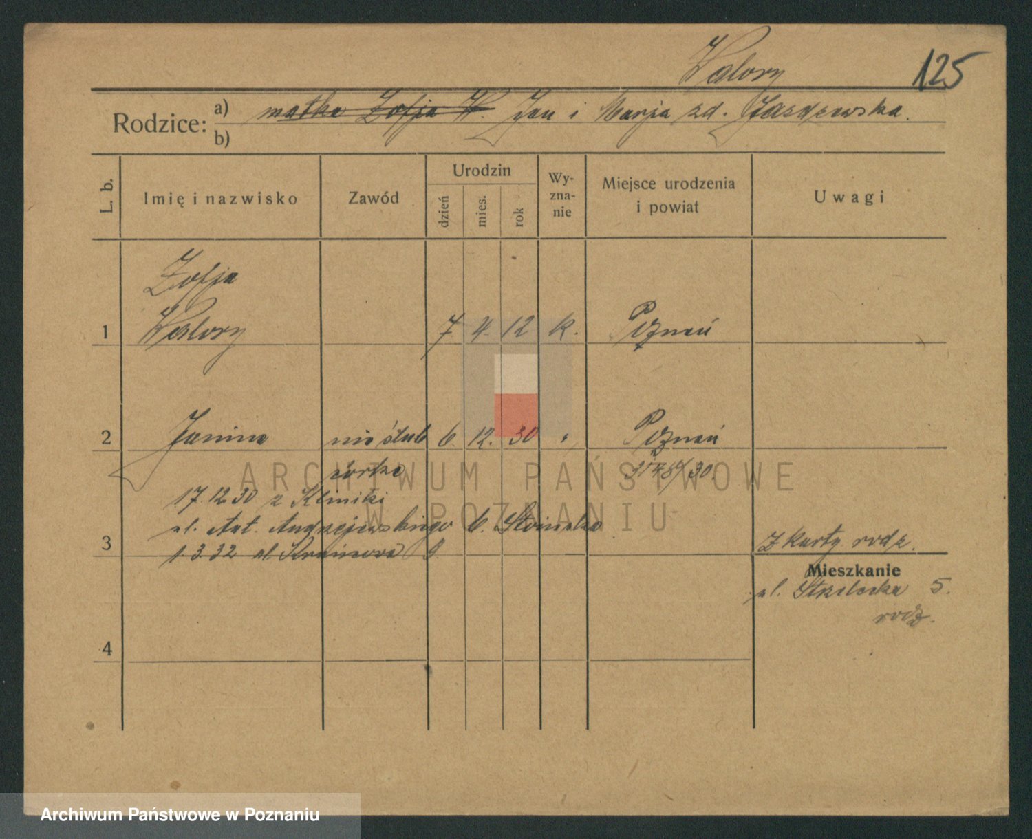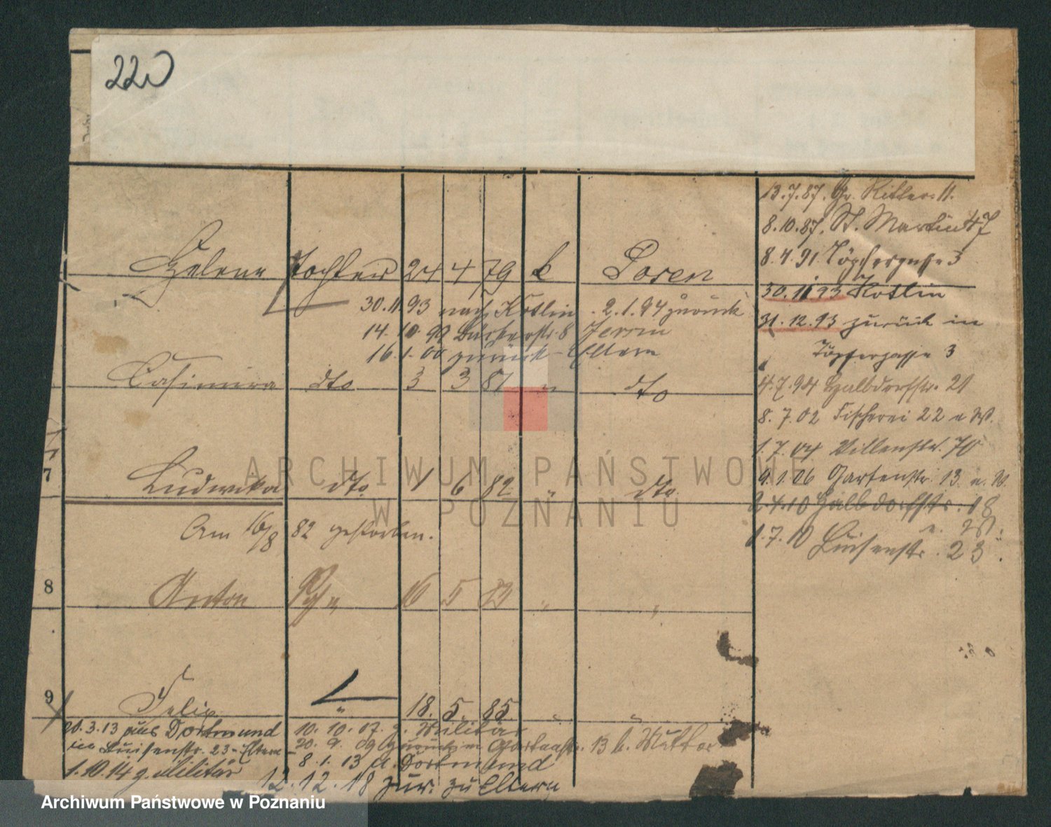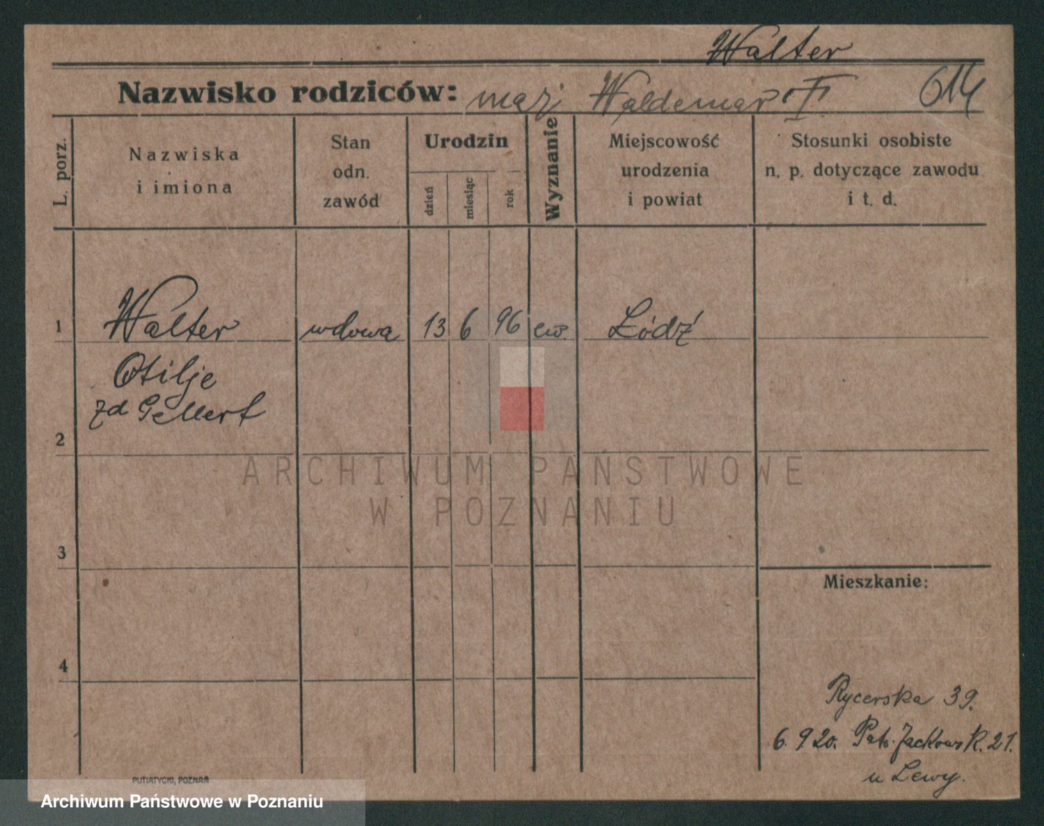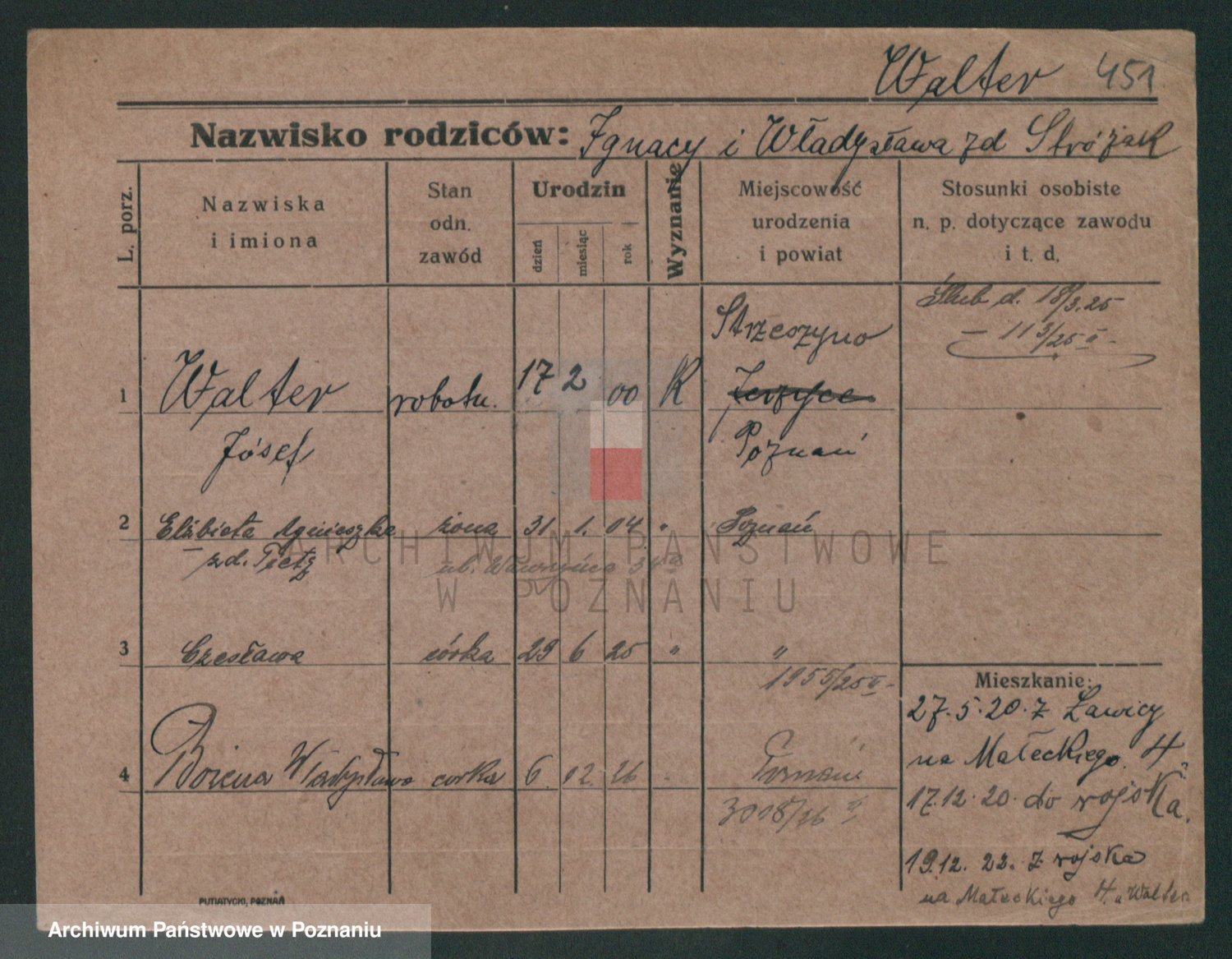 Podgląd karty osobowej dostępny jest po kliknięciu na nazwisko lub ikonkę karty. Można dokonywać powiększenia (ikony na górze) lub przechodzić między kolejnymi skanami (strzałki po bokach).