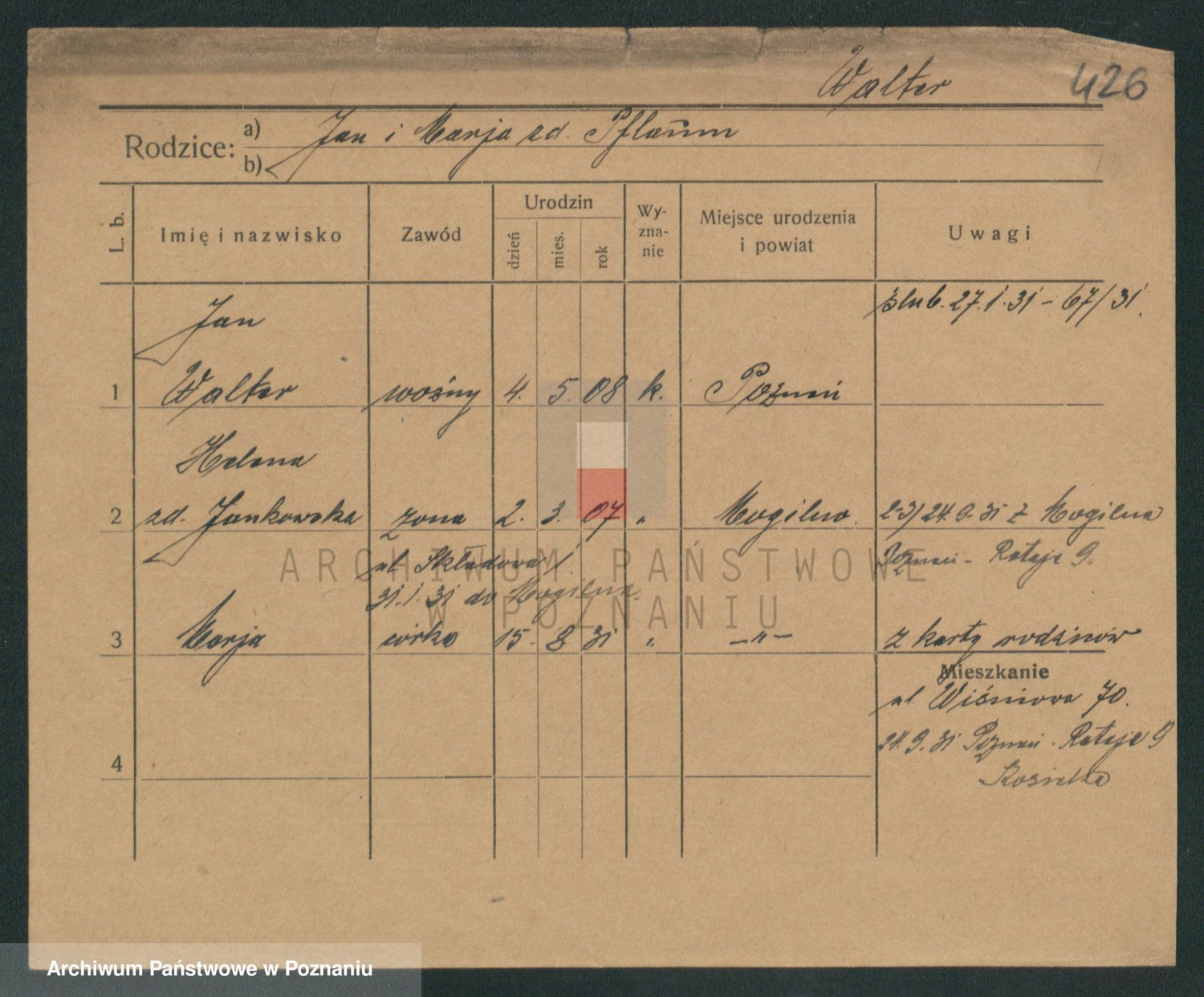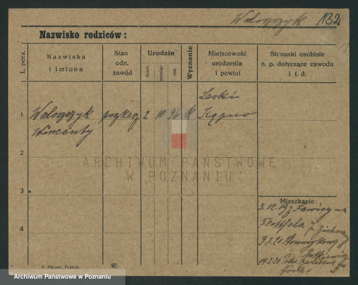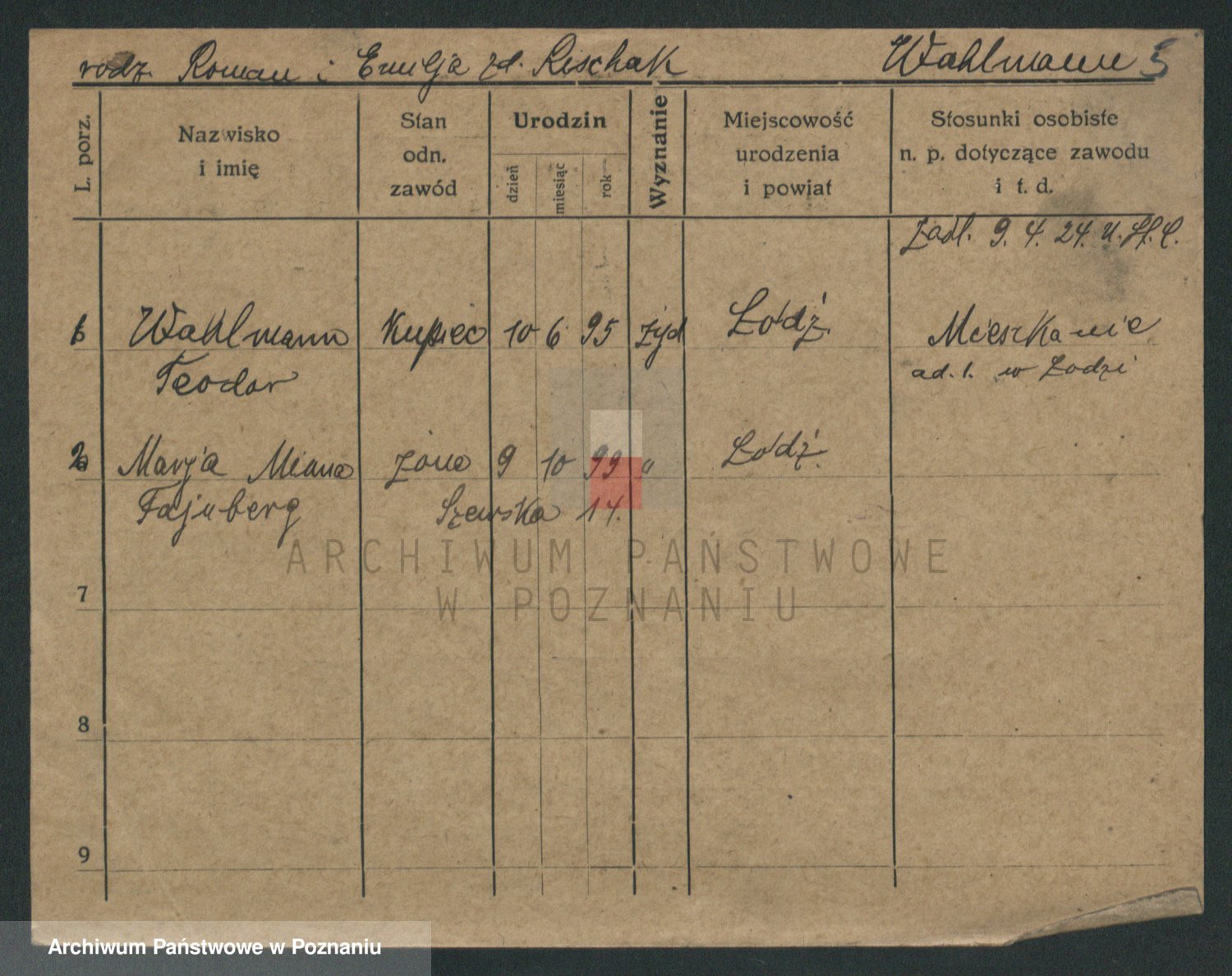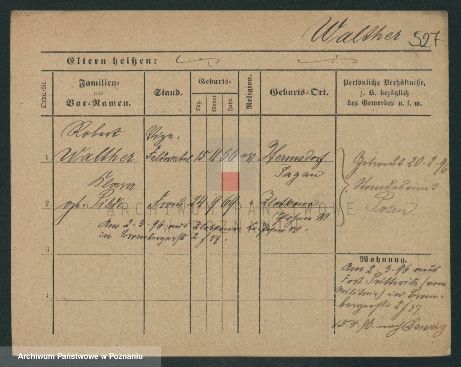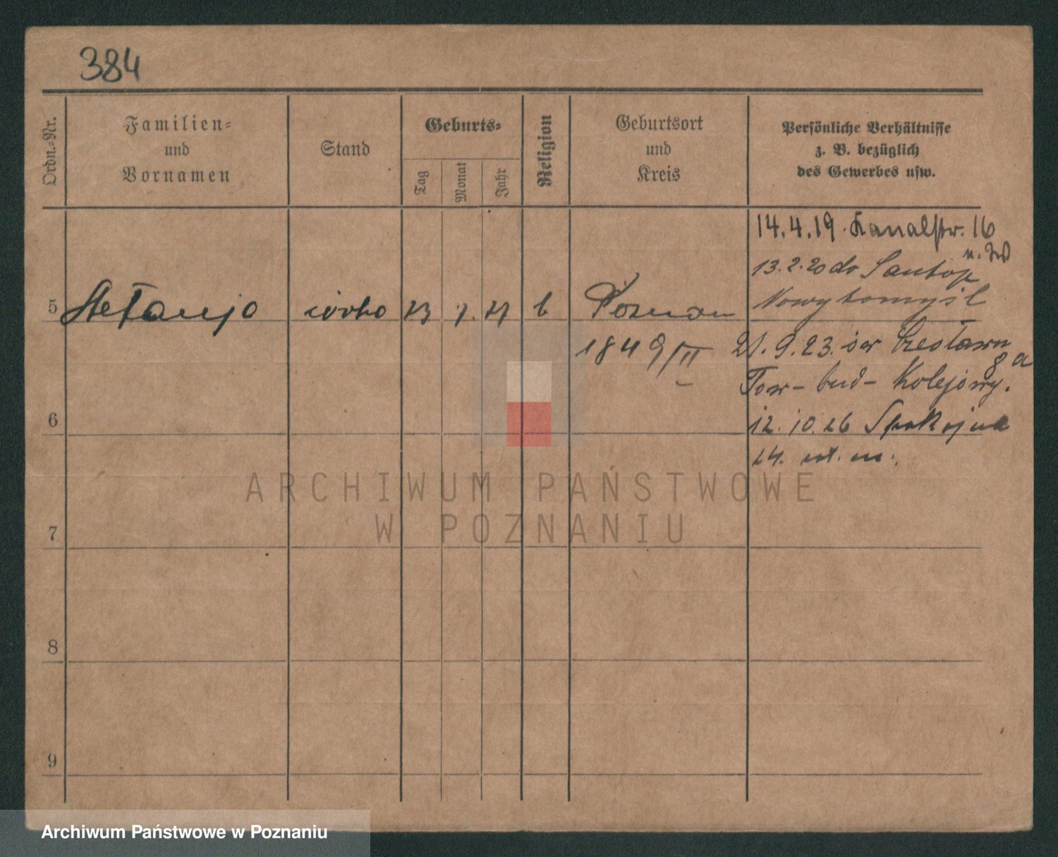 Podgląd karty osobowej dostępny jest po kliknięciu na nazwisko lub ikonkę karty. Można dokonywać powiększenia (ikony na górze) lub przechodzić między kolejnymi skanami (strzałki po bokach).