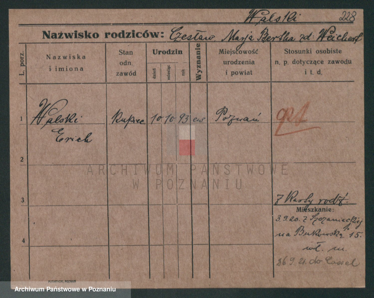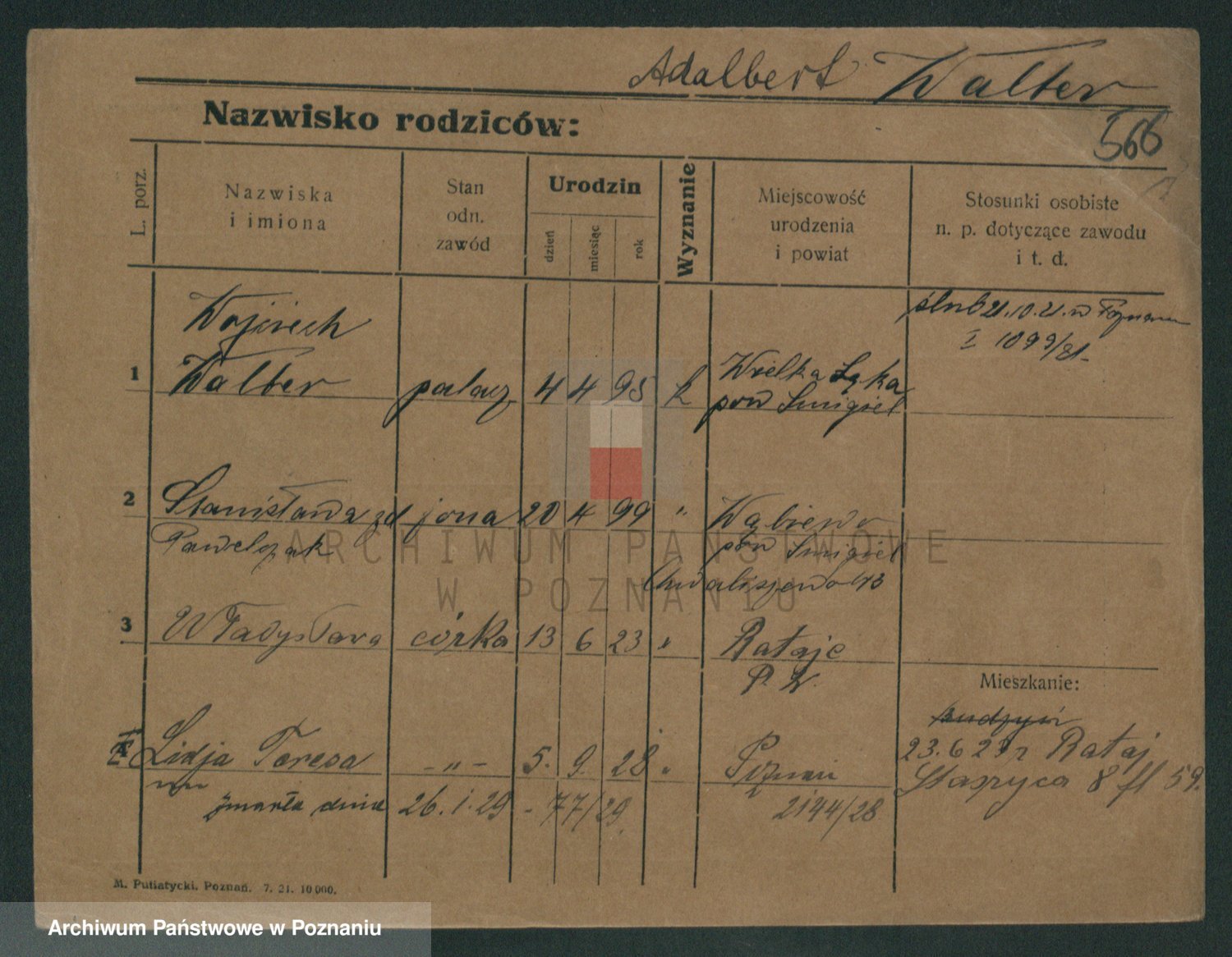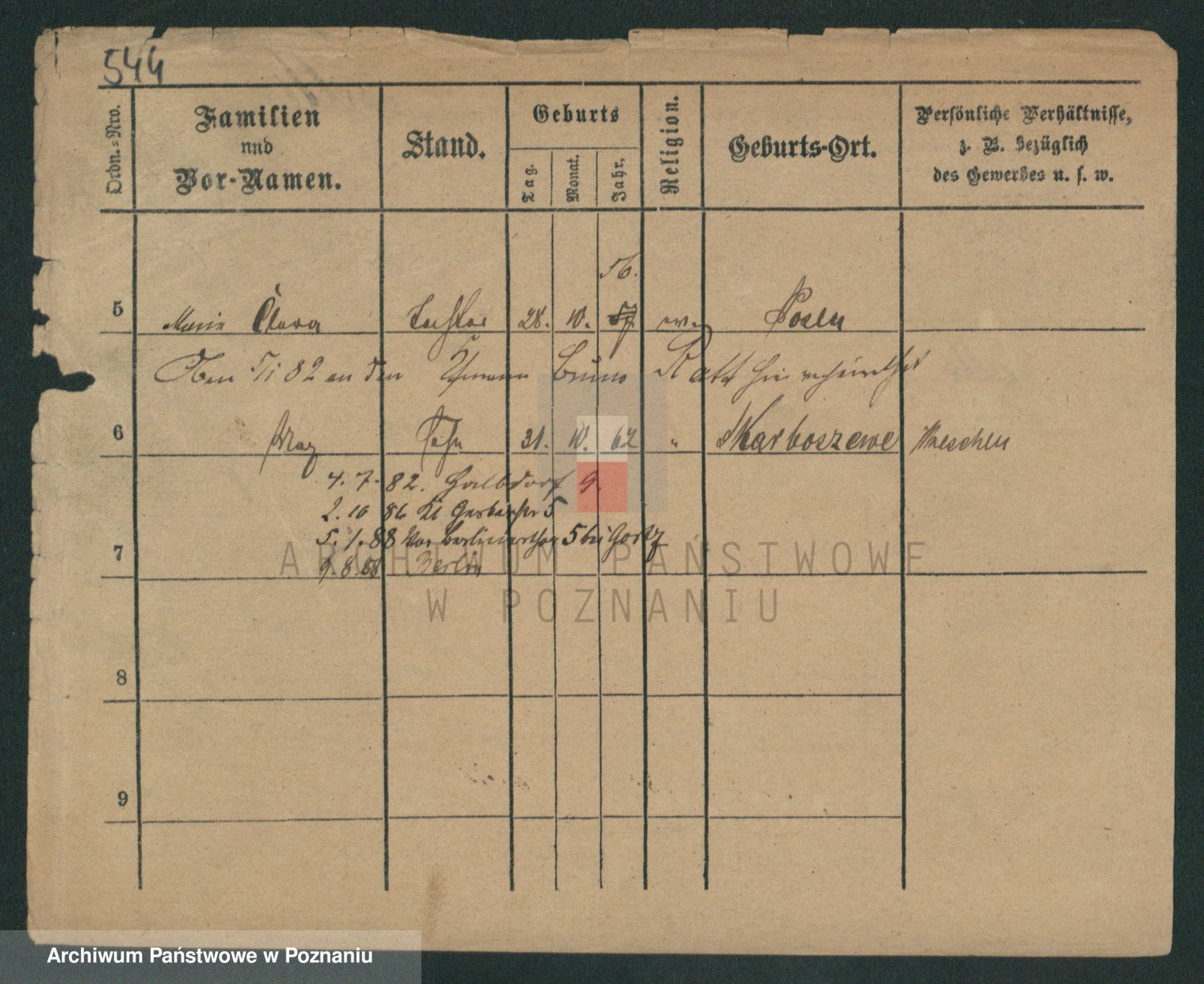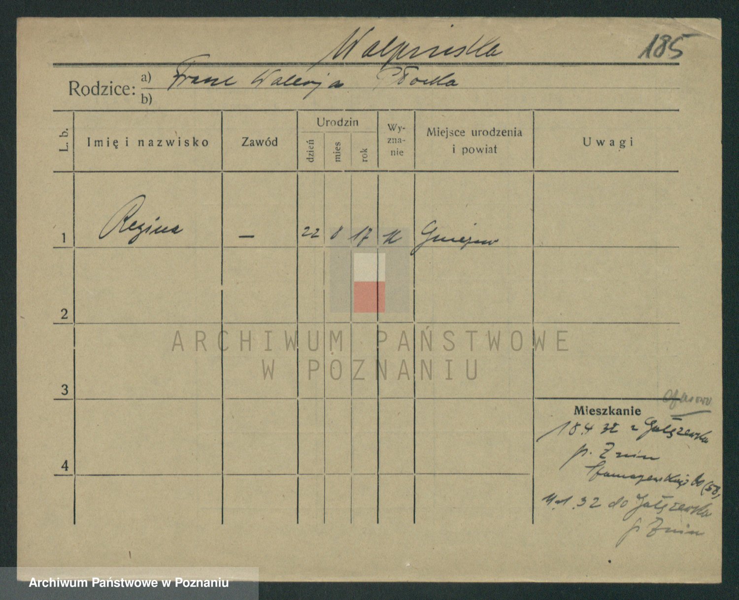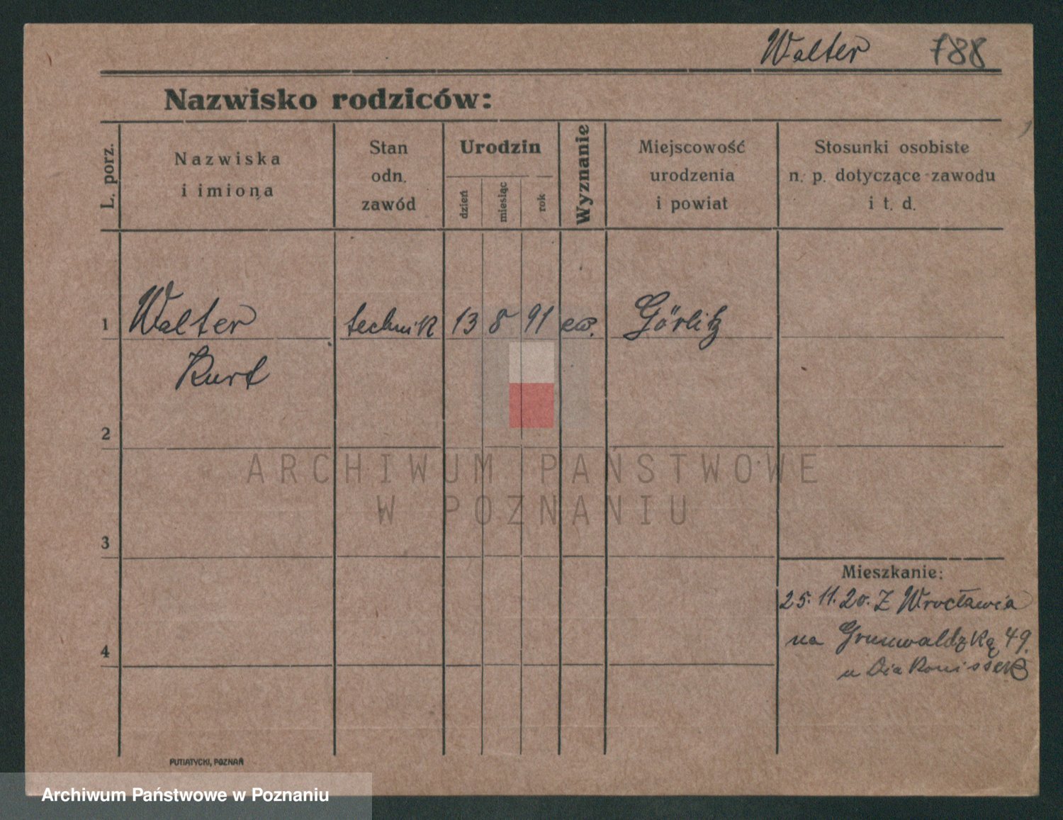 Podgląd karty osobowej dostępny jest po kliknięciu na nazwisko lub ikonkę karty. Można dokonywać powiększenia (ikony na górze) lub przechodzić między kolejnymi skanami (strzałki po bokach).
