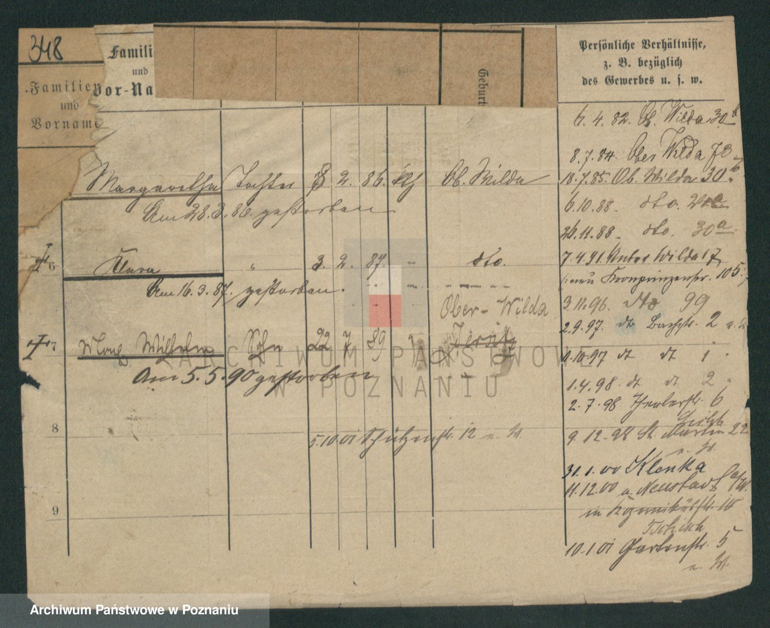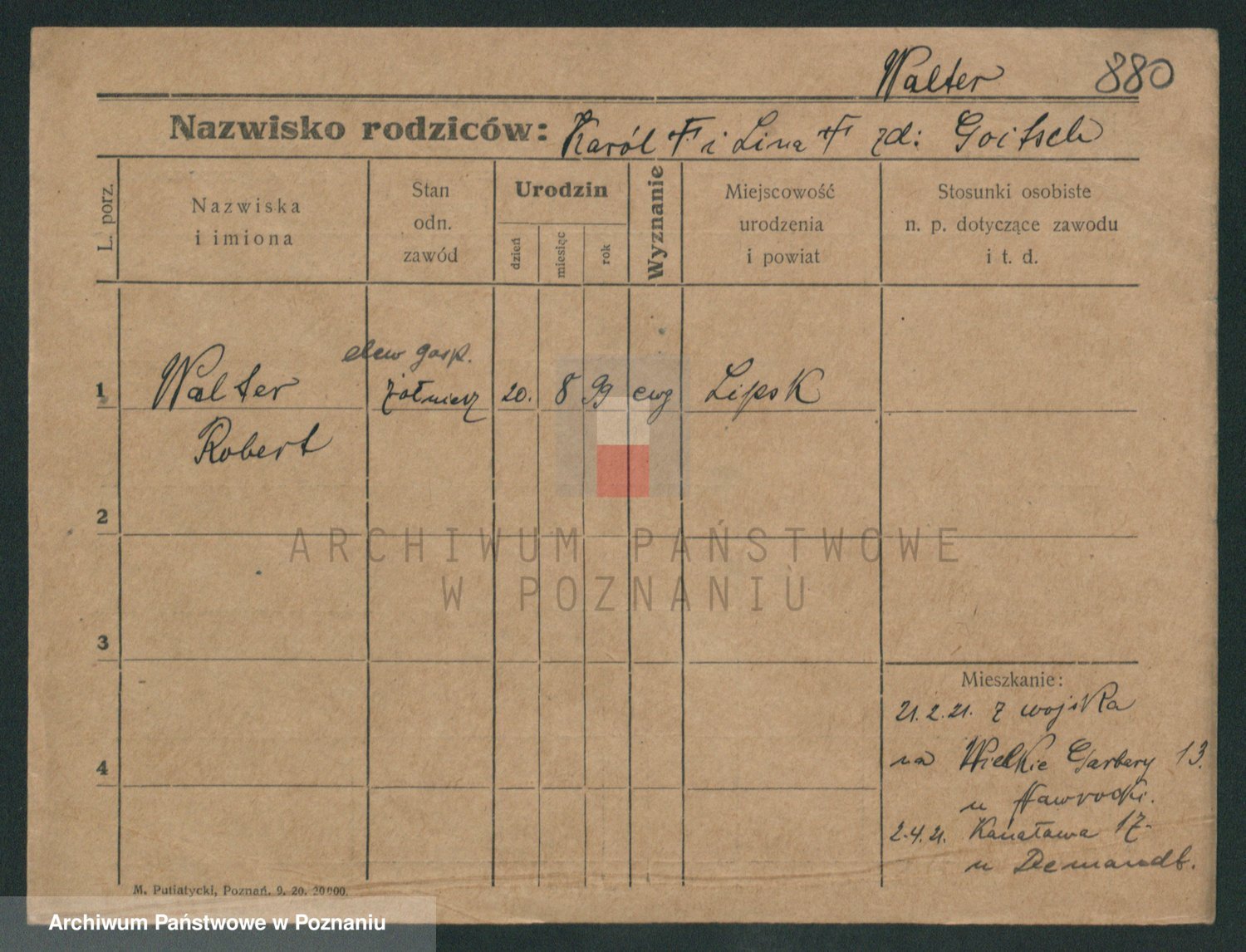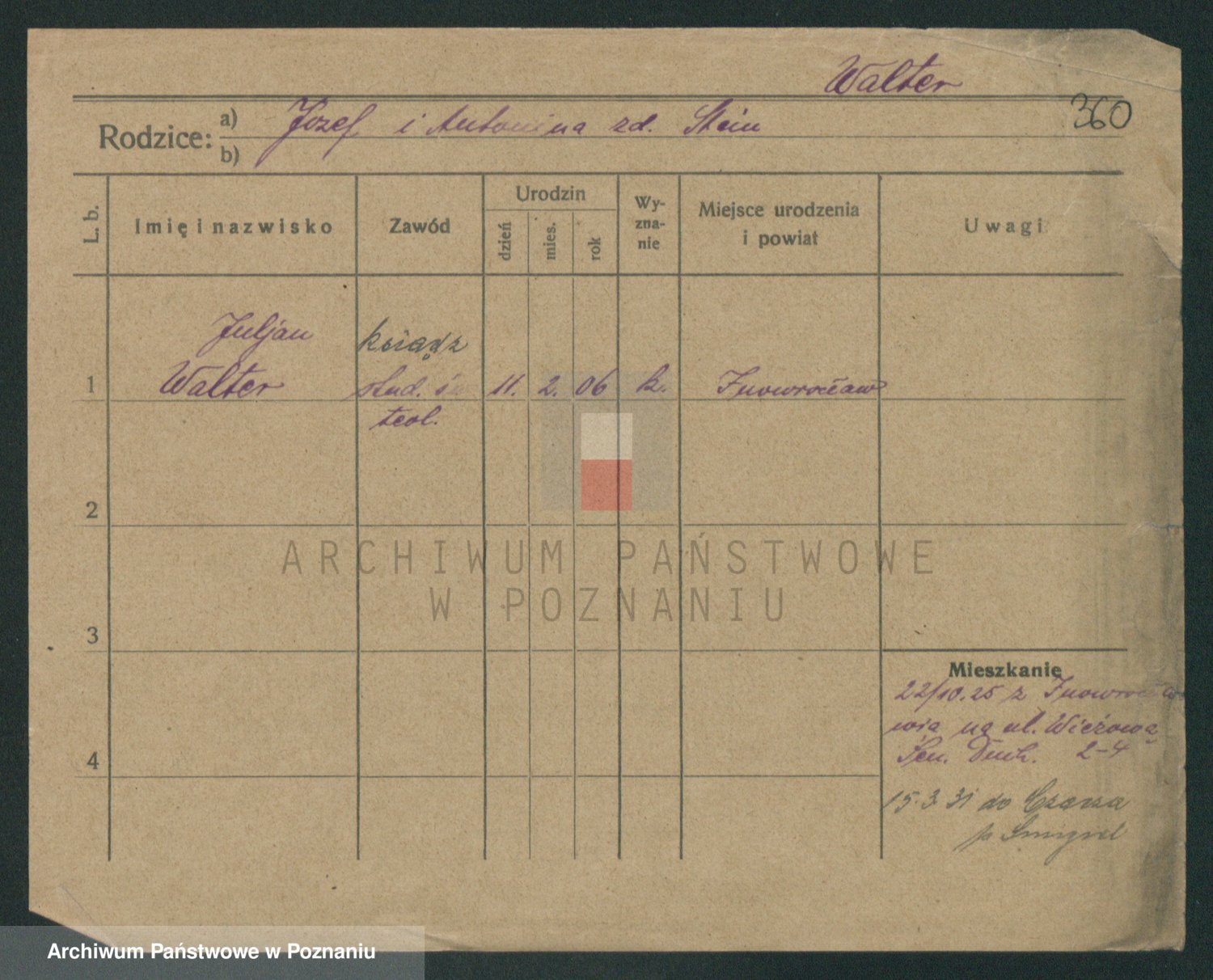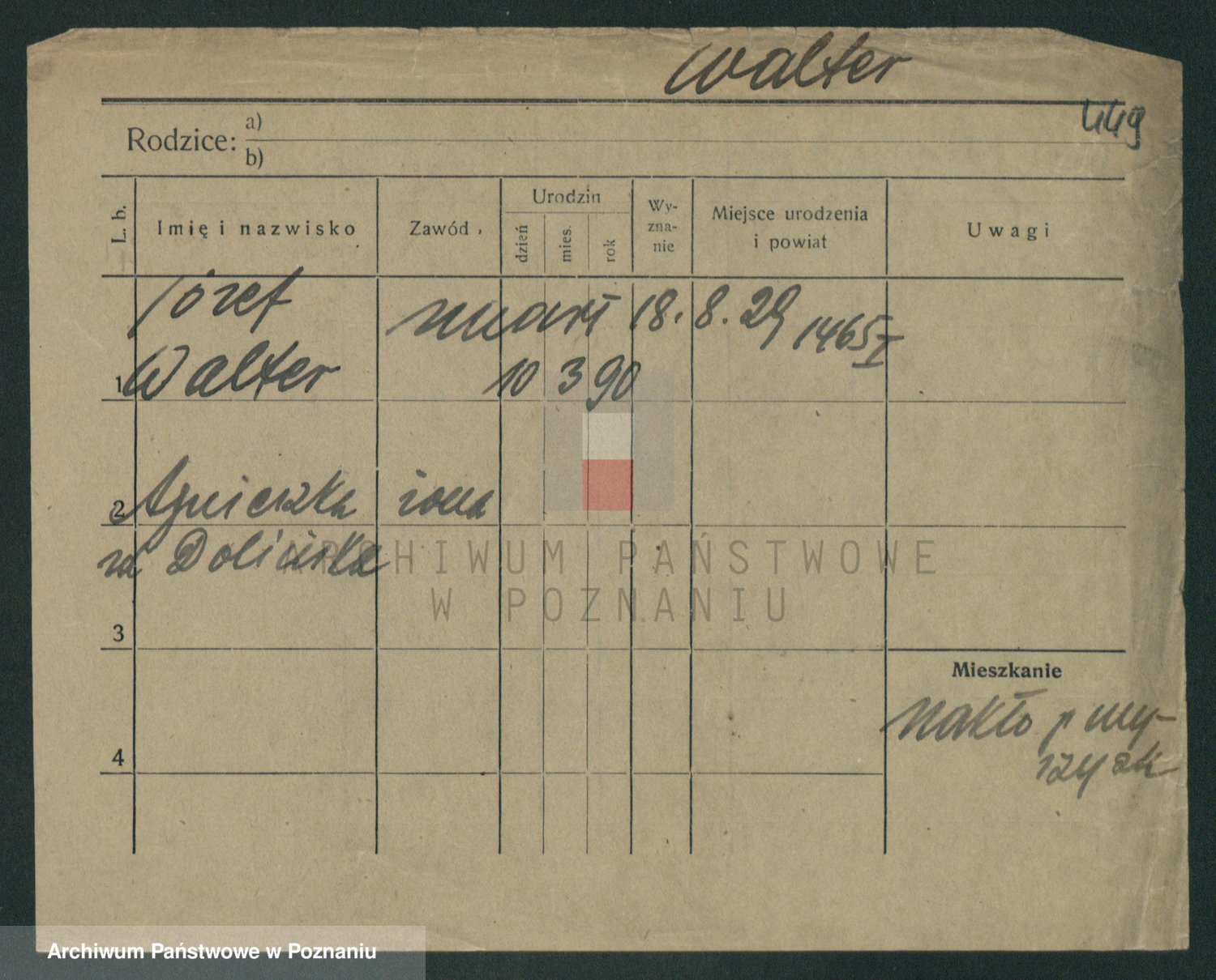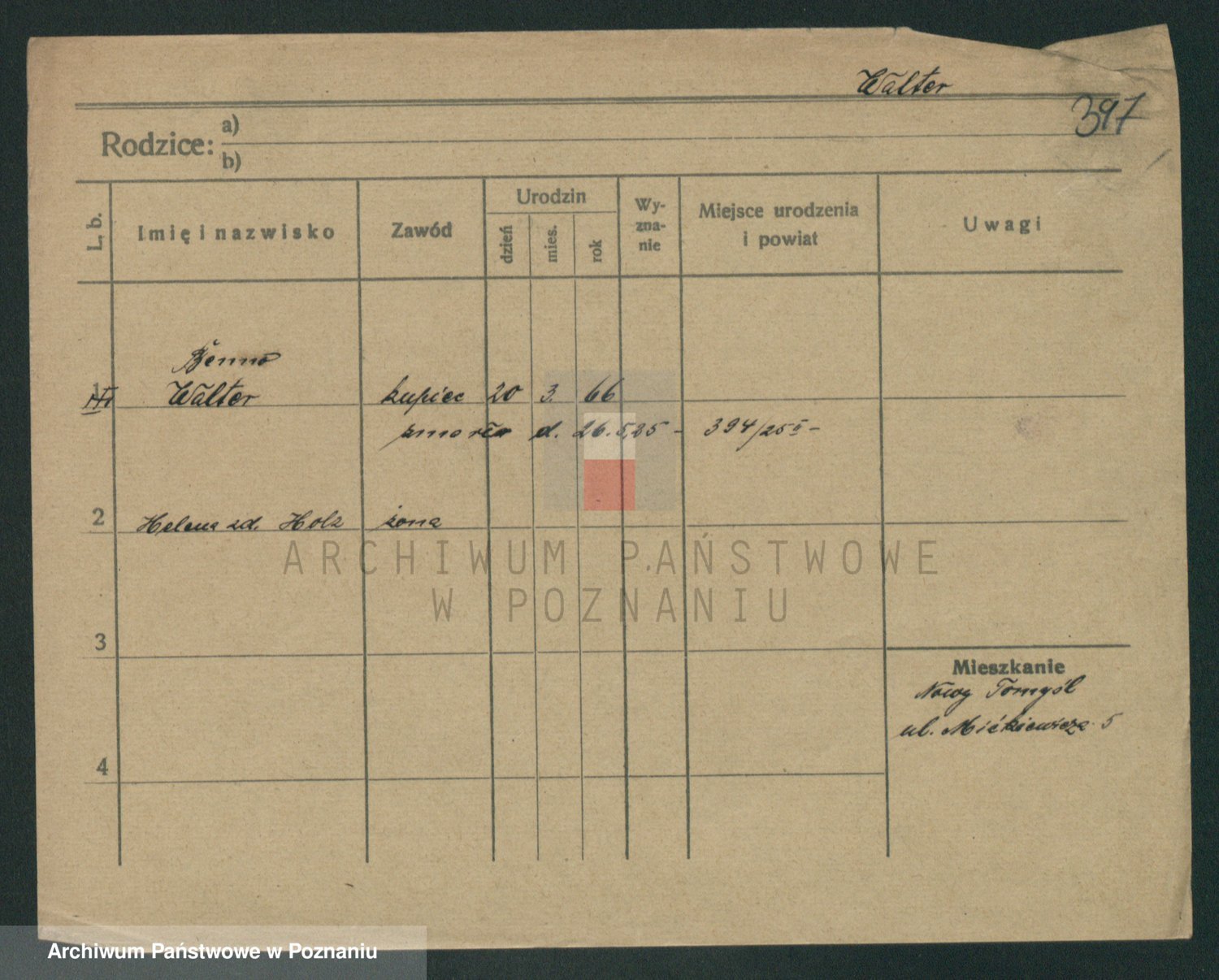 Podgląd karty osobowej dostępny jest po kliknięciu na nazwisko lub ikonkę karty. Można dokonywać powiększenia (ikony na górze) lub przechodzić między kolejnymi skanami (strzałki po bokach).