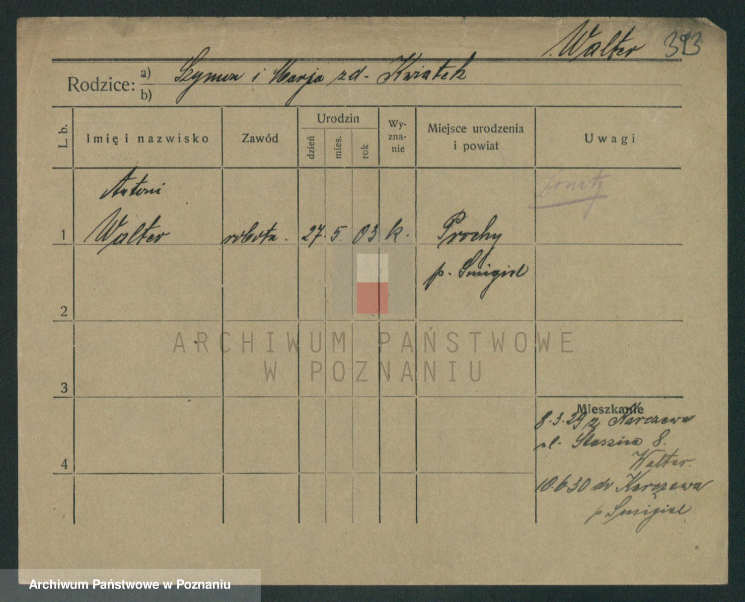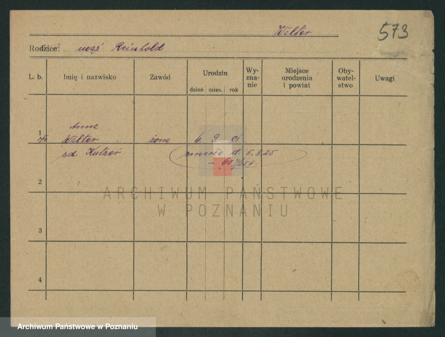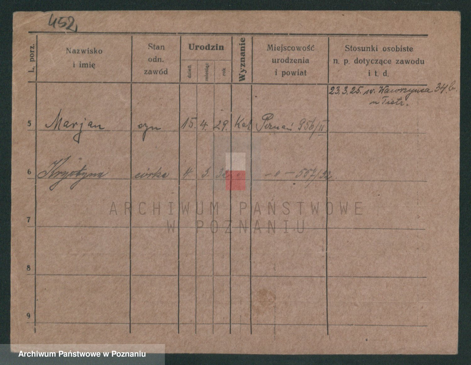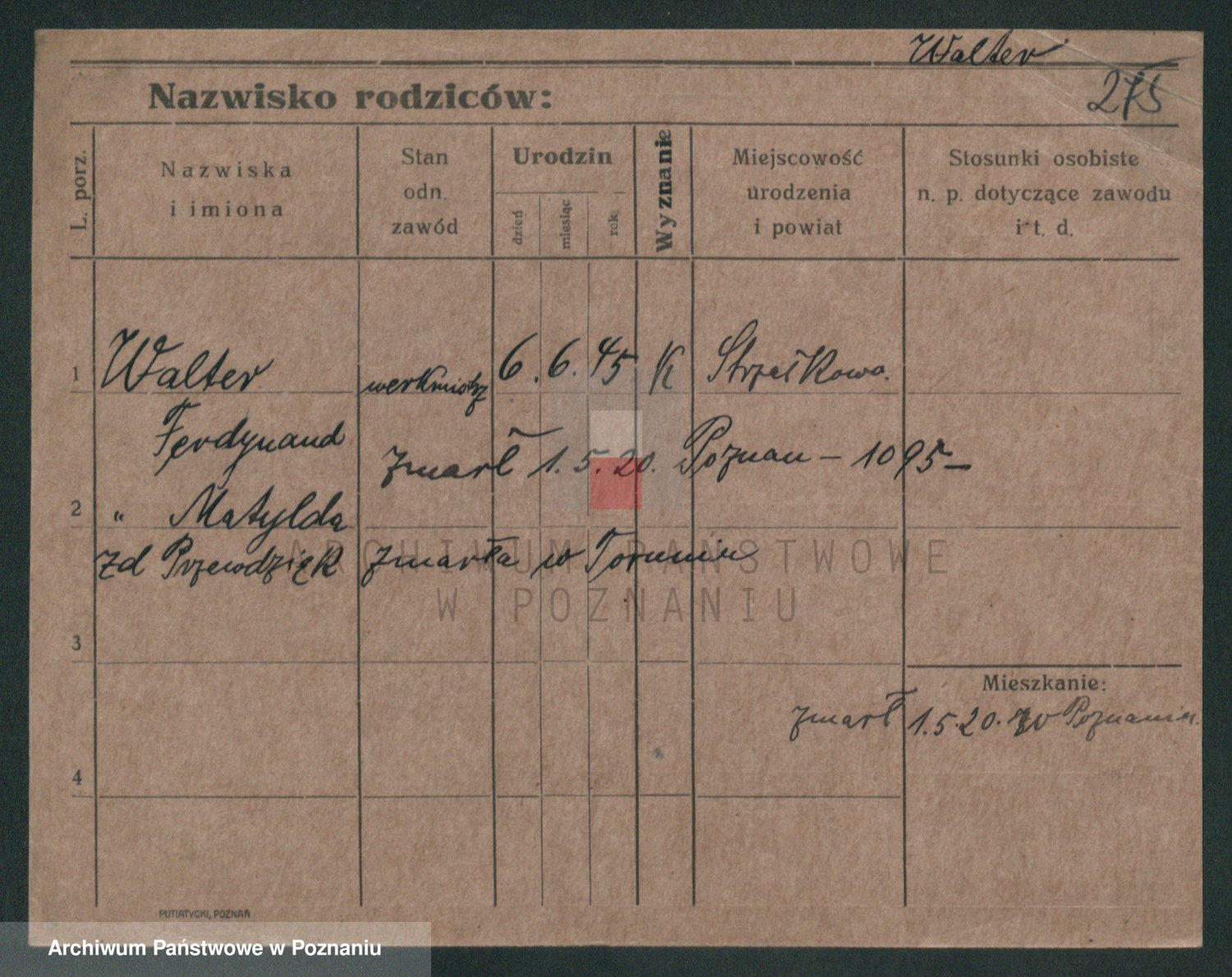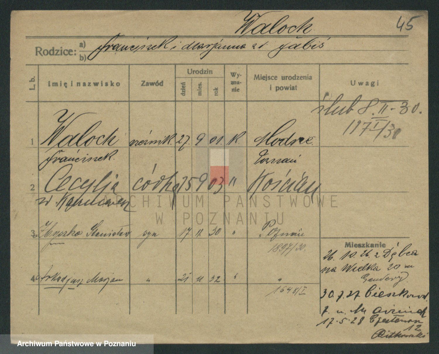 Podgląd karty osobowej dostępny jest po kliknięciu na nazwisko lub ikonkę karty. Można dokonywać powiększenia (ikony na górze) lub przechodzić między kolejnymi skanami (strzałki po bokach).