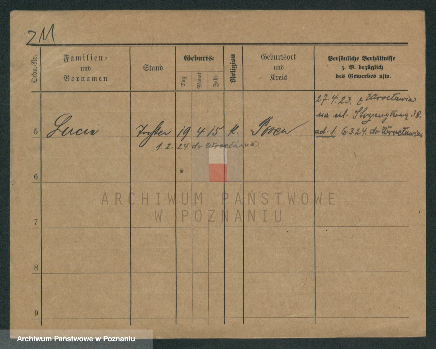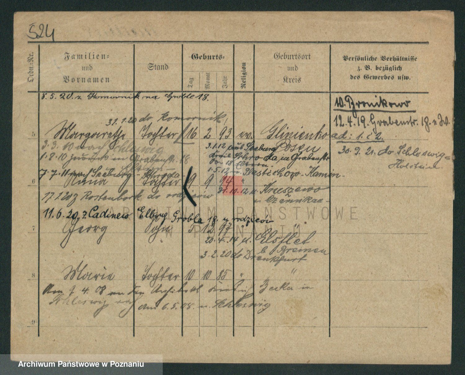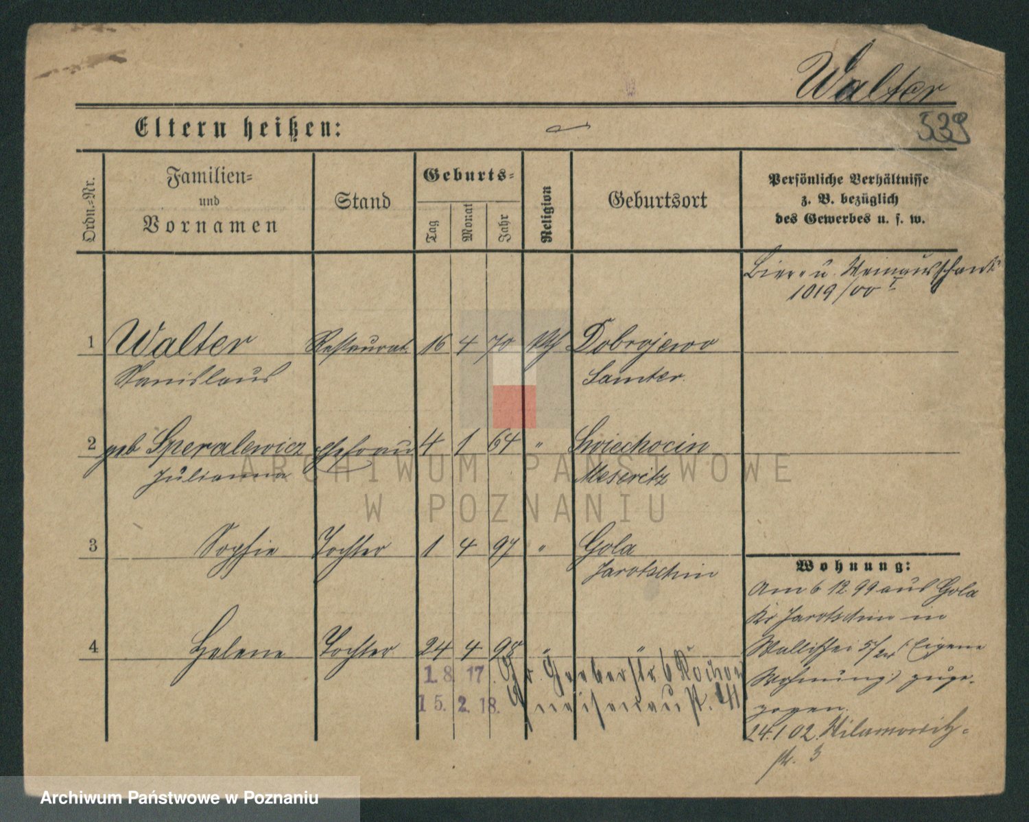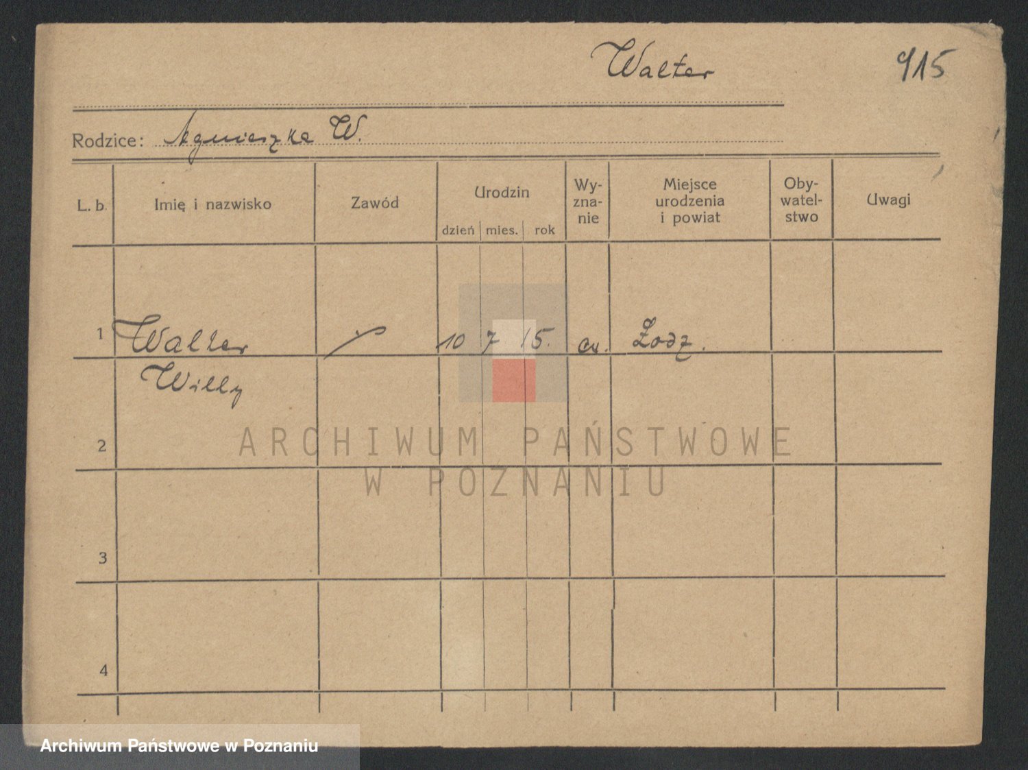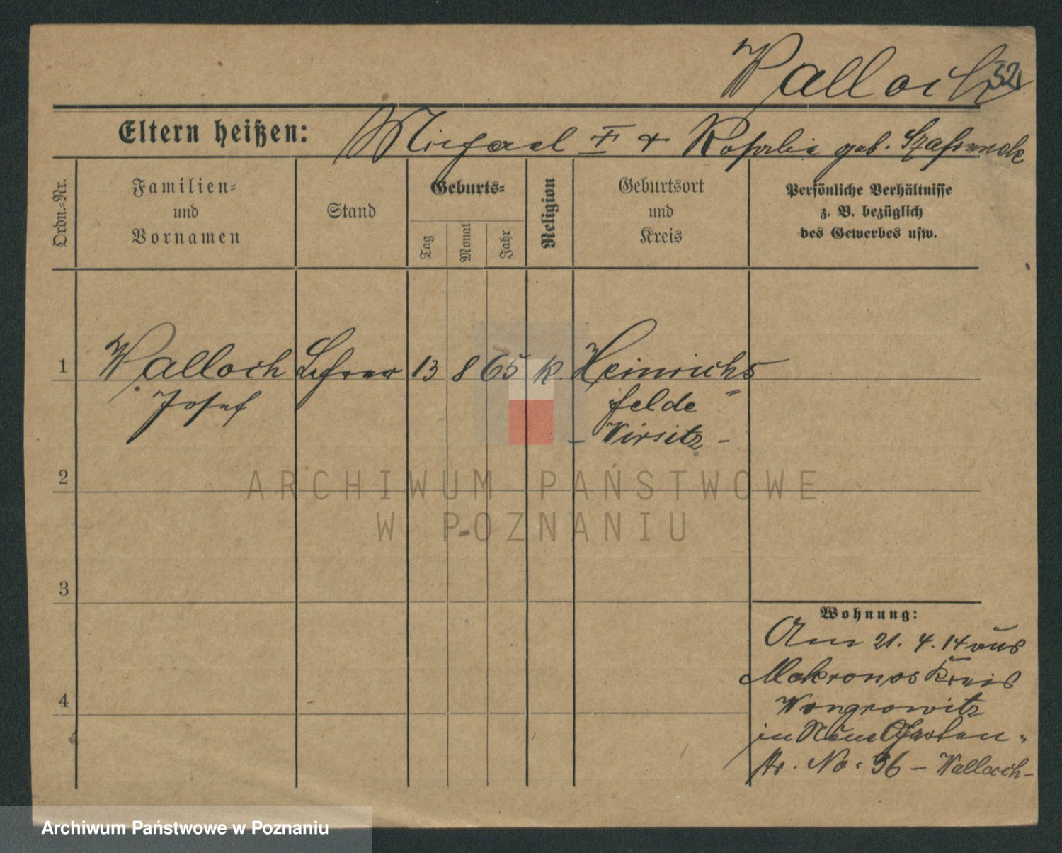 Podgląd karty osobowej dostępny jest po kliknięciu na nazwisko lub ikonkę karty. Można dokonywać powiększenia (ikony na górze) lub przechodzić między kolejnymi skanami (strzałki po bokach).