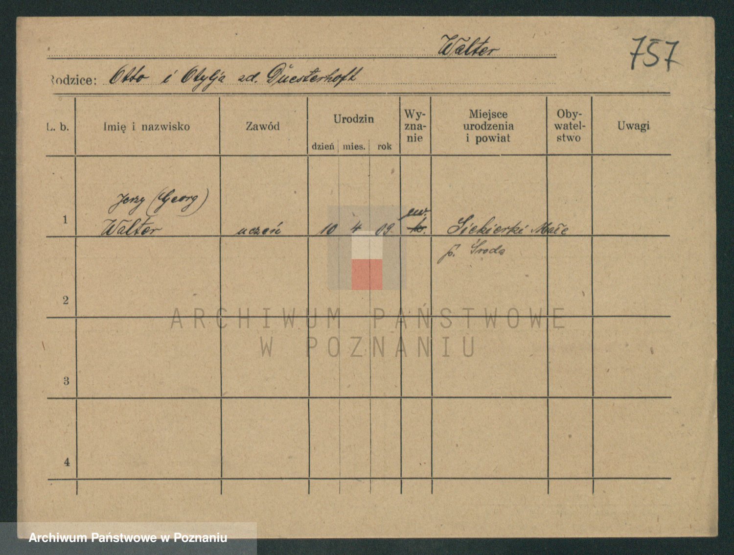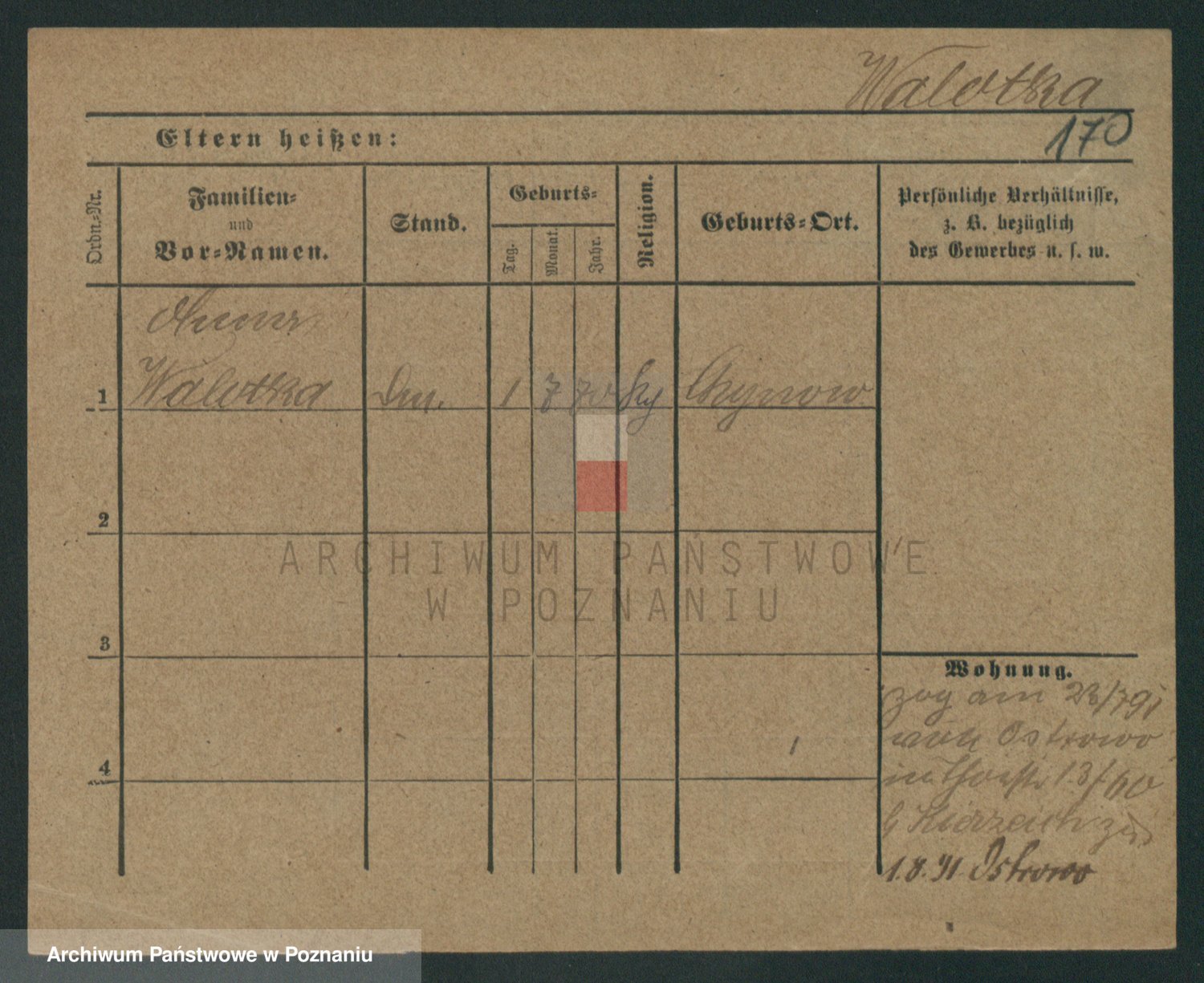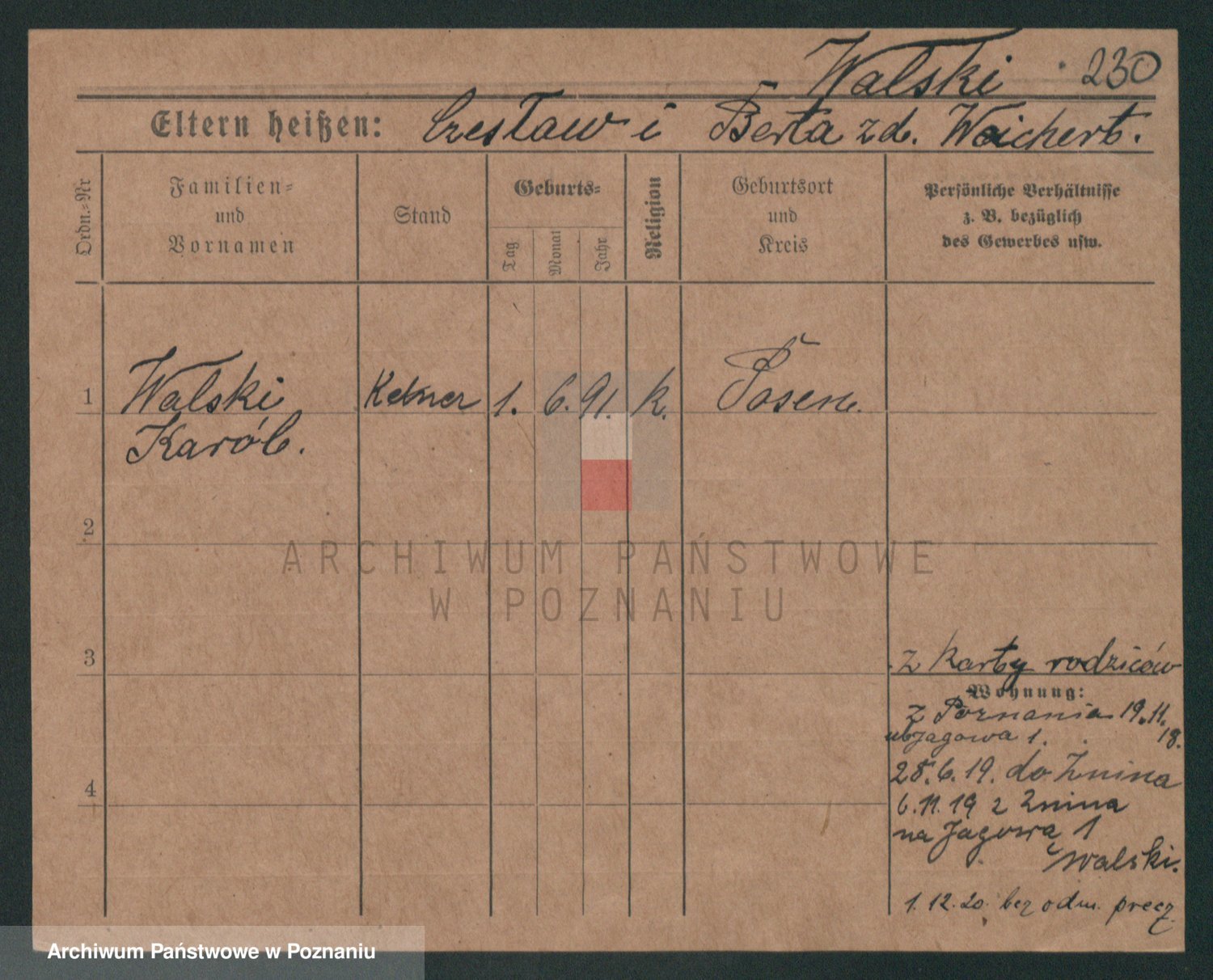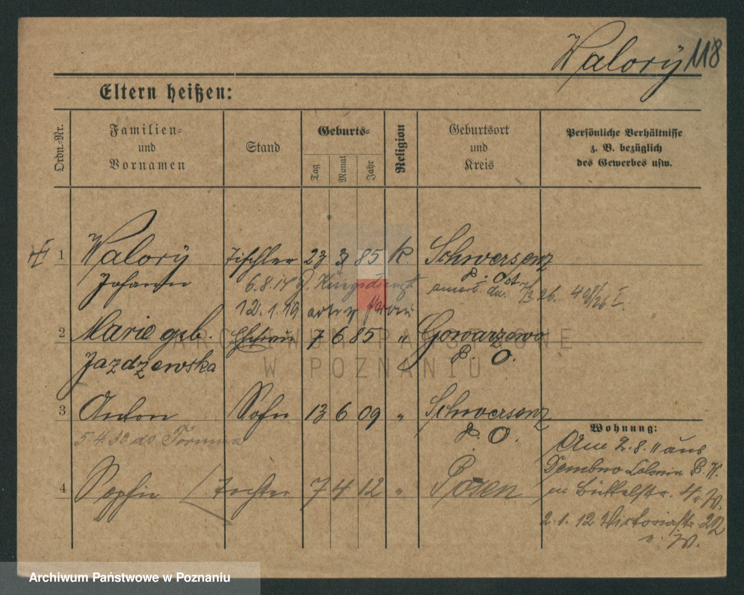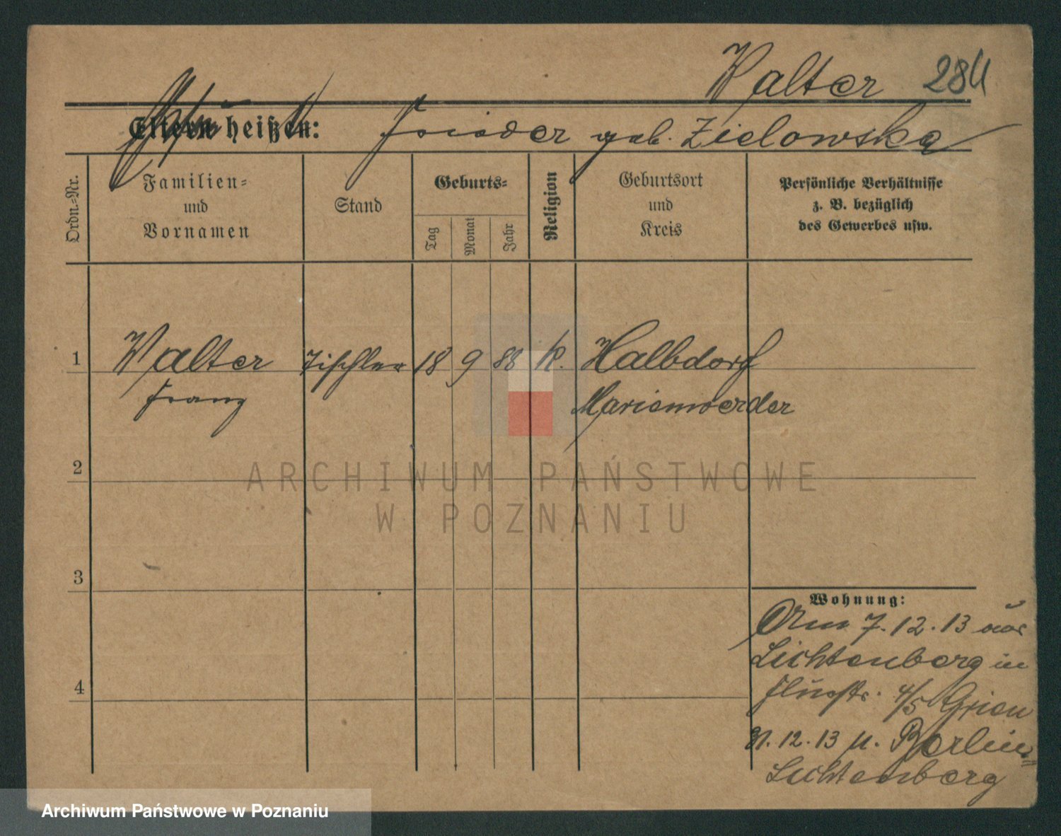 Podgląd karty osobowej dostępny jest po kliknięciu na nazwisko lub ikonkę karty. Można dokonywać powiększenia (ikony na górze) lub przechodzić między kolejnymi skanami (strzałki po bokach).