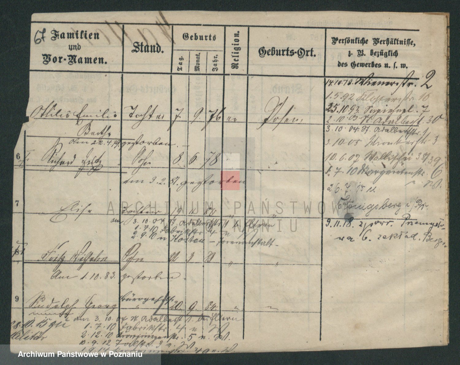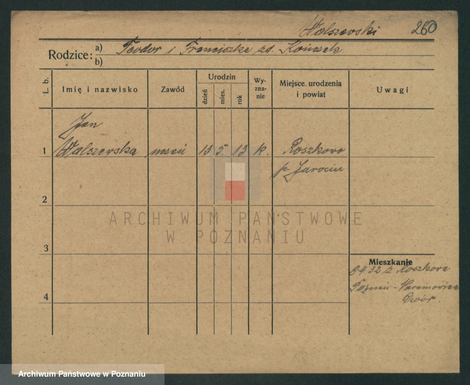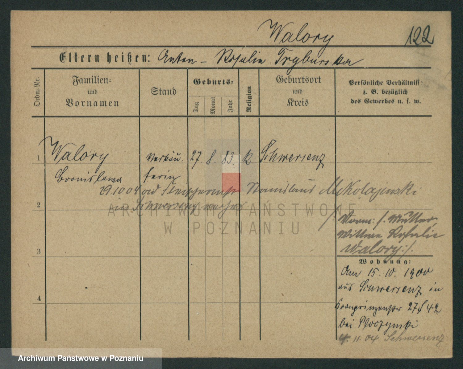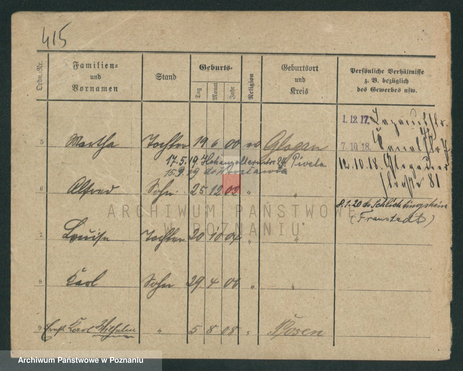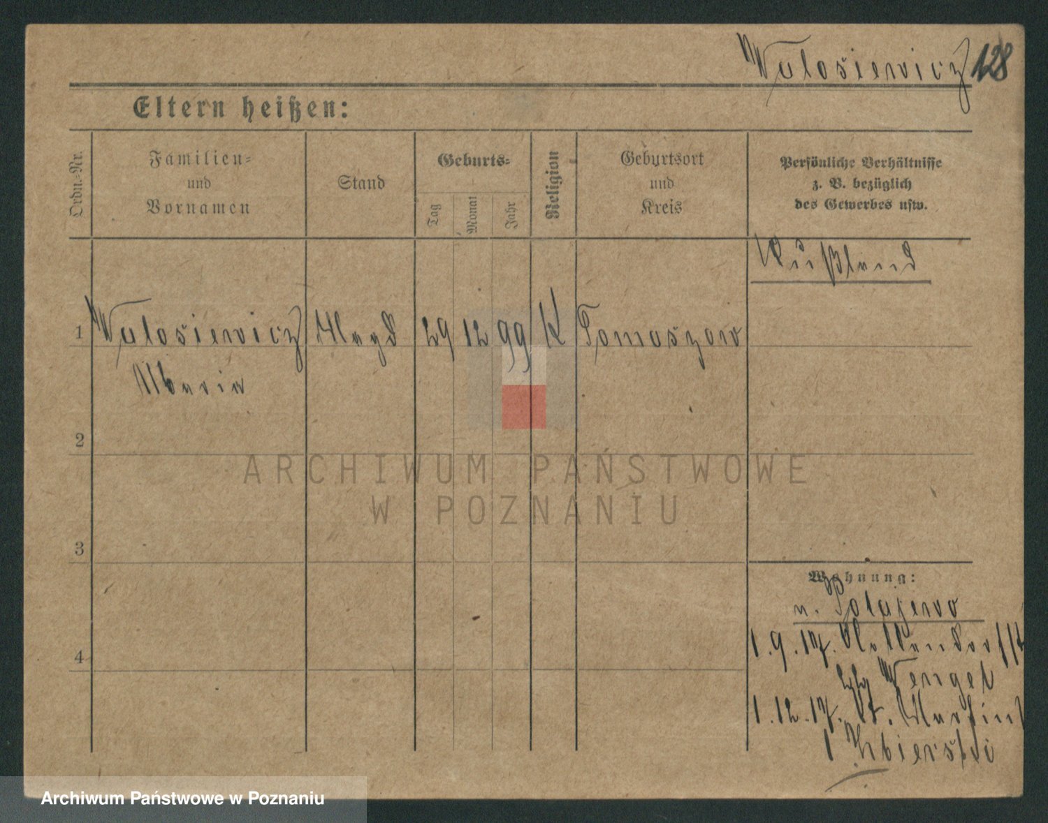 Podgląd karty osobowej dostępny jest po kliknięciu na nazwisko lub ikonkę karty. Można dokonywać powiększenia (ikony na górze) lub przechodzić między kolejnymi skanami (strzałki po bokach).