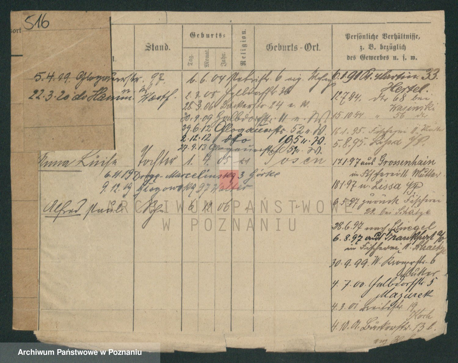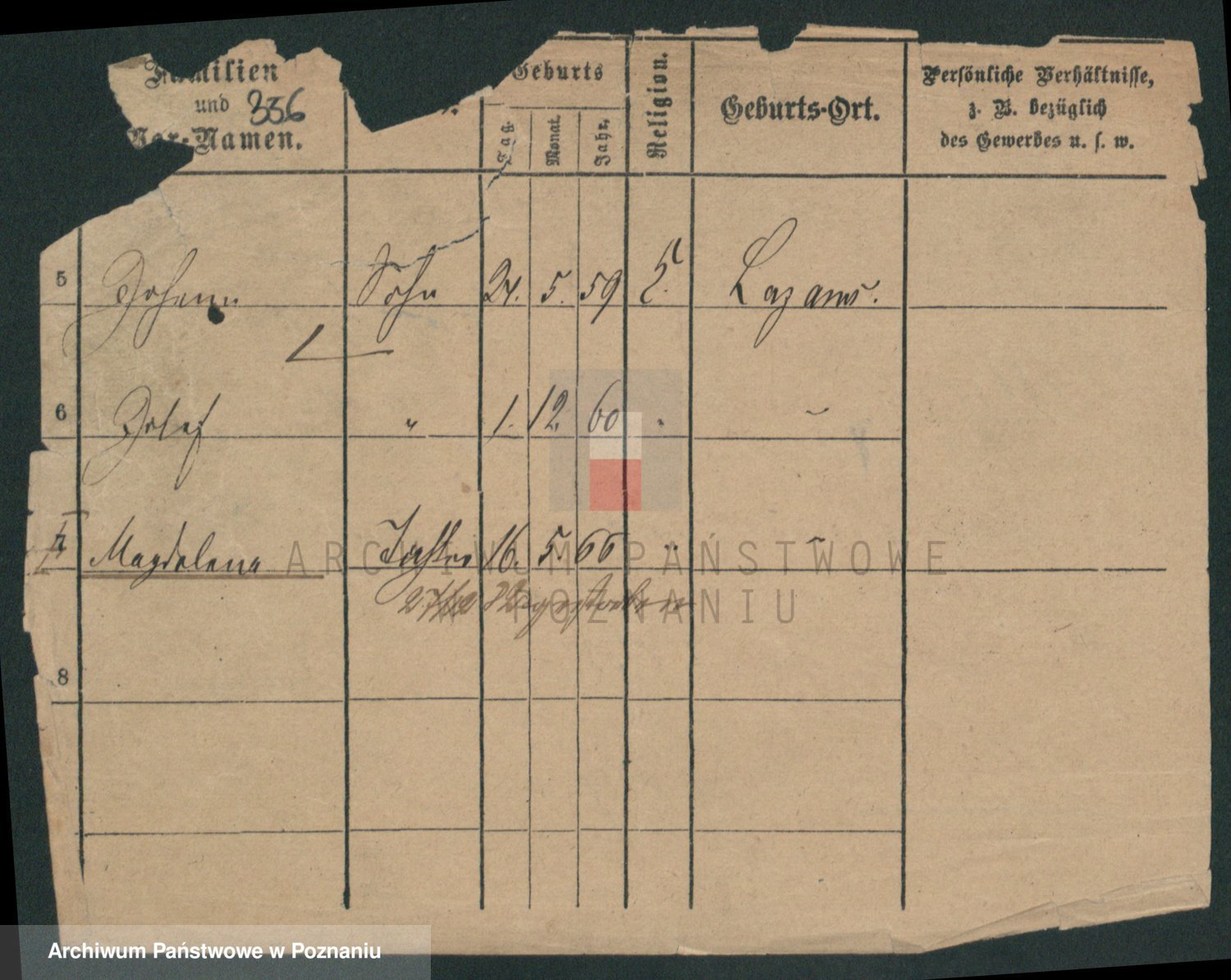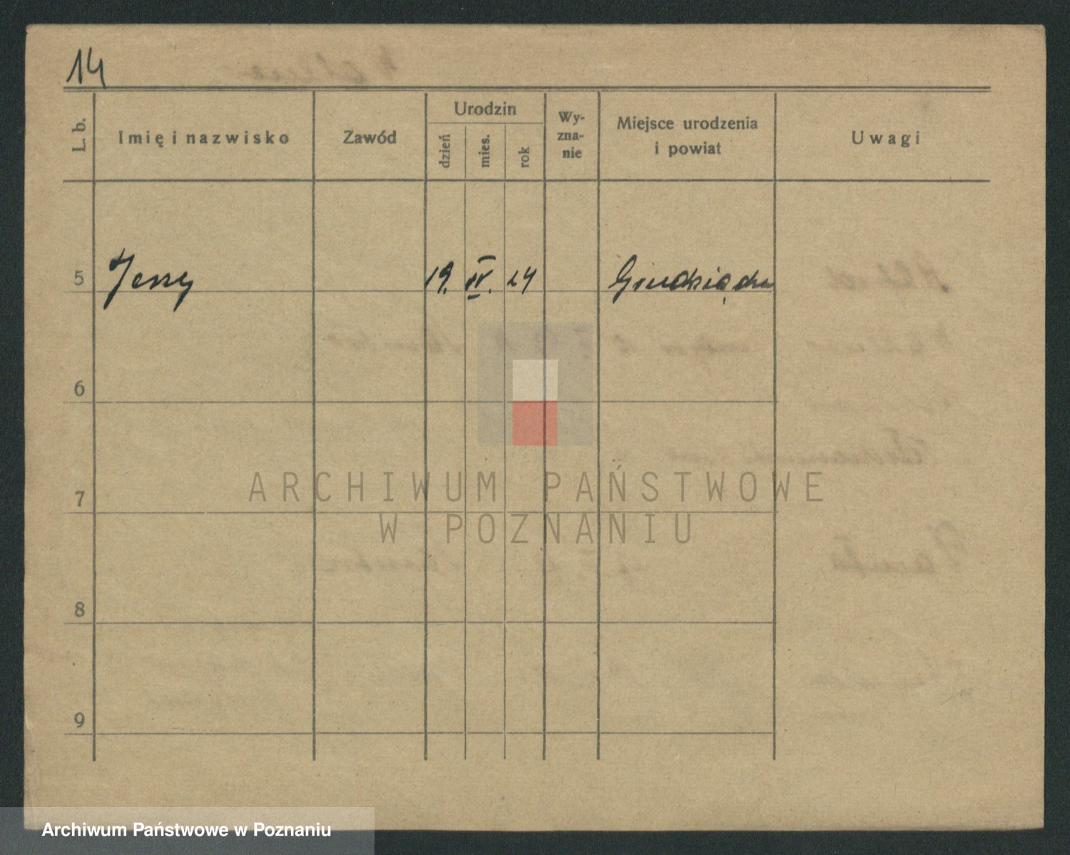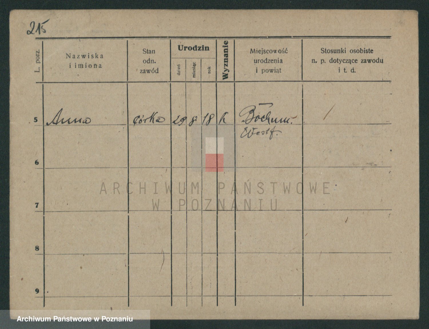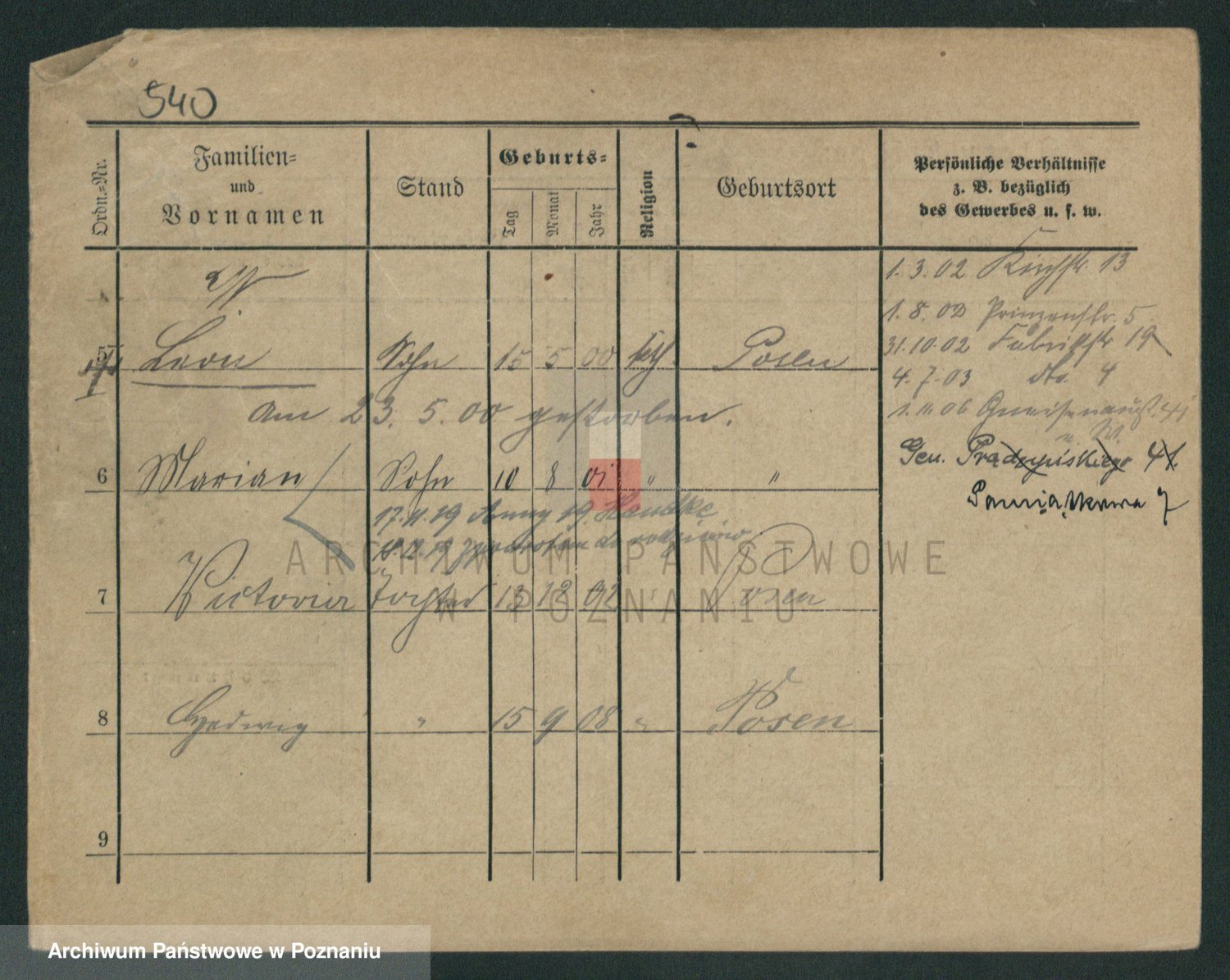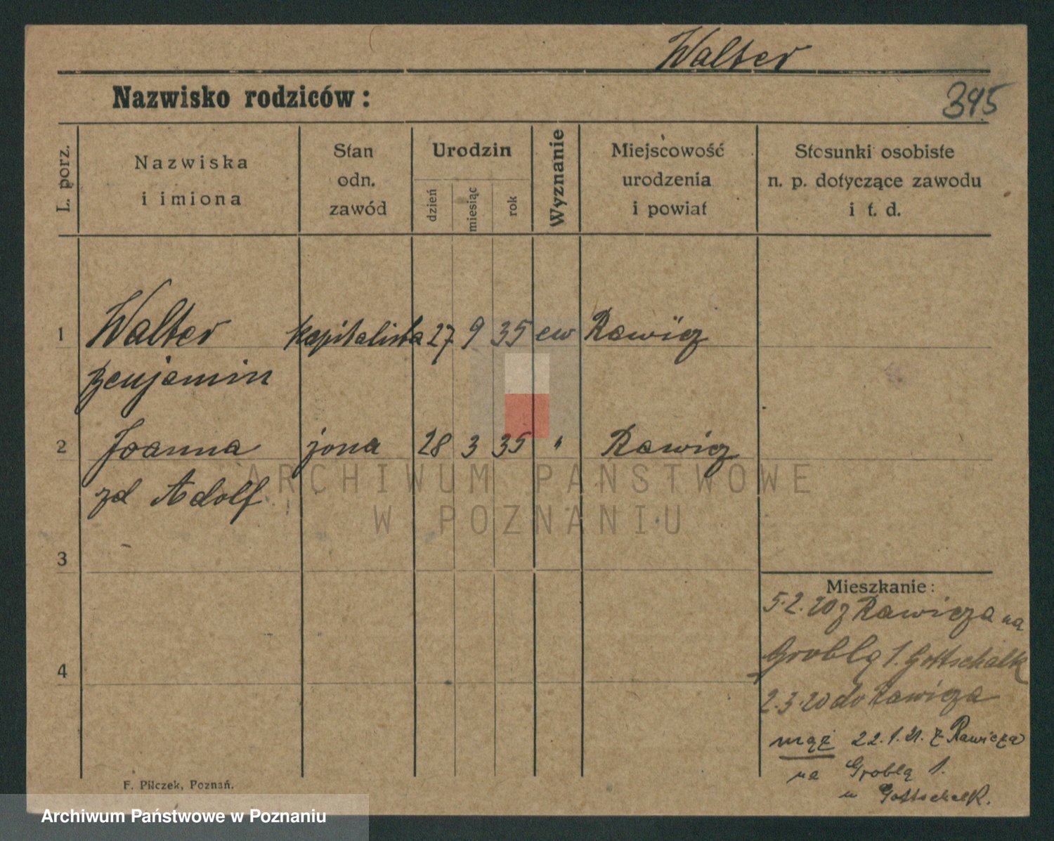 Podgląd karty osobowej dostępny jest po kliknięciu na nazwisko lub ikonkę karty. Można dokonywać powiększenia (ikony na górze) lub przechodzić między kolejnymi skanami (strzałki po bokach).